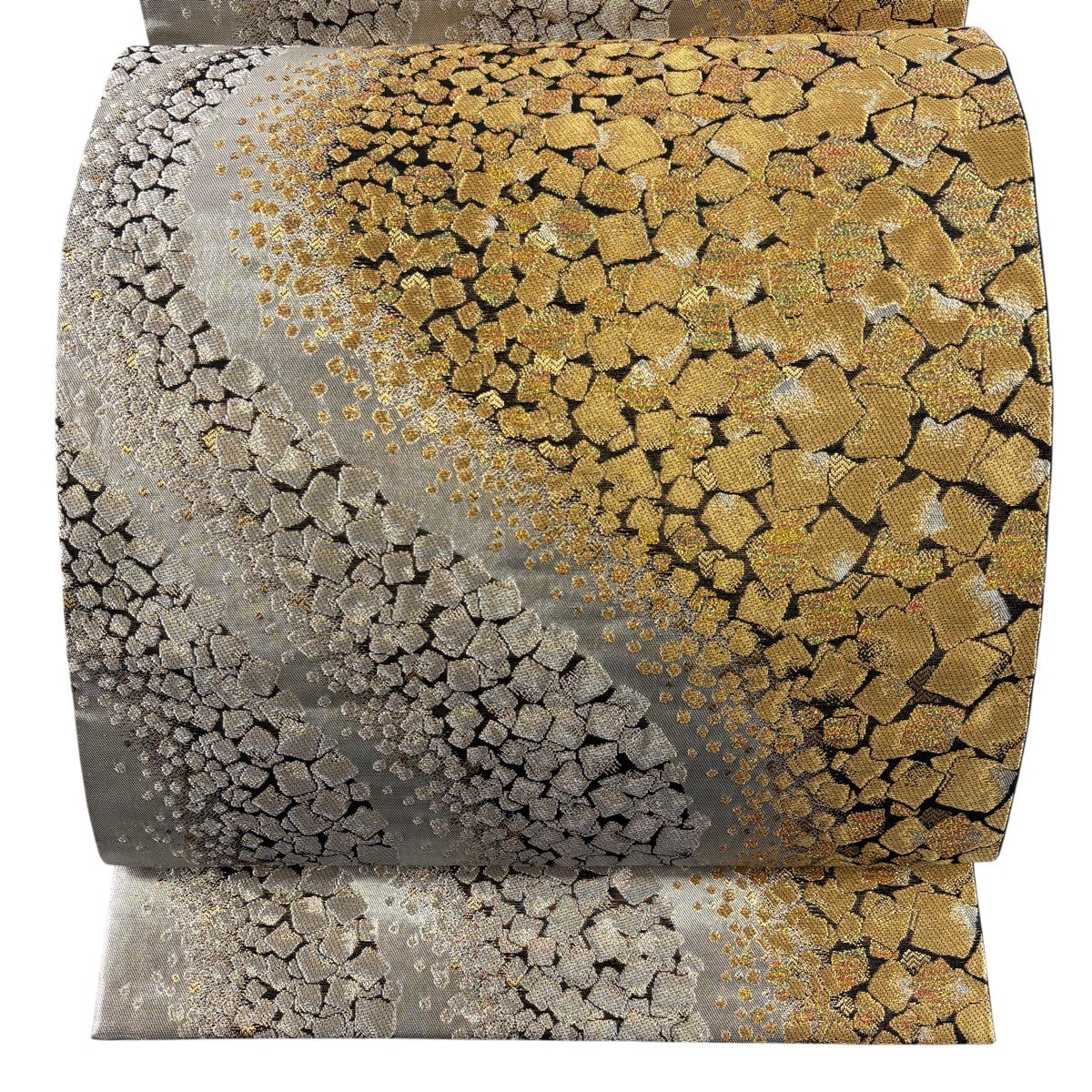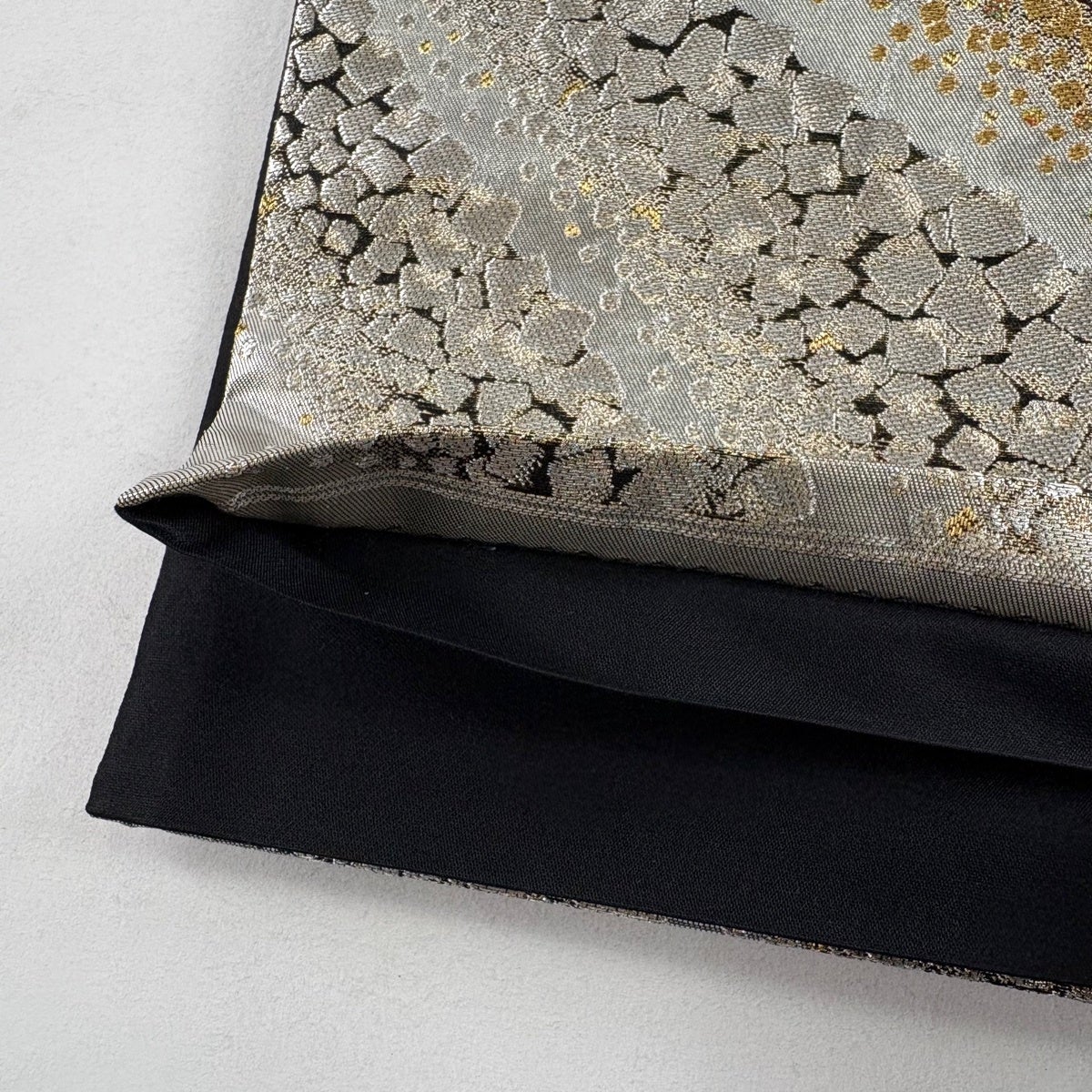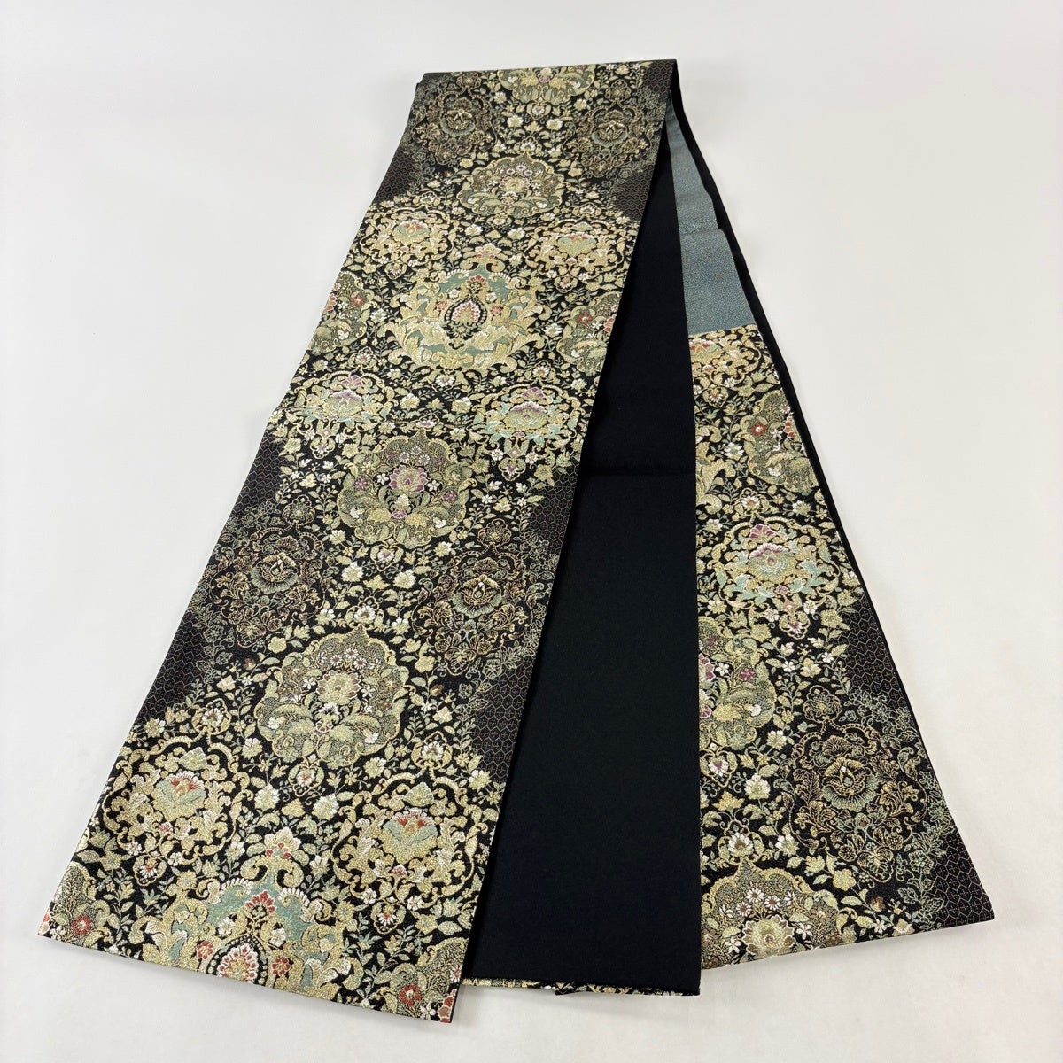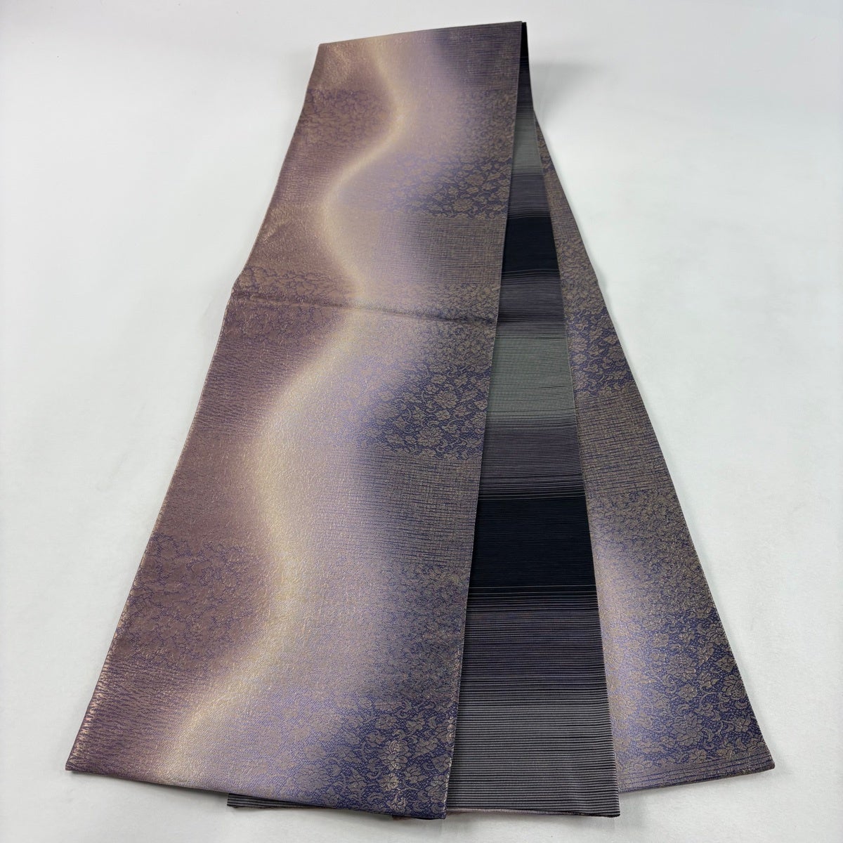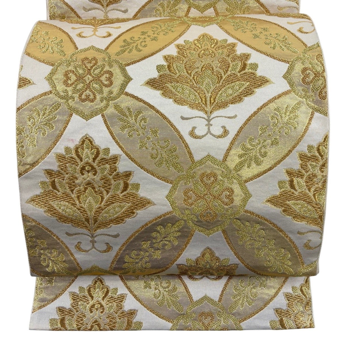 袋帯とは女性用の主にフォーマル用の帯で第一礼装として着用されることが多く、形状は表地にのみ柄があり裏地は無地になるように袋状に織って作成されたため袋帯という名が付きました。 帯を締める際にはおめでたいことが重なりますようにという願いが込められている二重太鼓や成人式の際に振袖に見かけるふくら雀や文庫結びなどの変わり結びを用いて着用します。