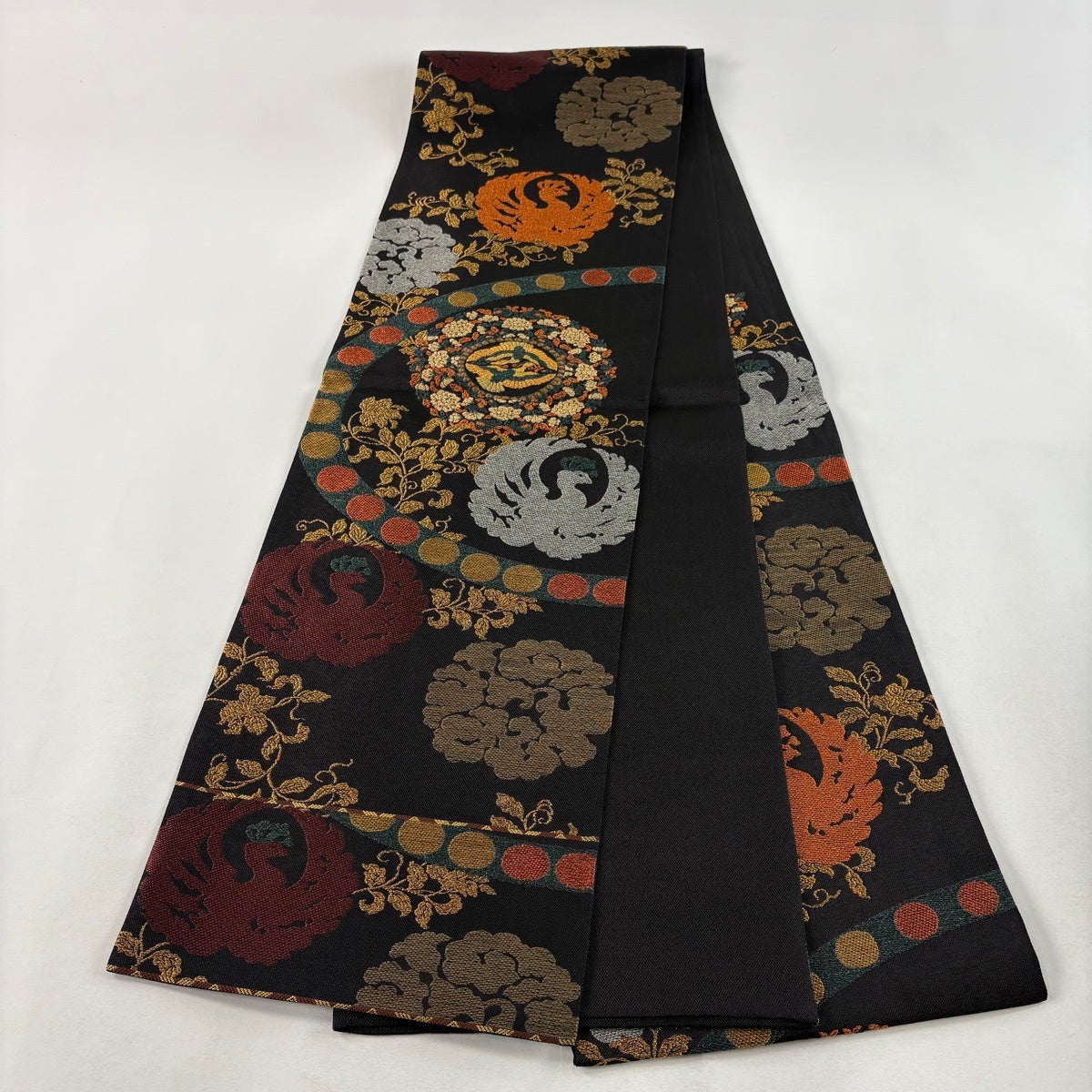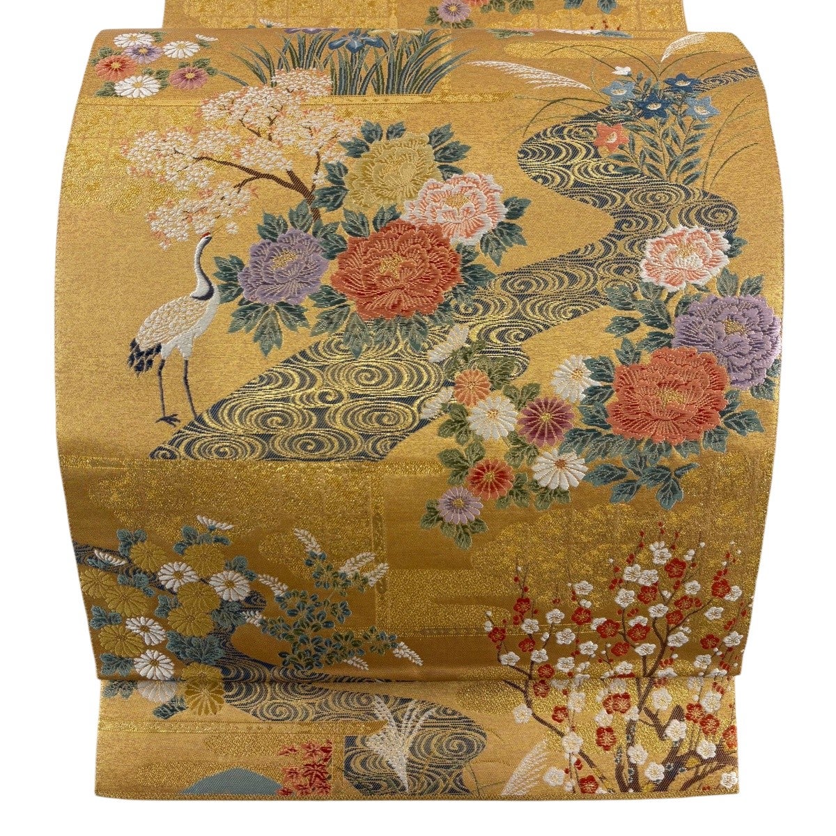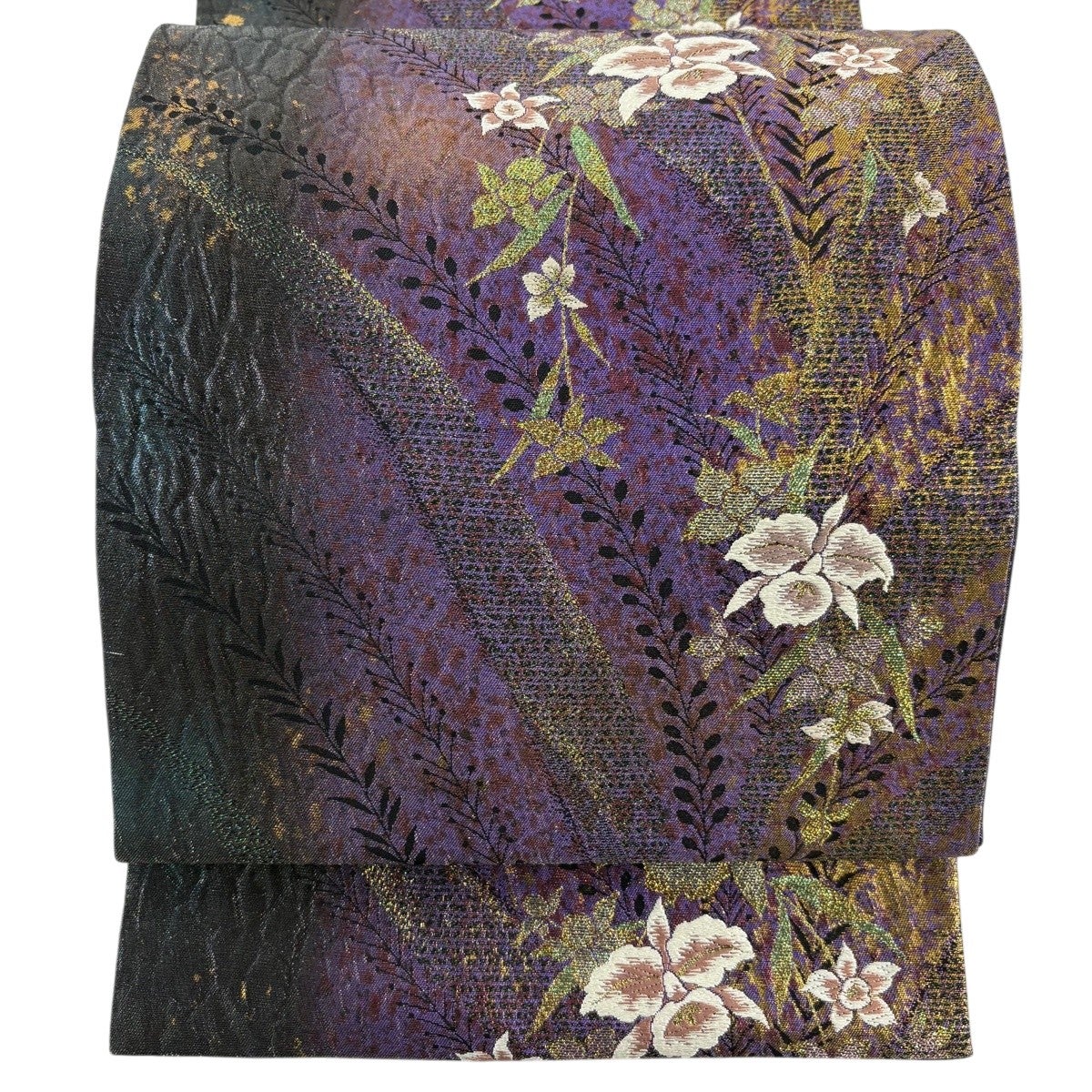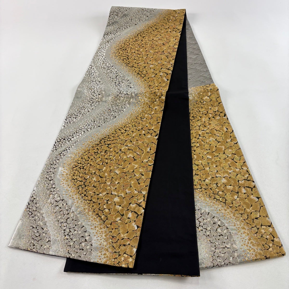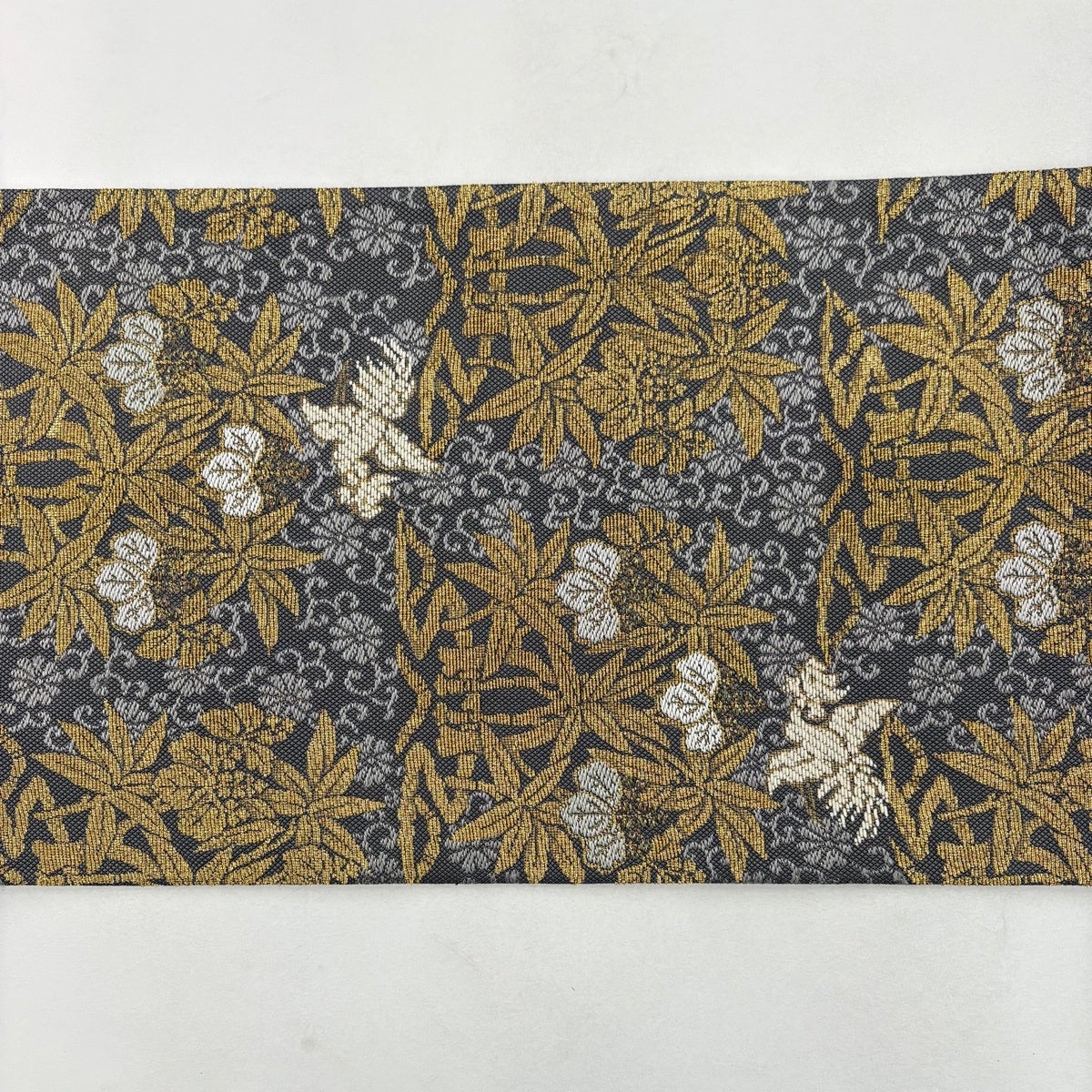 袋帯とは女性用の主にフォーマル用の帯で第一礼装として着用されることが多く、形状は表地にのみ柄があり裏地は無地になるように袋状に織って作成されたため袋帯という名が付きました。 帯を締める際にはおめでたいことが重なりますようにという願いが込められている二重太鼓や成人式の際に振袖に見かけるふくら雀や文庫結びなどの変わり結びを用いて着用します。