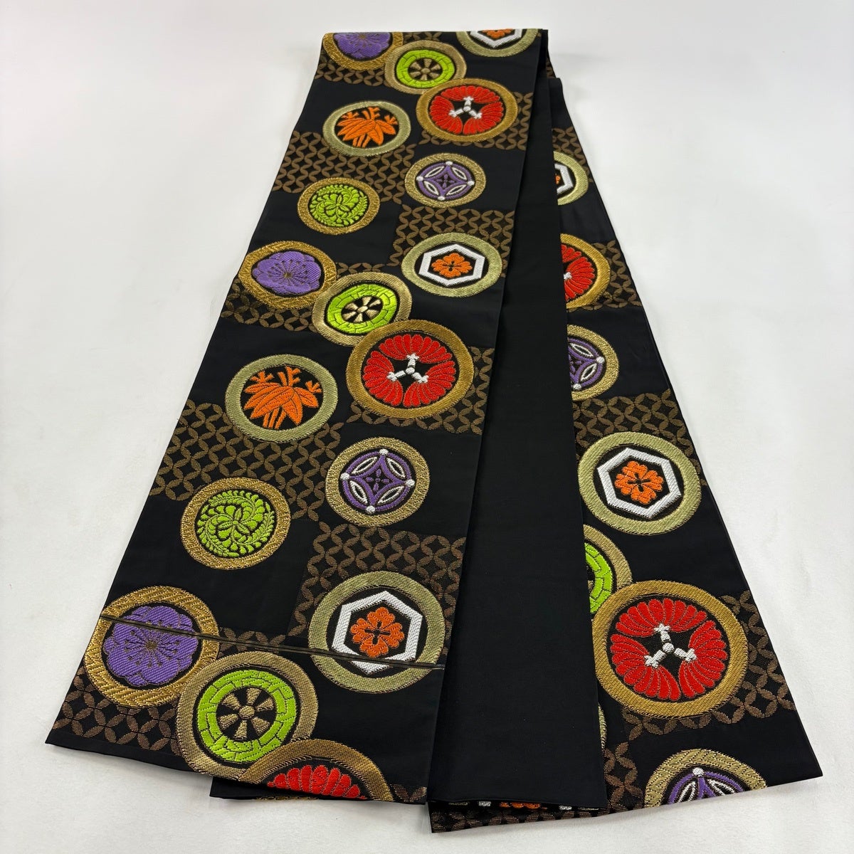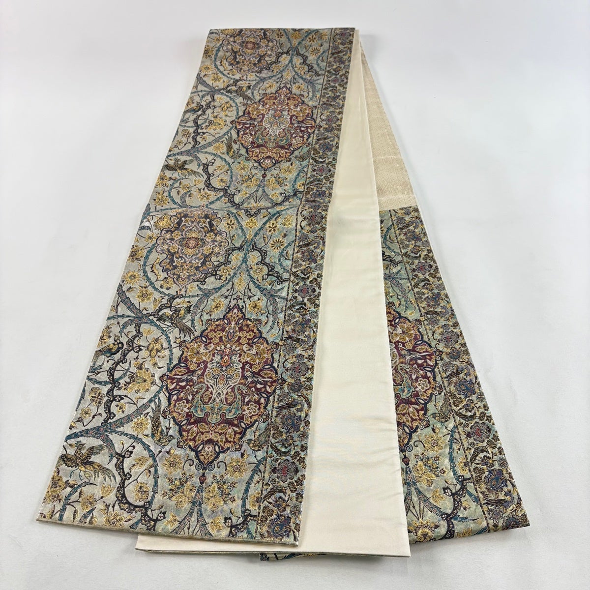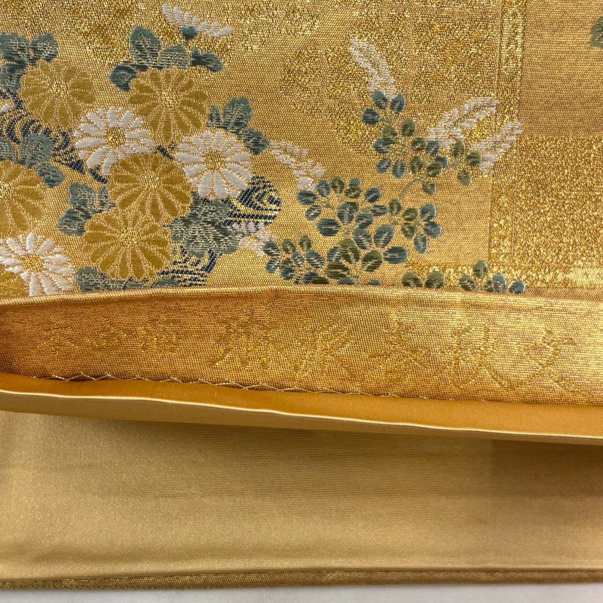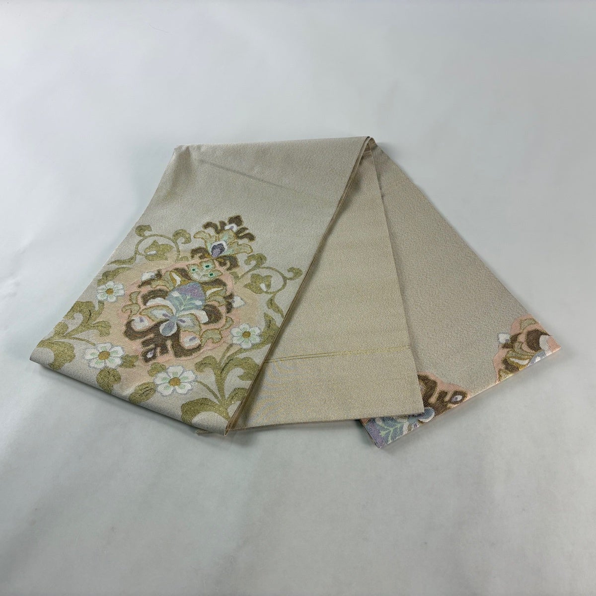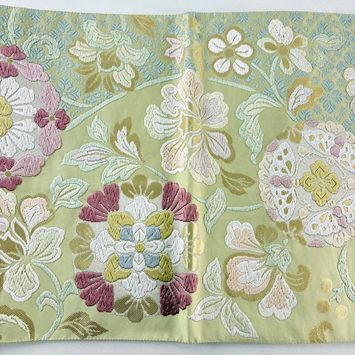 袋帯とは女性用の主にフォーマル用の帯で第一礼装として着用されることが多く、形状は表地にのみ柄があり裏地は無地になるように袋状に織って作成されたため袋帯という名が付きました。 帯を締める際にはおめでたいことが重なりますようにという願いが込められている二重太鼓や成人式の際に振袖に見かけるふくら雀や文庫結びなどの変わり結びを用いて着用します。
