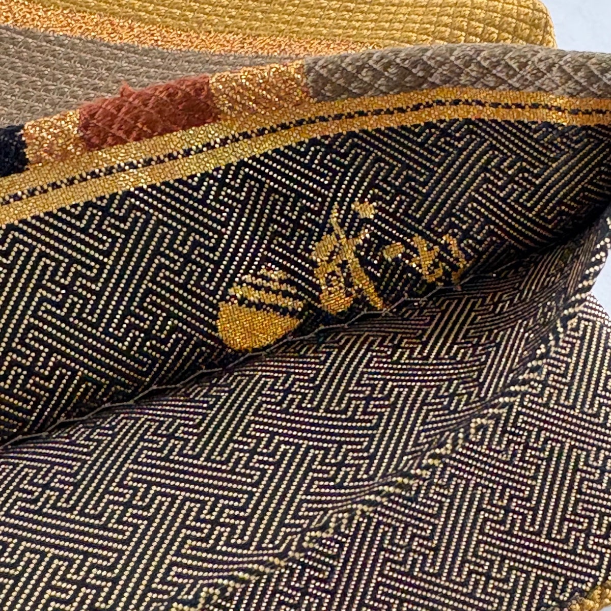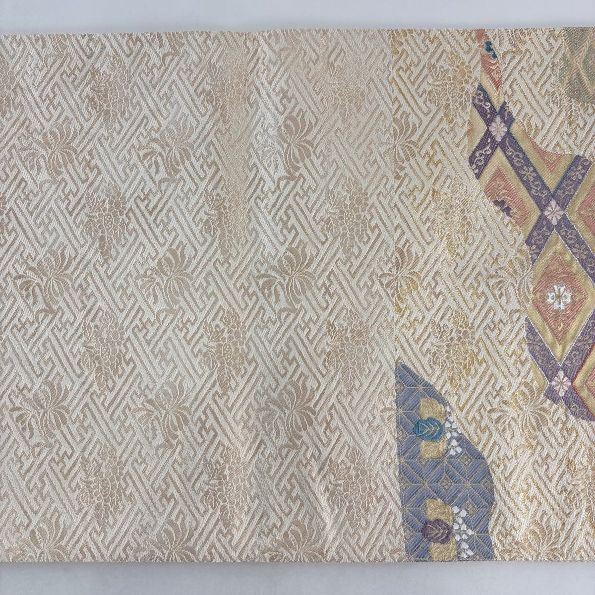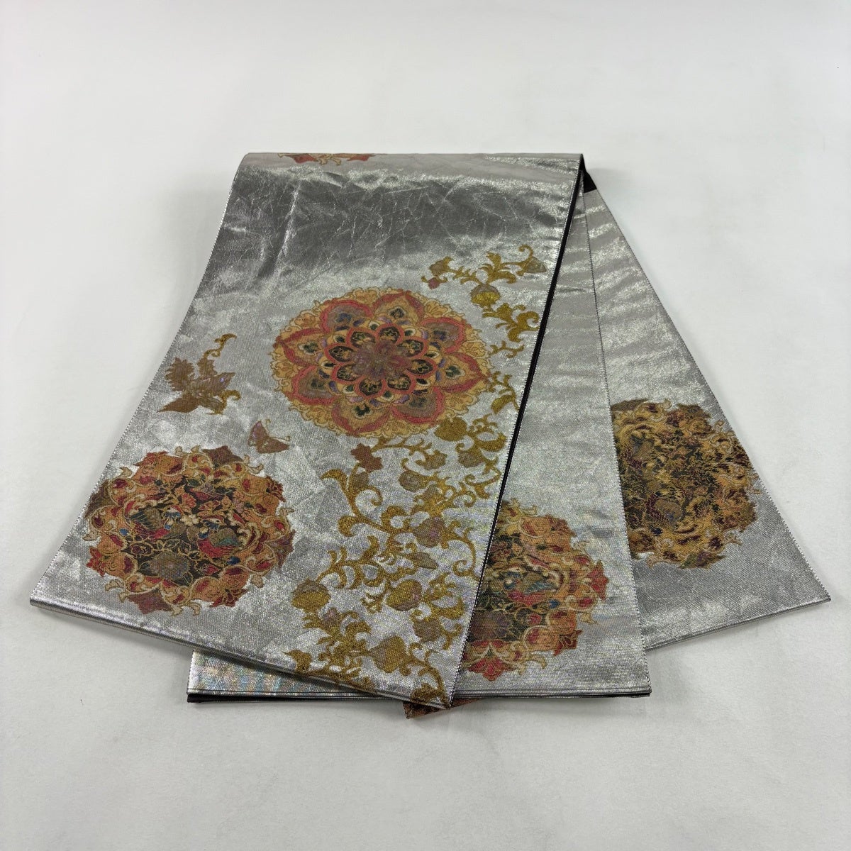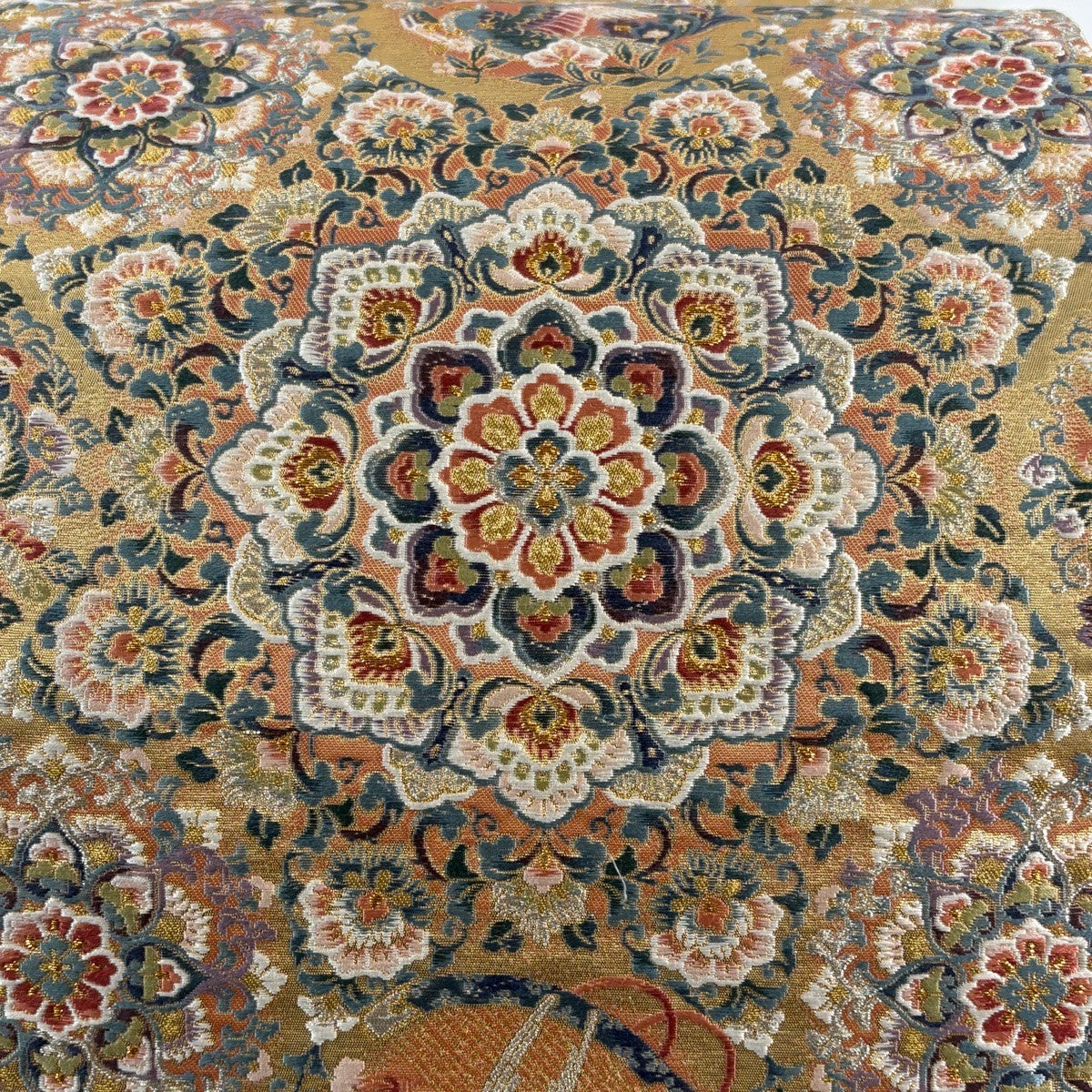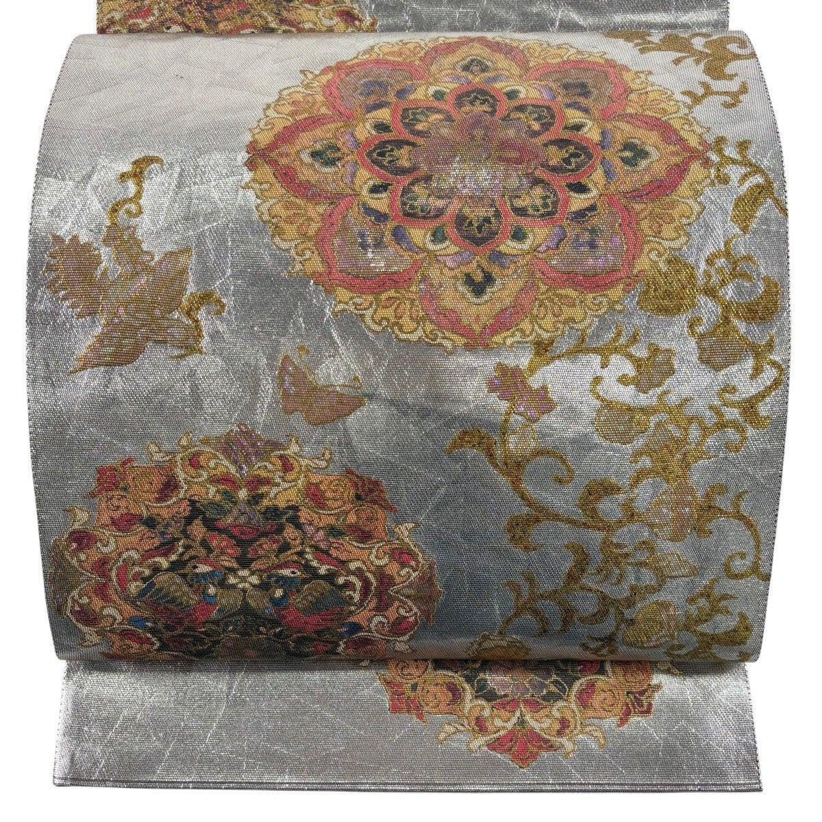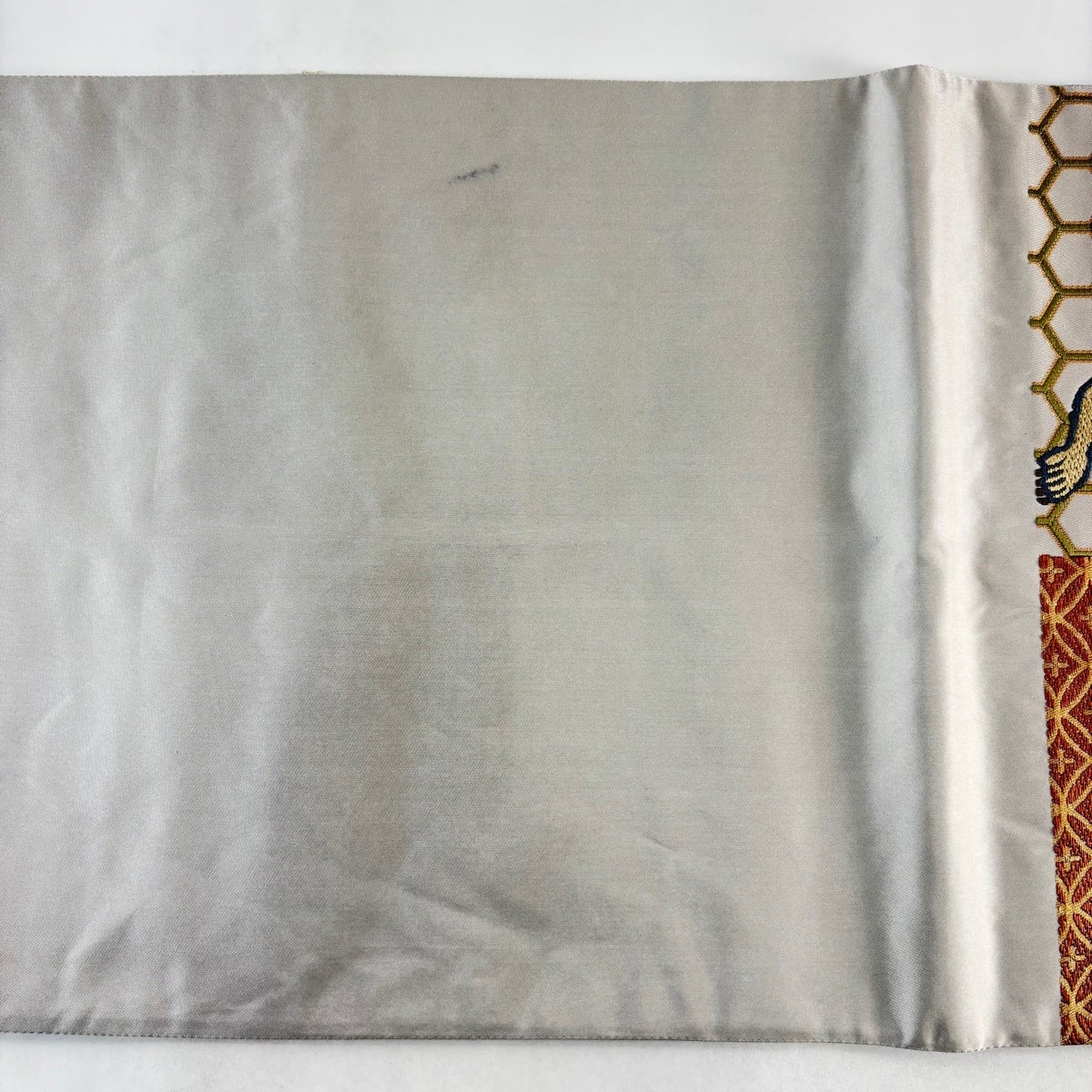 袋帯とは女性用の主にフォーマル用の帯で第一礼装として着用されることが多く、形状は表地にのみ柄があり裏地は無地になるように袋状に織って作成されたため袋帯という名が付きました。 帯を締める際にはおめでたいことが重なりますようにという願いが込められている二重太鼓や成人式の際に振袖に見かけるふくら雀や文庫結びなどの変わり結びを用いて着用します。