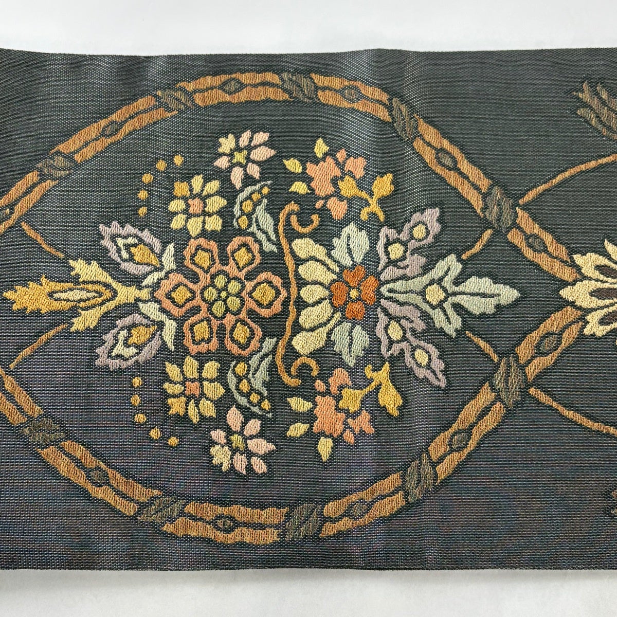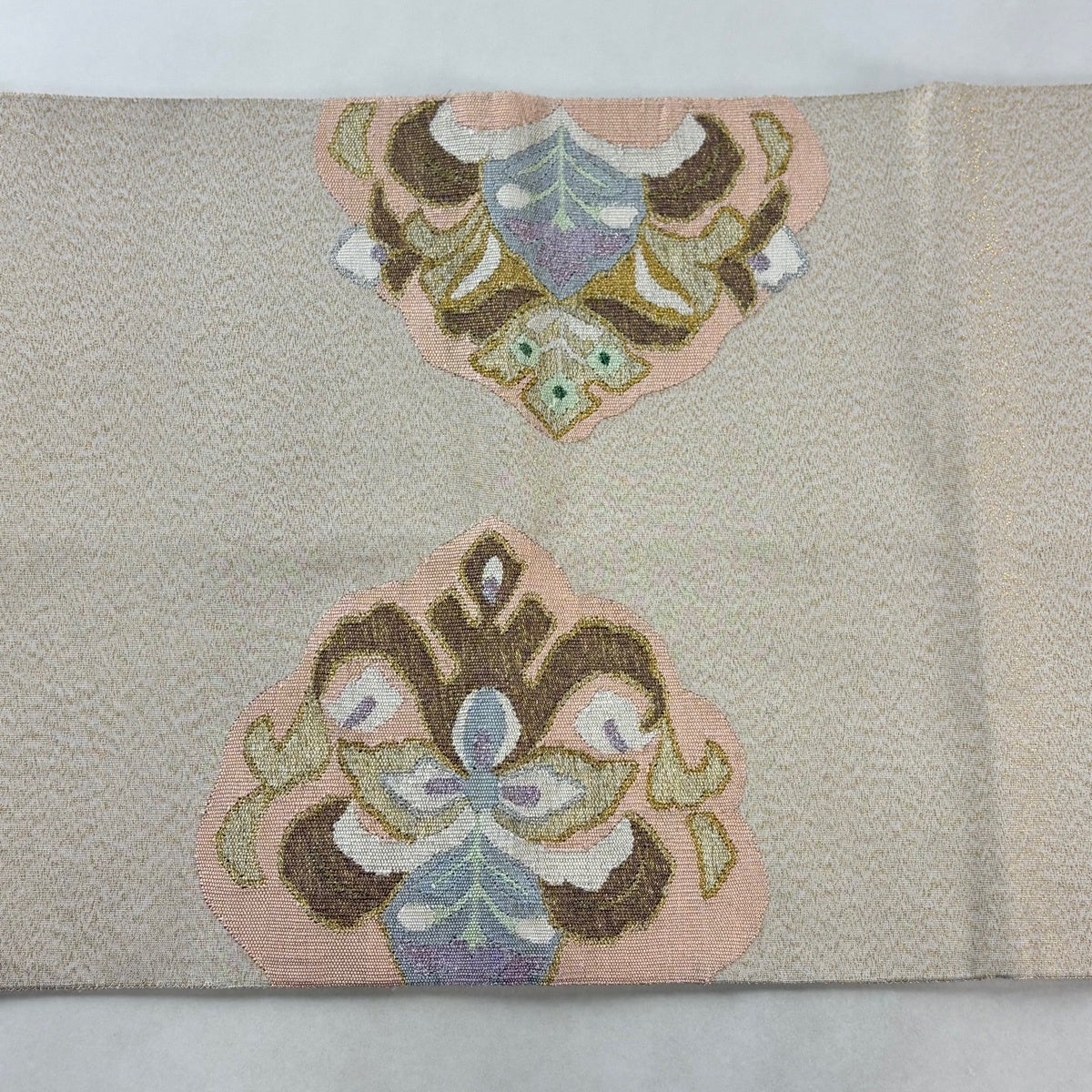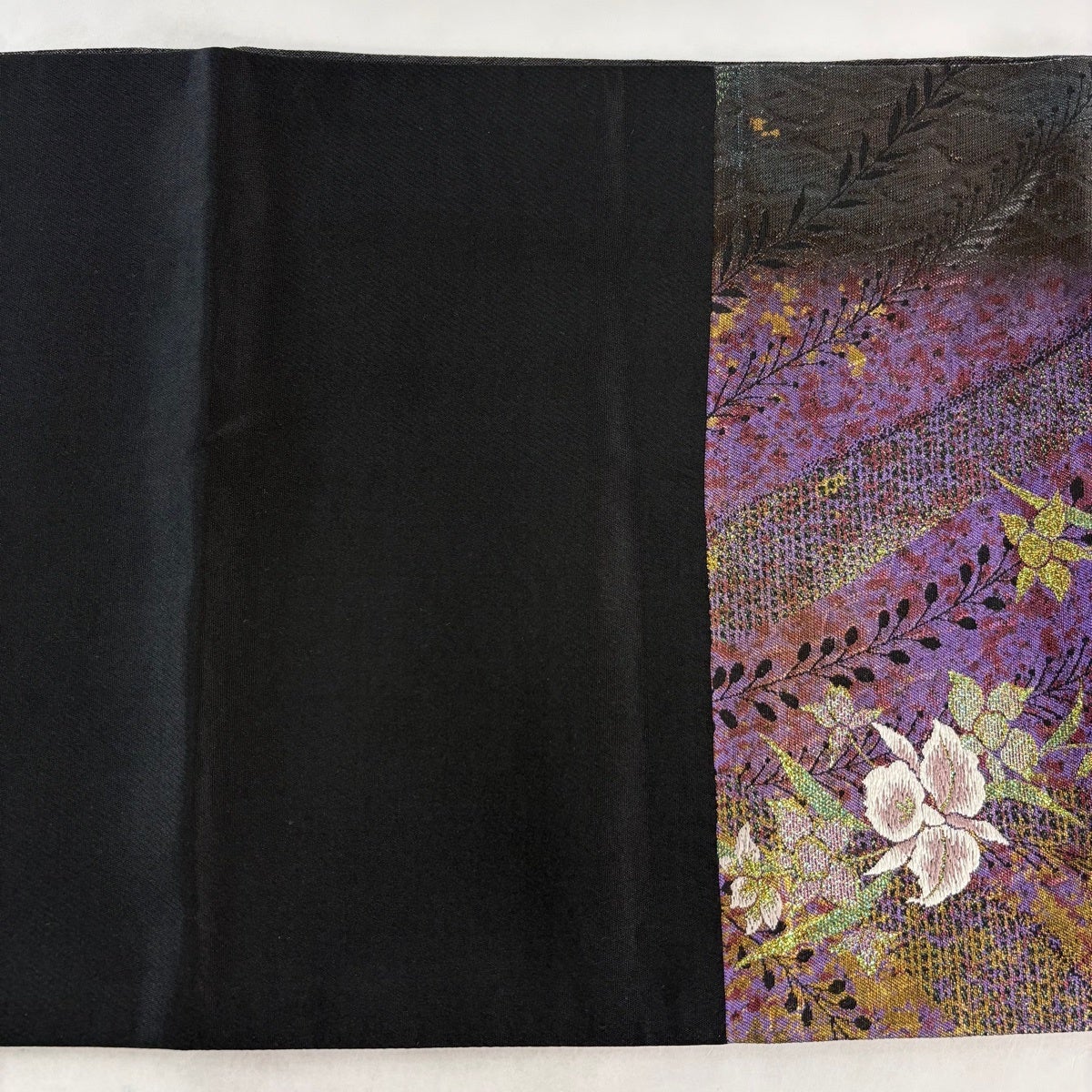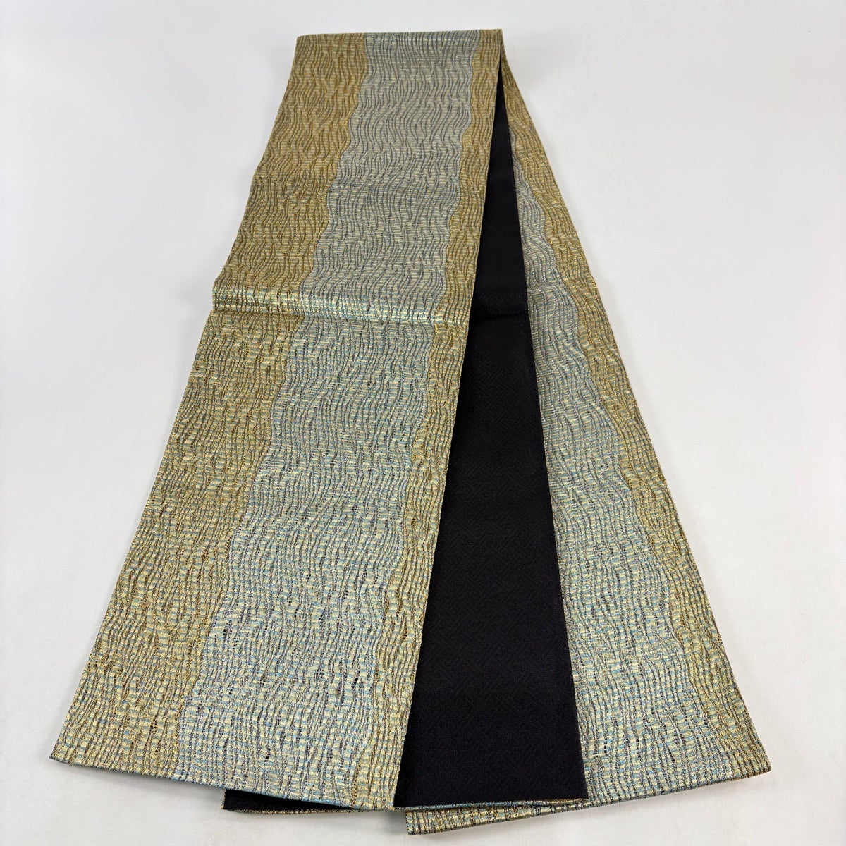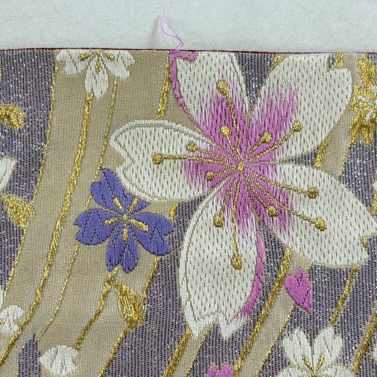 袋帯とは女性用の主にフォーマル用の帯で第一礼装として着用されることが多く、形状は表地にのみ柄があり裏地は無地になるように袋状に織って作成されたため袋帯という名が付きました。 帯を締める際にはおめでたいことが重なりますようにという願いが込められている二重太鼓や成人式の際に振袖に見かけるふくら雀や文庫結びなどの変わり結びを用いて着用します。