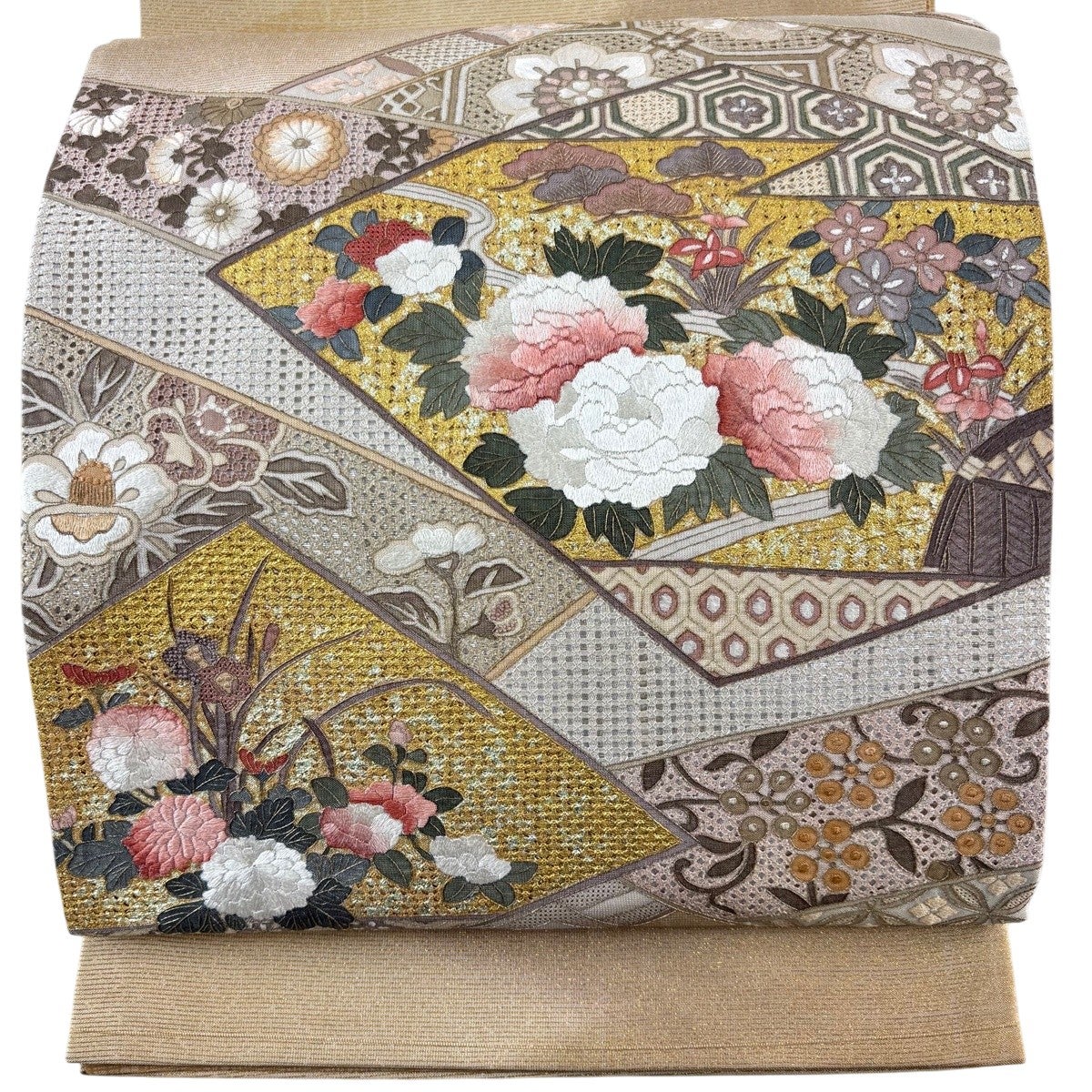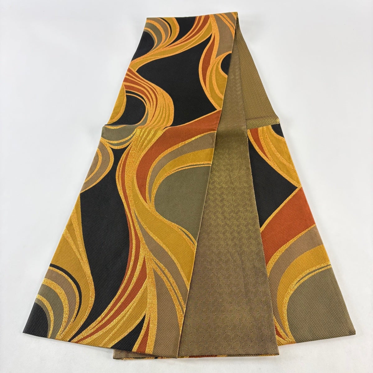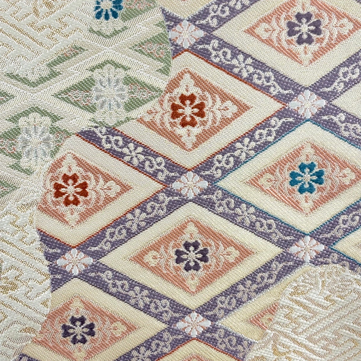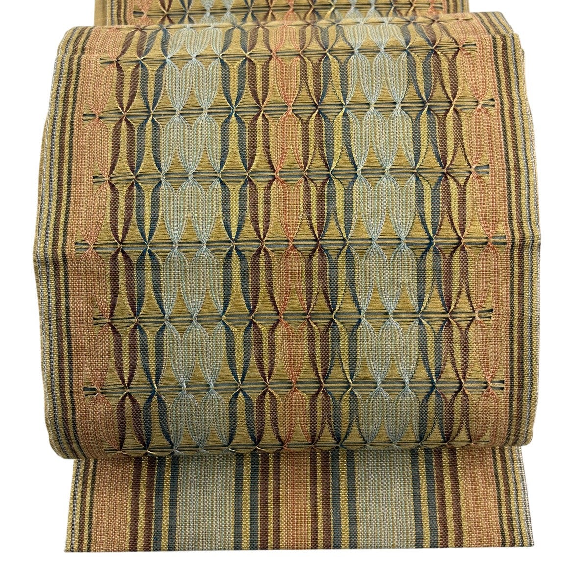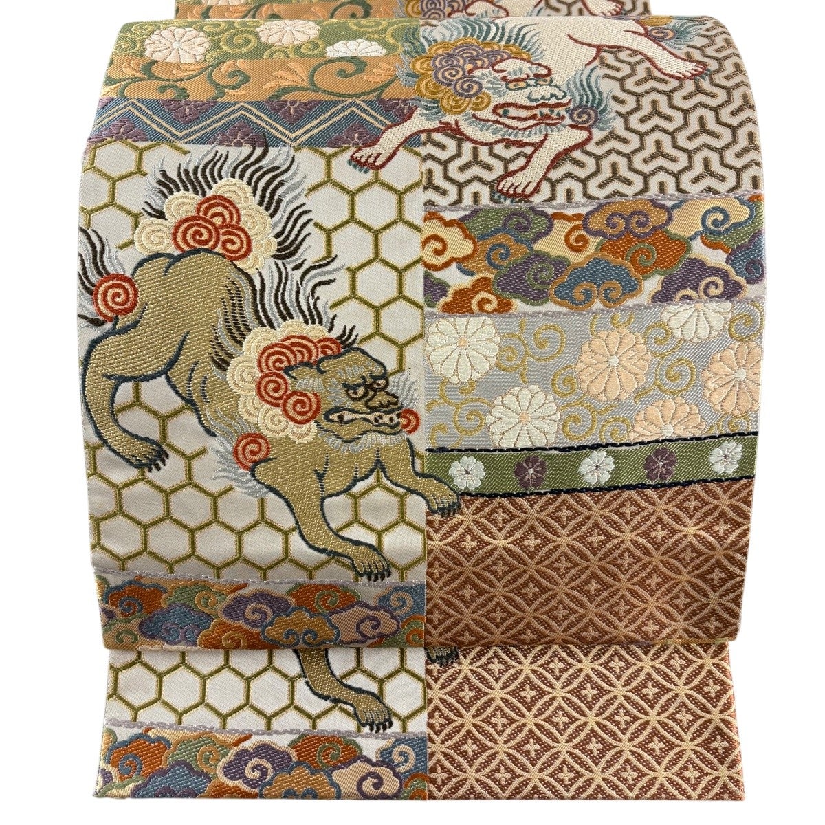 袋帯とは女性用の主にフォーマル用の帯で第一礼装として着用されることが多く、形状は表地にのみ柄があり裏地は無地になるように袋状に織って作成されたため袋帯という名が付きました。 帯を締める際にはおめでたいことが重なりますようにという願いが込められている二重太鼓や成人式の際に振袖に見かけるふくら雀や文庫結びなどの変わり結びを用いて着用します。