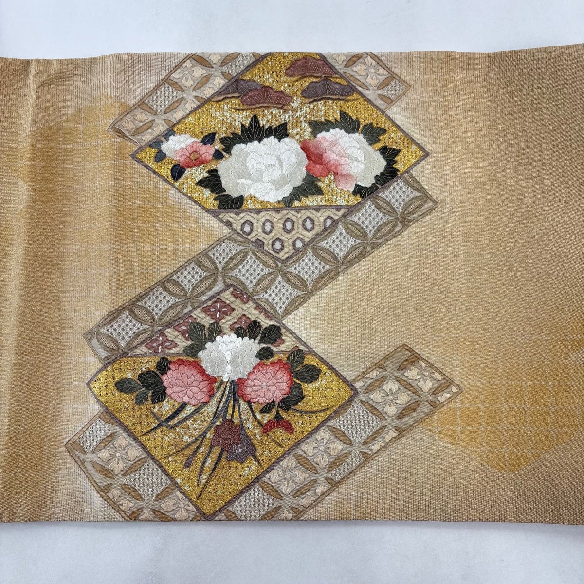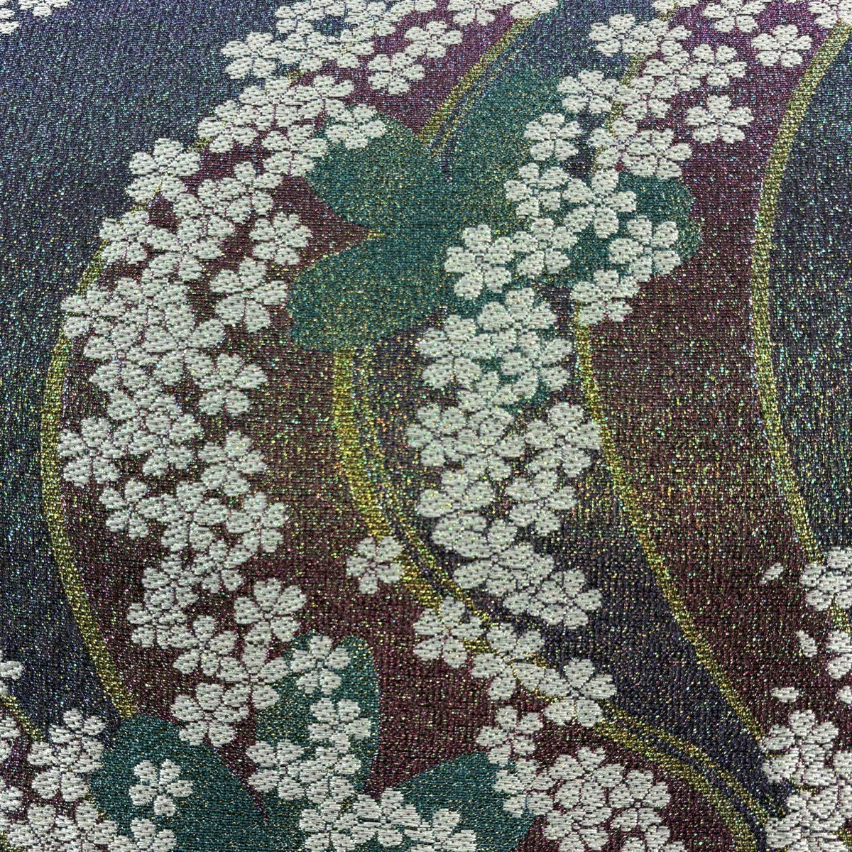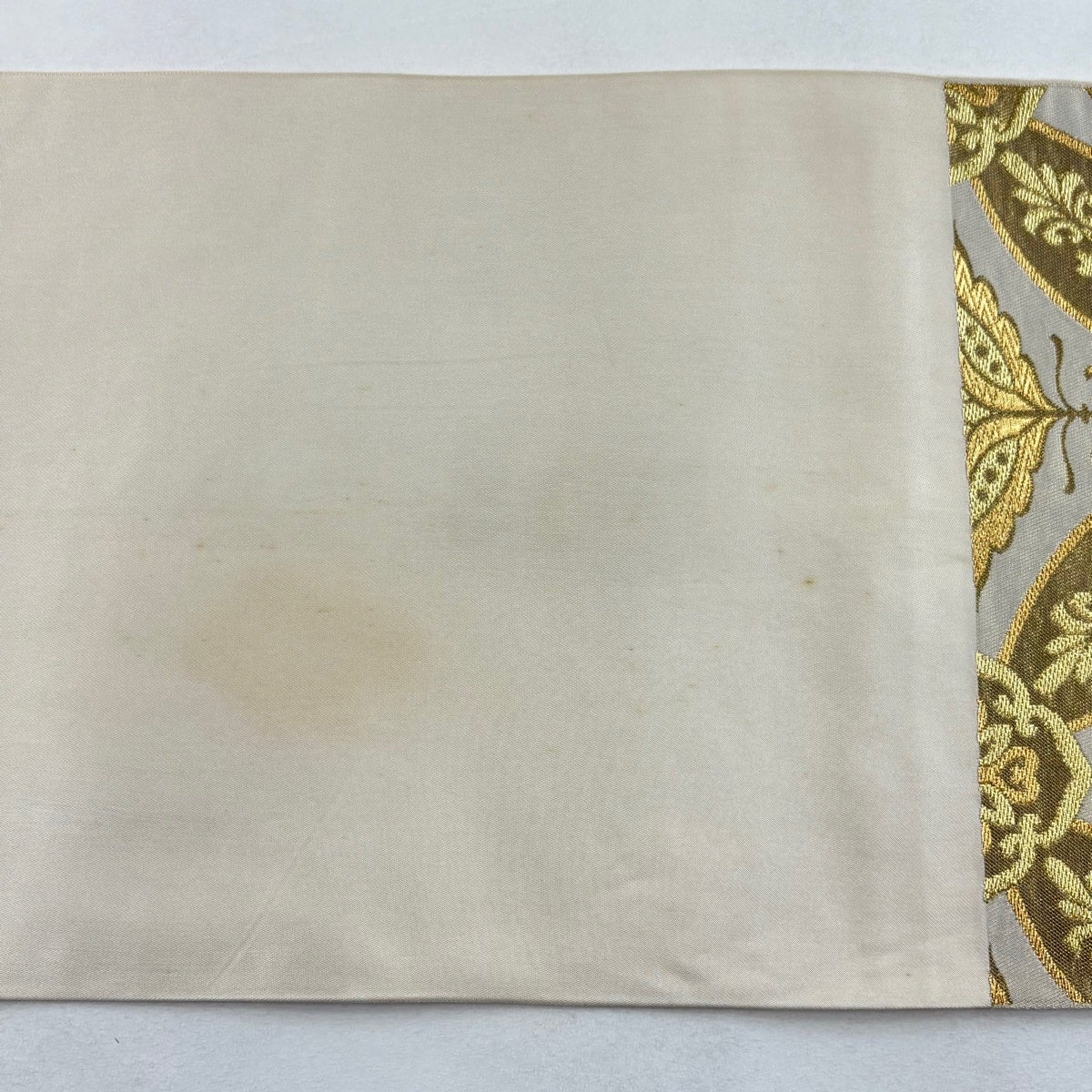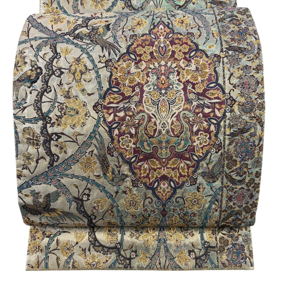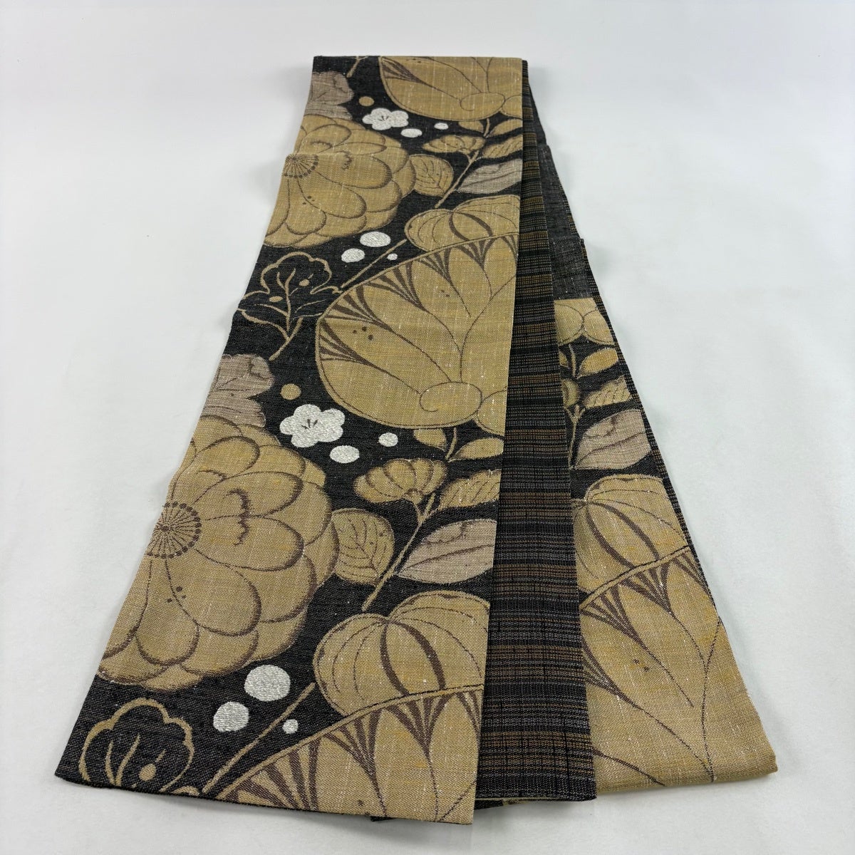 袋帯とは女性用の主にフォーマル用の帯で第一礼装として着用されることが多く、形状は表地にのみ柄があり裏地は無地になるように袋状に織って作成されたため袋帯という名が付きました。 帯を締める際にはおめでたいことが重なりますようにという願いが込められている二重太鼓や成人式の際に振袖に見かけるふくら雀や文庫結びなどの変わり結びを用いて着用します。
