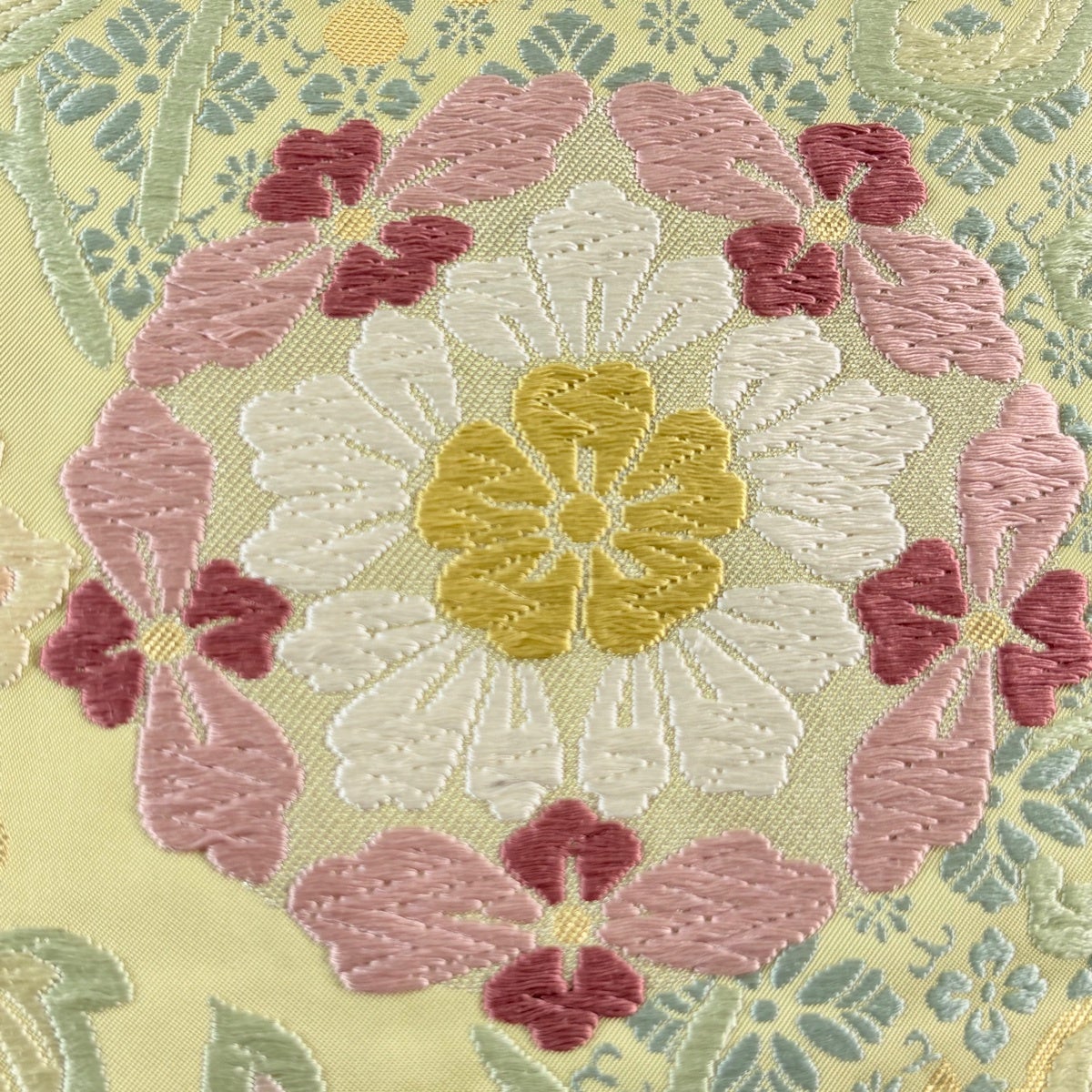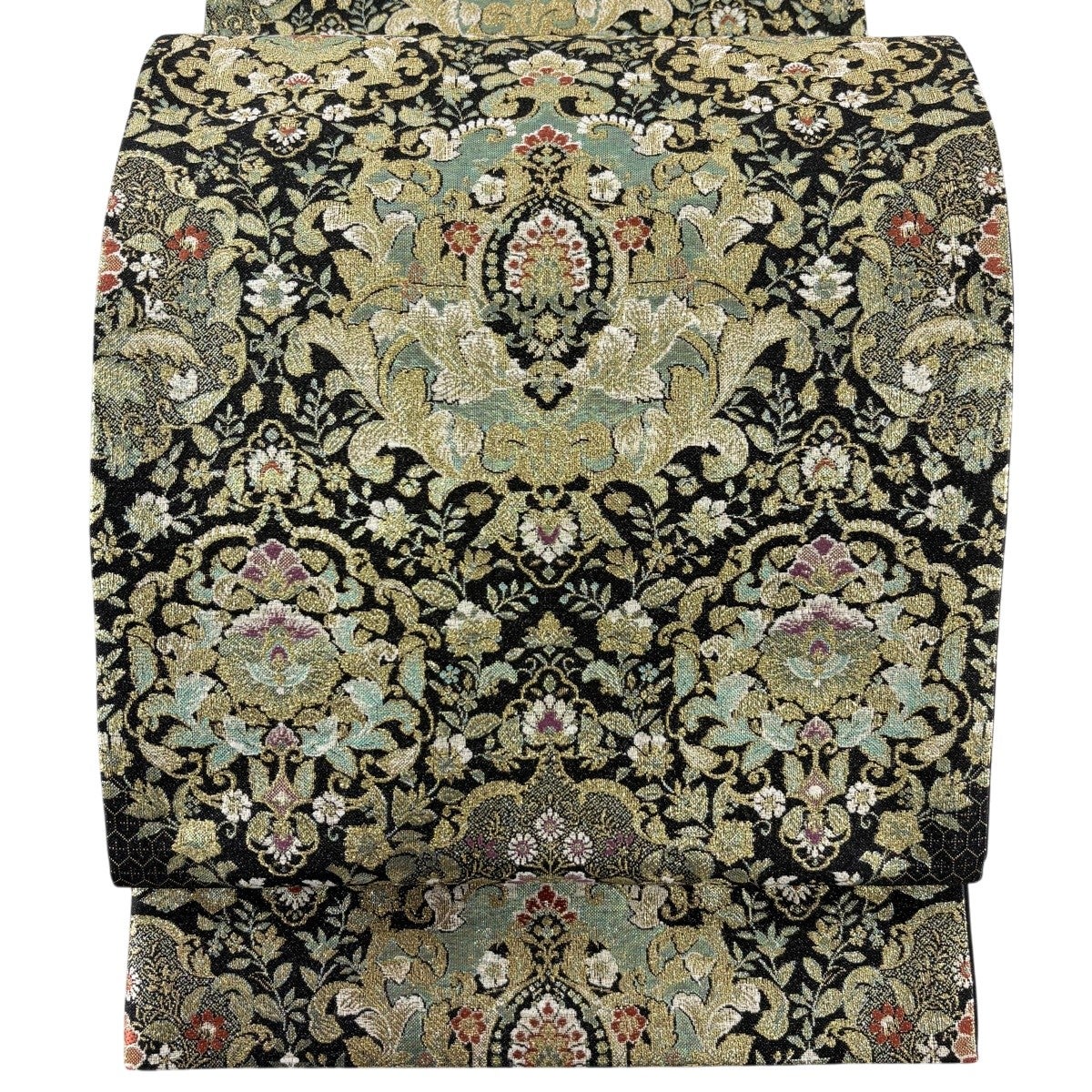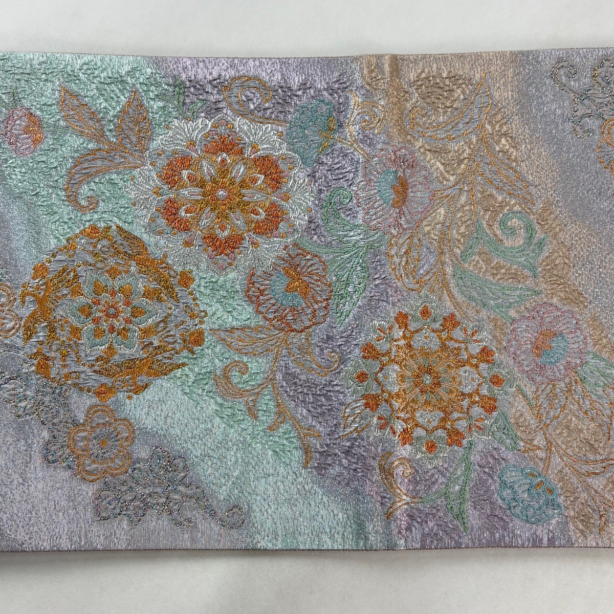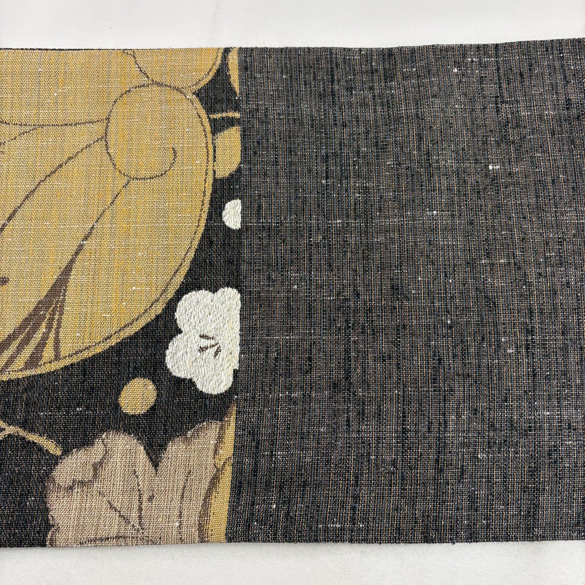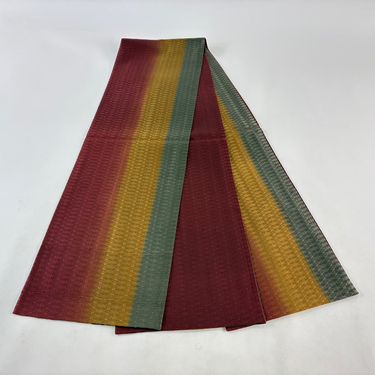 袋帯とは女性用の主にフォーマル用の帯で第一礼装として着用されることが多く、形状は表地にのみ柄があり裏地は無地になるように袋状に織って作成されたため袋帯という名が付きました。 帯を締める際にはおめでたいことが重なりますようにという願いが込められている二重太鼓や成人式の際に振袖に見かけるふくら雀や文庫結びなどの変わり結びを用いて着用します。