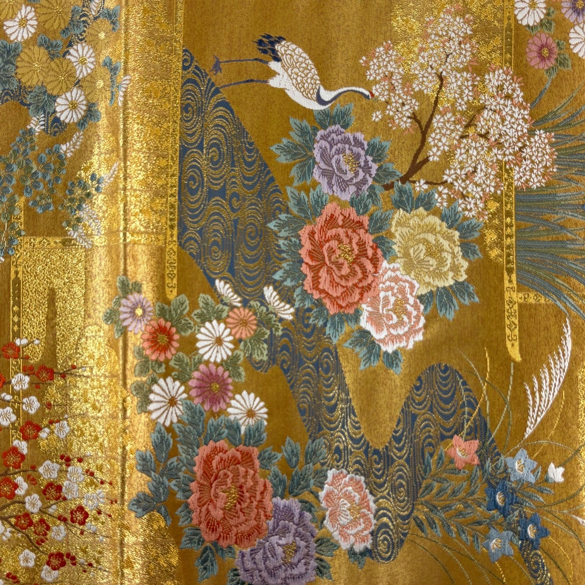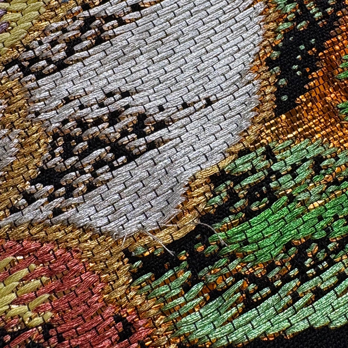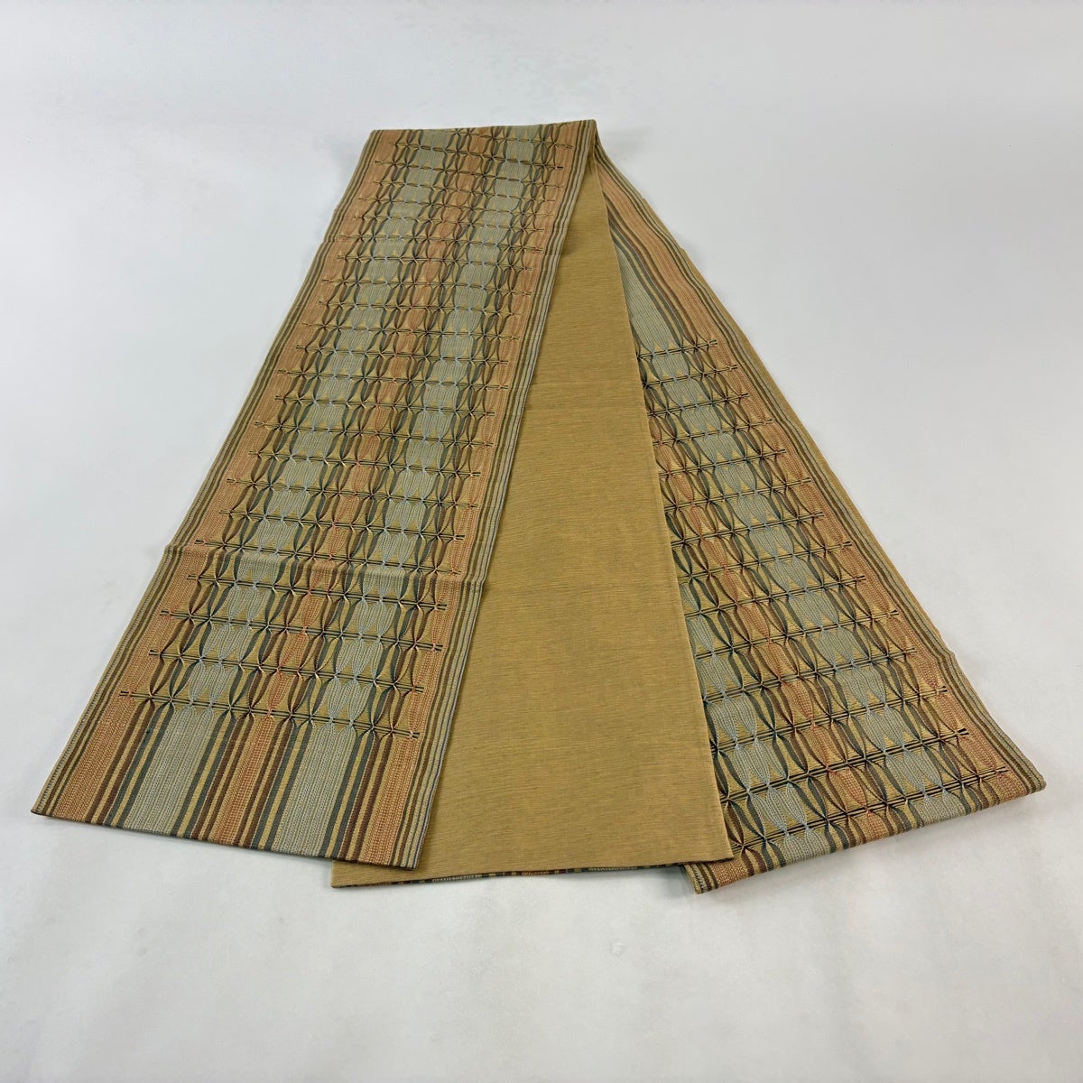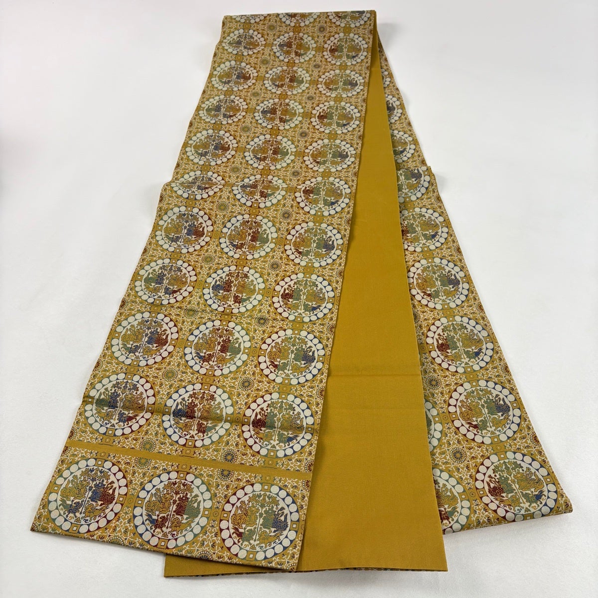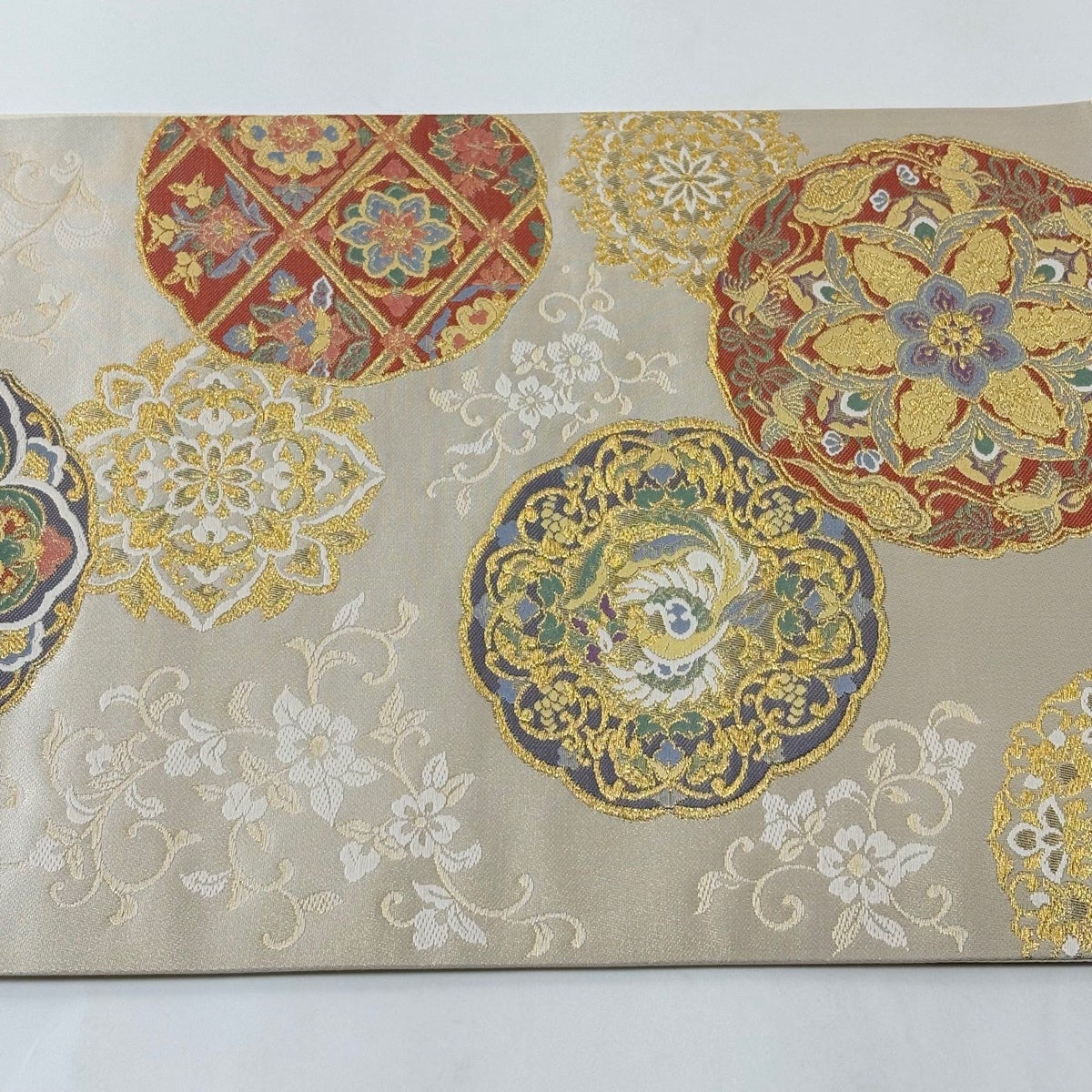 袋帯とは女性用の主にフォーマル用の帯で第一礼装として着用されることが多く、形状は表地にのみ柄があり裏地は無地になるように袋状に織って作成されたため袋帯という名が付きました。 帯を締める際にはおめでたいことが重なりますようにという願いが込められている二重太鼓や成人式の際に振袖に見かけるふくら雀や文庫結びなどの変わり結びを用いて着用します。