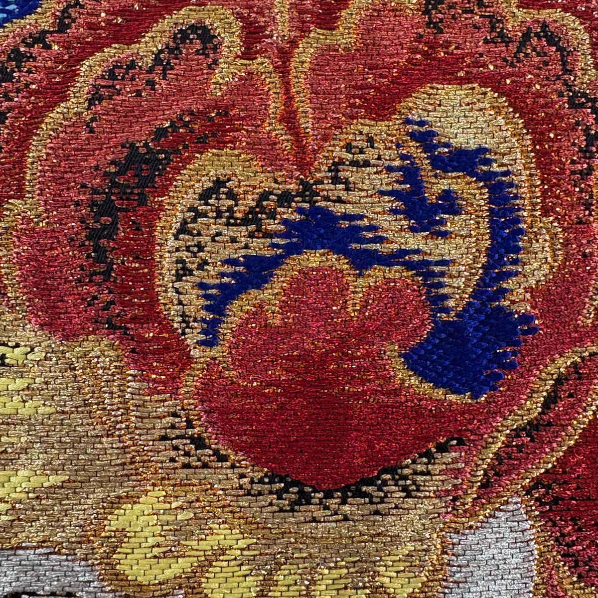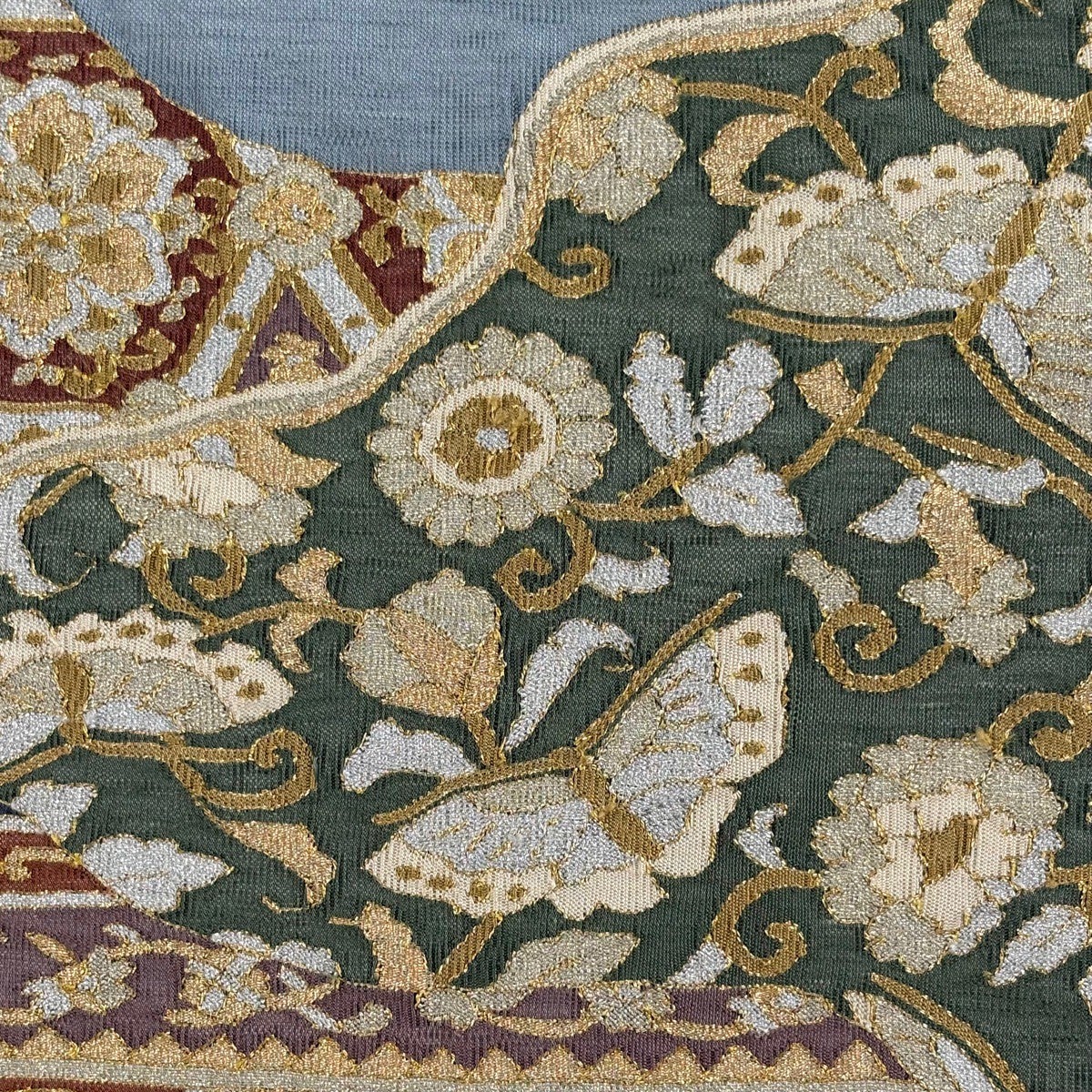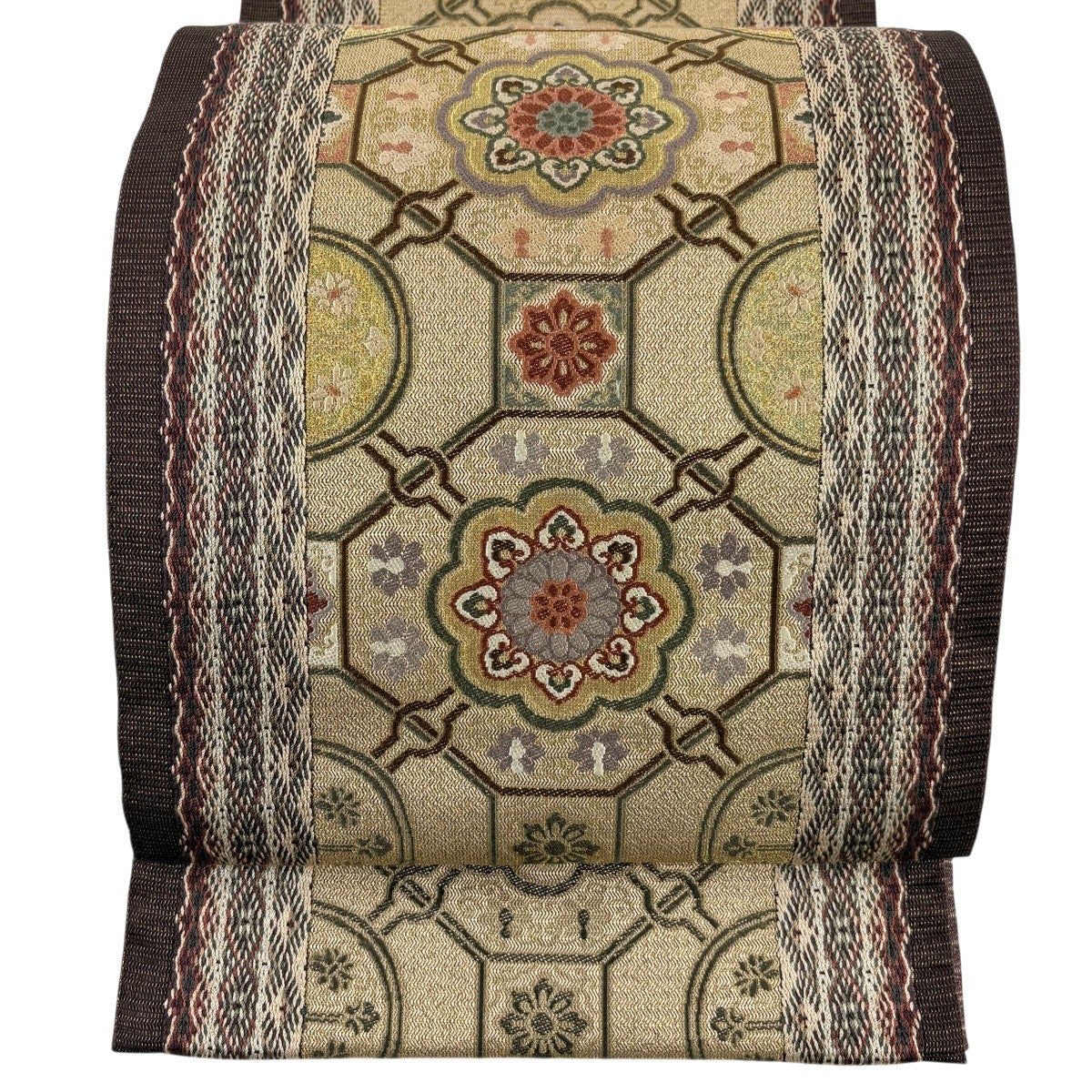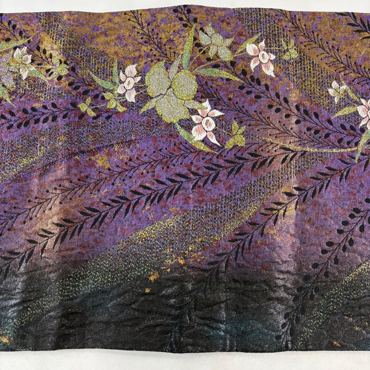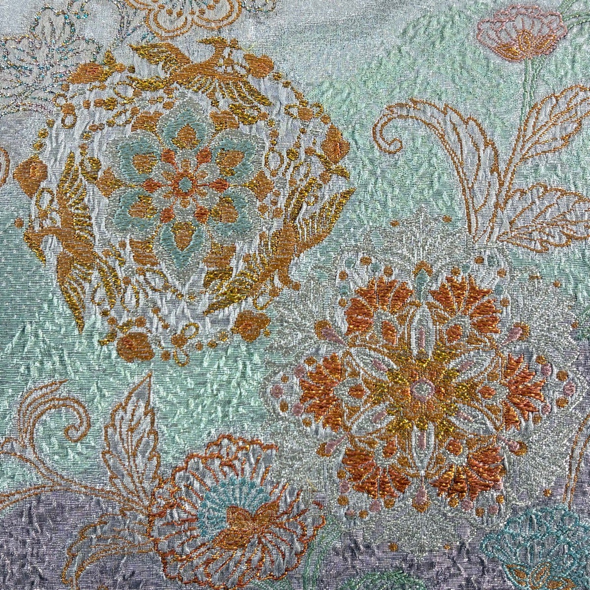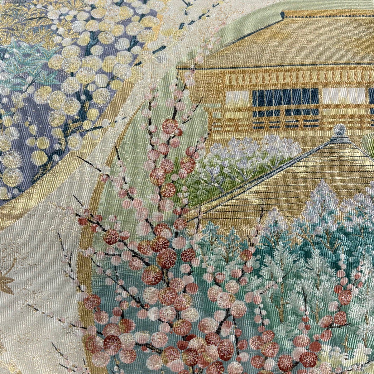 袋帯とは女性用の主にフォーマル用の帯で第一礼装として着用されることが多く、形状は表地にのみ柄があり裏地は無地になるように袋状に織って作成されたため袋帯という名が付きました。 帯を締める際にはおめでたいことが重なりますようにという願いが込められている二重太鼓や成人式の際に振袖に見かけるふくら雀や文庫結びなどの変わり結びを用いて着用します。