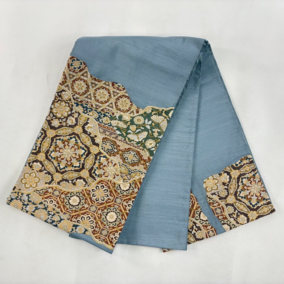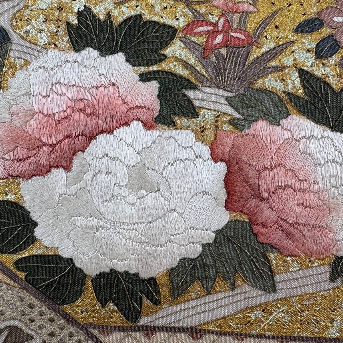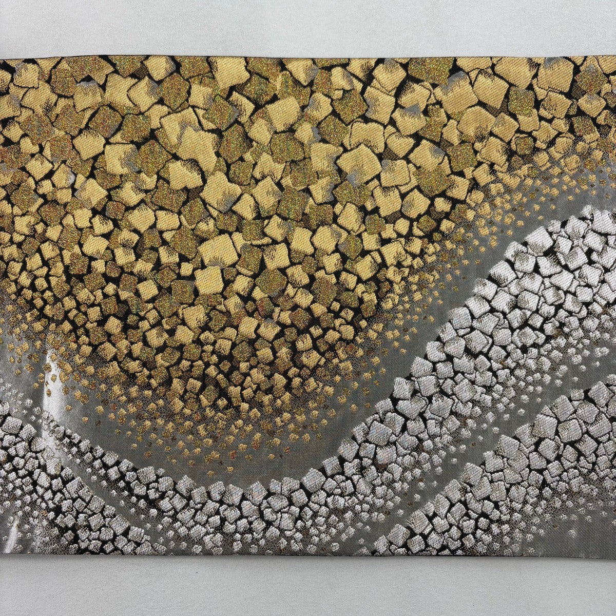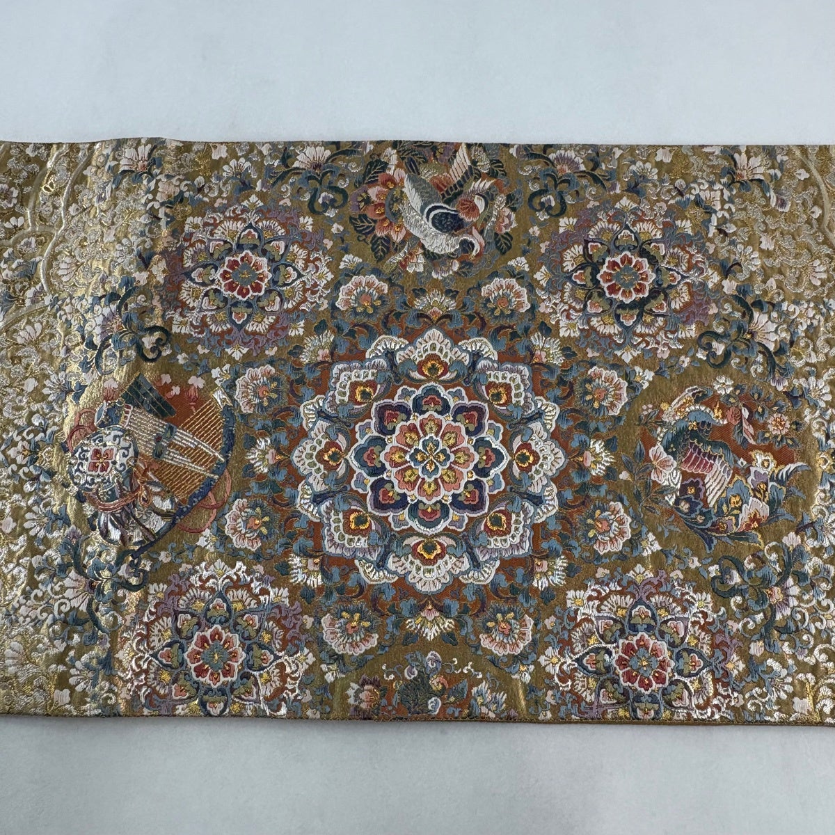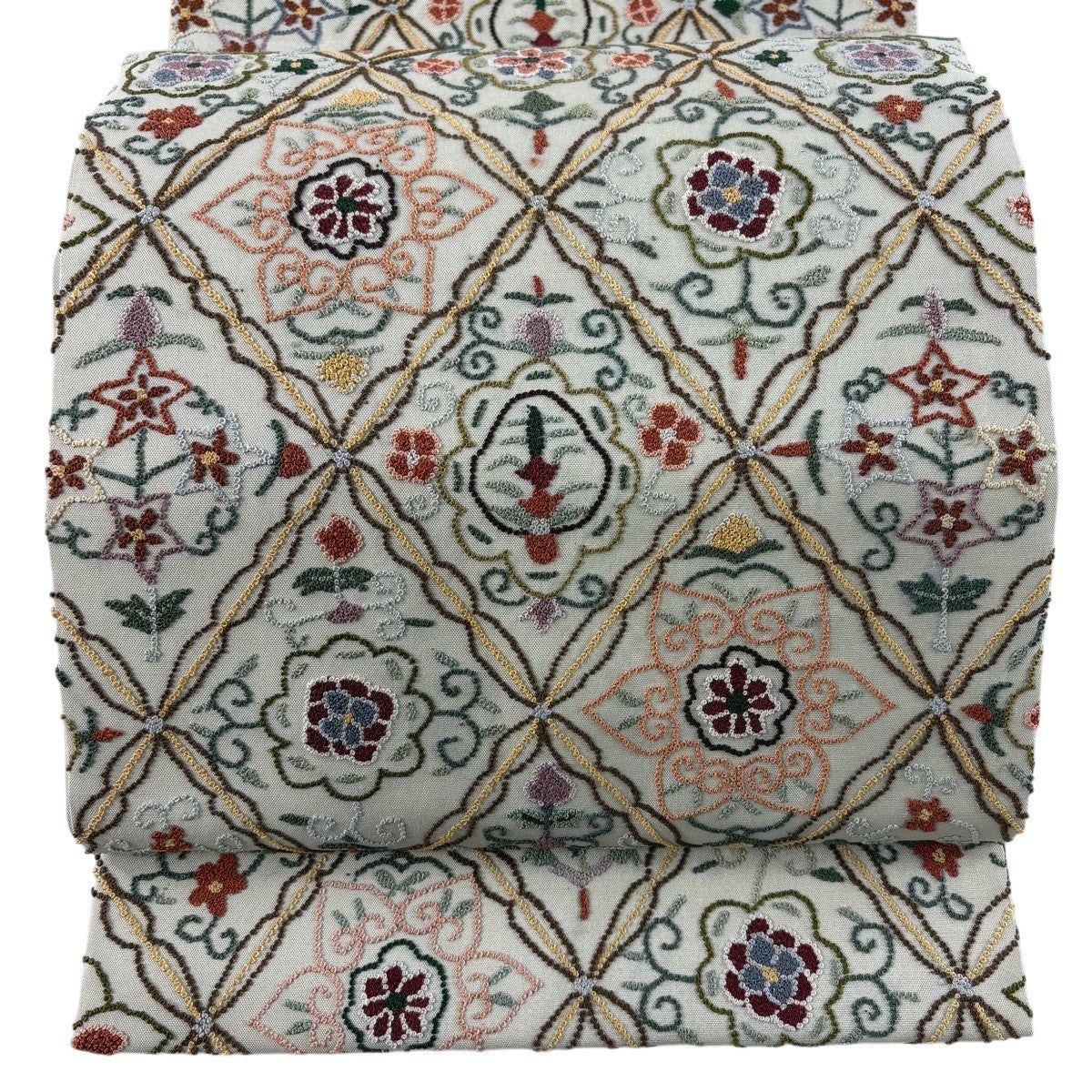 袋帯とは女性用の主にフォーマル用の帯で第一礼装として着用されることが多く、形状は表地にのみ柄があり裏地は無地になるように袋状に織って作成されたため袋帯という名が付きました。 帯を締める際にはおめでたいことが重なりますようにという願いが込められている二重太鼓や成人式の際に振袖に見かけるふくら雀や文庫結びなどの変わり結びを用いて着用します。