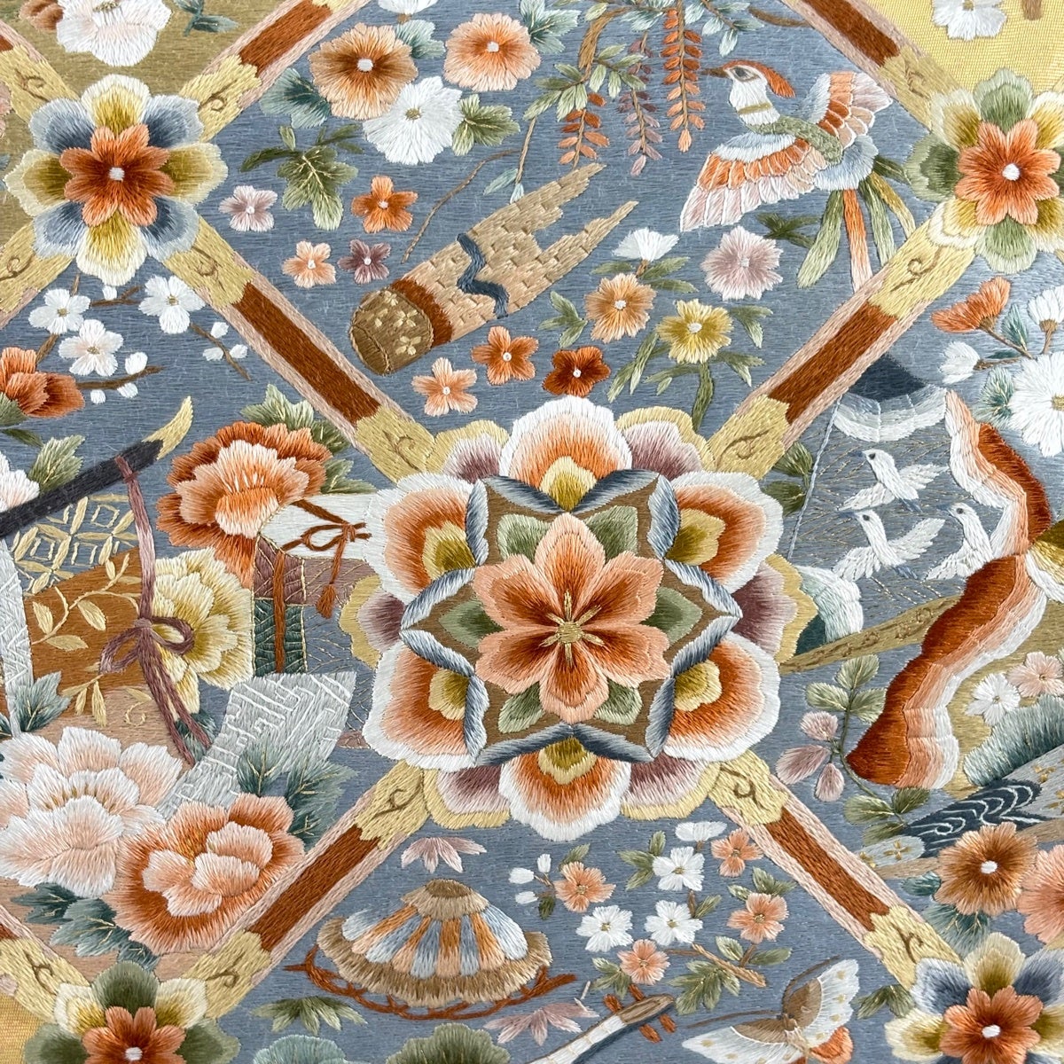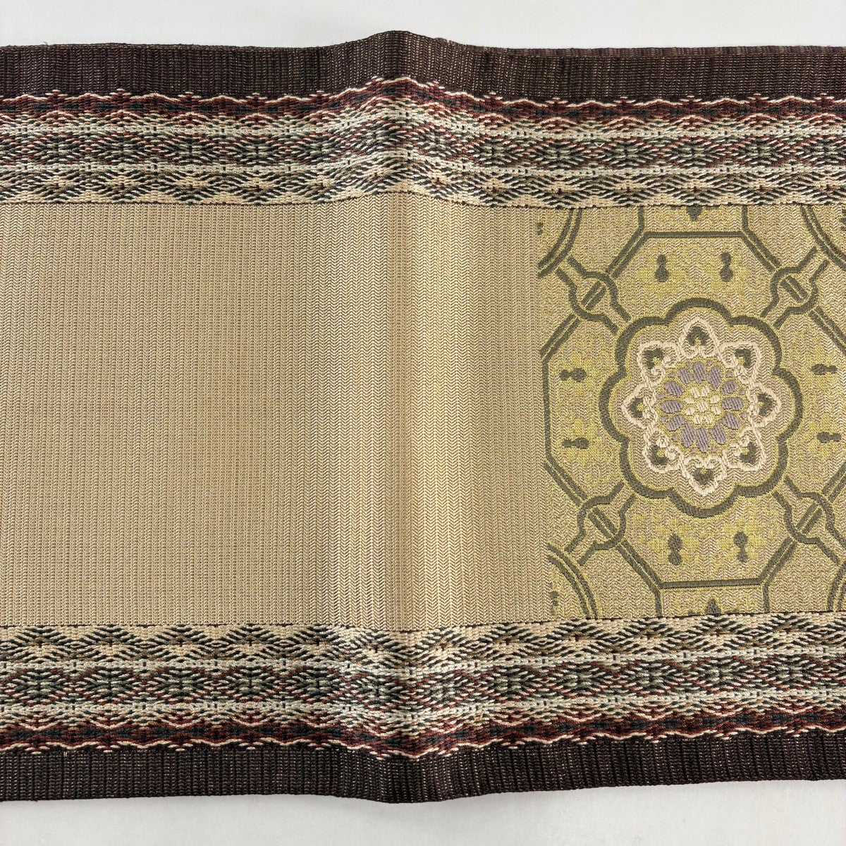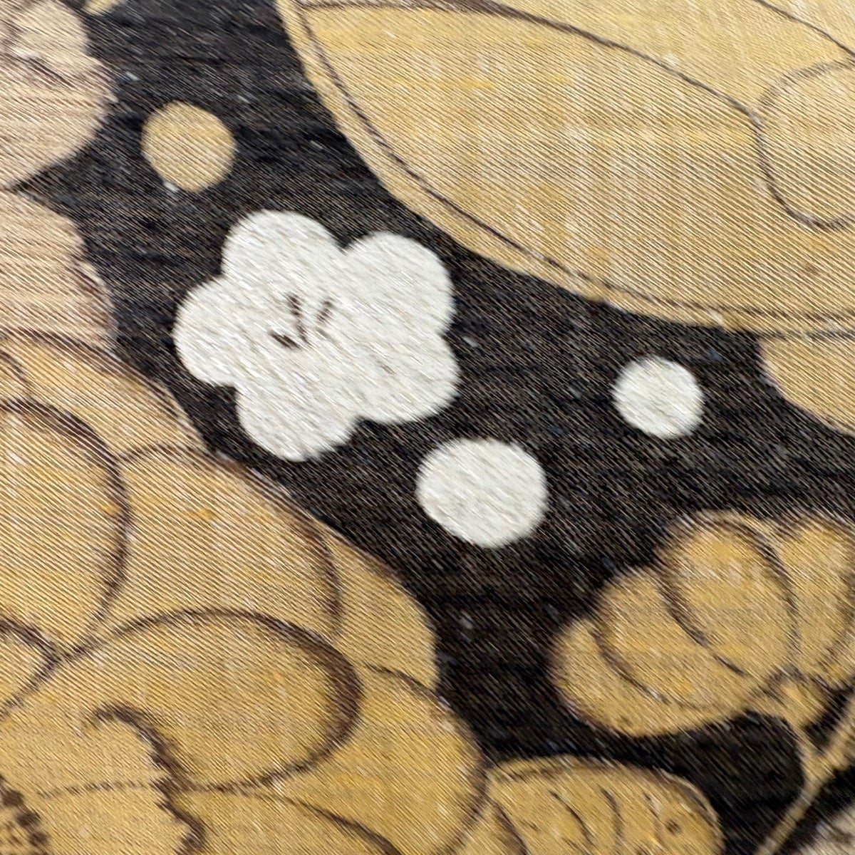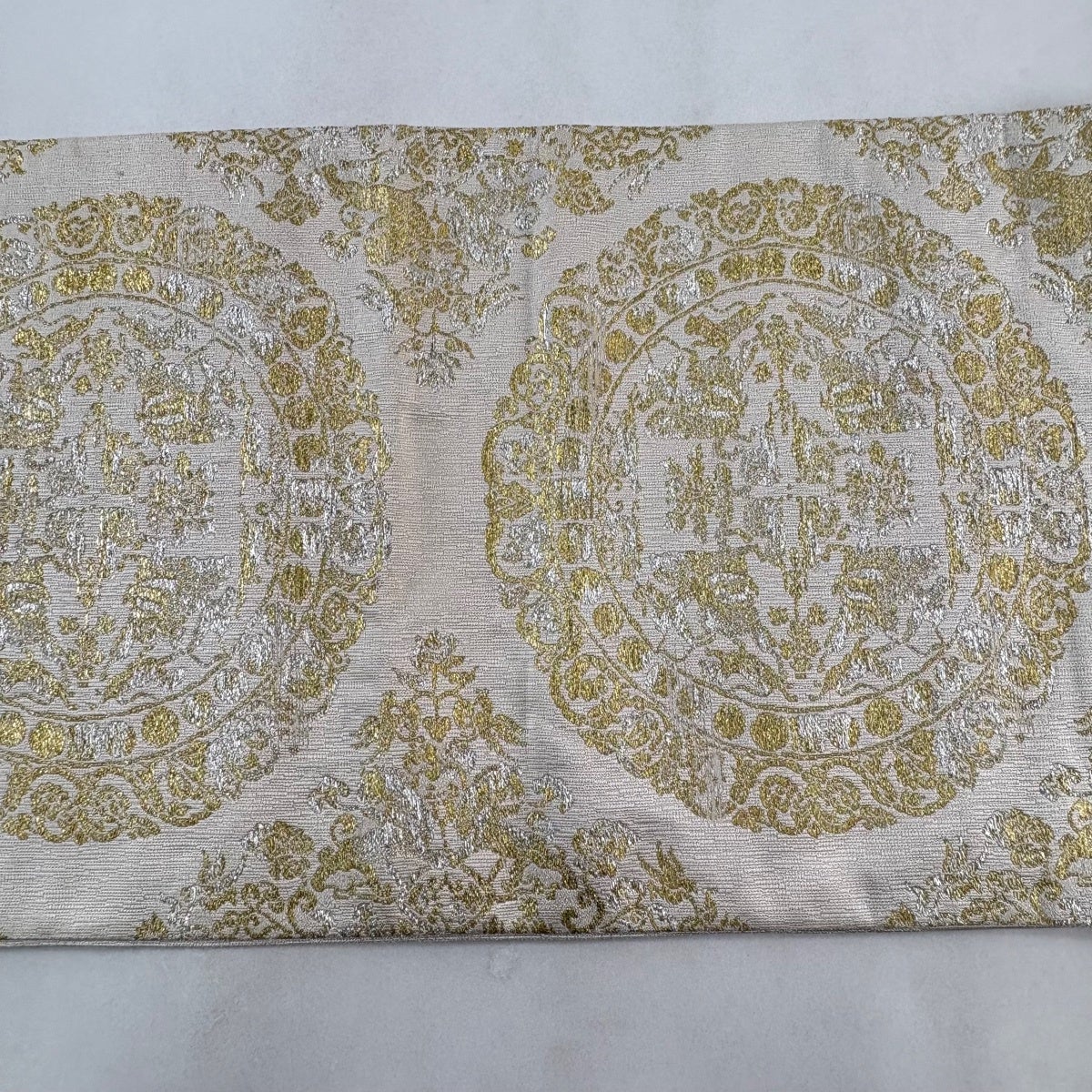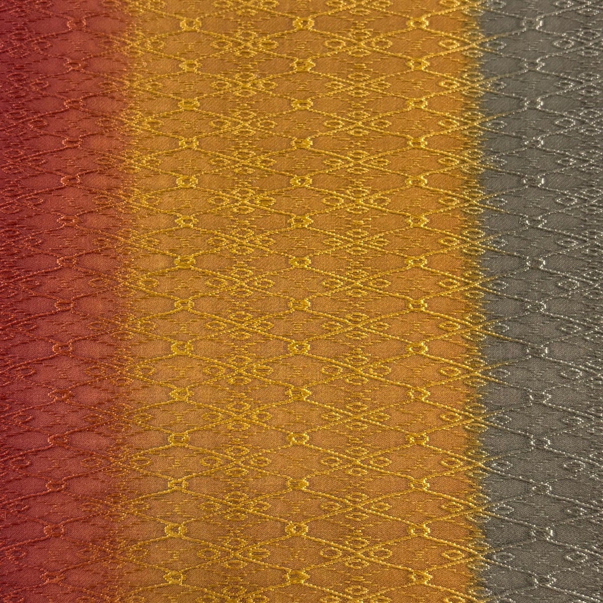 袋帯とは女性用の主にフォーマル用の帯で第一礼装として着用されることが多く、形状は表地にのみ柄があり裏地は無地になるように袋状に織って作成されたため袋帯という名が付きました。 帯を締める際にはおめでたいことが重なりますようにという願いが込められている二重太鼓や成人式の際に振袖に見かけるふくら雀や文庫結びなどの変わり結びを用いて着用します。