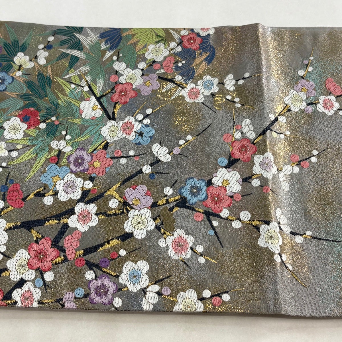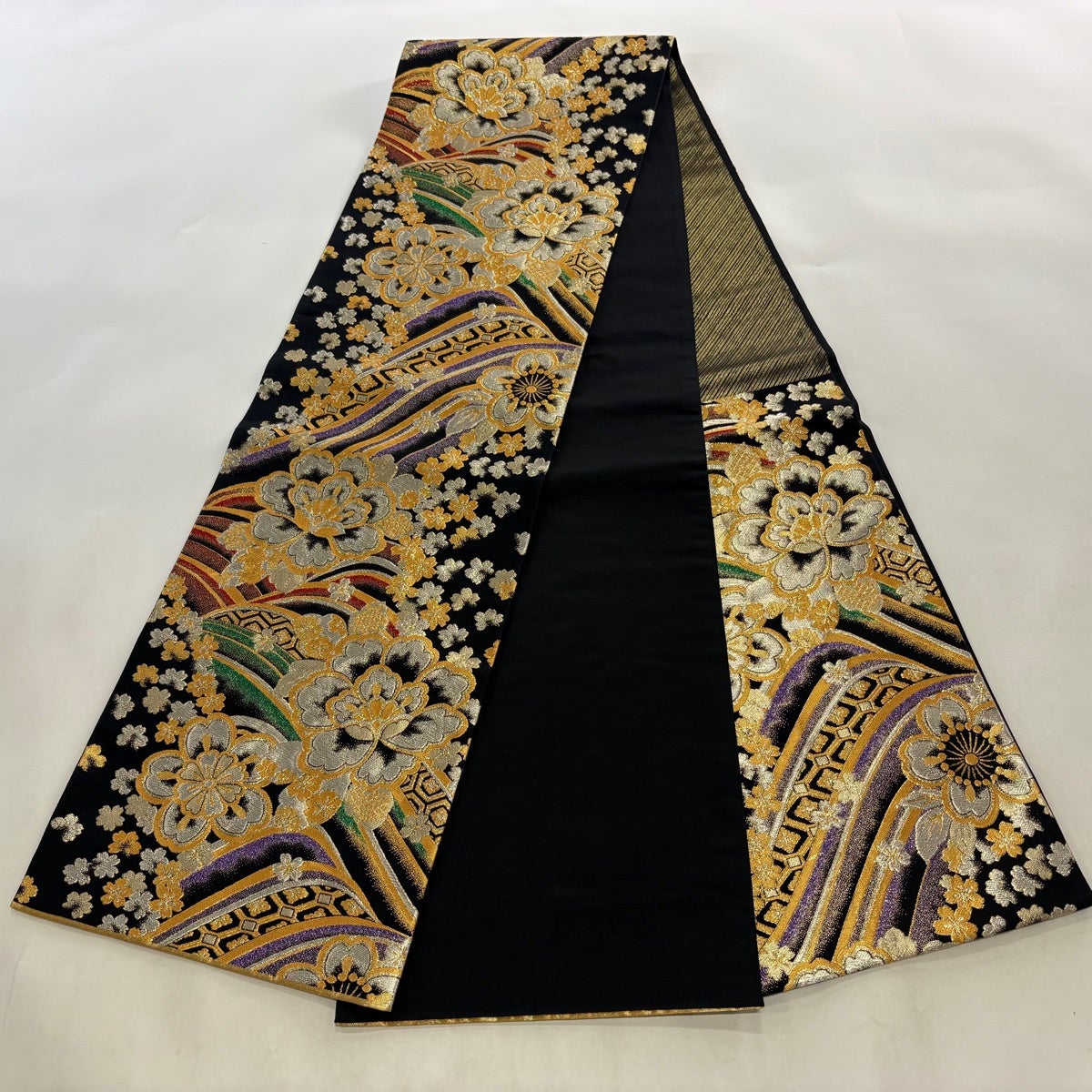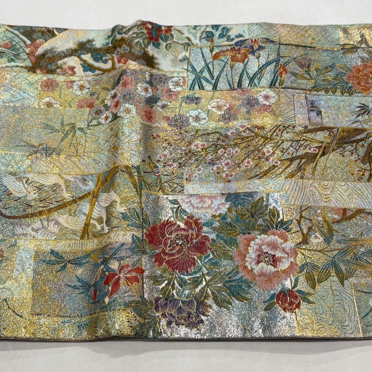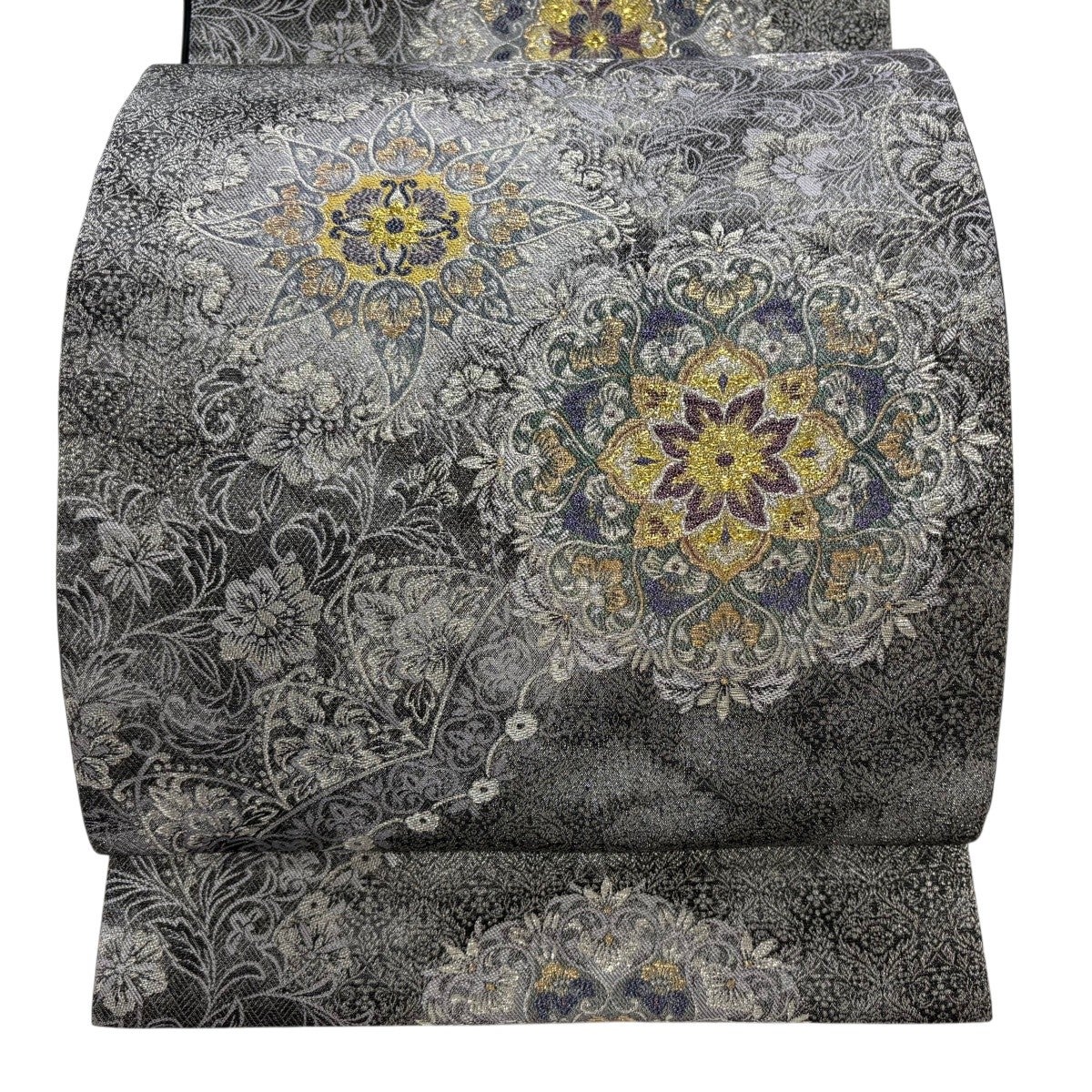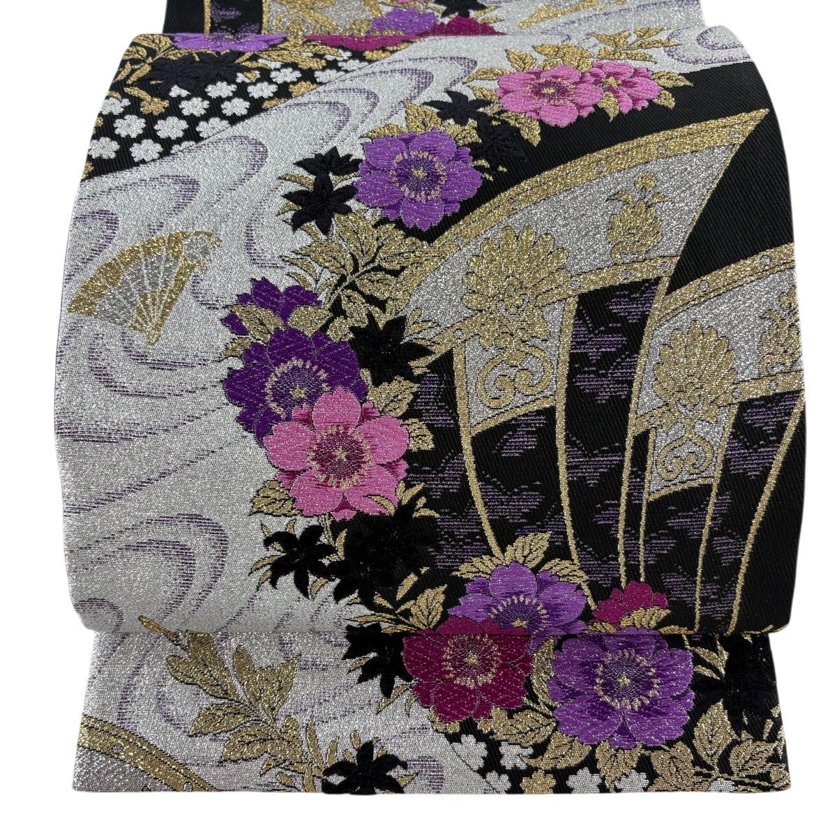 袋帯とは女性用の主にフォーマル用の帯で第一礼装として着用されることが多く、形状は表地にのみ柄があり裏地は無地になるように袋状に織って作成されたため袋帯という名が付きました。 帯を締める際にはおめでたいことが重なりますようにという願いが込められている二重太鼓や成人式の際に振袖に見かけるふくら雀や文庫結びなどの変わり結びを用いて着用します。