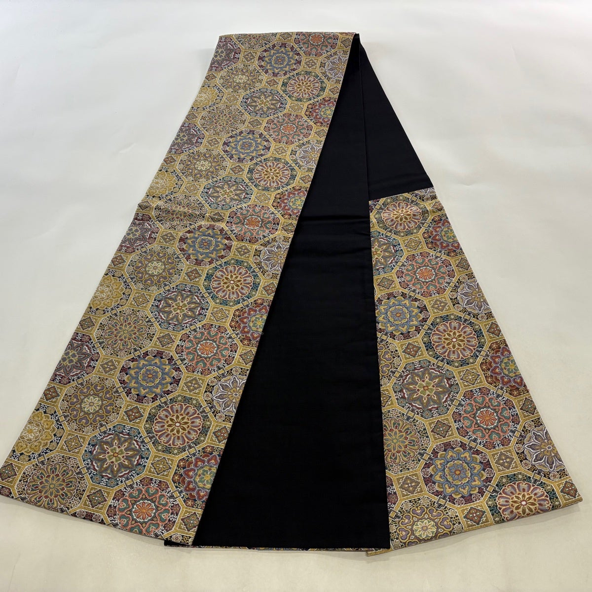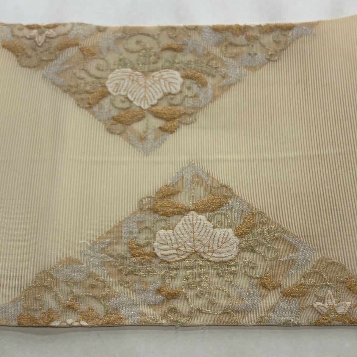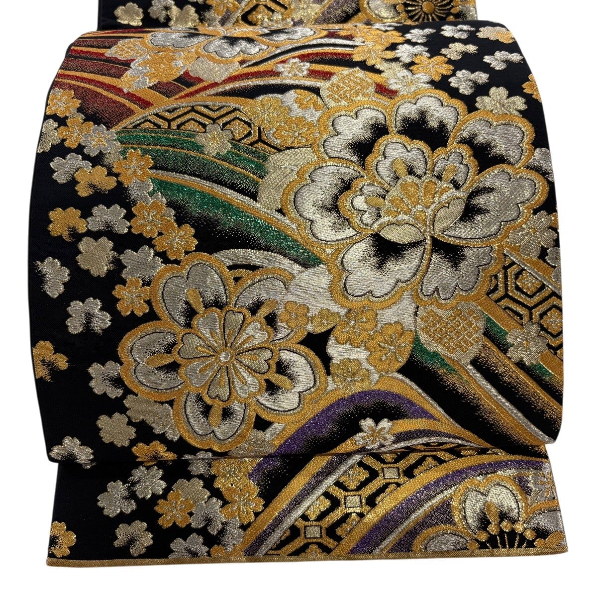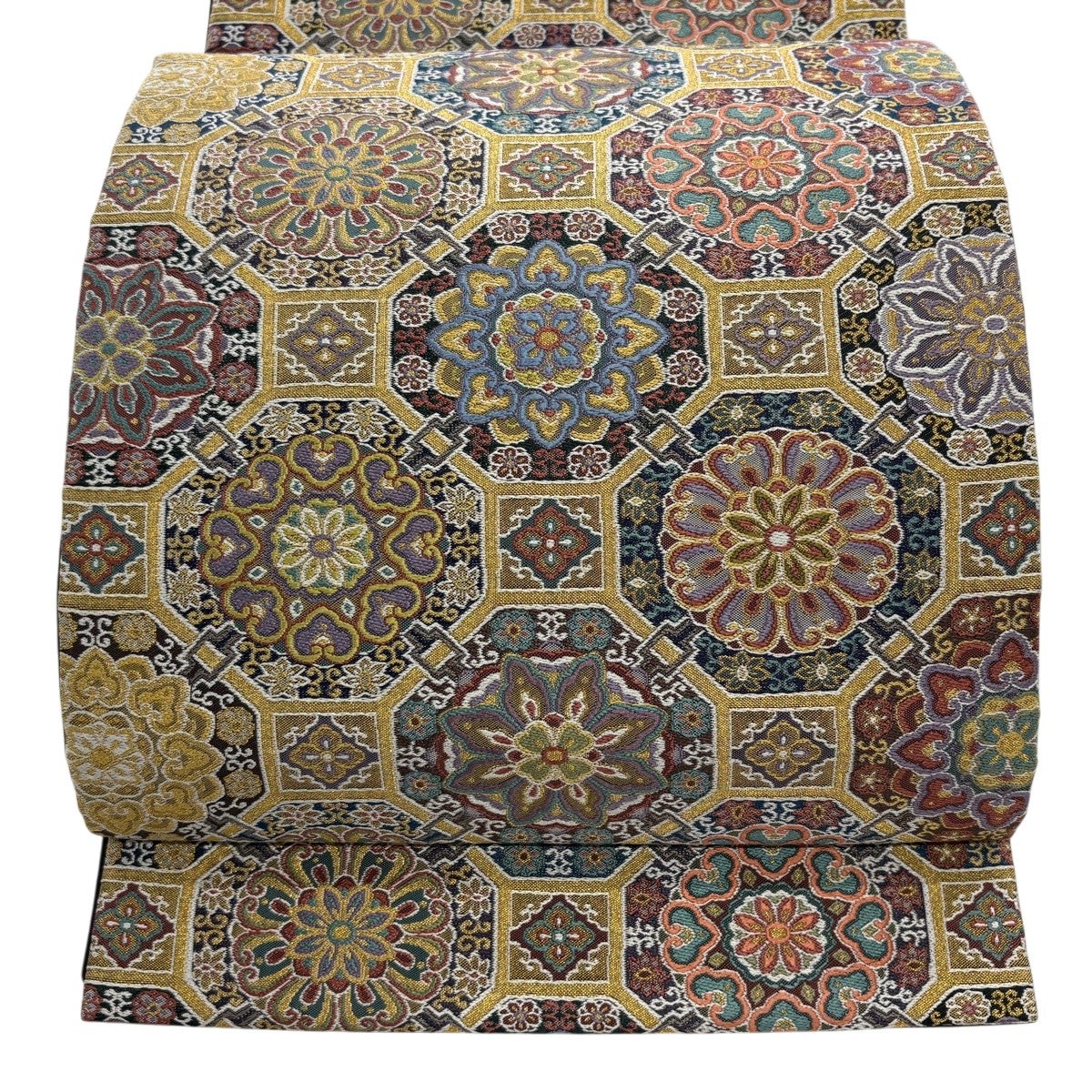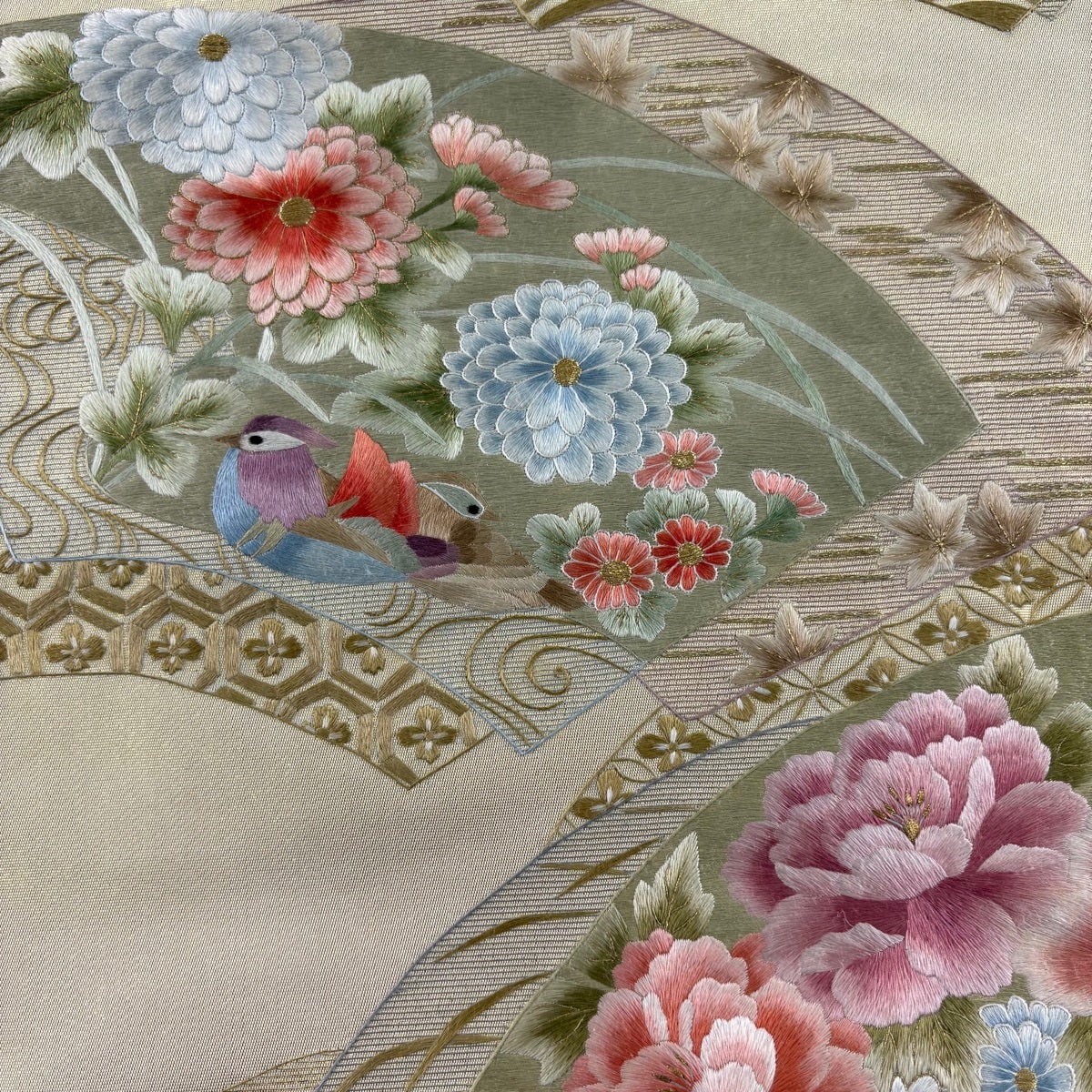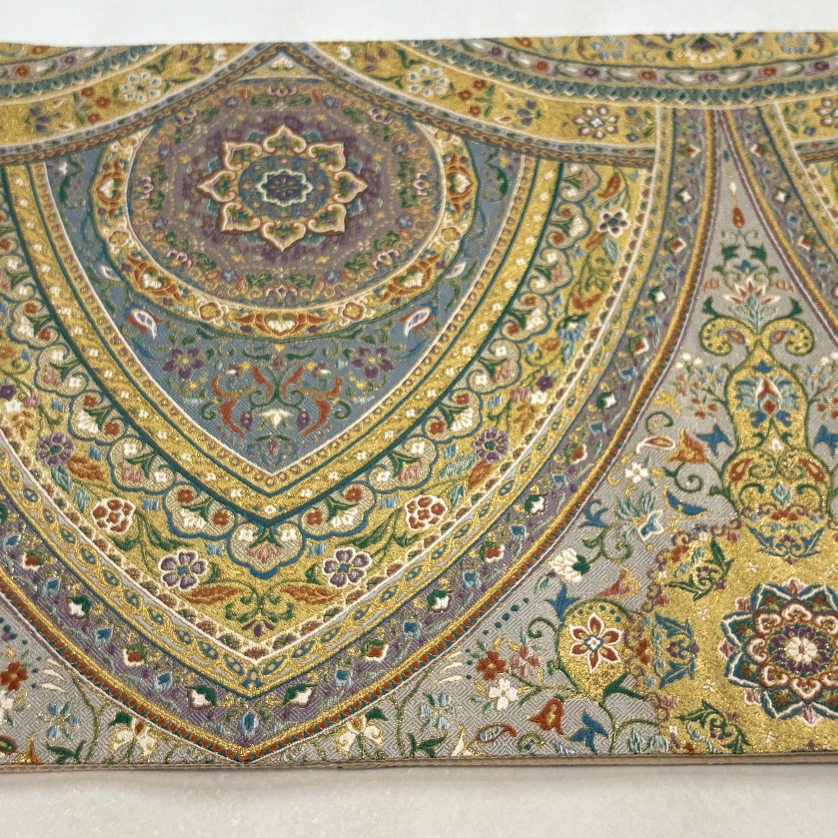 袋帯とは女性用の主にフォーマル用の帯で第一礼装として着用されることが多く、形状は表地にのみ柄があり裏地は無地になるように袋状に織って作成されたため袋帯という名が付きました。 帯を締める際にはおめでたいことが重なりますようにという願いが込められている二重太鼓や成人式の際に振袖に見かけるふくら雀や文庫結びなどの変わり結びを用いて着用します。