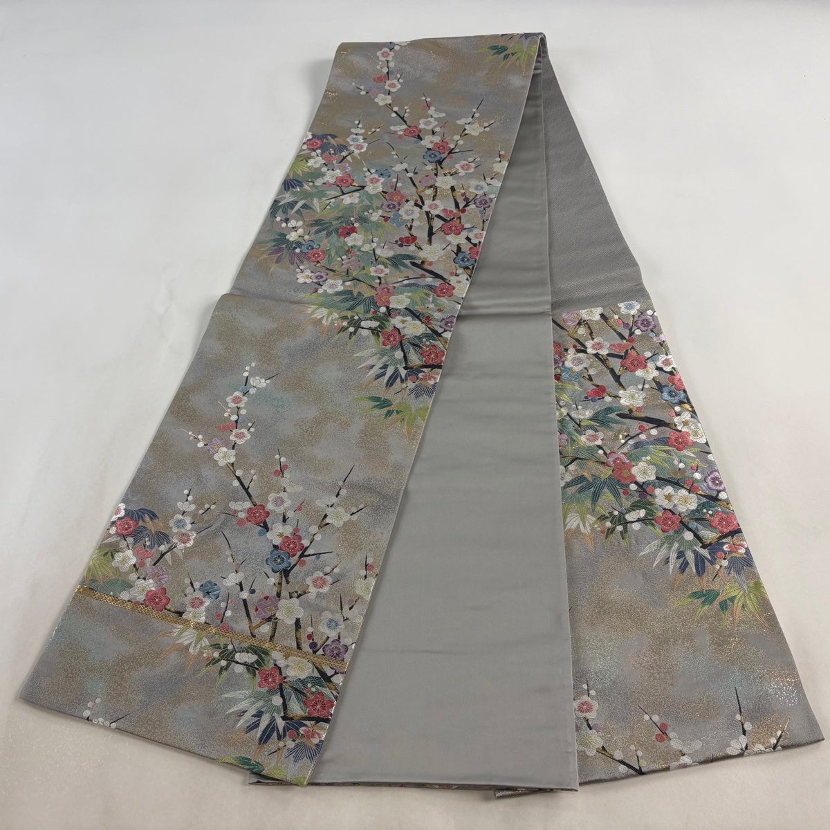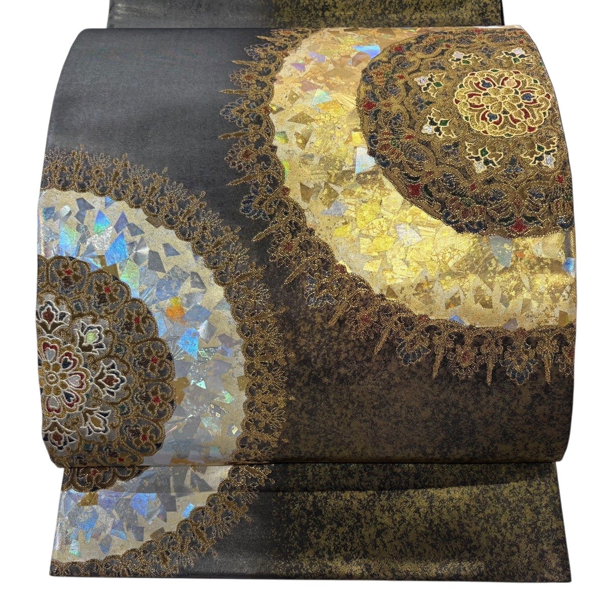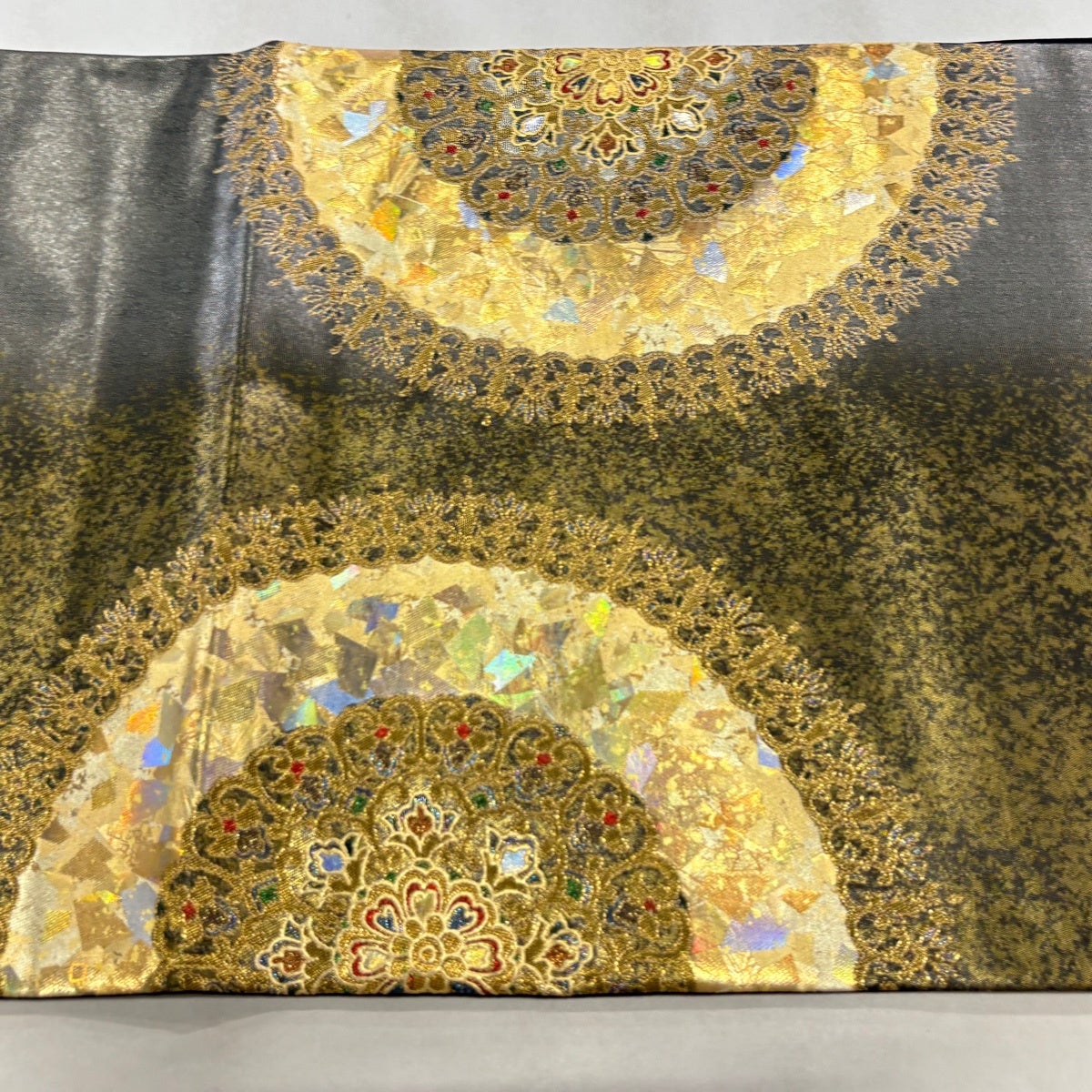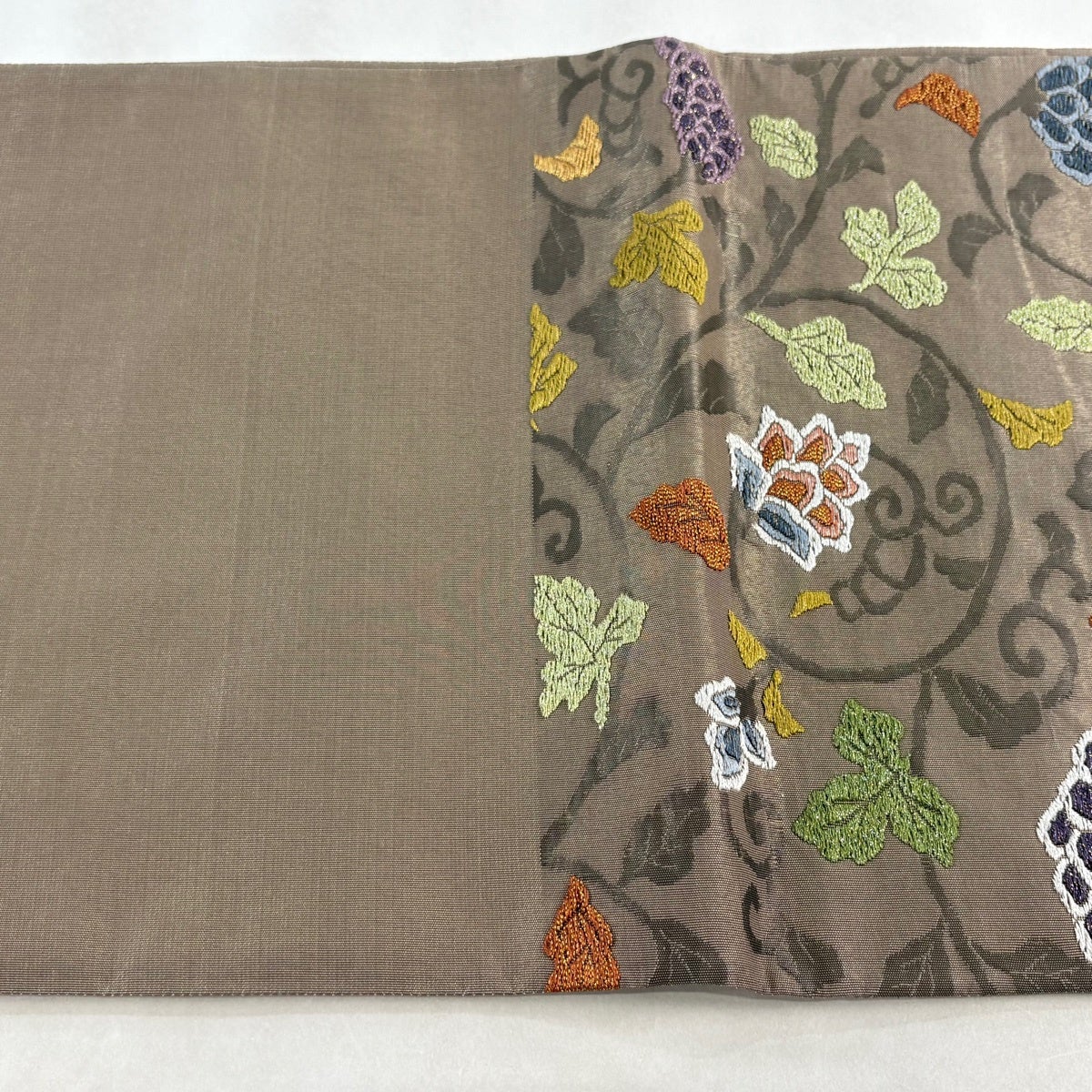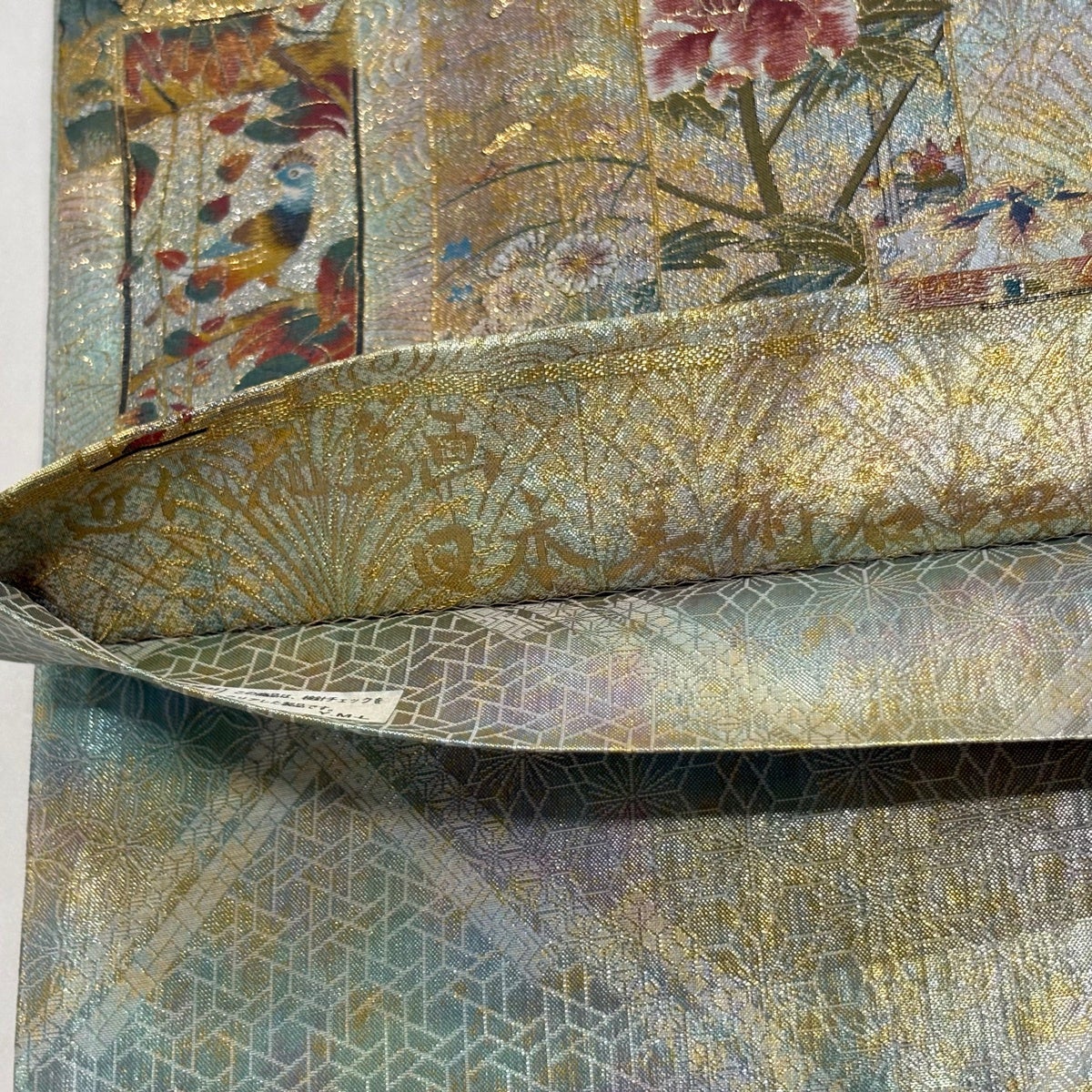 袋帯とは女性用の主にフォーマル用の帯で第一礼装として着用されることが多く、形状は表地にのみ柄があり裏地は無地になるように袋状に織って作成されたため袋帯という名が付きました。 帯を締める際にはおめでたいことが重なりますようにという願いが込められている二重太鼓や成人式の際に振袖に見かけるふくら雀や文庫結びなどの変わり結びを用いて着用します。
