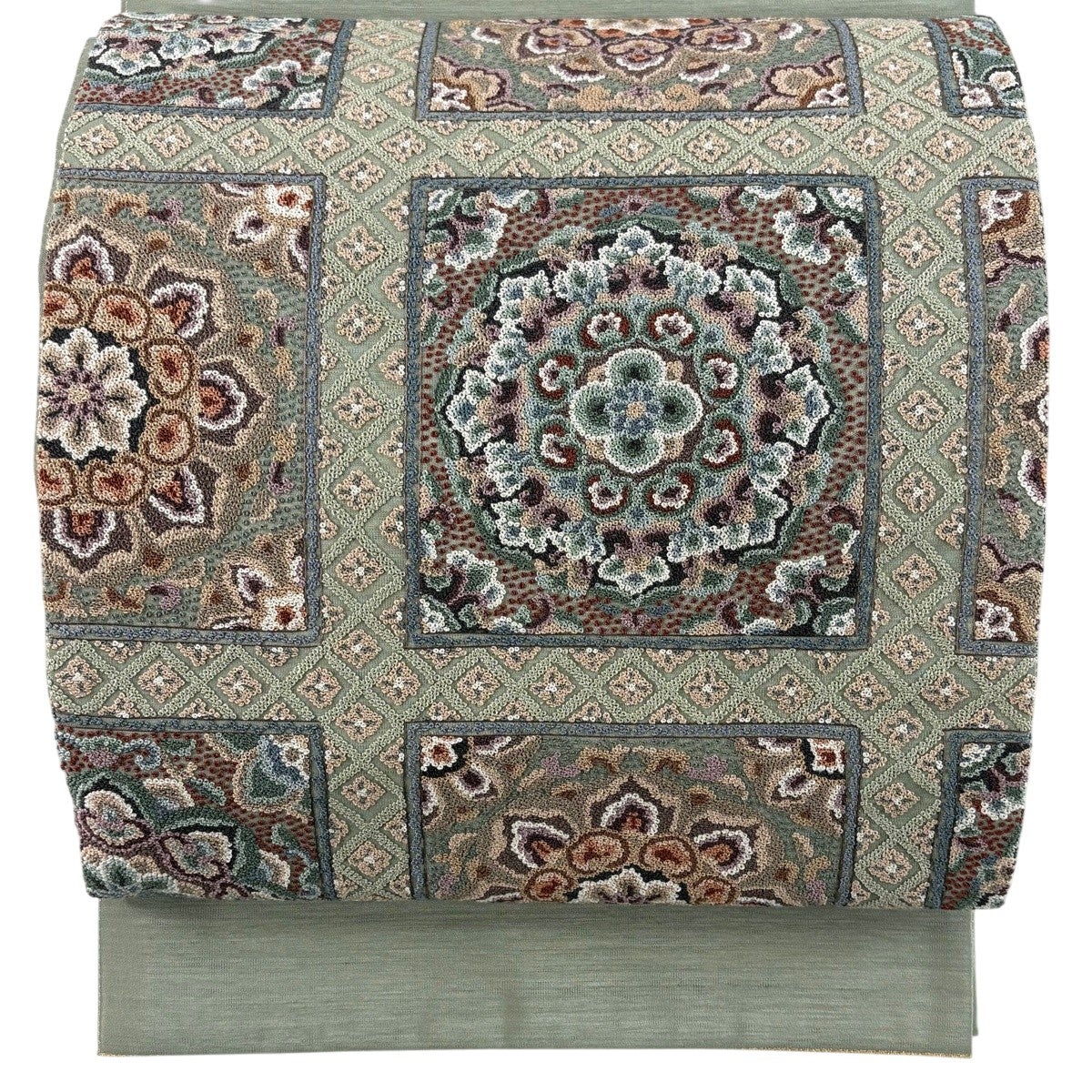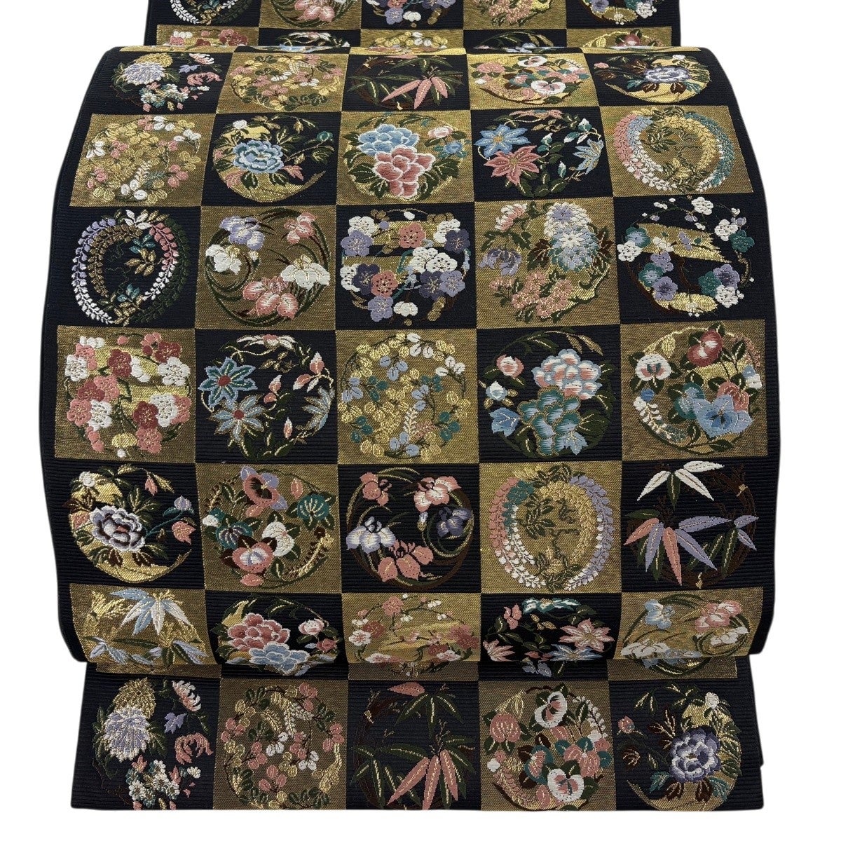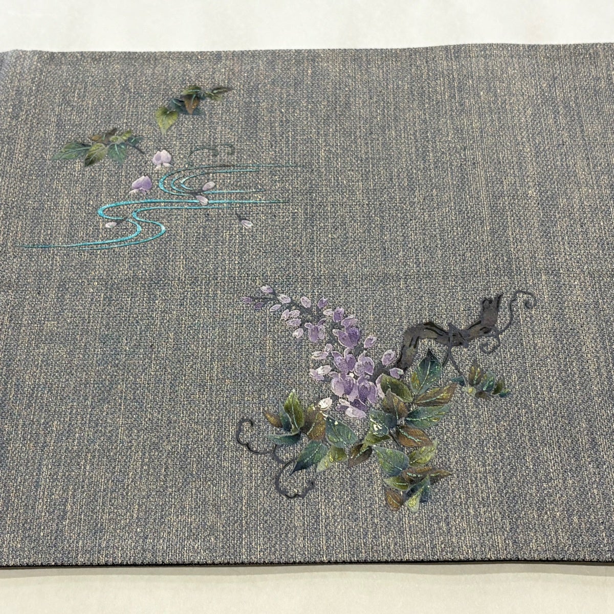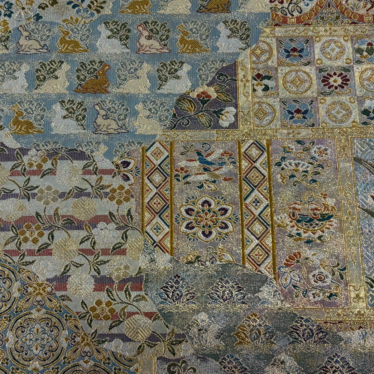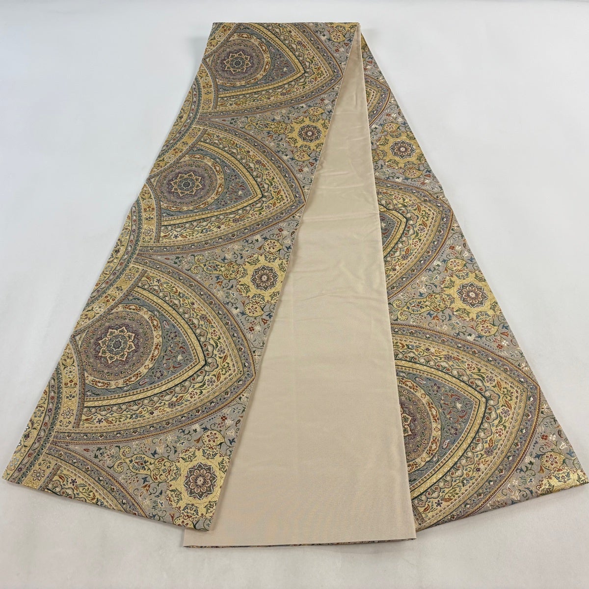 袋帯とは女性用の主にフォーマル用の帯で第一礼装として着用されることが多く、形状は表地にのみ柄があり裏地は無地になるように袋状に織って作成されたため袋帯という名が付きました。 帯を締める際にはおめでたいことが重なりますようにという願いが込められている二重太鼓や成人式の際に振袖に見かけるふくら雀や文庫結びなどの変わり結びを用いて着用します。