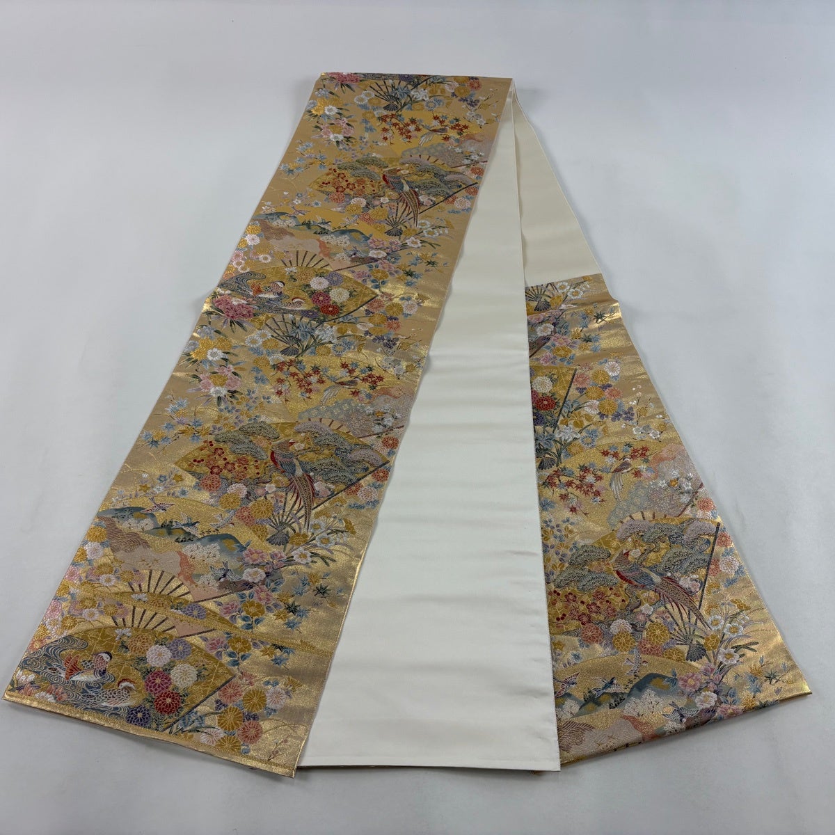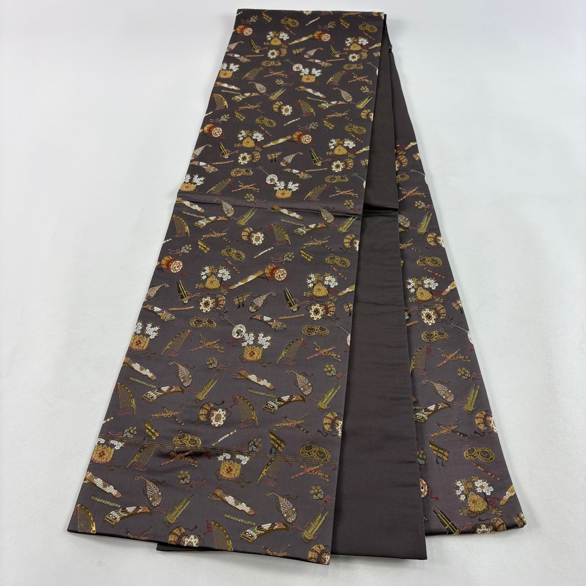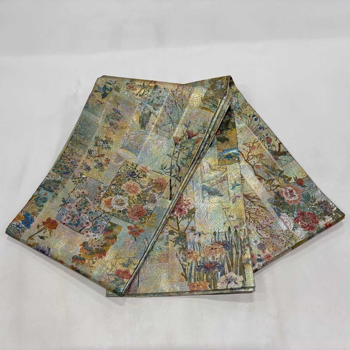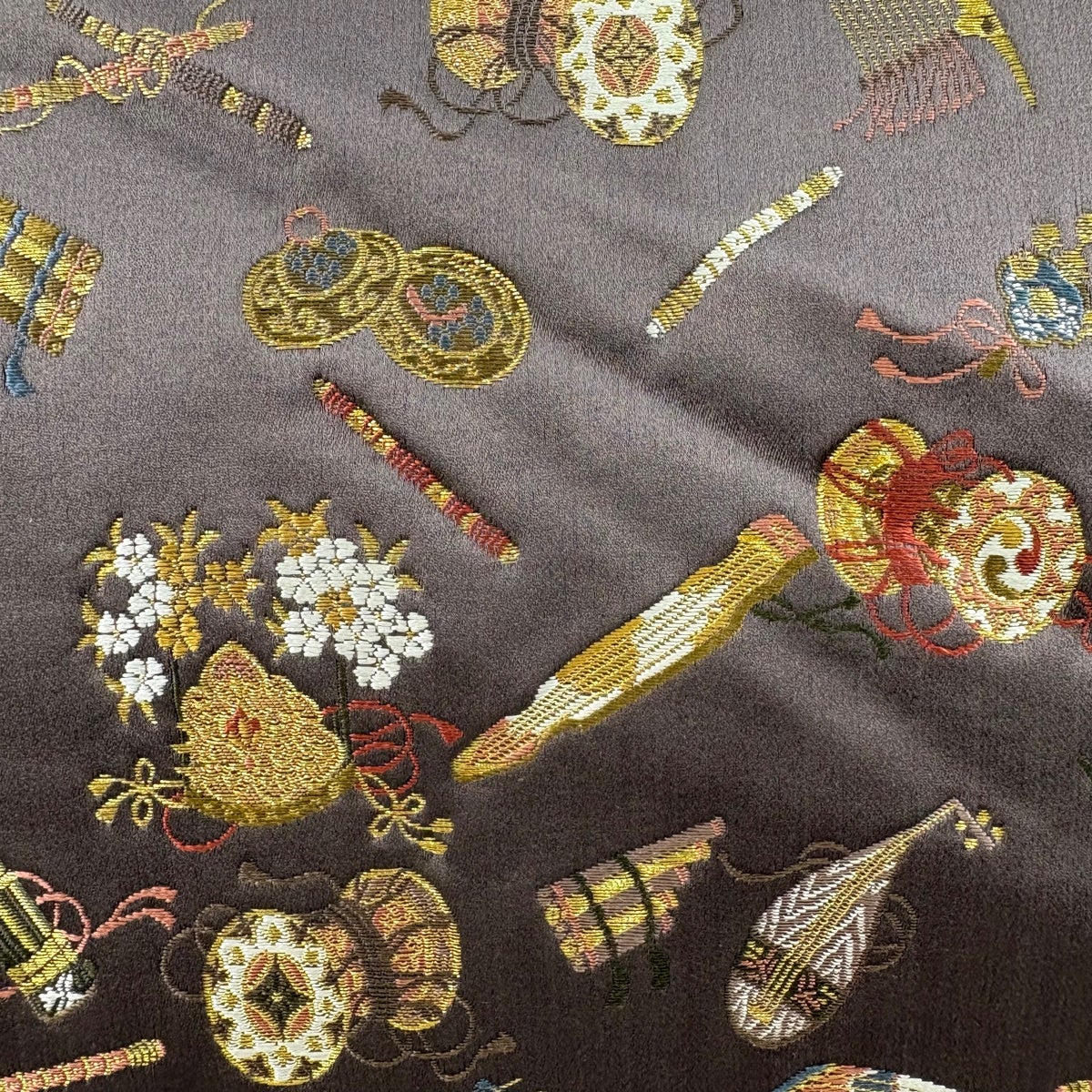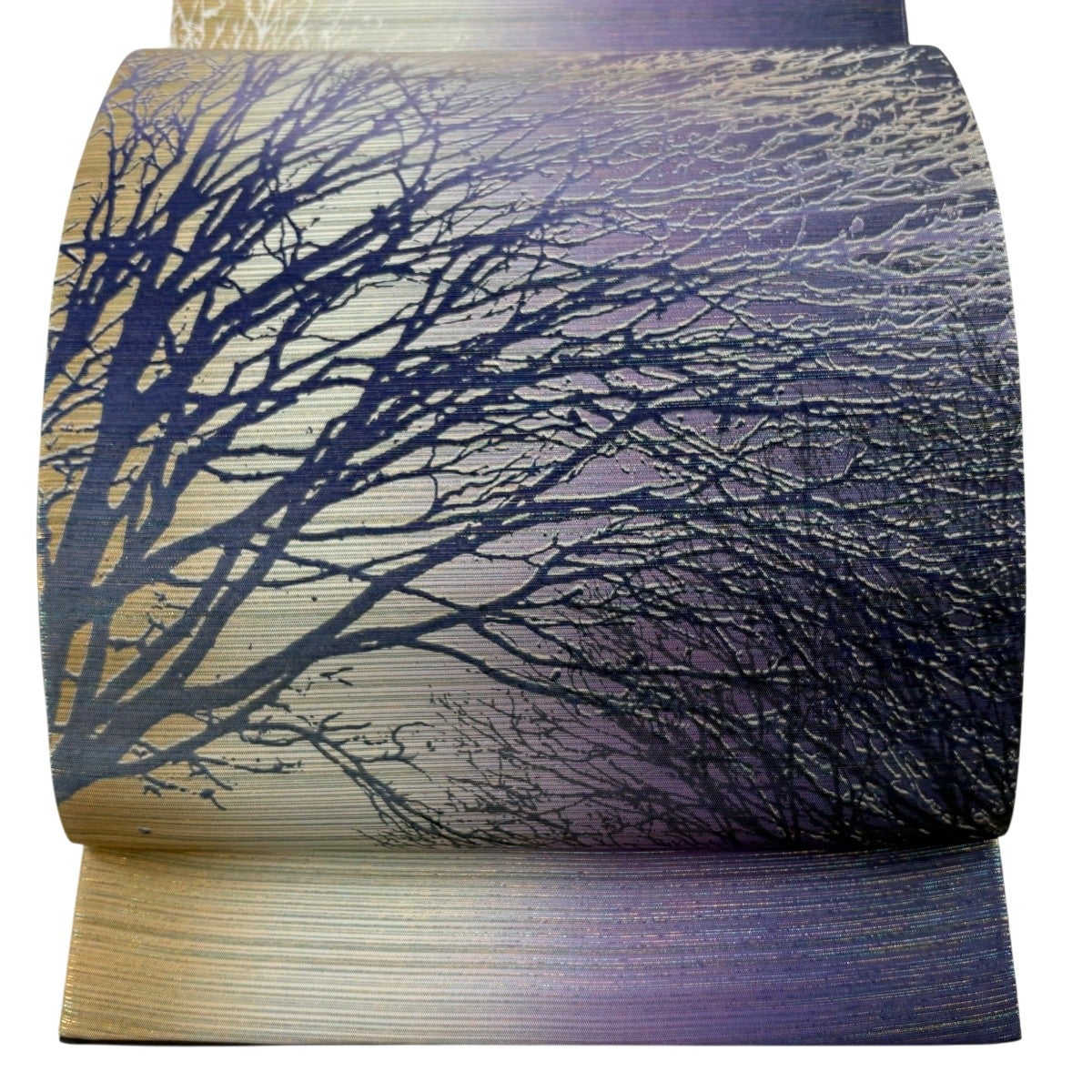 袋帯とは女性用の主にフォーマル用の帯で第一礼装として着用されることが多く、形状は表地にのみ柄があり裏地は無地になるように袋状に織って作成されたため袋帯という名が付きました。 帯を締める際にはおめでたいことが重なりますようにという願いが込められている二重太鼓や成人式の際に振袖に見かけるふくら雀や文庫結びなどの変わり結びを用いて着用します。