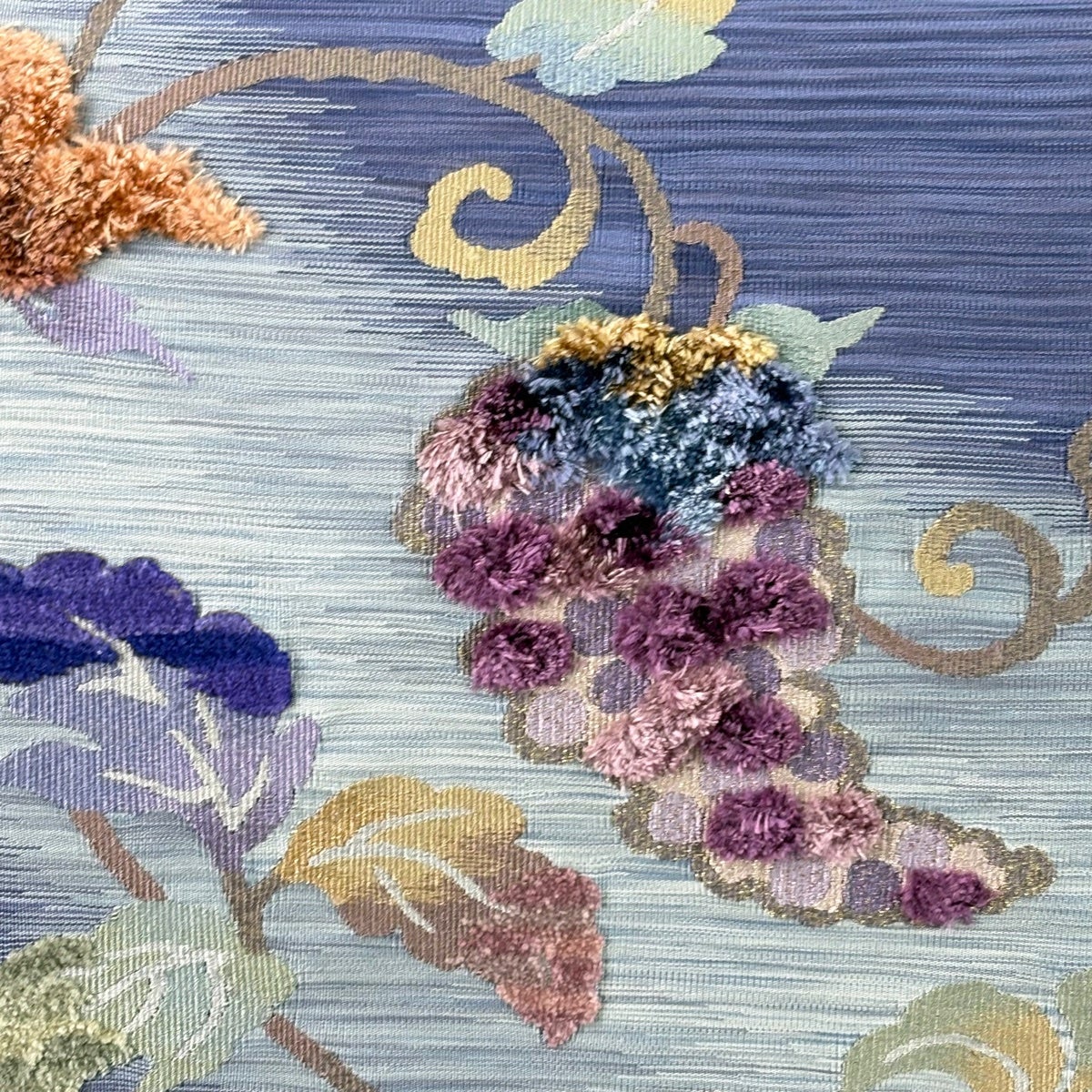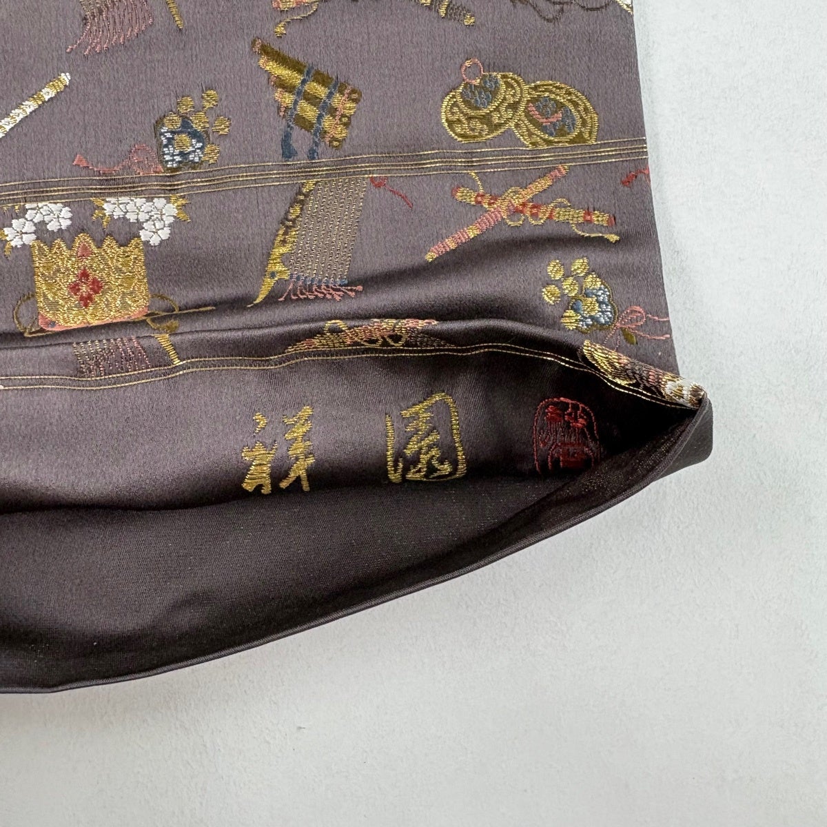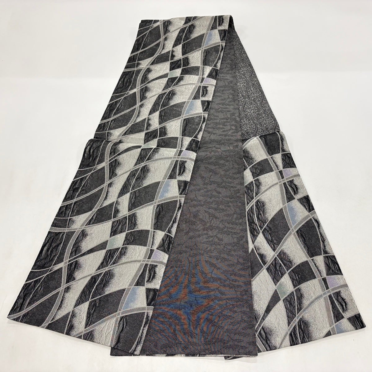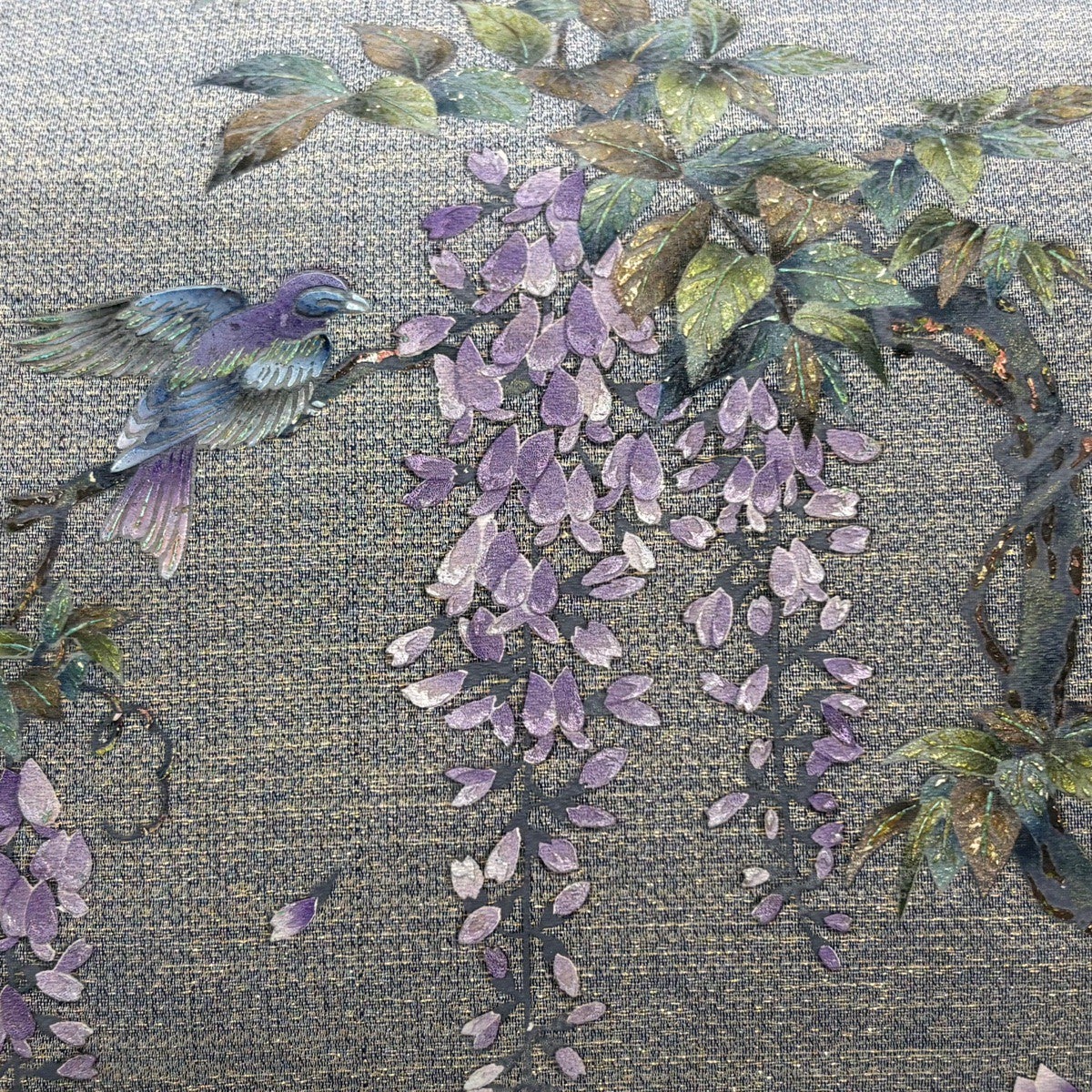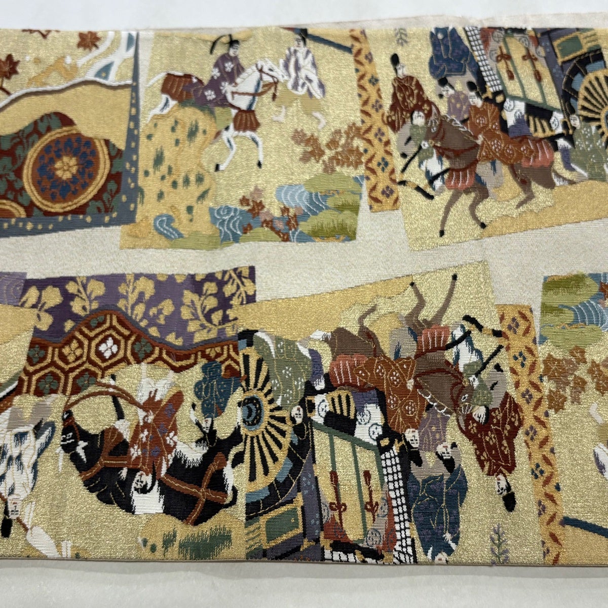 袋帯とは女性用の主にフォーマル用の帯で第一礼装として着用されることが多く、形状は表地にのみ柄があり裏地は無地になるように袋状に織って作成されたため袋帯という名が付きました。 帯を締める際にはおめでたいことが重なりますようにという願いが込められている二重太鼓や成人式の際に振袖に見かけるふくら雀や文庫結びなどの変わり結びを用いて着用します。