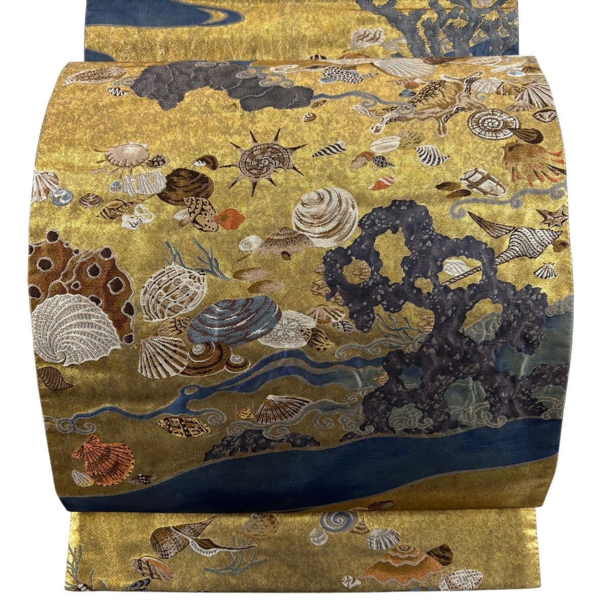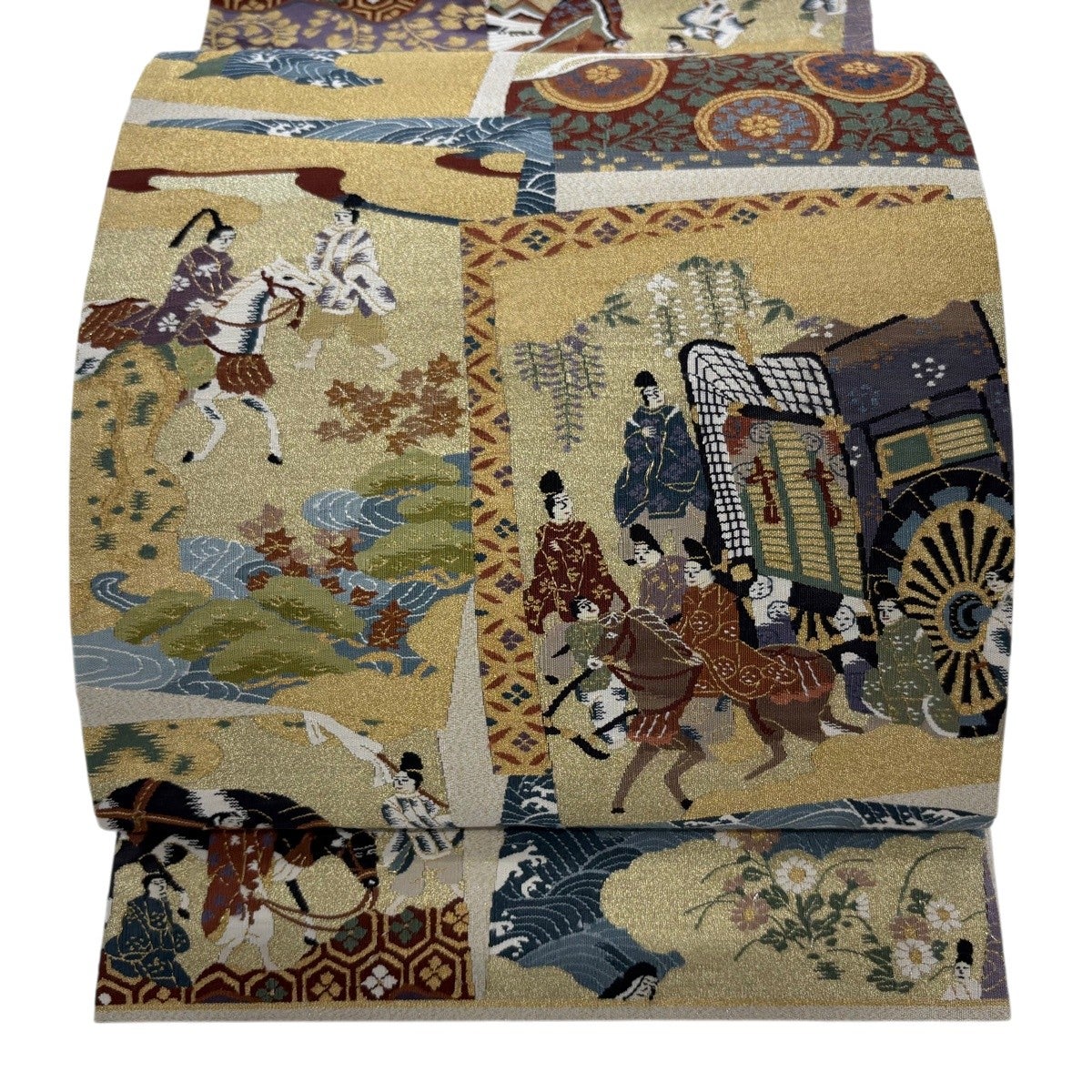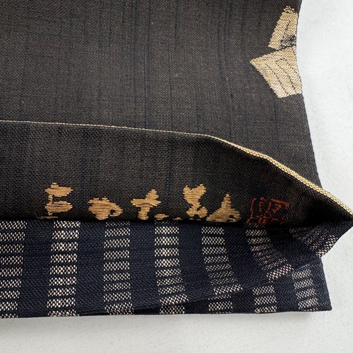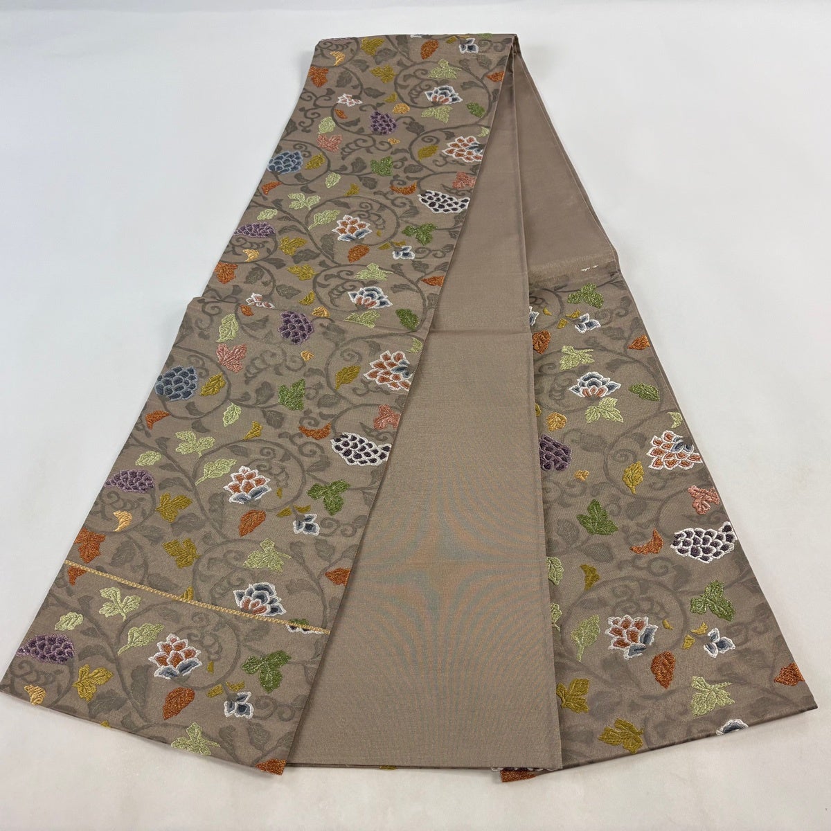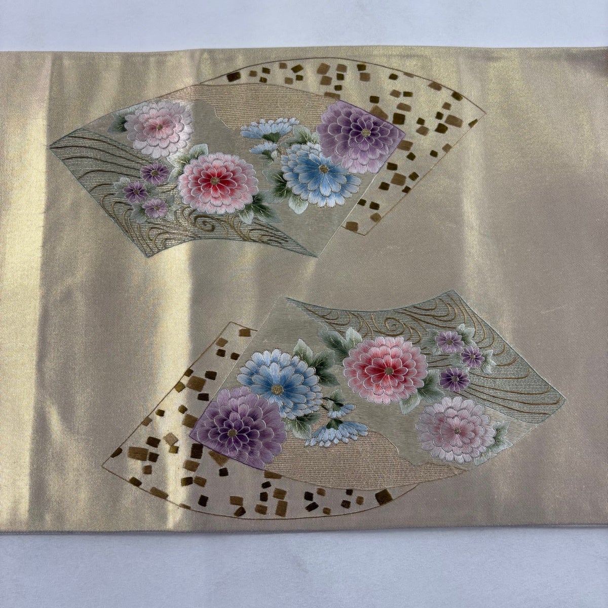 袋帯とは女性用の主にフォーマル用の帯で第一礼装として着用されることが多く、形状は表地にのみ柄があり裏地は無地になるように袋状に織って作成されたため袋帯という名が付きました。 帯を締める際にはおめでたいことが重なりますようにという願いが込められている二重太鼓や成人式の際に振袖に見かけるふくら雀や文庫結びなどの変わり結びを用いて着用します。