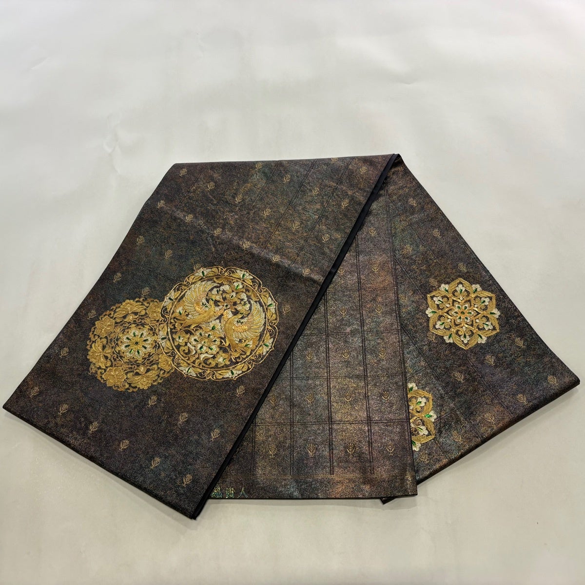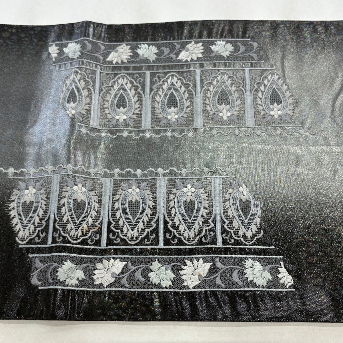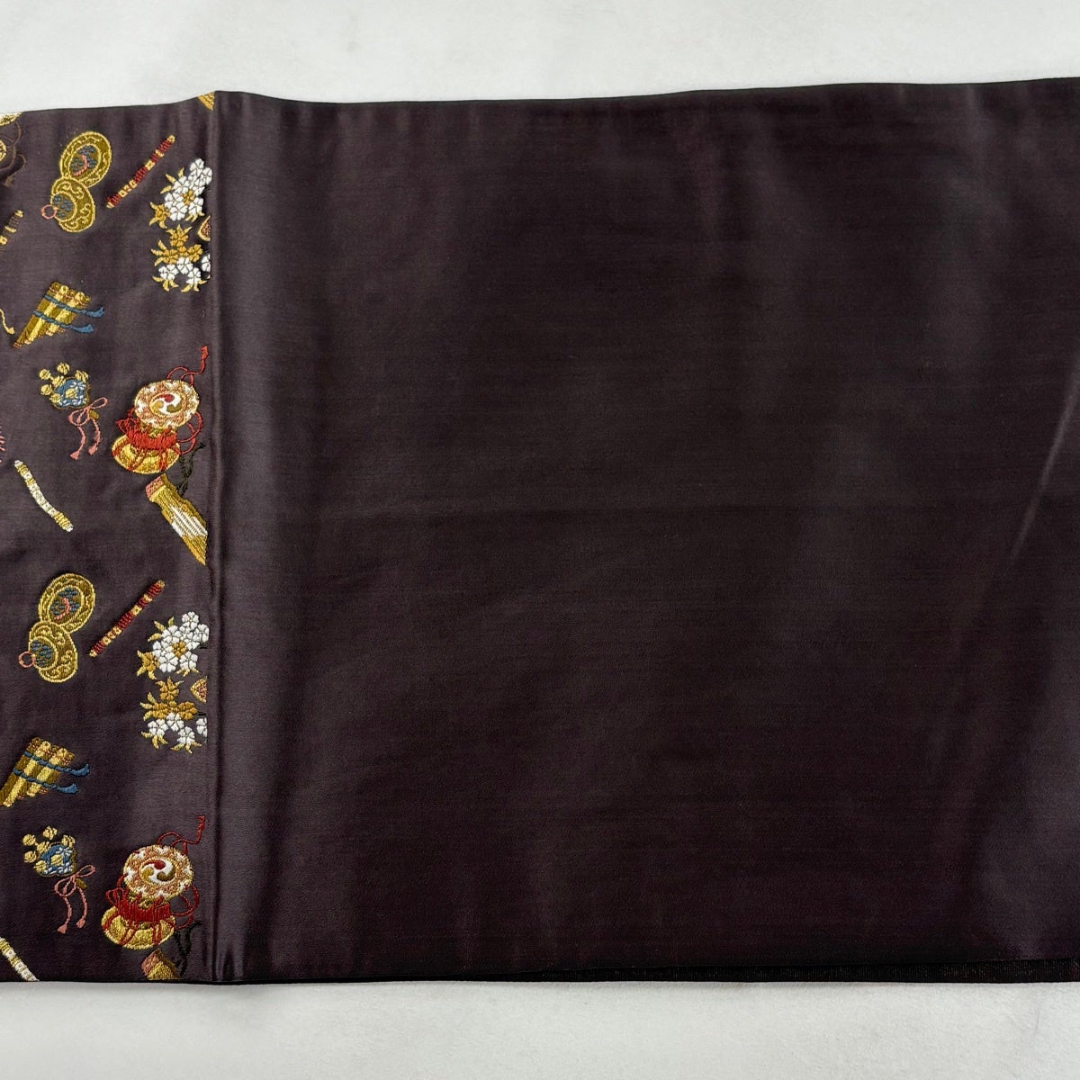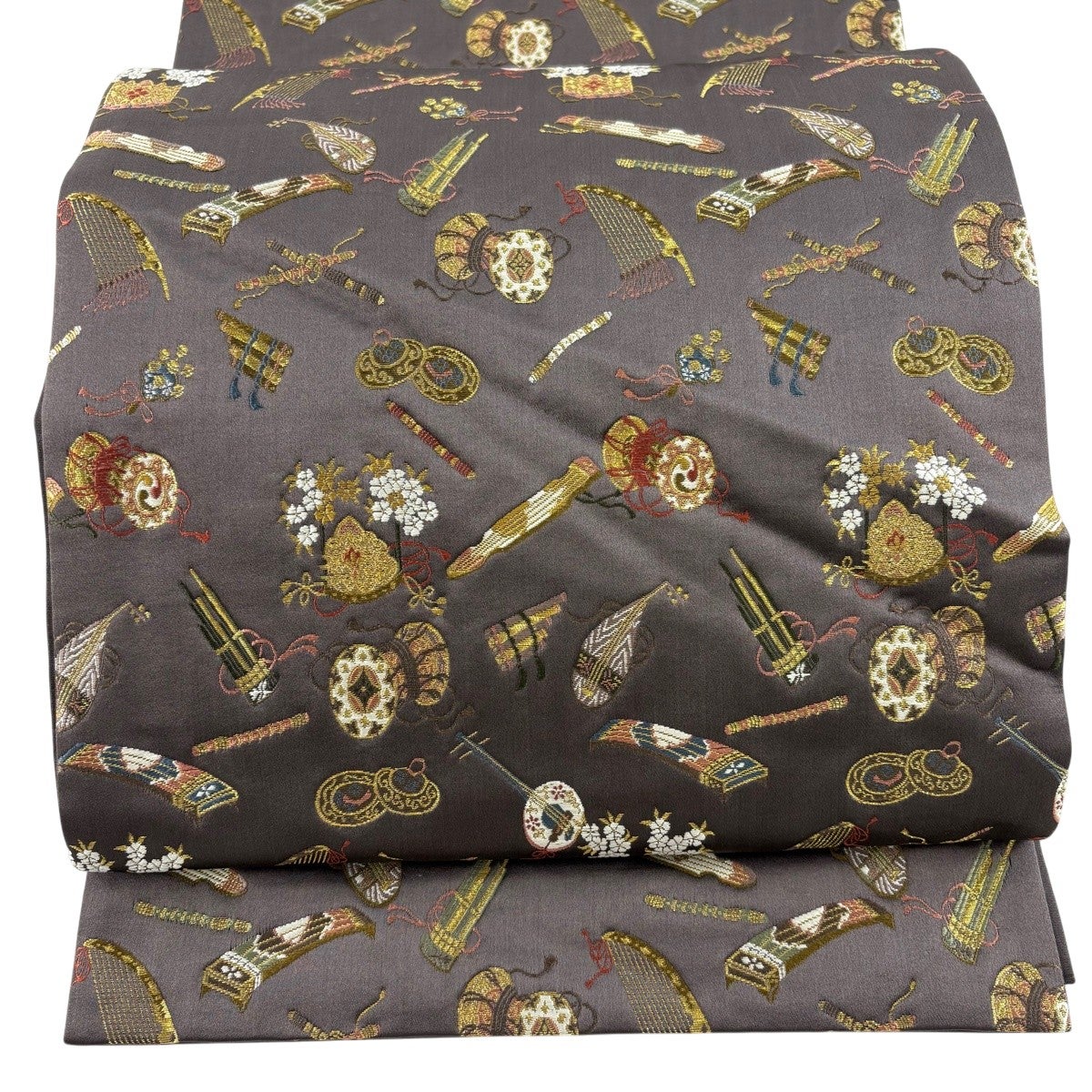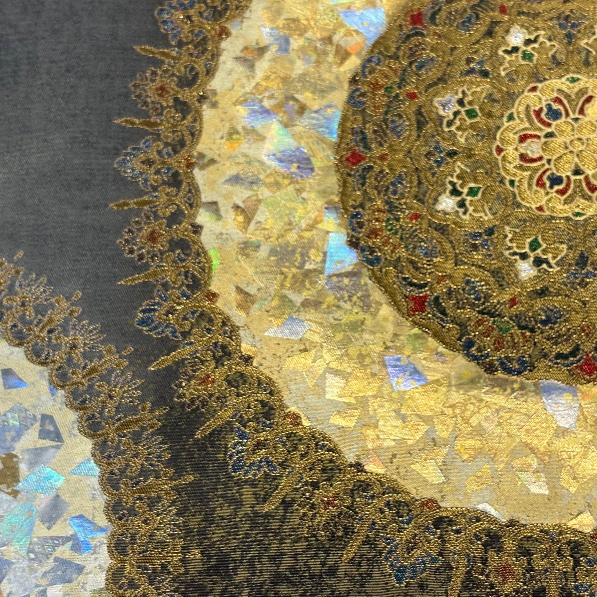 袋帯とは女性用の主にフォーマル用の帯で第一礼装として着用されることが多く、形状は表地にのみ柄があり裏地は無地になるように袋状に織って作成されたため袋帯という名が付きました。 帯を締める際にはおめでたいことが重なりますようにという願いが込められている二重太鼓や成人式の際に振袖に見かけるふくら雀や文庫結びなどの変わり結びを用いて着用します。