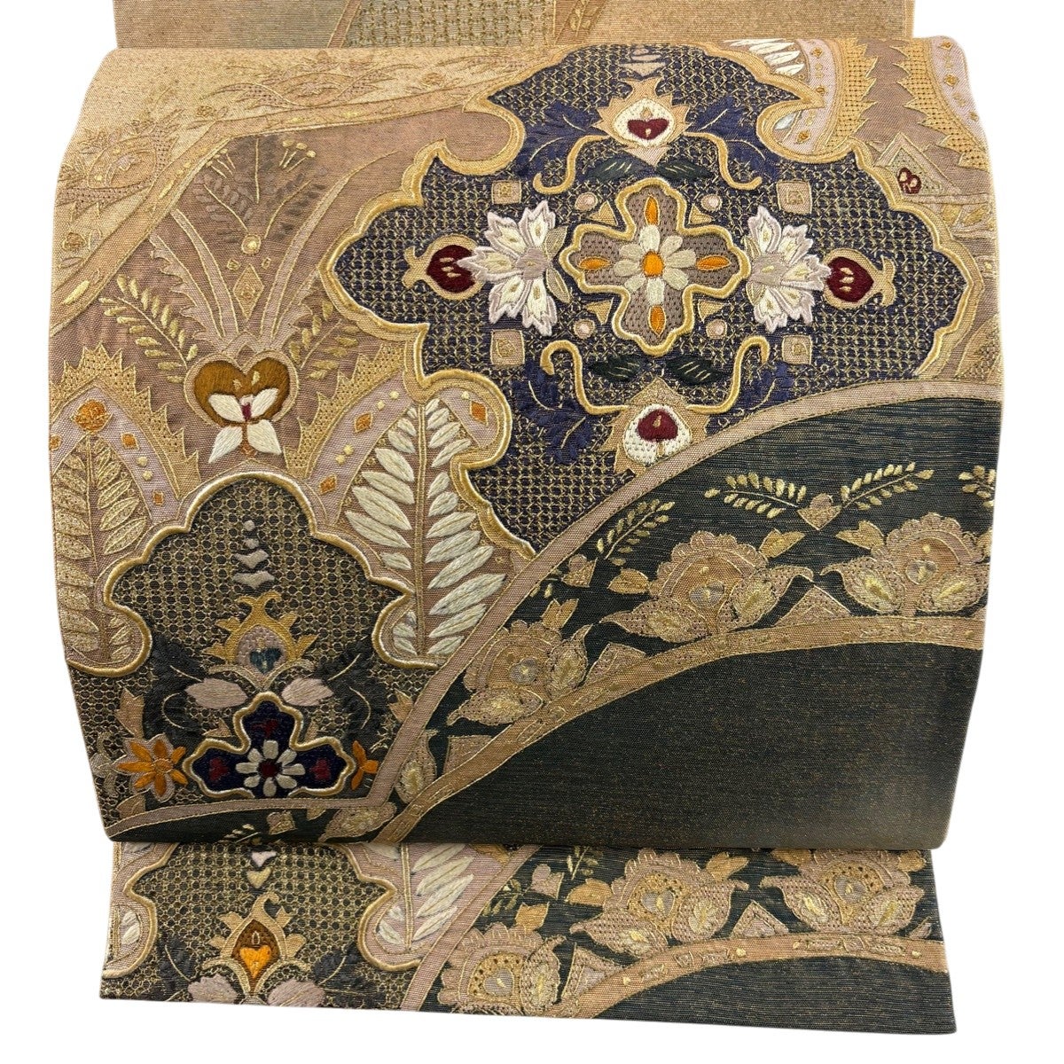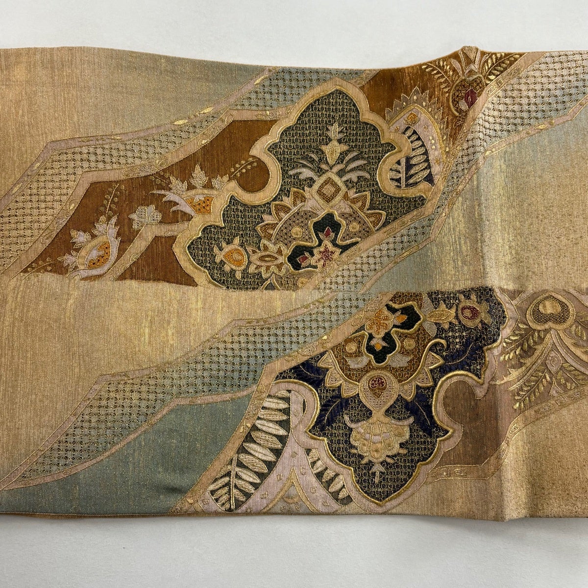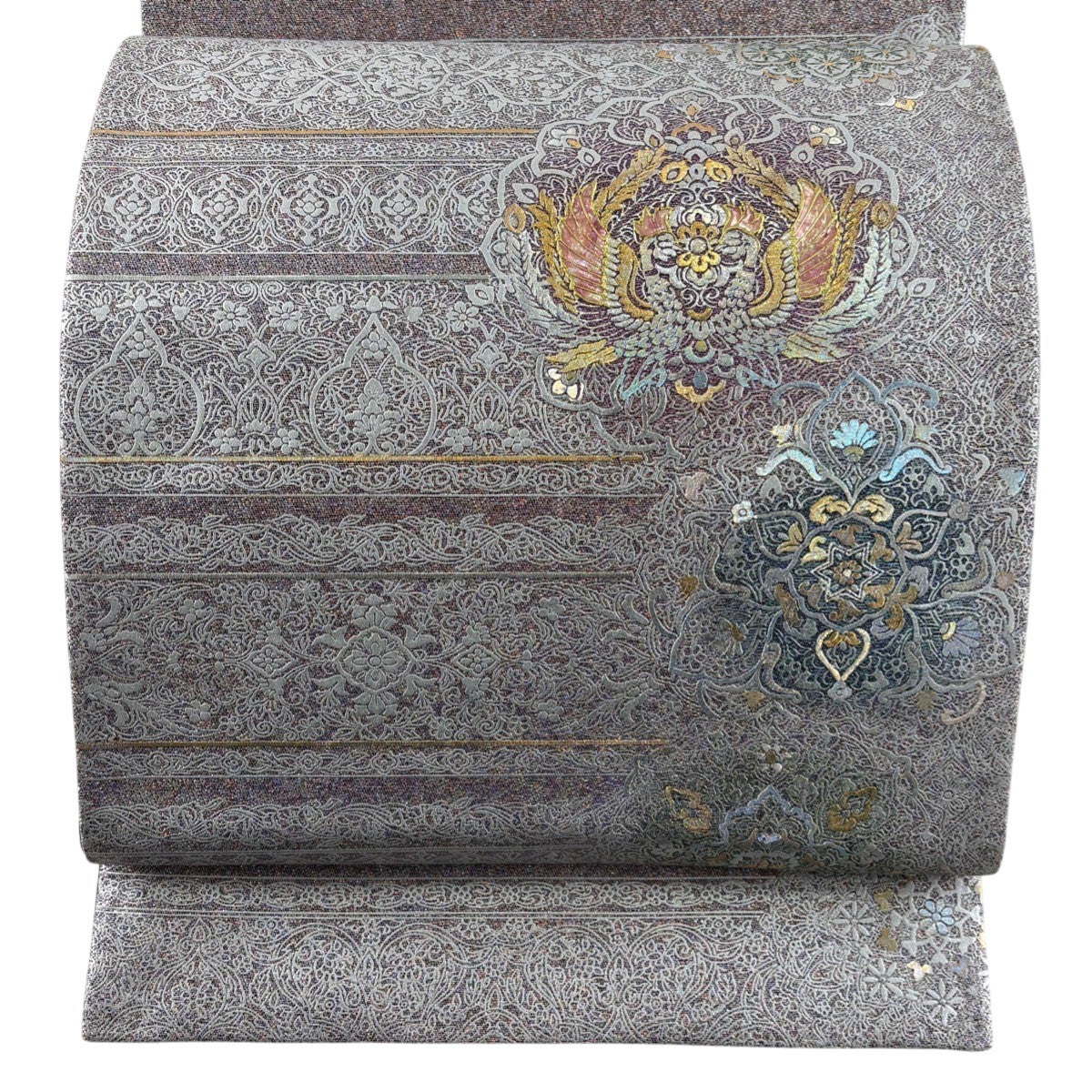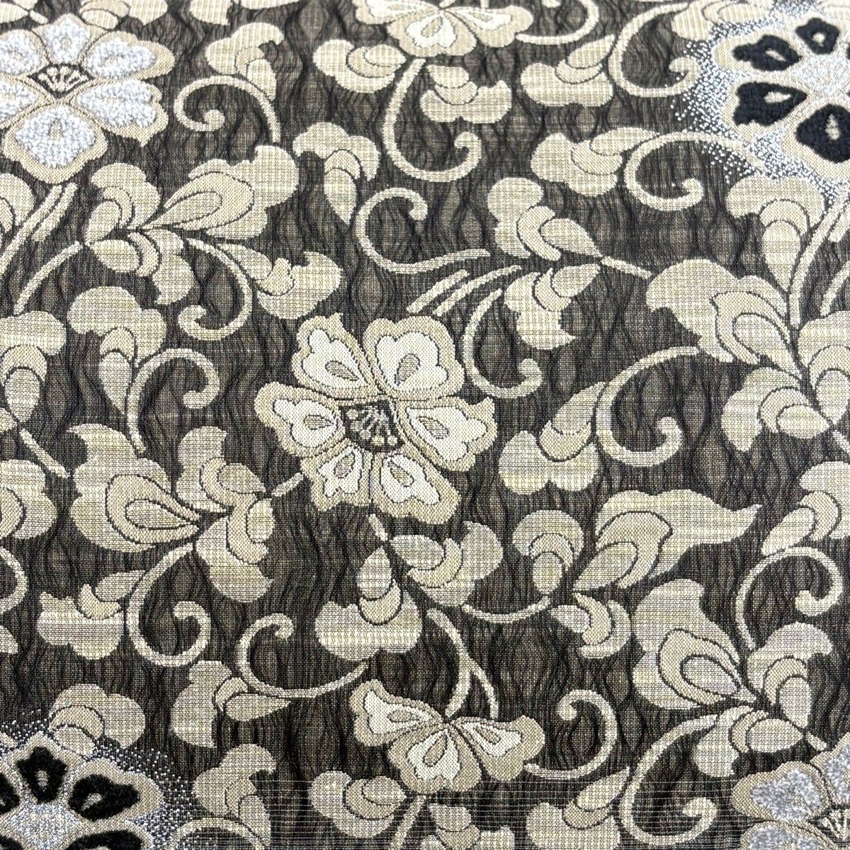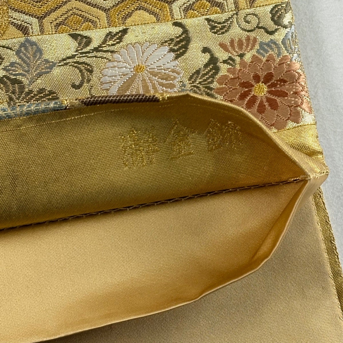 他の画像を見る 20%OFF 【美品】 袋帯 逸品 じゅらく 落款あり 帝王紫 慶華彩映文 華文 花唐草 金糸 箔 焦茶色 お太鼓柄 正絹 K30 当店通常価格 ¥ 37,800 ¥ 30,240 税込 在庫切れ