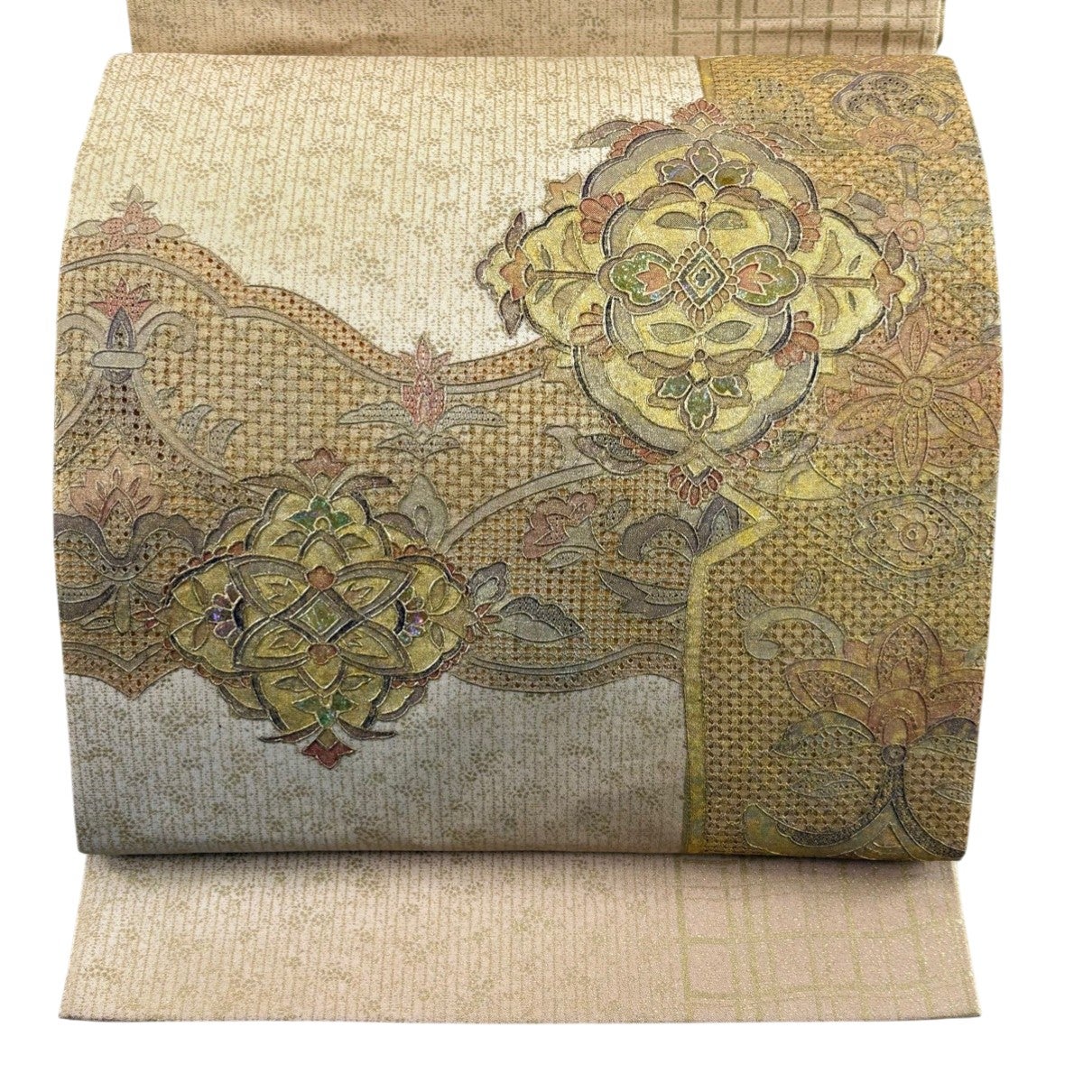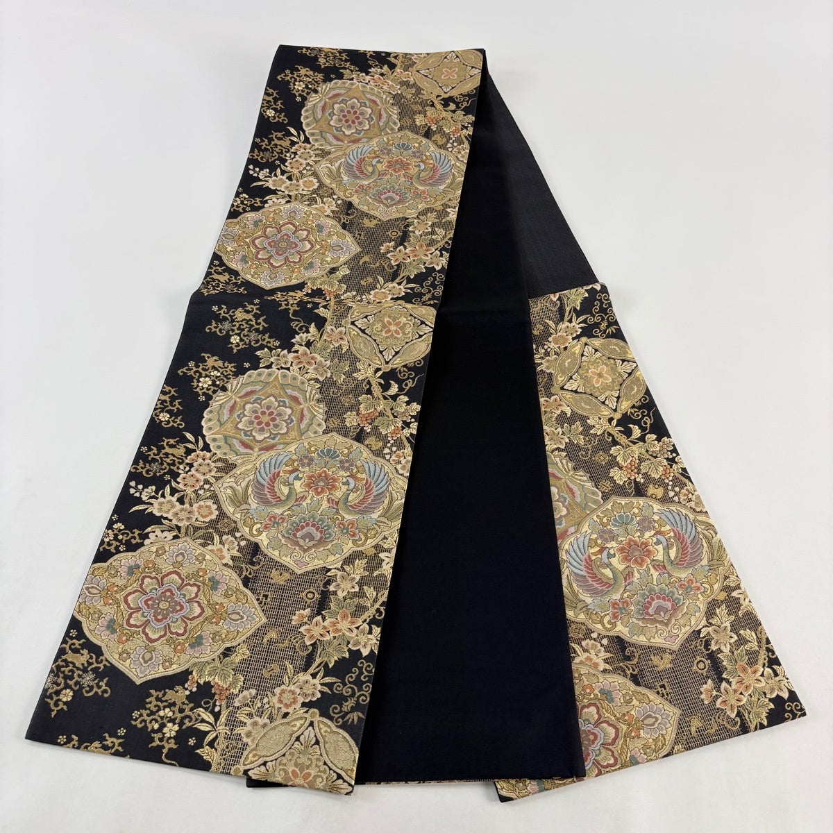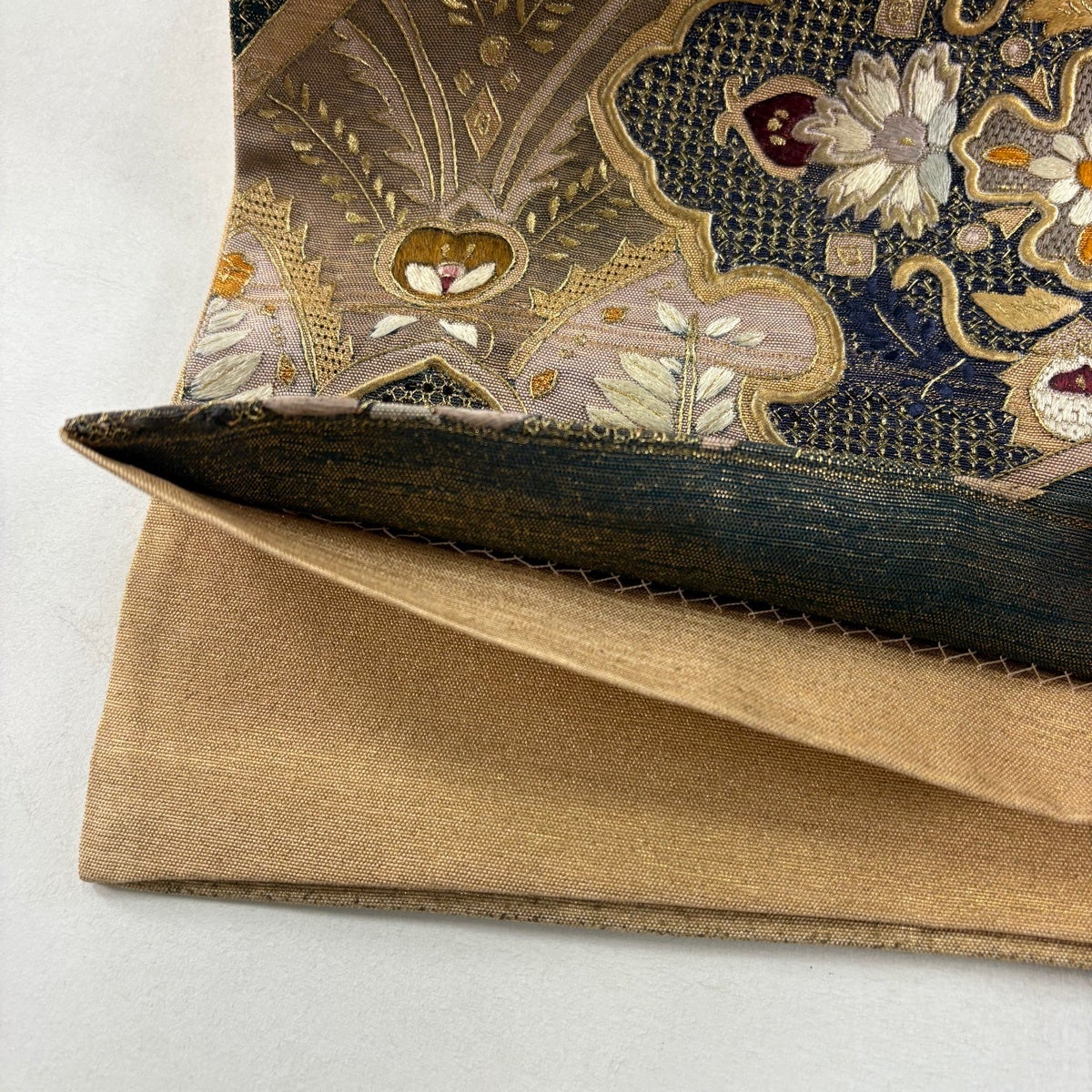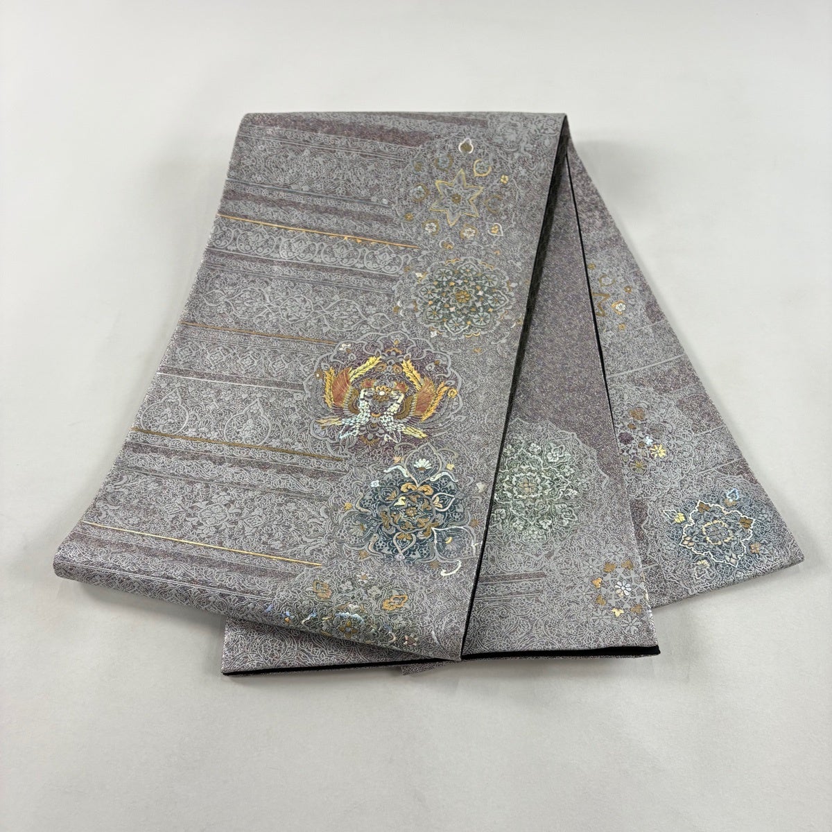 他の画像を見る 20%OFF 【美品】 袋帯 逸品 じゅらく 落款あり 帝王紫 慶華彩映文 華文 花唐草 金糸 箔 焦茶色 お太鼓柄 正絹 K30 当店通常価格 ¥ 37,800 ¥ 30,240 税込 在庫切れ