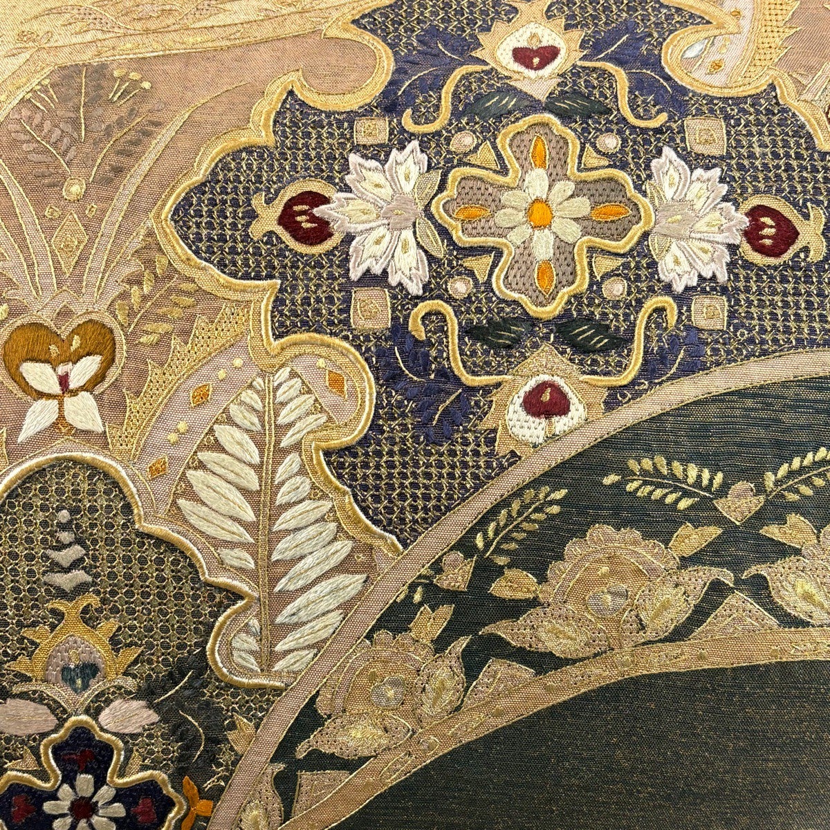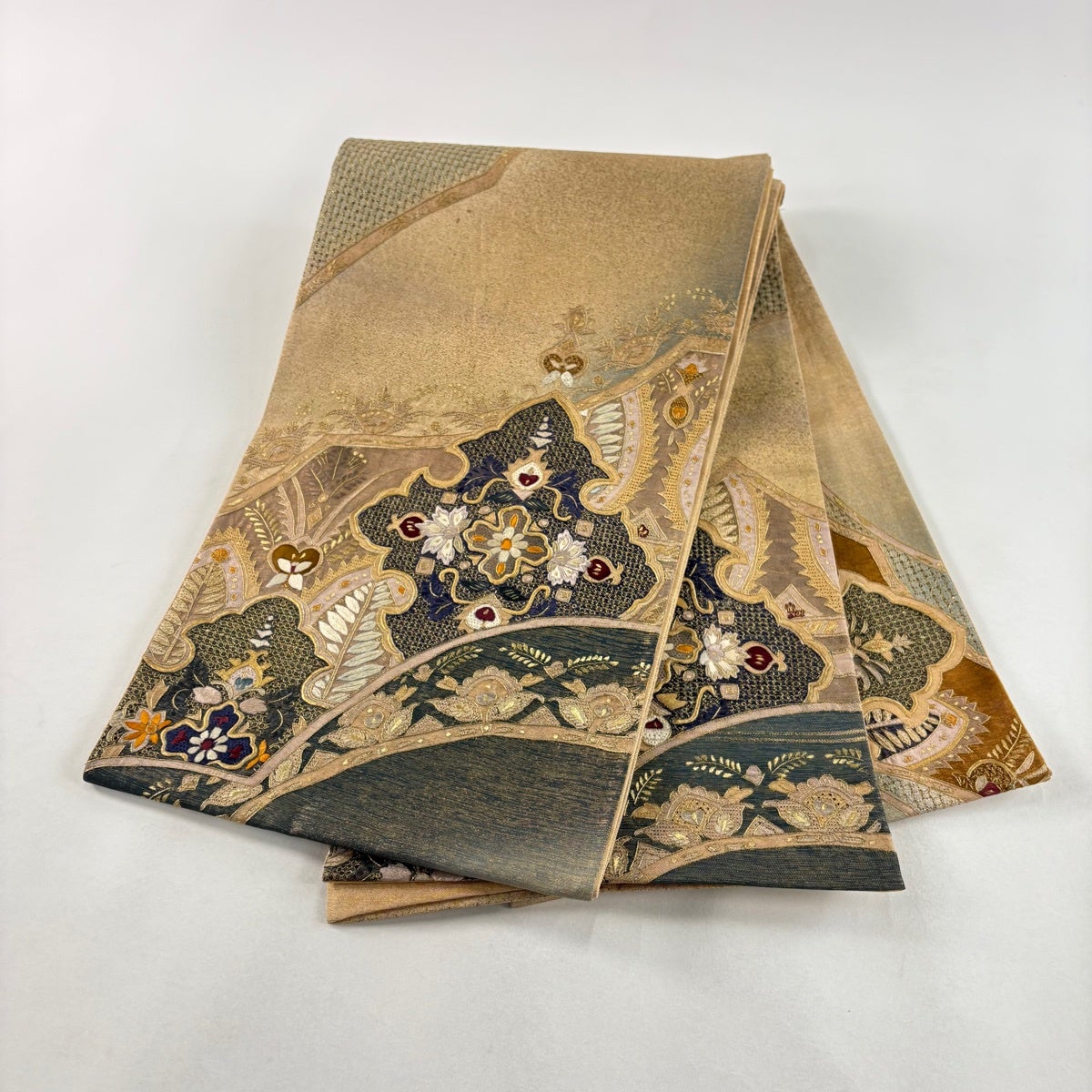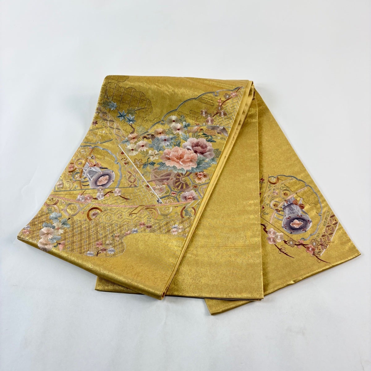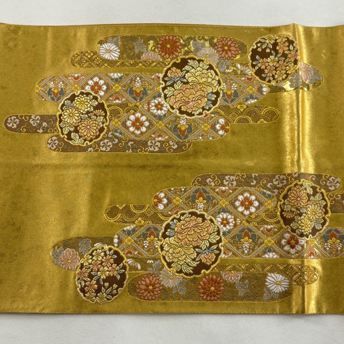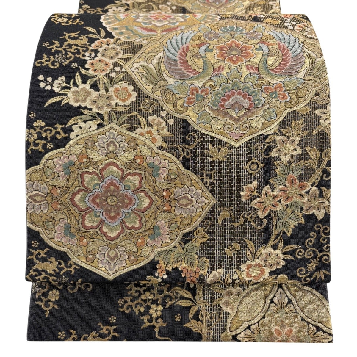 他の画像を見る 20%OFF 【美品】 袋帯 逸品 じゅらく 落款あり 帝王紫 慶華彩映文 華文 花唐草 金糸 箔 焦茶色 お太鼓柄 正絹 K30 当店通常価格 ¥ 37,800 ¥ 30,240 税込 在庫切れ