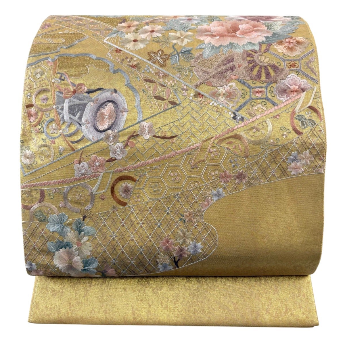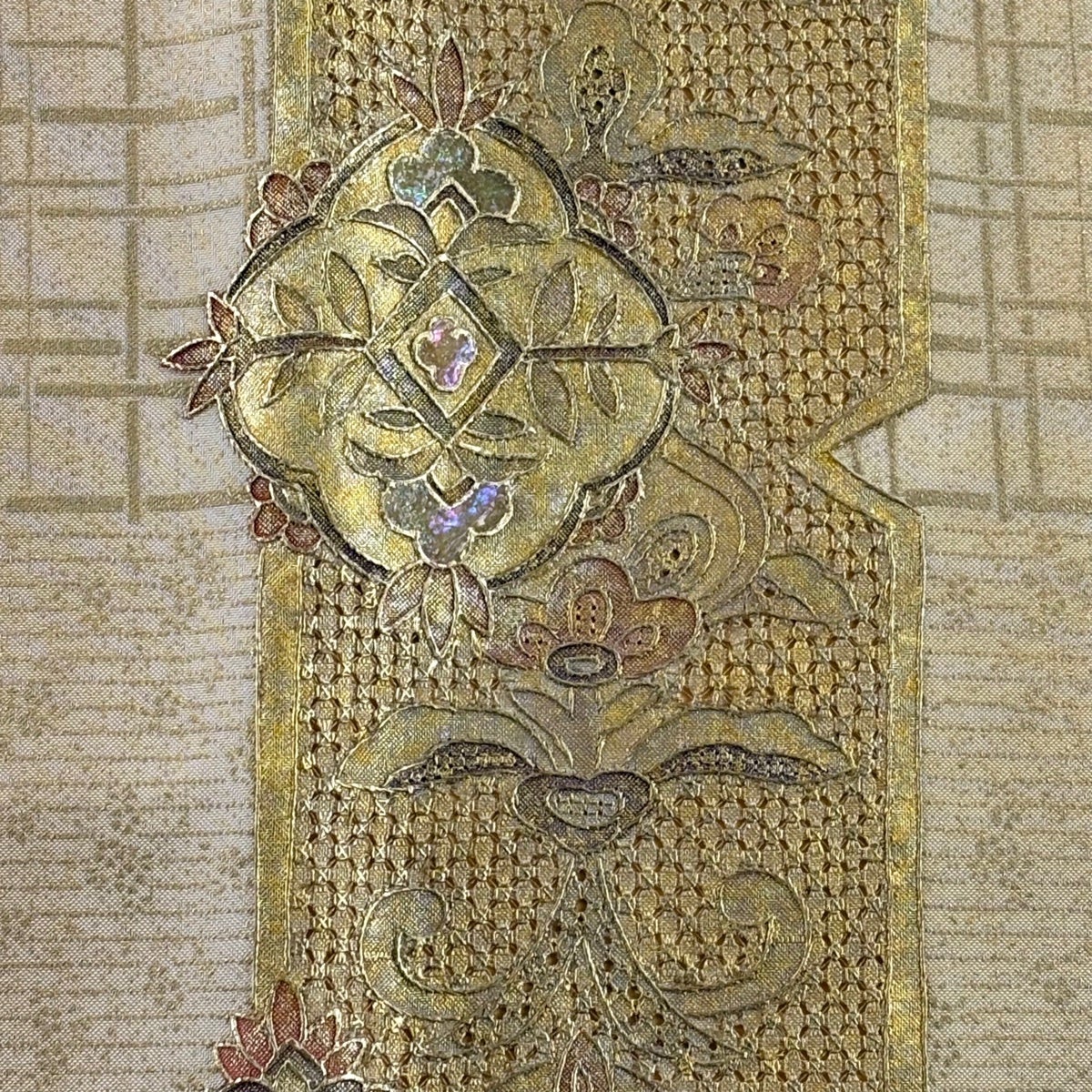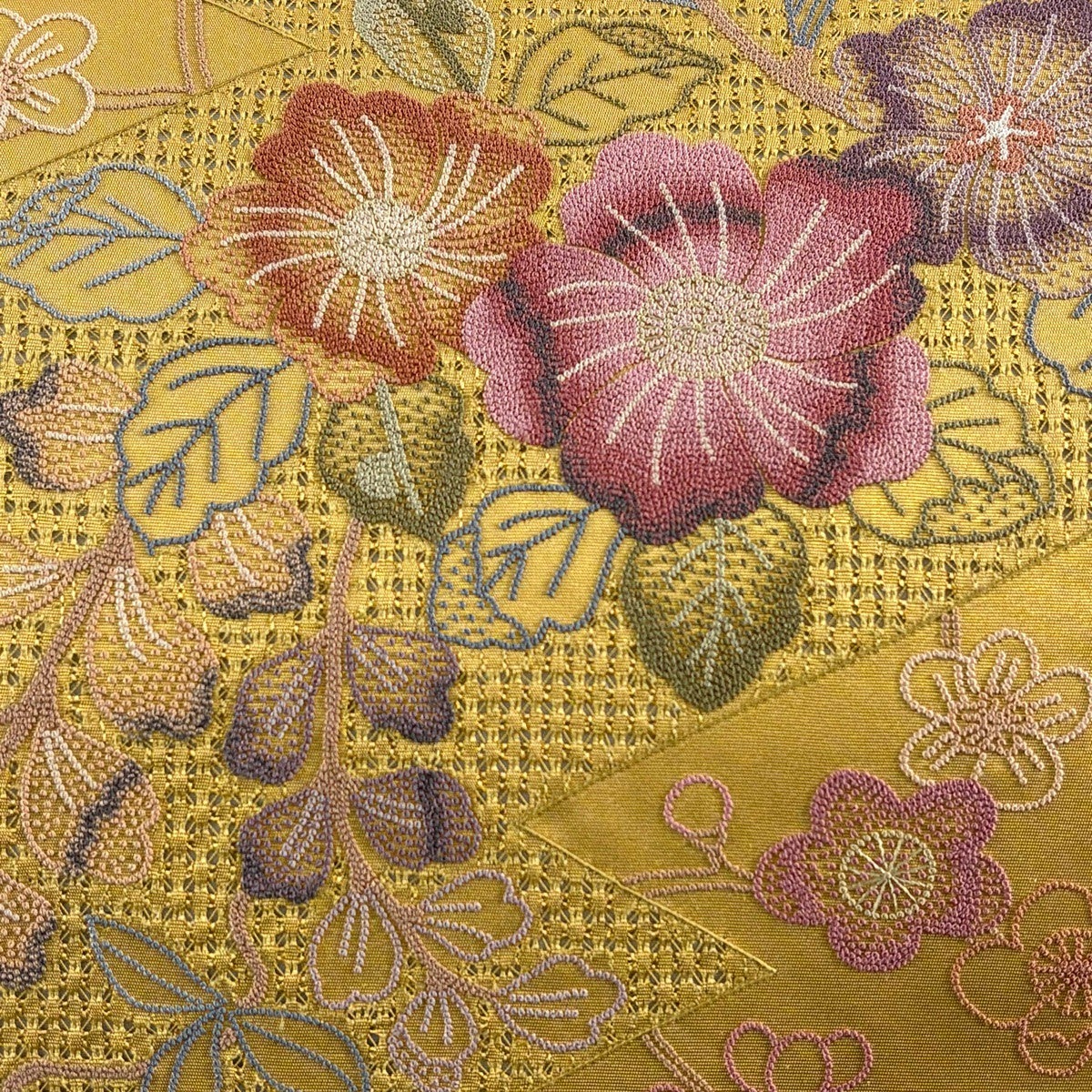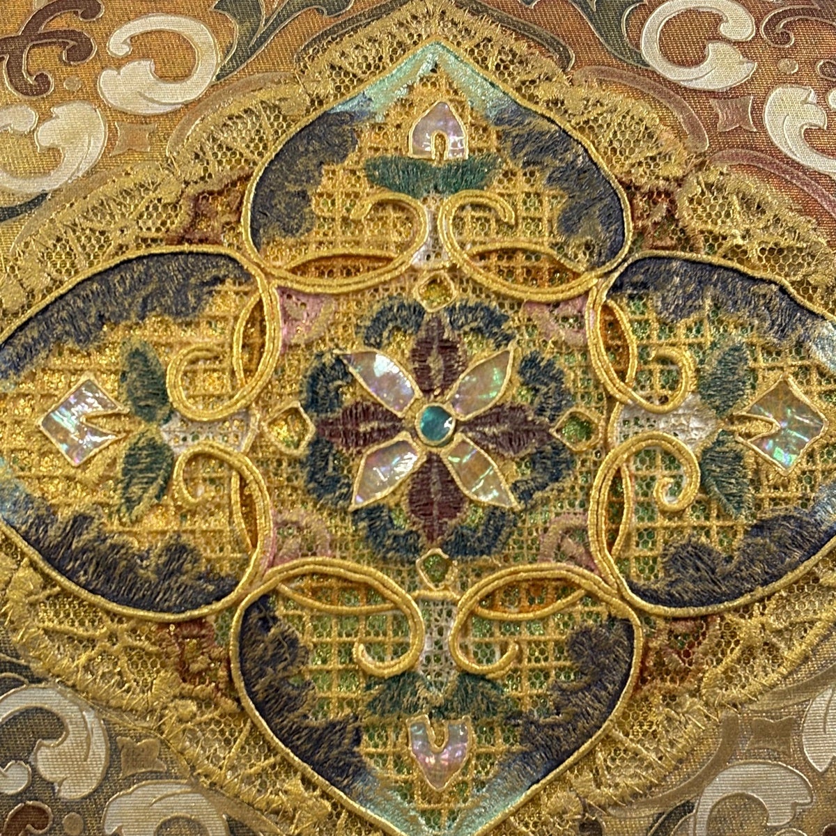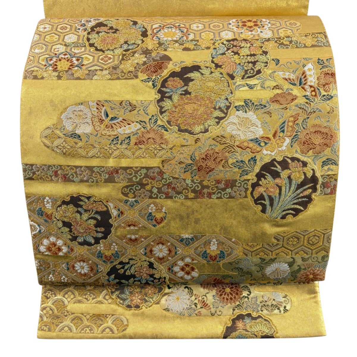 他の画像を見る 20%OFF 【美品】 袋帯 逸品 じゅらく 落款あり 帝王紫 慶華彩映文 華文 花唐草 金糸 箔 焦茶色 お太鼓柄 正絹 K30 当店通常価格 ¥ 37,800 ¥ 30,240 税込 在庫切れ