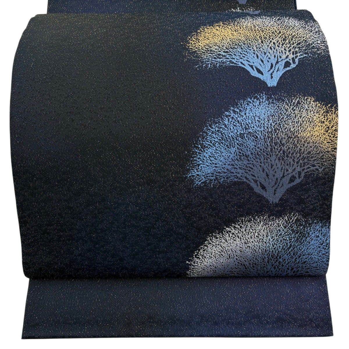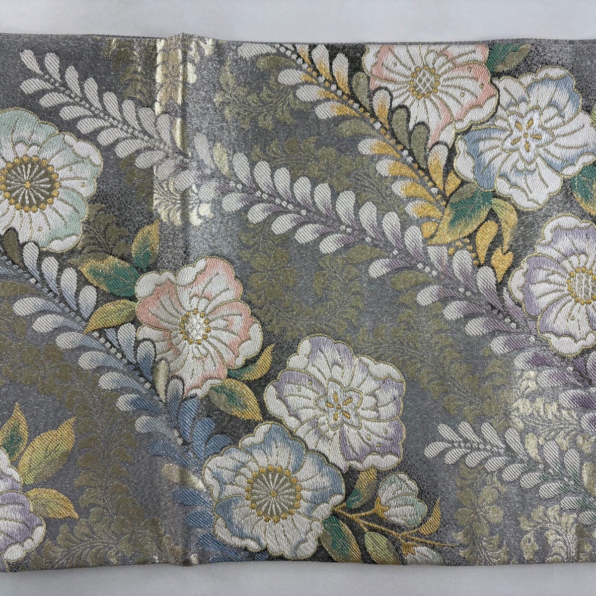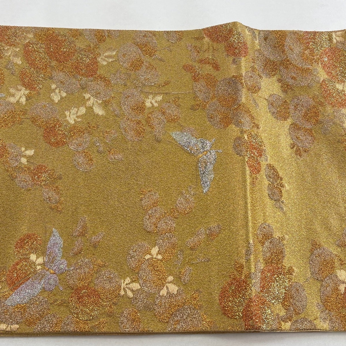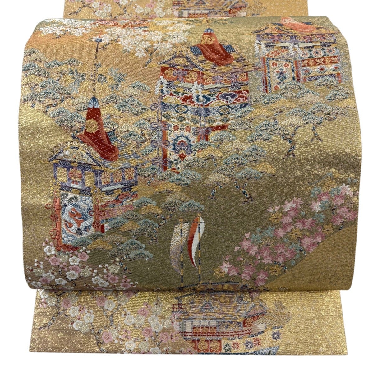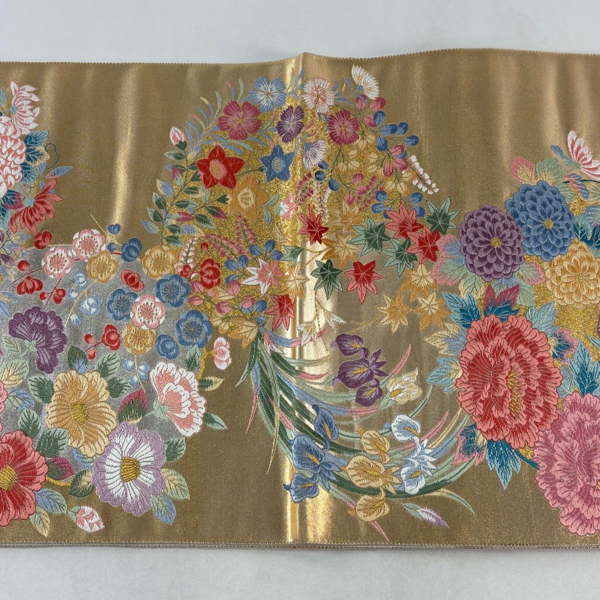 袋帯とは女性用の主にフォーマル用の帯で第一礼装として着用されることが多く、形状は表地にのみ柄があり裏地は無地になるように袋状に織って作成されたため袋帯という名が付きました。 帯を締める際にはおめでたいことが重なりますようにという願いが込められている二重太鼓や成人式の際に振袖に見かけるふくら雀や文庫結びなどの変わり結びを用いて着用します。