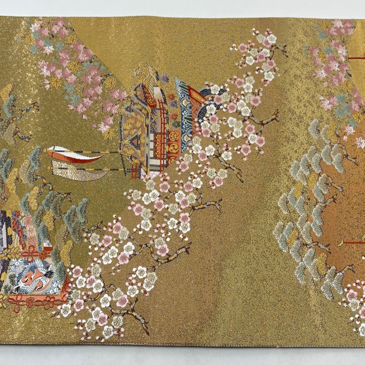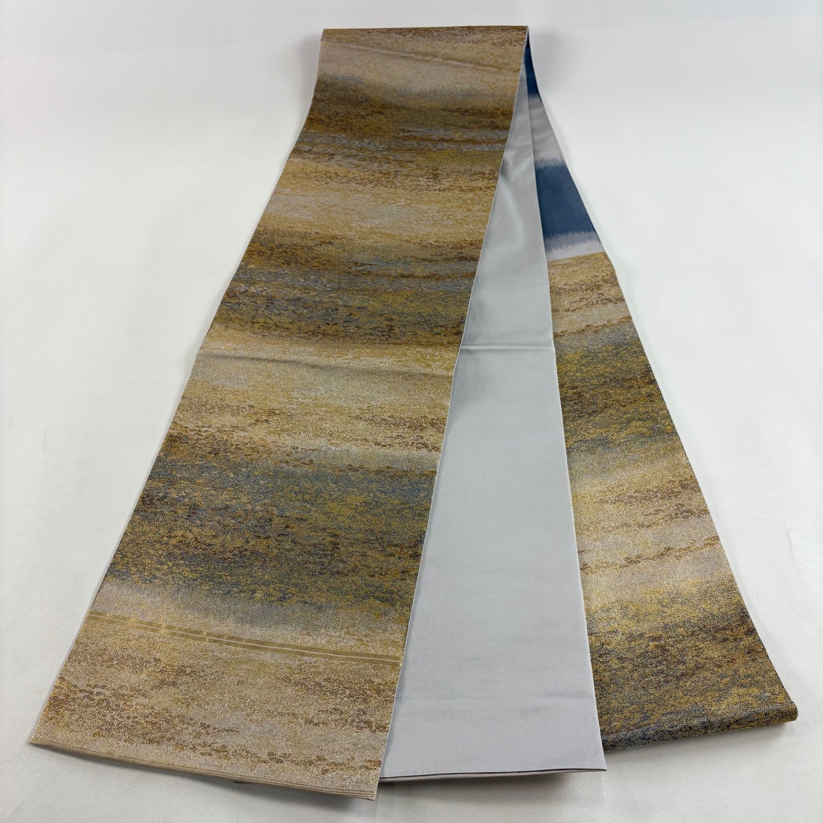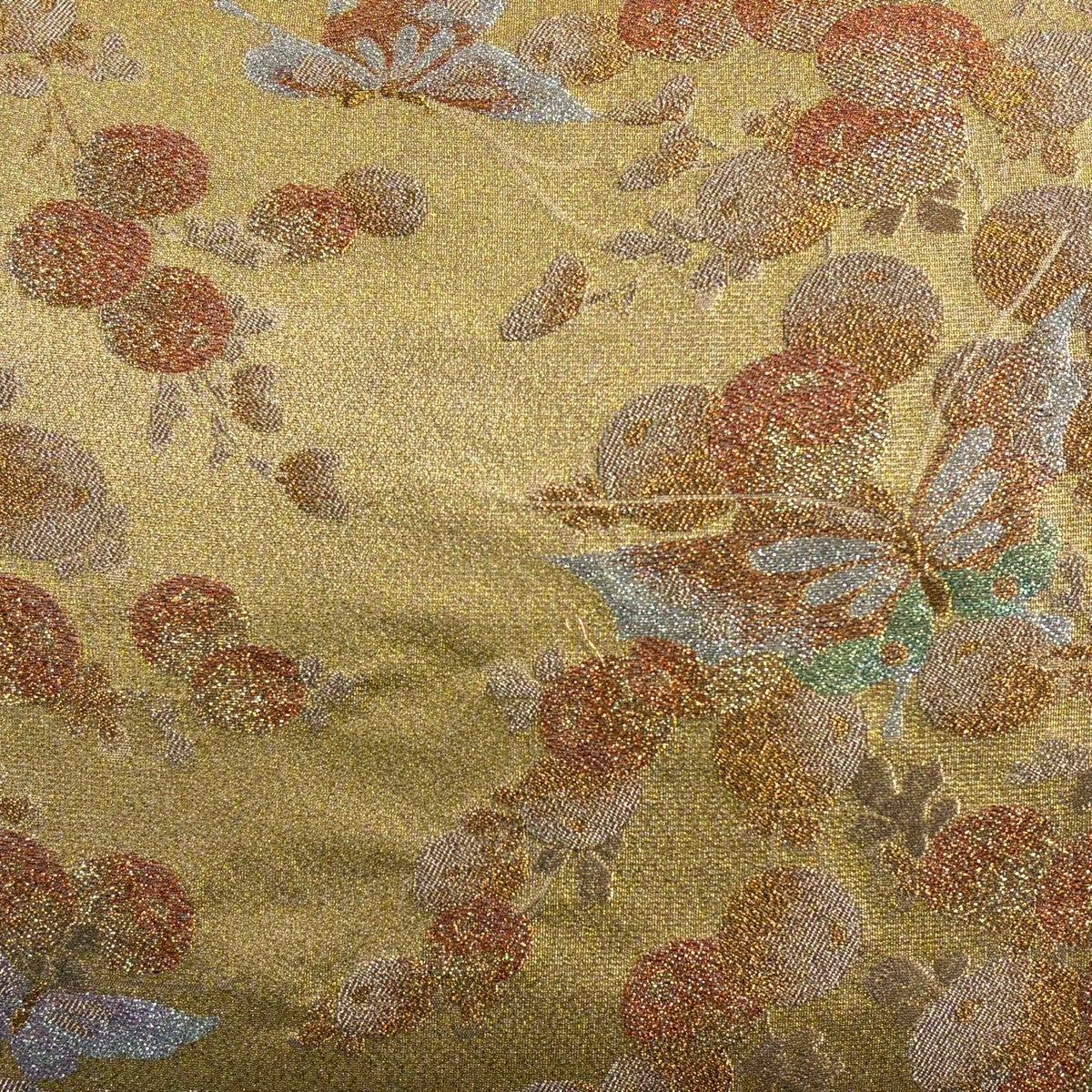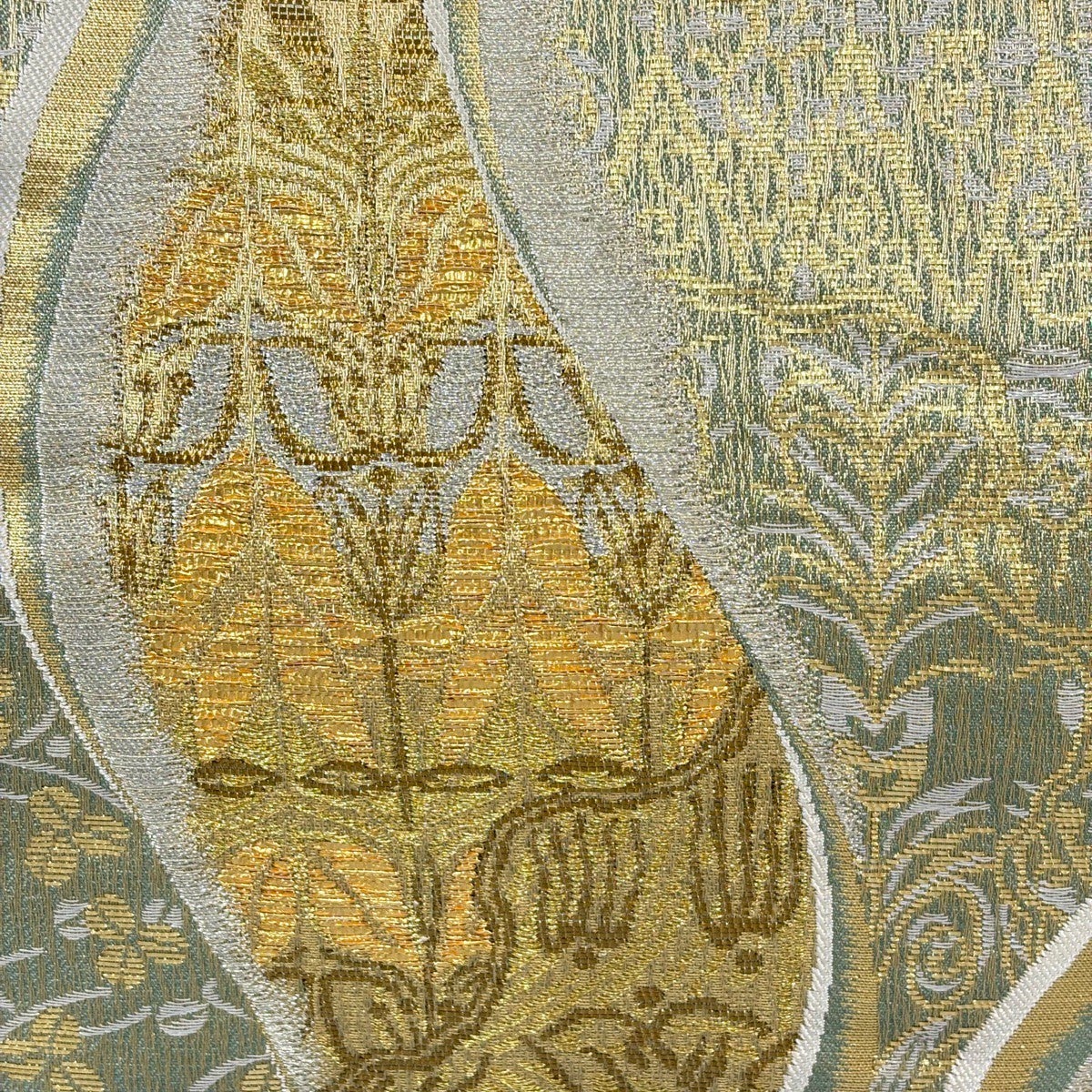袋帯とは女性用の主にフォーマル用の帯で第一礼装として着用されることが多く、形状は表地にのみ柄があり裏地は無地になるように袋状に織って作成されたため袋帯という名が付きました。 帯を締める際にはおめでたいことが重なりますようにという願いが込められている二重太鼓や成人式の際に振袖に見かけるふくら雀や文庫結びなどの変わり結びを用いて着用します。