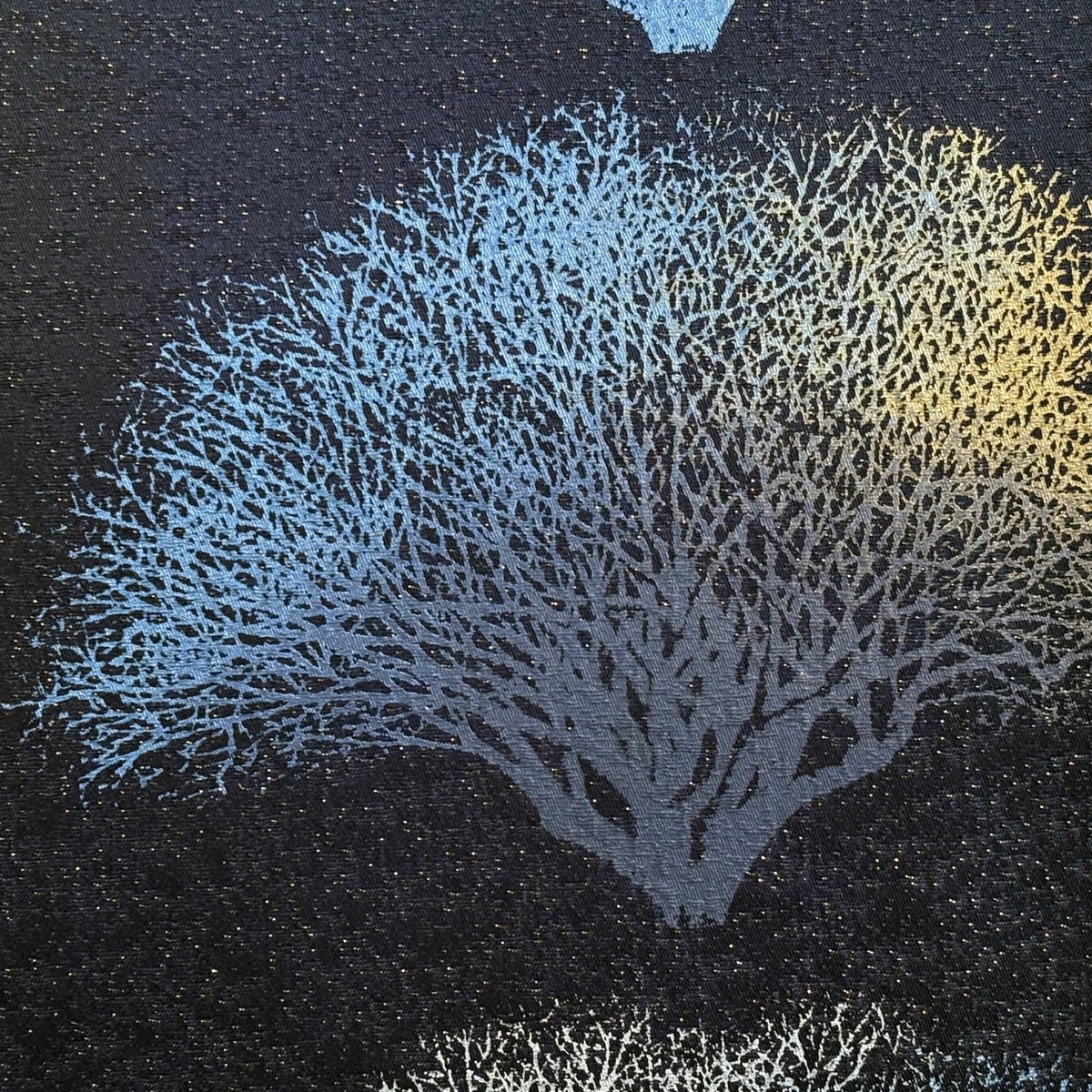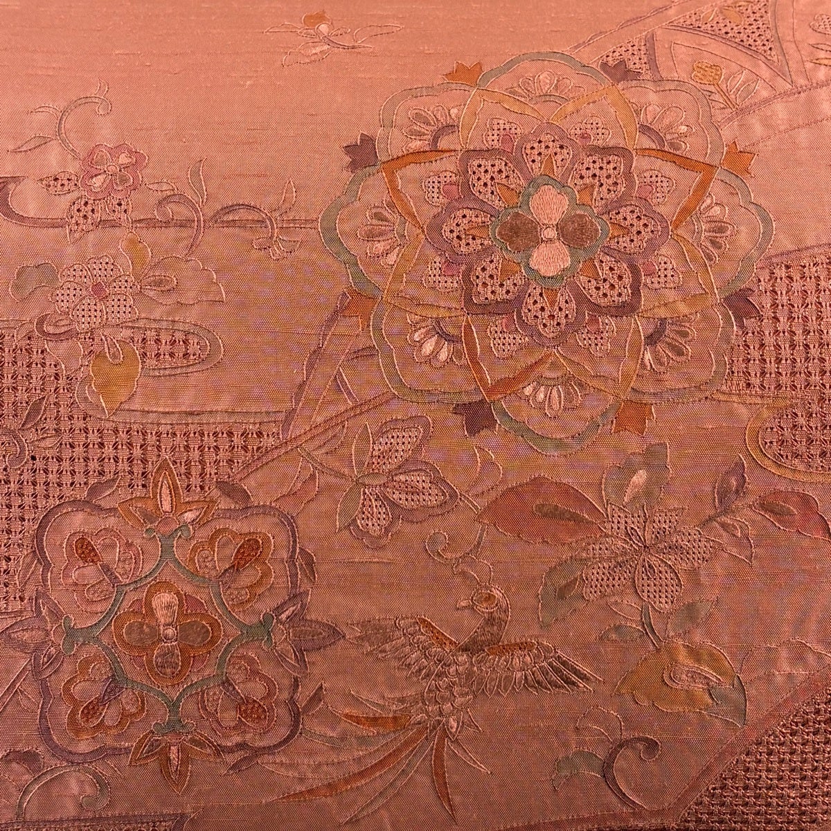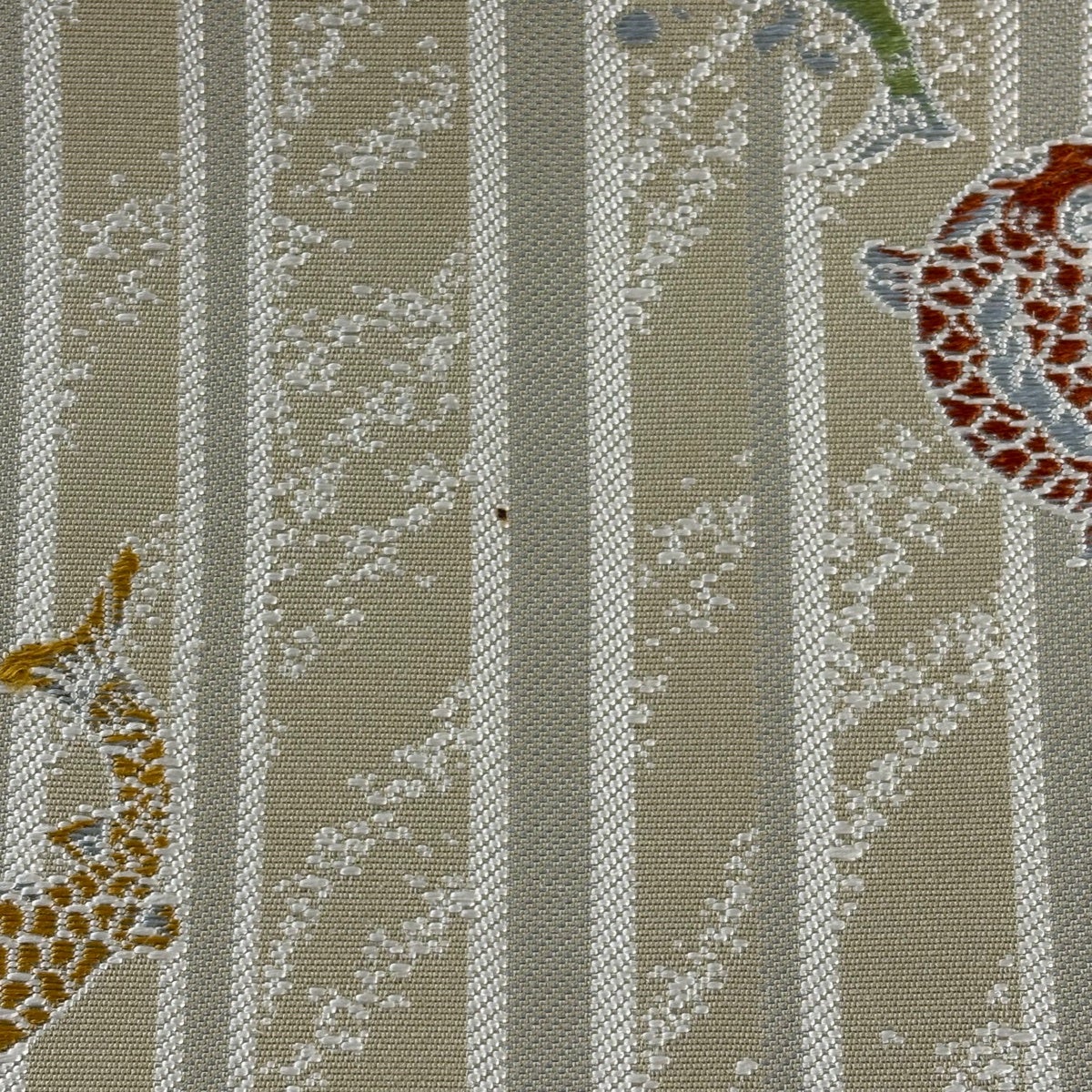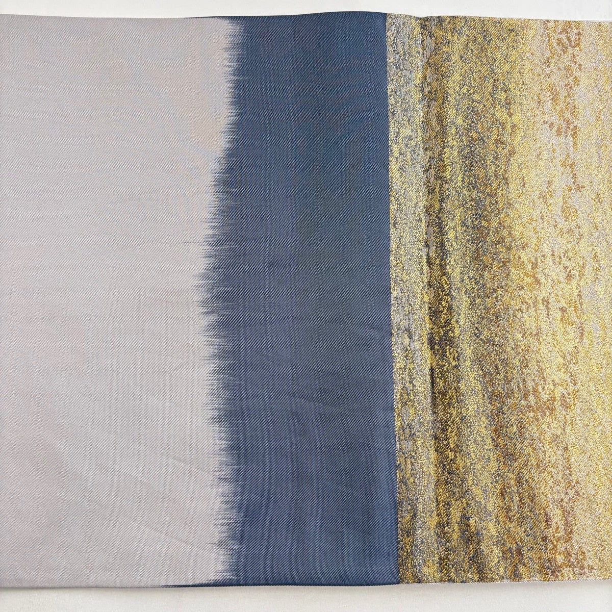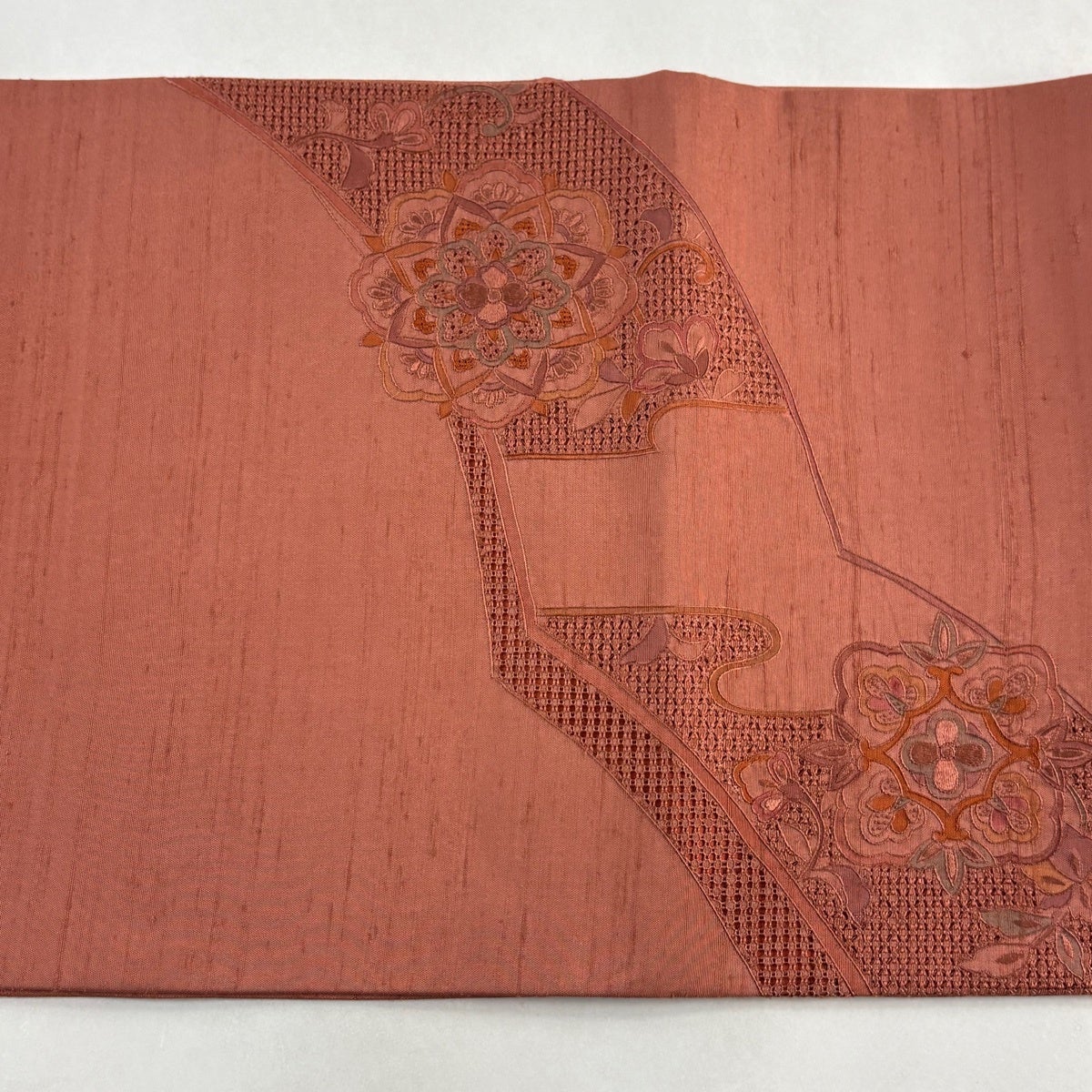 袋帯とは女性用の主にフォーマル用の帯で第一礼装として着用されることが多く、形状は表地にのみ柄があり裏地は無地になるように袋状に織って作成されたため袋帯という名が付きました。 帯を締める際にはおめでたいことが重なりますようにという願いが込められている二重太鼓や成人式の際に振袖に見かけるふくら雀や文庫結びなどの変わり結びを用いて着用します。