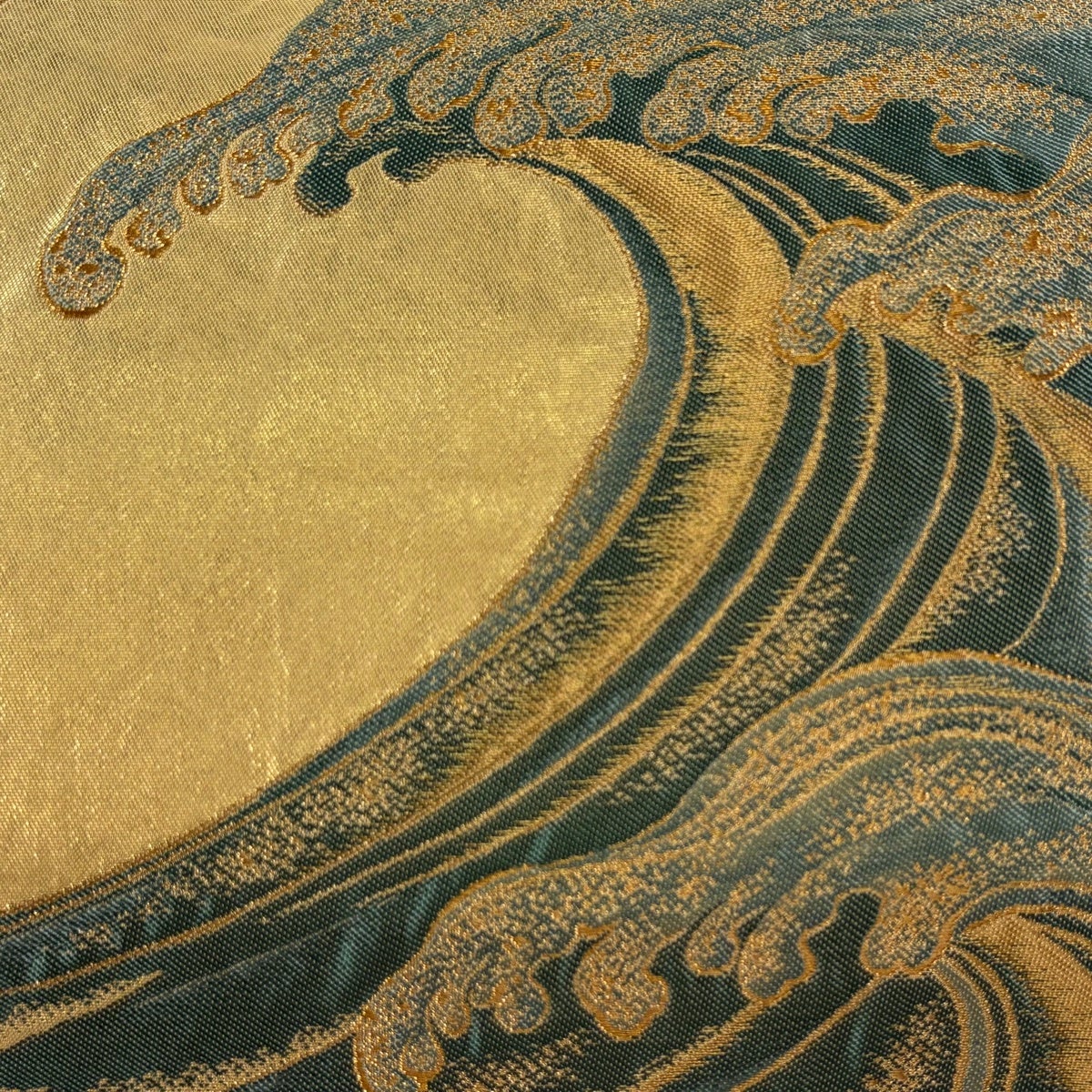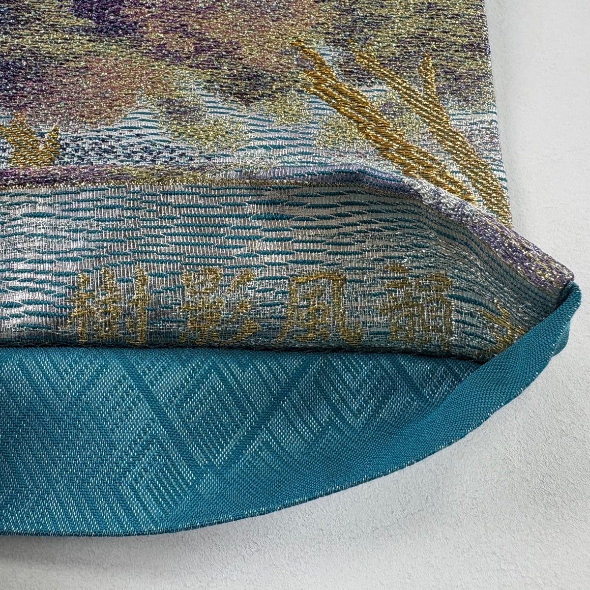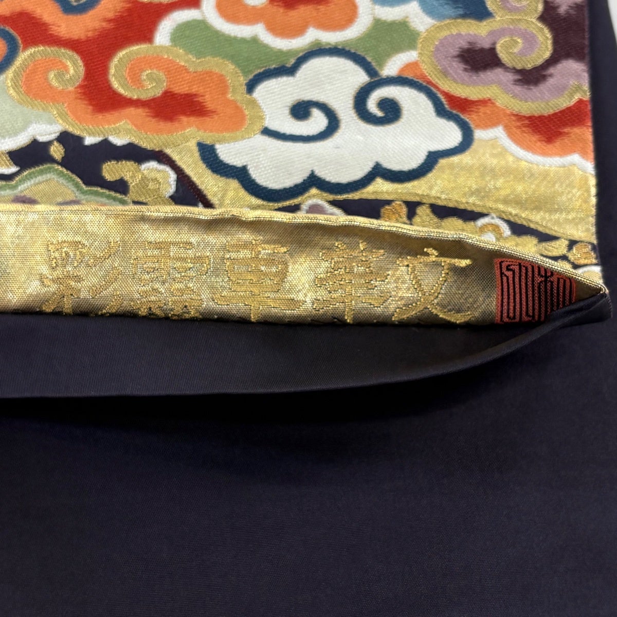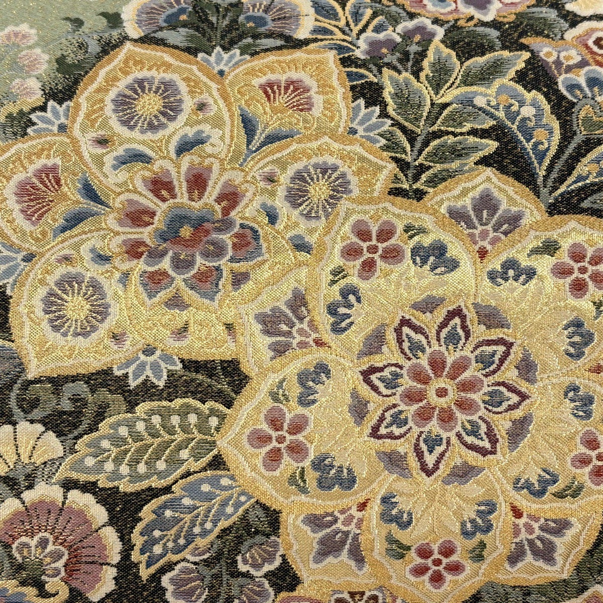 袋帯とは女性用の主にフォーマル用の帯で第一礼装として着用されることが多く、形状は表地にのみ柄があり裏地は無地になるように袋状に織って作成されたため袋帯という名が付きました。 帯を締める際にはおめでたいことが重なりますようにという願いが込められている二重太鼓や成人式の際に振袖に見かけるふくら雀や文庫結びなどの変わり結びを用いて着用します。
