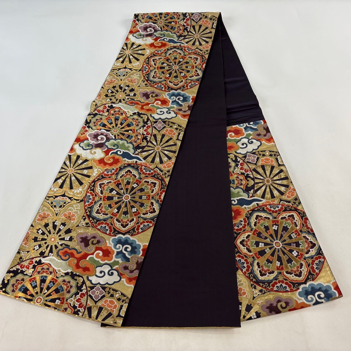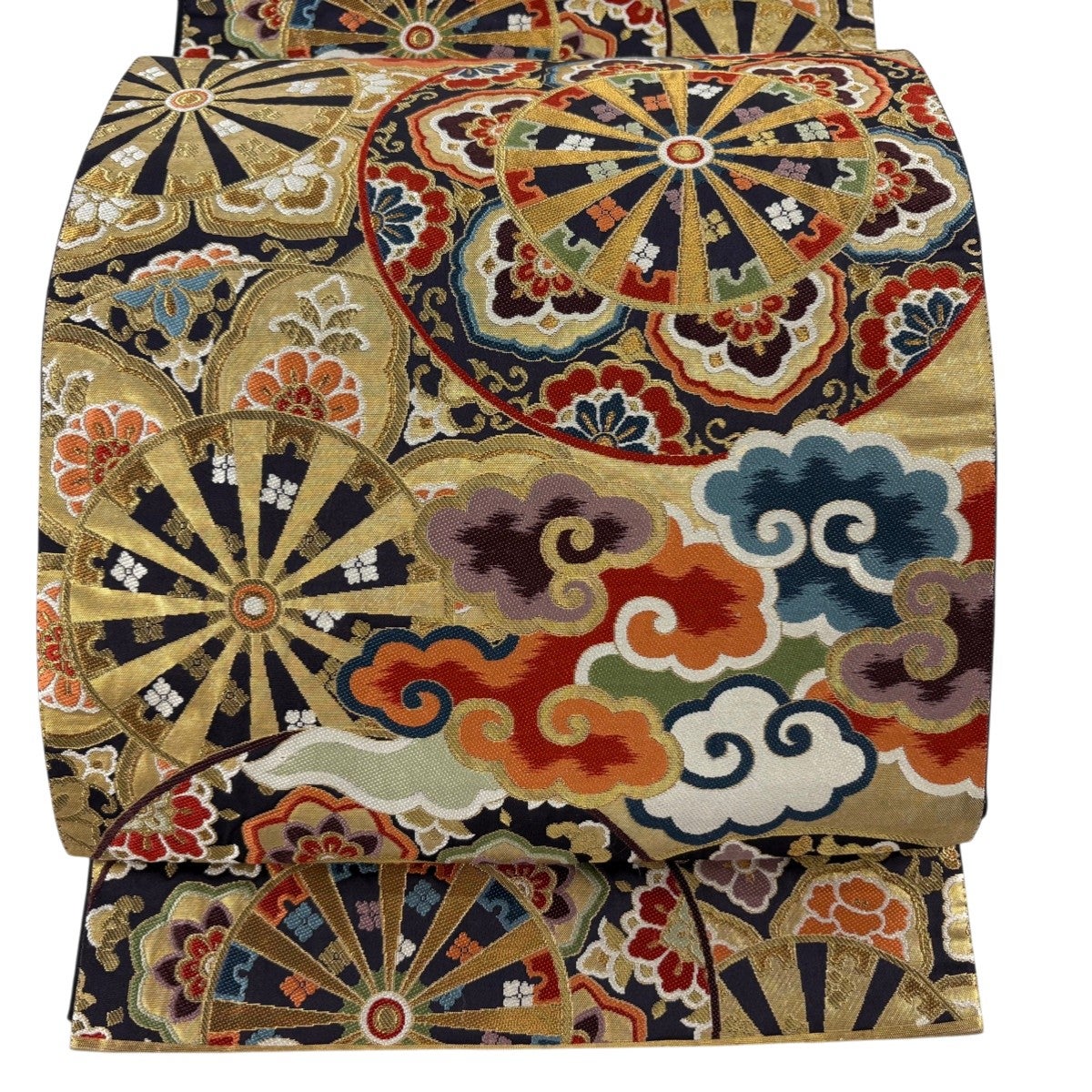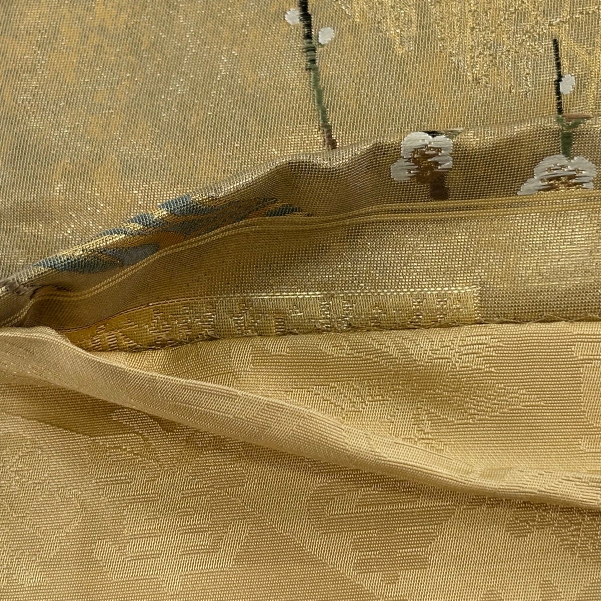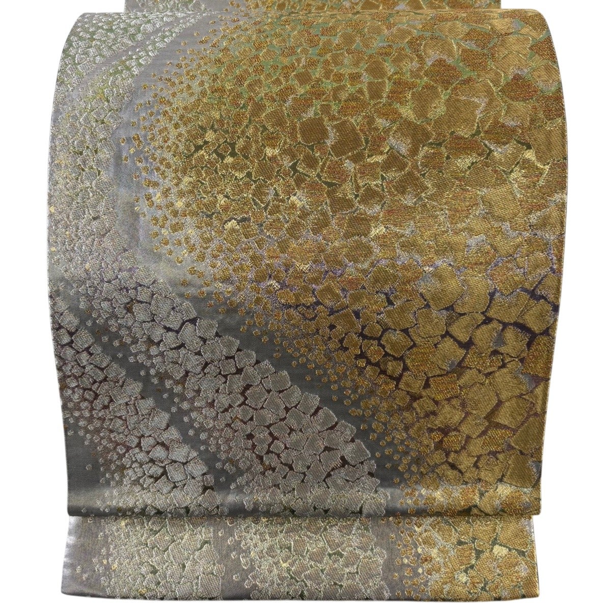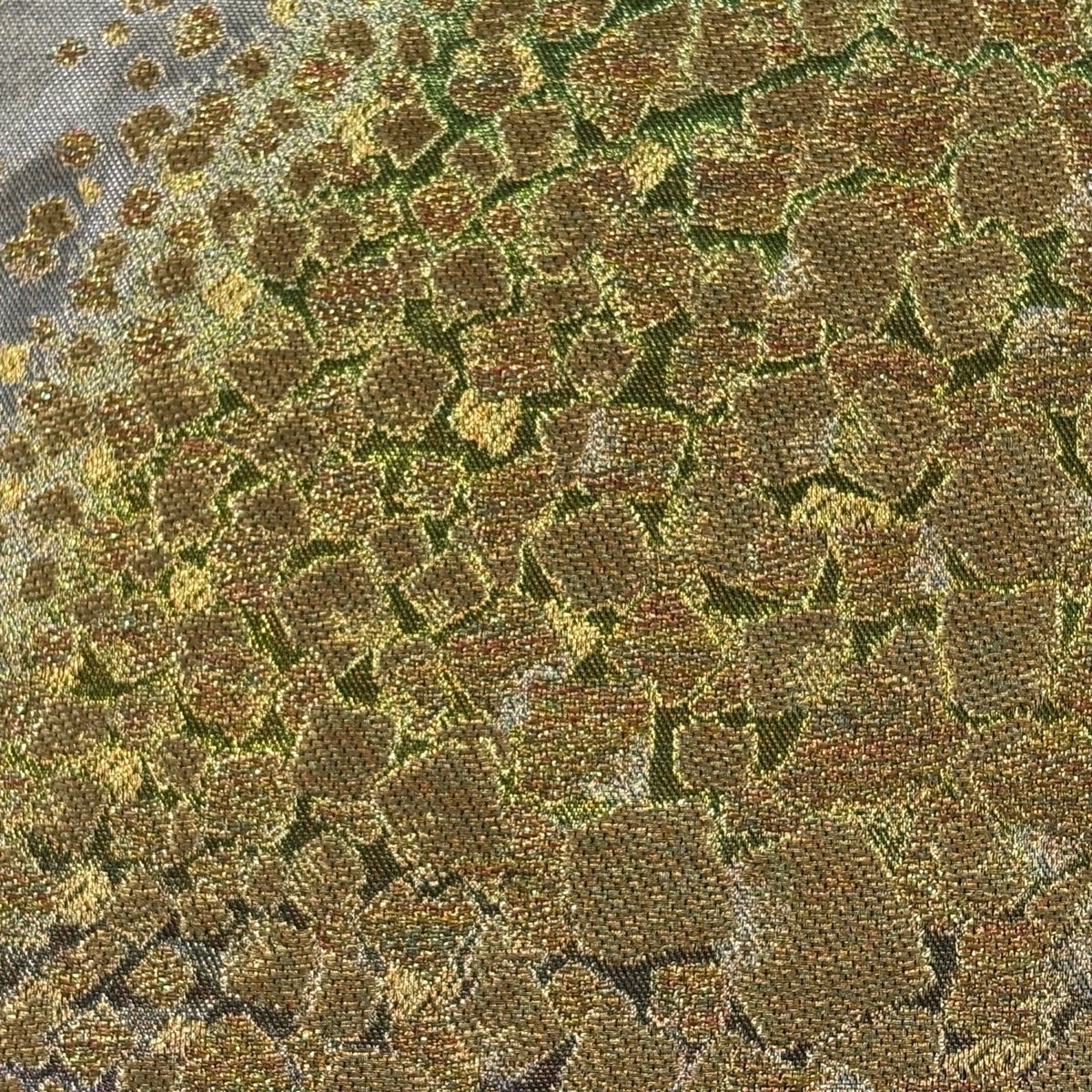 袋帯とは女性用の主にフォーマル用の帯で第一礼装として着用されることが多く、形状は表地にのみ柄があり裏地は無地になるように袋状に織って作成されたため袋帯という名が付きました。 帯を締める際にはおめでたいことが重なりますようにという願いが込められている二重太鼓や成人式の際に振袖に見かけるふくら雀や文庫結びなどの変わり結びを用いて着用します。