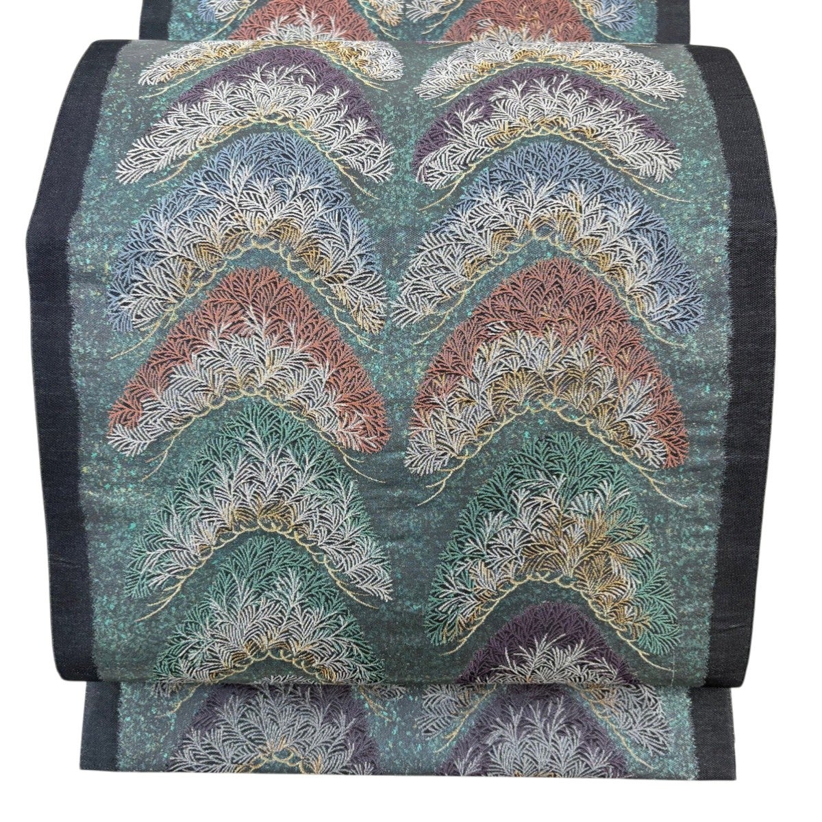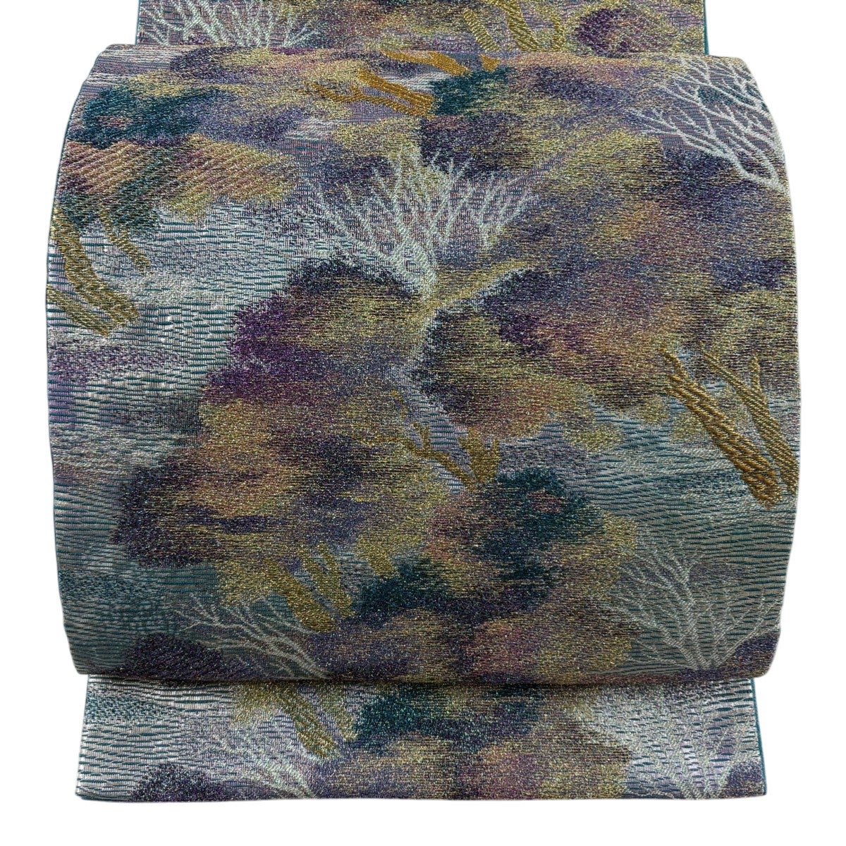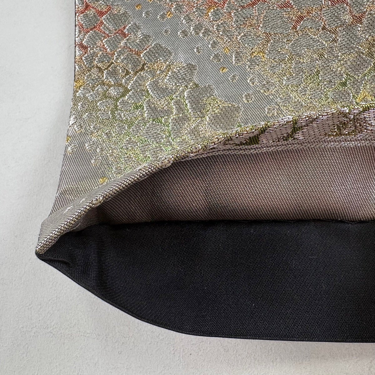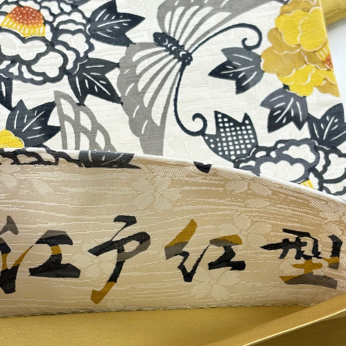 袋帯とは女性用の主にフォーマル用の帯で第一礼装として着用されることが多く、形状は表地にのみ柄があり裏地は無地になるように袋状に織って作成されたため袋帯という名が付きました。 帯を締める際にはおめでたいことが重なりますようにという願いが込められている二重太鼓や成人式の際に振袖に見かけるふくら雀や文庫結びなどの変わり結びを用いて着用します。