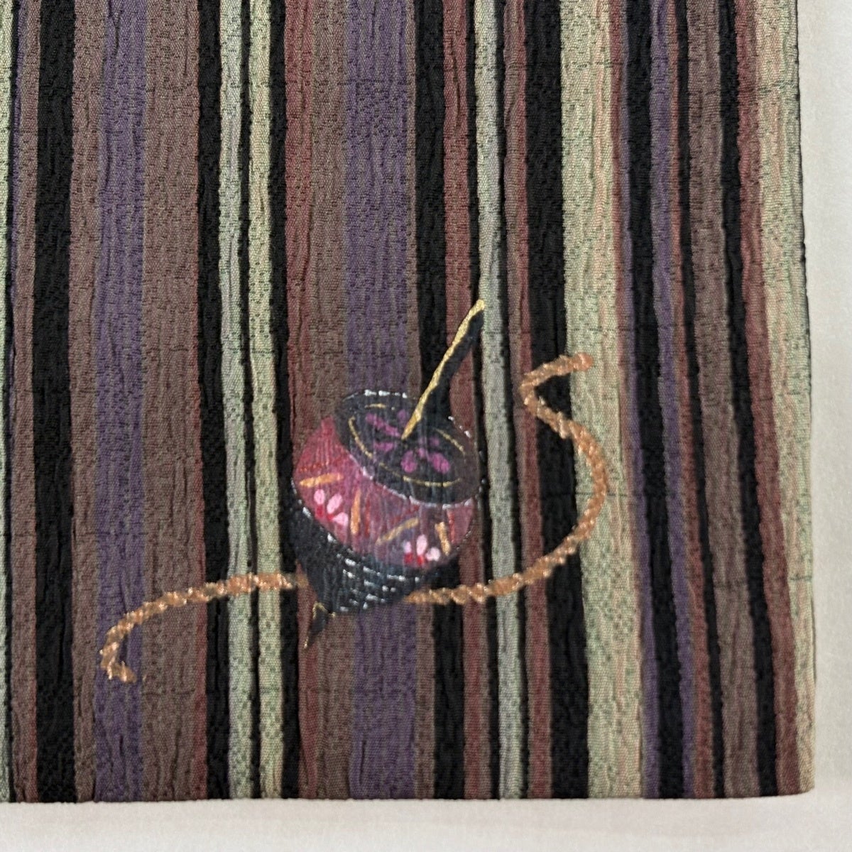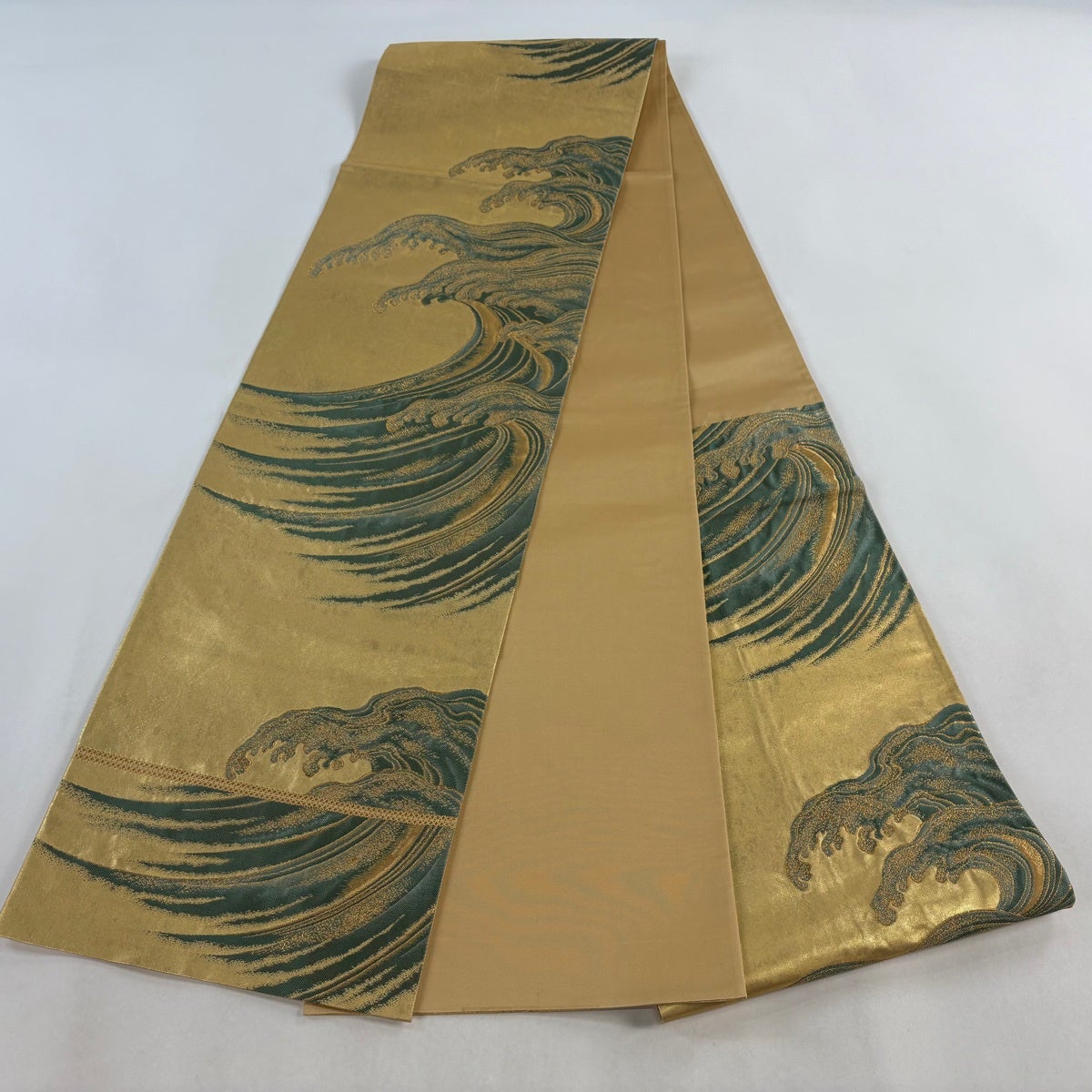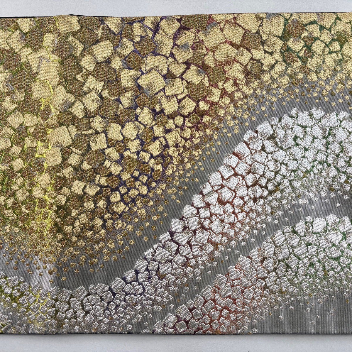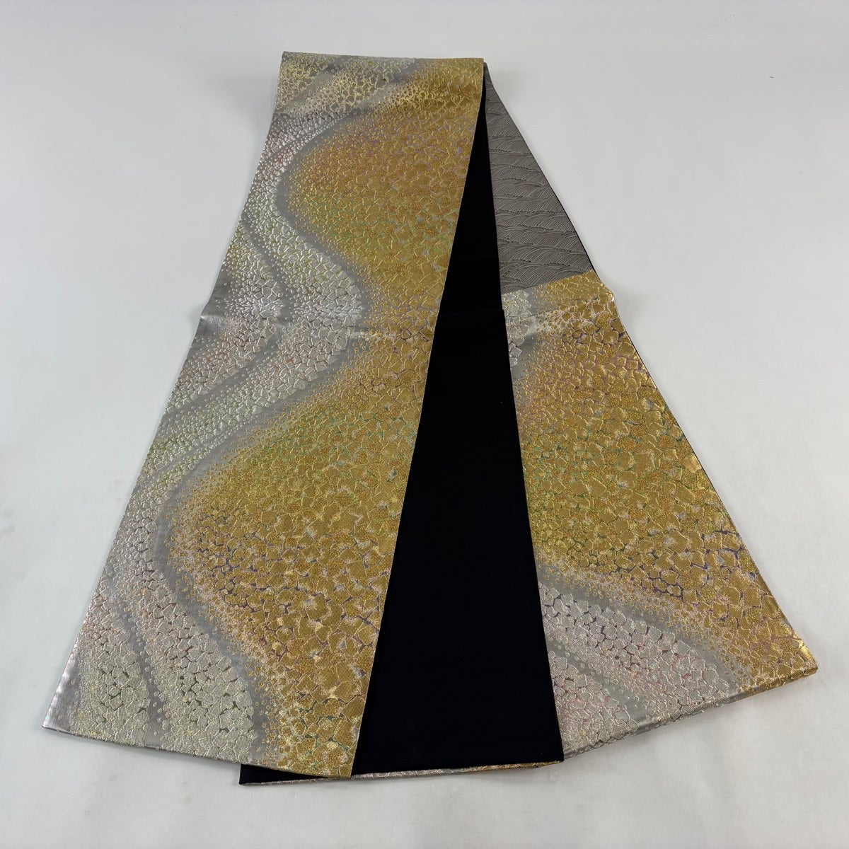 袋帯とは女性用の主にフォーマル用の帯で第一礼装として着用されることが多く、形状は表地にのみ柄があり裏地は無地になるように袋状に織って作成されたため袋帯という名が付きました。 帯を締める際にはおめでたいことが重なりますようにという願いが込められている二重太鼓や成人式の際に振袖に見かけるふくら雀や文庫結びなどの変わり結びを用いて着用します。