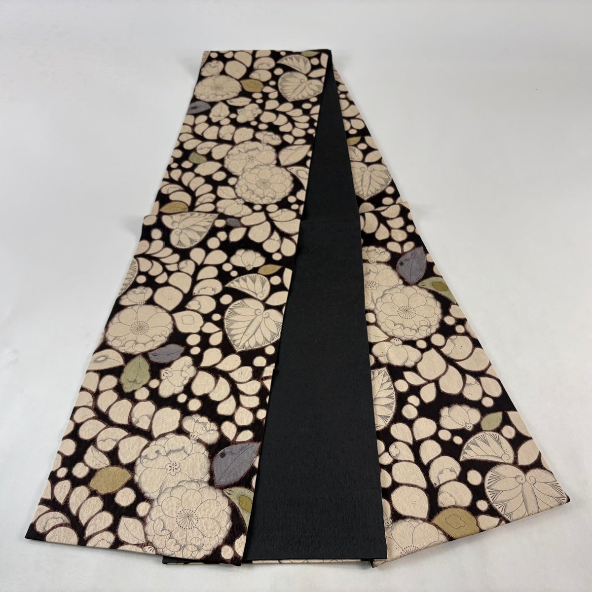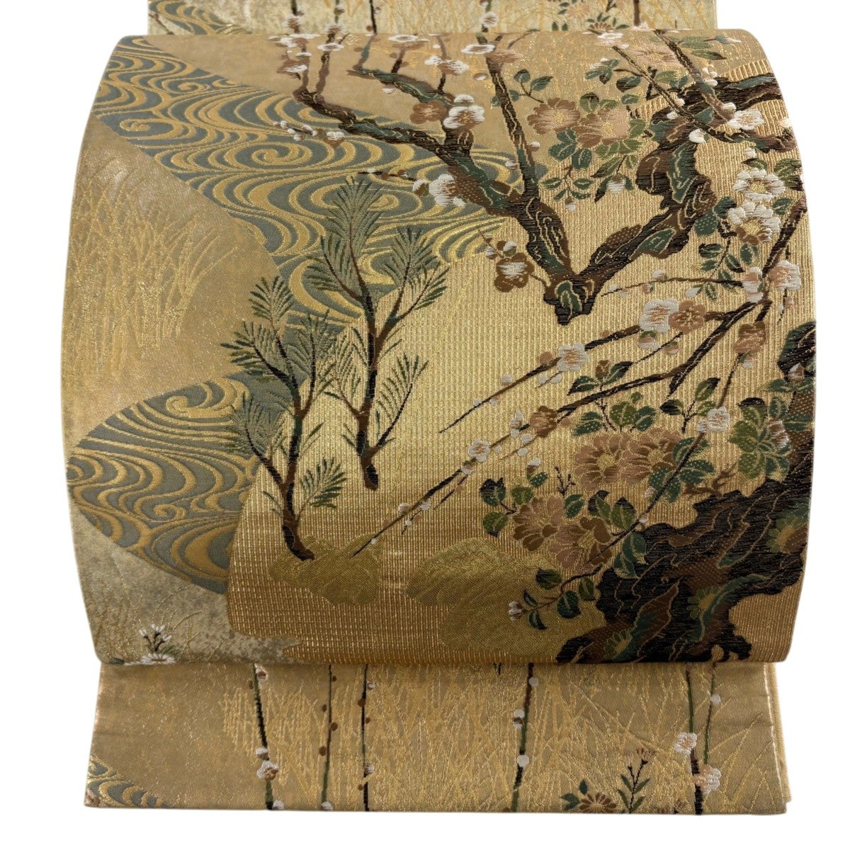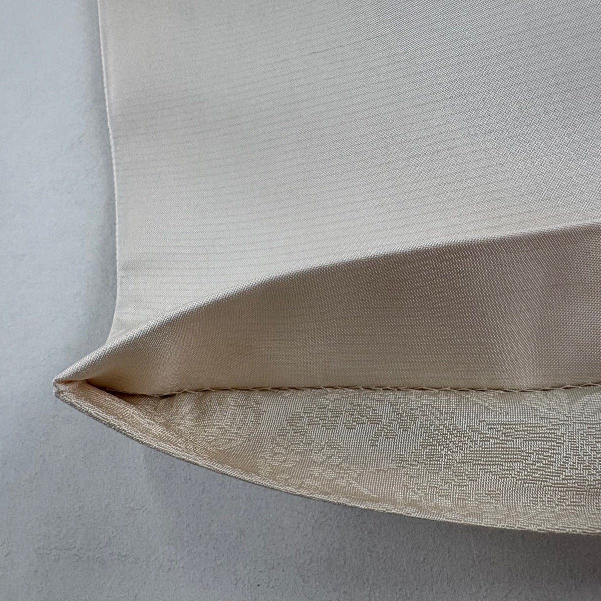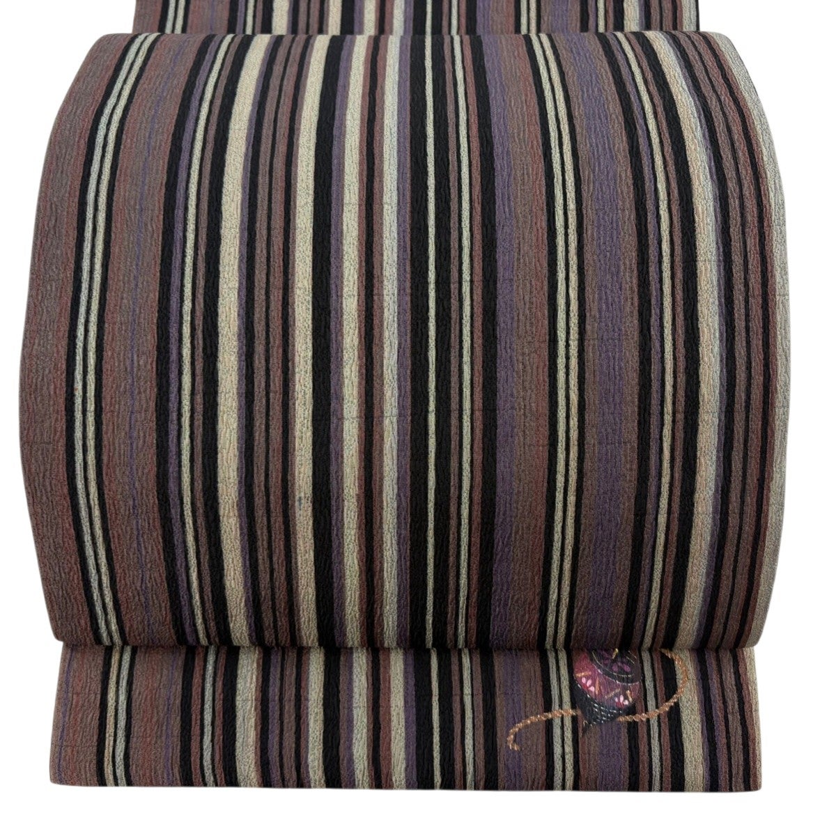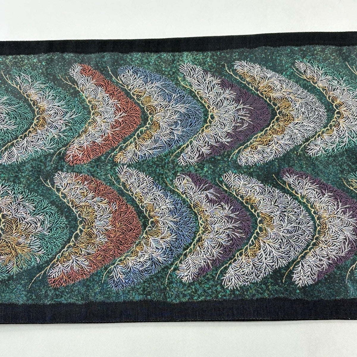袋帯とは女性用の主にフォーマル用の帯で第一礼装として着用されることが多く、形状は表地にのみ柄があり裏地は無地になるように袋状に織って作成されたため袋帯という名が付きました。 帯を締める際にはおめでたいことが重なりますようにという願いが込められている二重太鼓や成人式の際に振袖に見かけるふくら雀や文庫結びなどの変わり結びを用いて着用します。