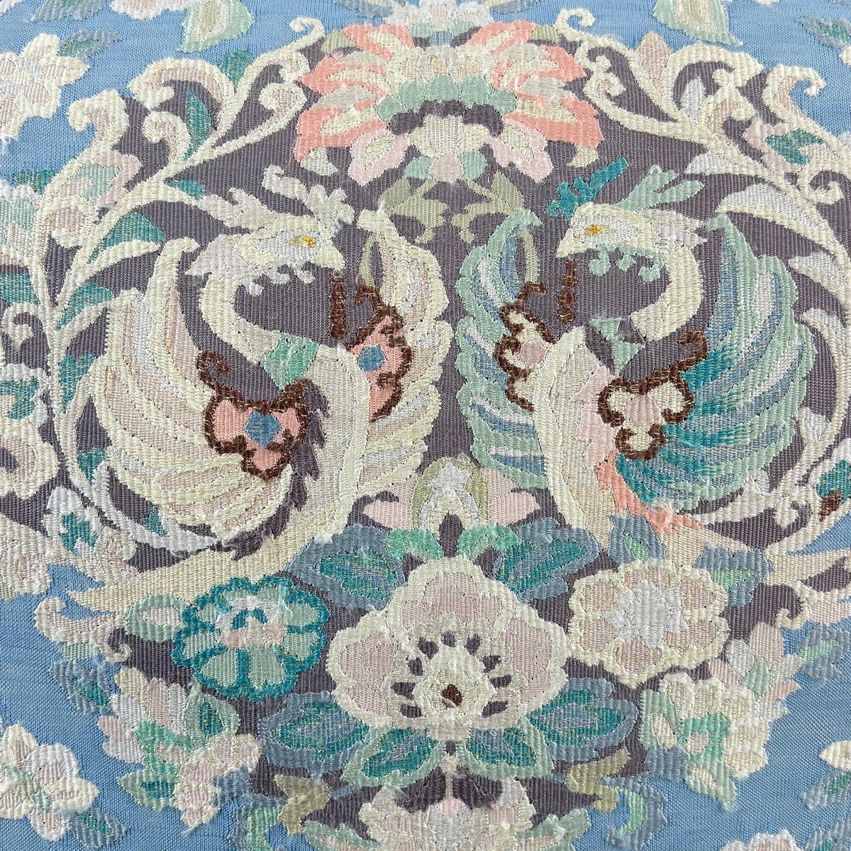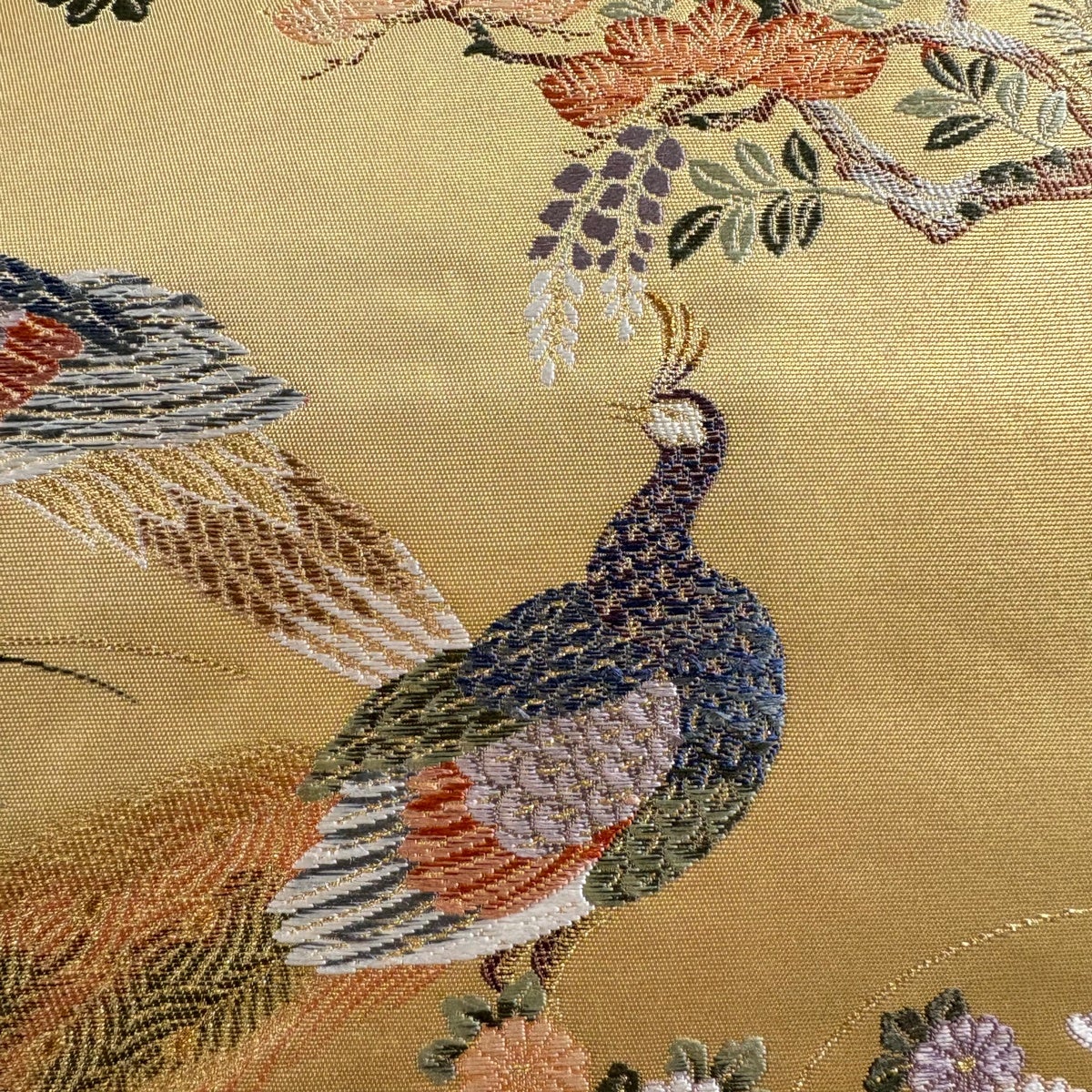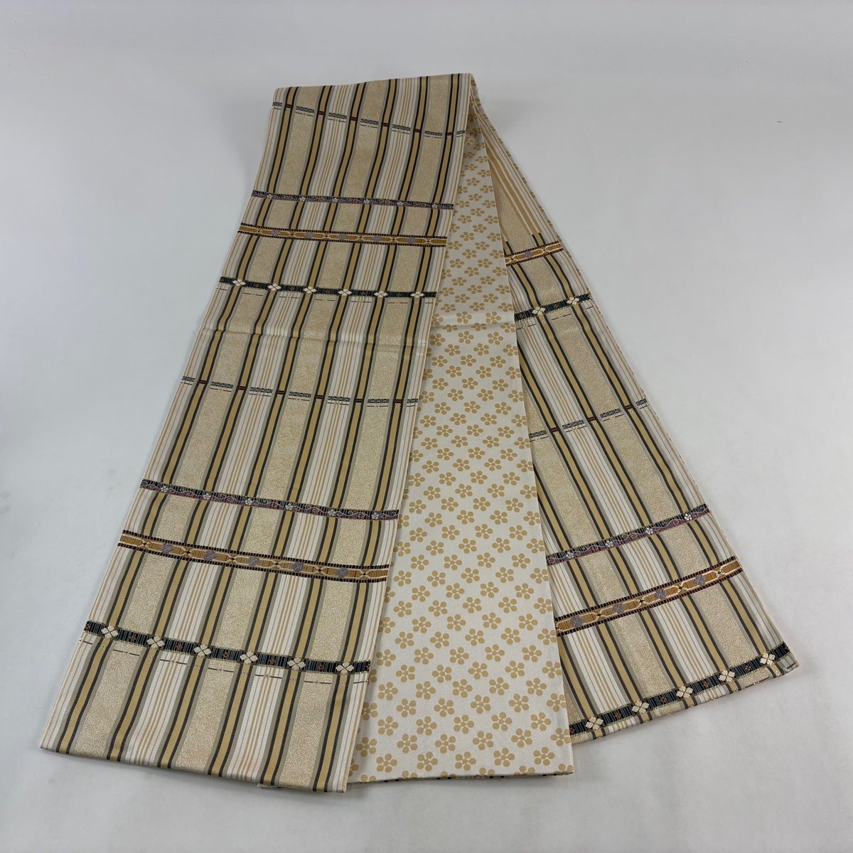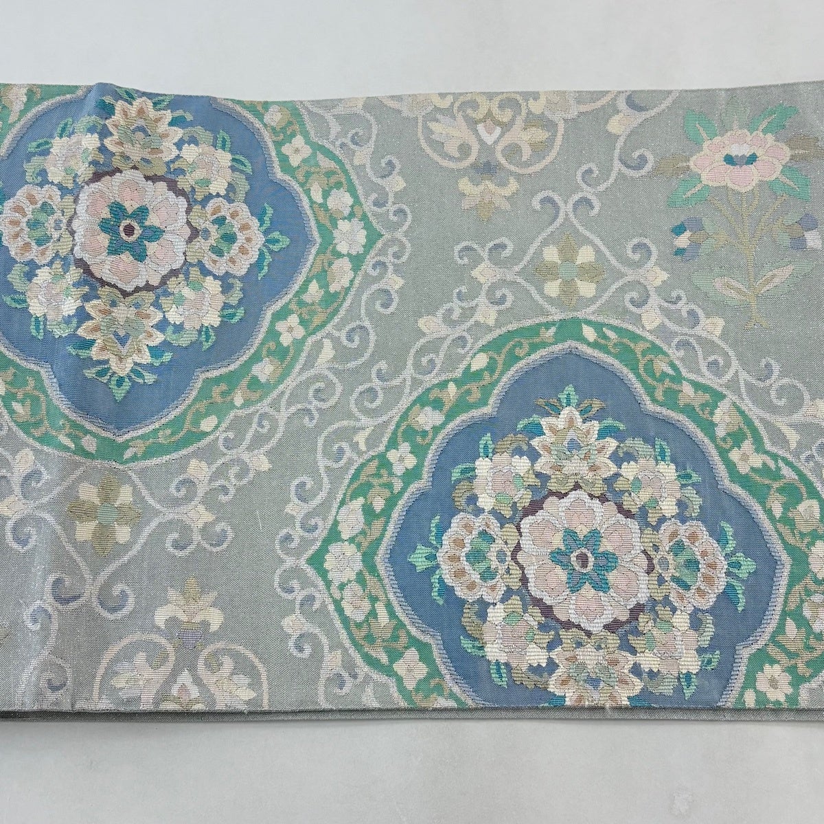 袋帯とは女性用の主にフォーマル用の帯で第一礼装として着用されることが多く、形状は表地にのみ柄があり裏地は無地になるように袋状に織って作成されたため袋帯という名が付きました。 帯を締める際にはおめでたいことが重なりますようにという願いが込められている二重太鼓や成人式の際に振袖に見かけるふくら雀や文庫結びなどの変わり結びを用いて着用します。