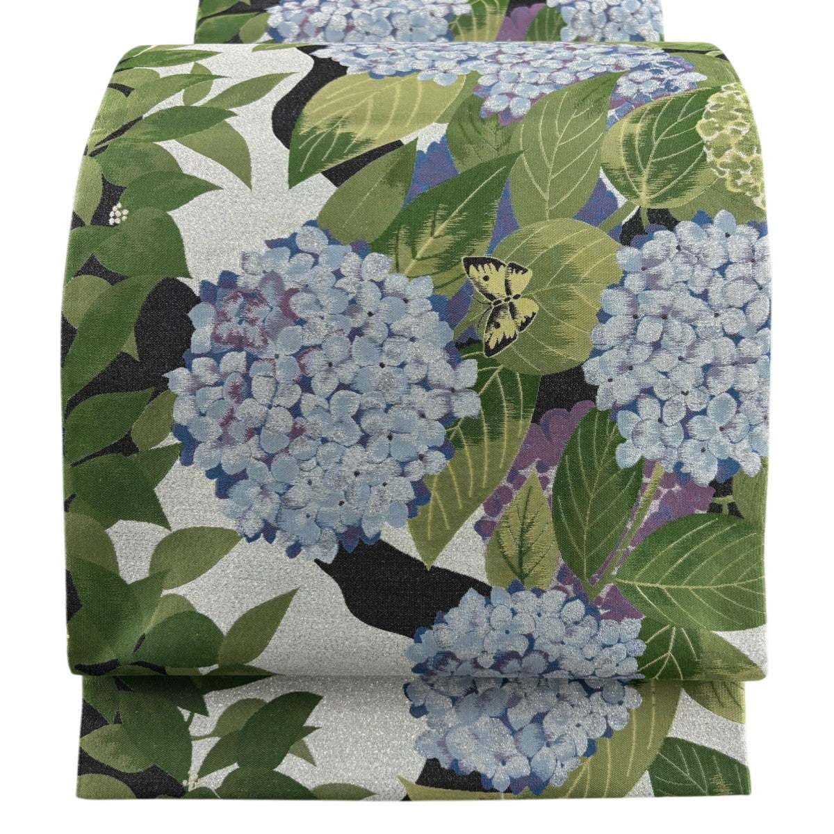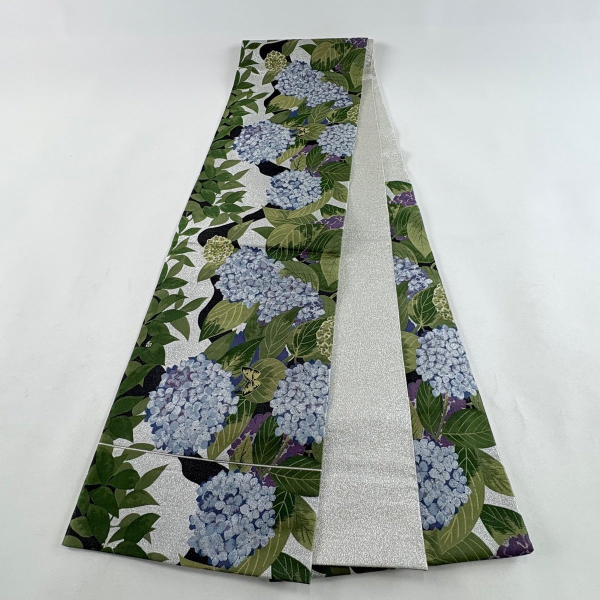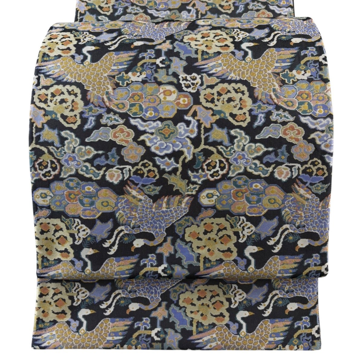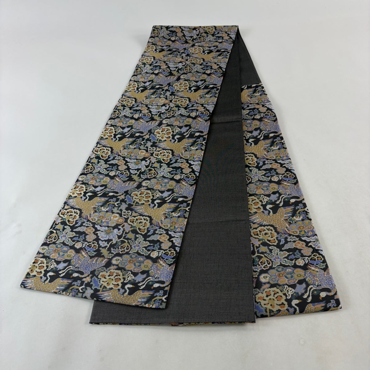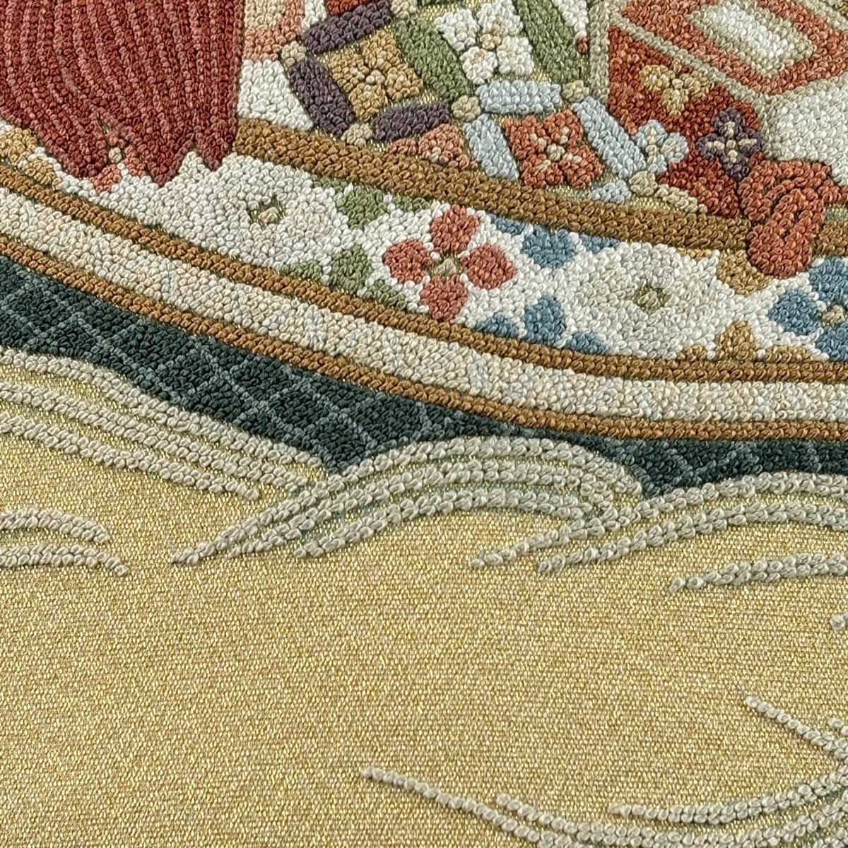 袋帯とは女性用の主にフォーマル用の帯で第一礼装として着用されることが多く、形状は表地にのみ柄があり裏地は無地になるように袋状に織って作成されたため袋帯という名が付きました。 帯を締める際にはおめでたいことが重なりますようにという願いが込められている二重太鼓や成人式の際に振袖に見かけるふくら雀や文庫結びなどの変わり結びを用いて着用します。