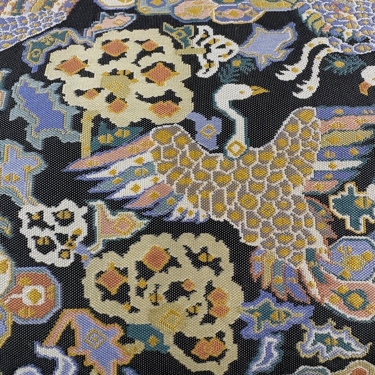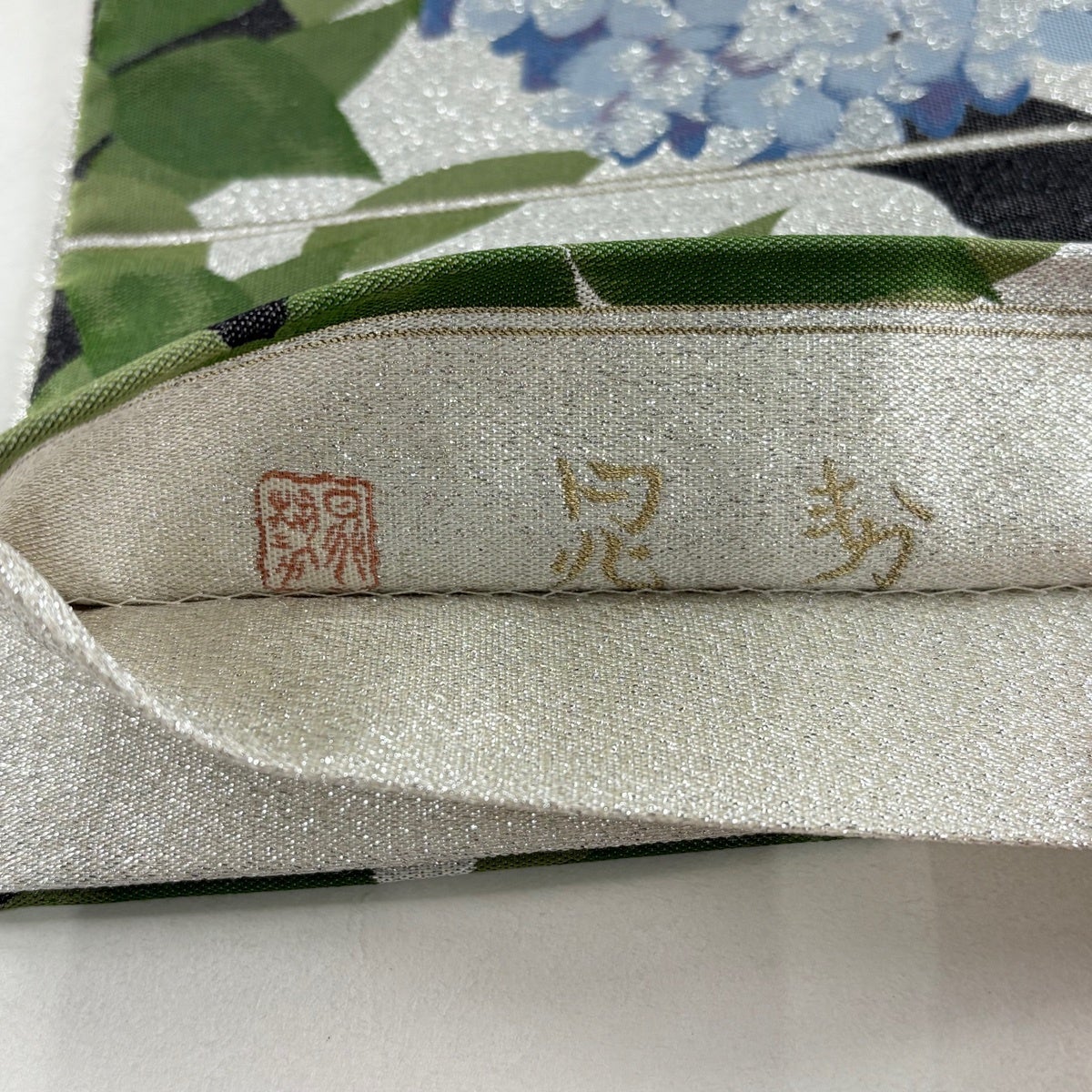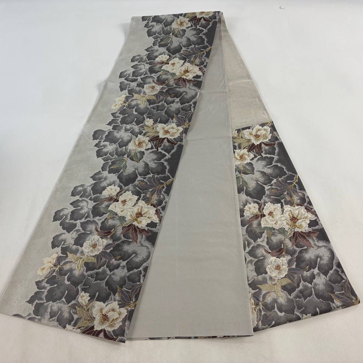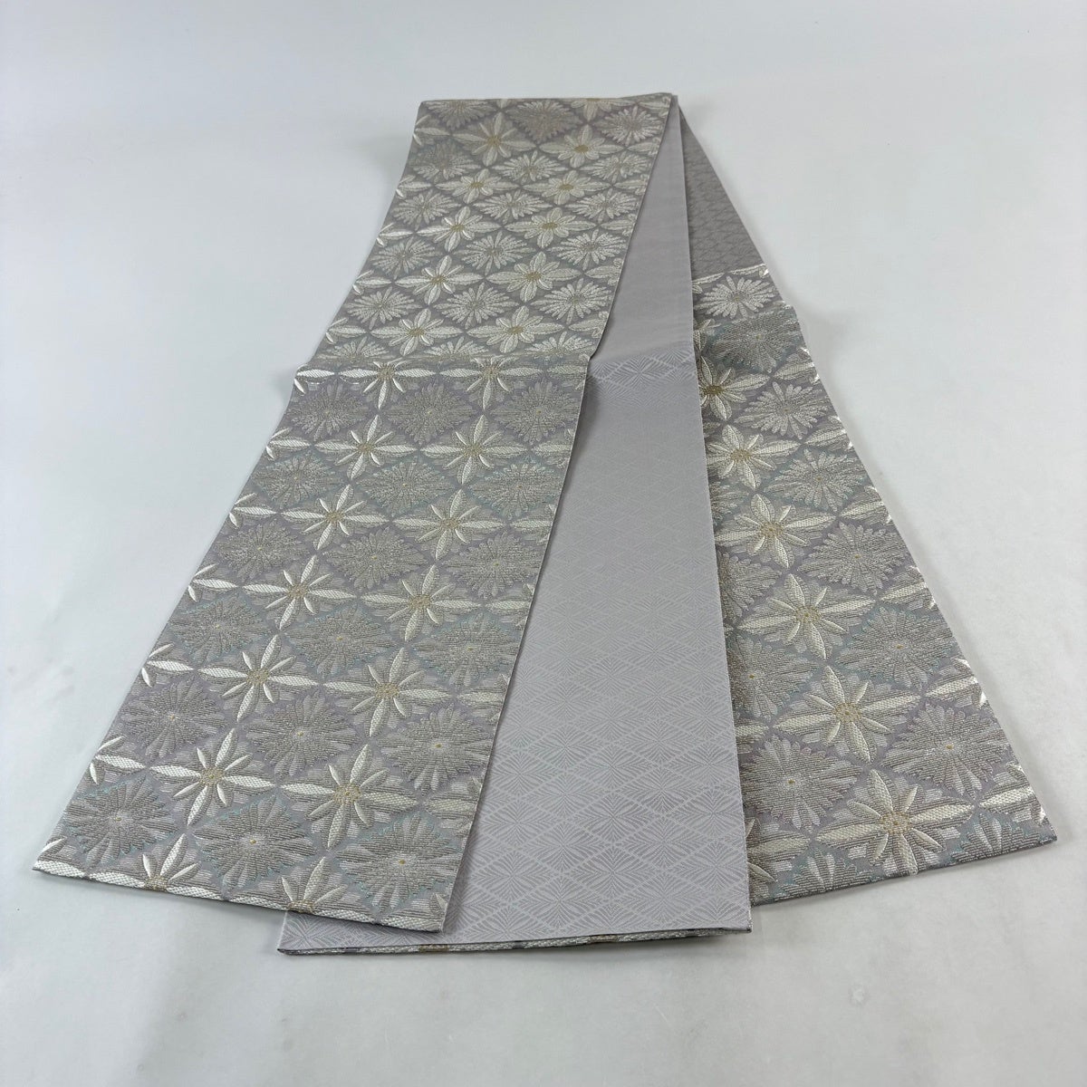 袋帯とは女性用の主にフォーマル用の帯で第一礼装として着用されることが多く、形状は表地にのみ柄があり裏地は無地になるように袋状に織って作成されたため袋帯という名が付きました。 帯を締める際にはおめでたいことが重なりますようにという願いが込められている二重太鼓や成人式の際に振袖に見かけるふくら雀や文庫結びなどの変わり結びを用いて着用します。