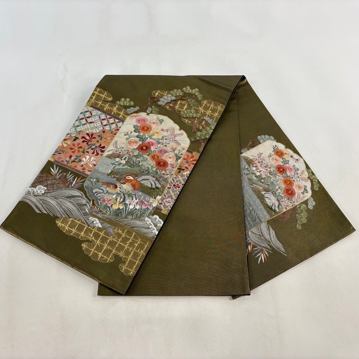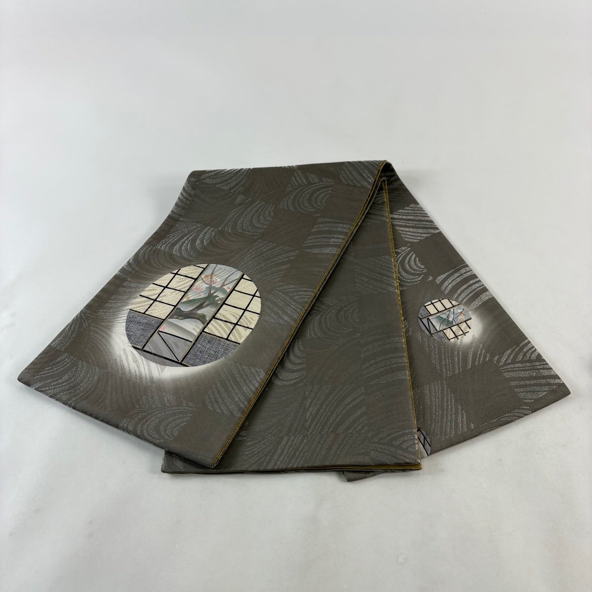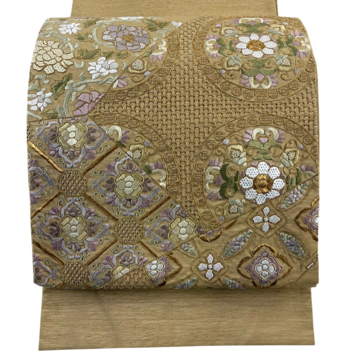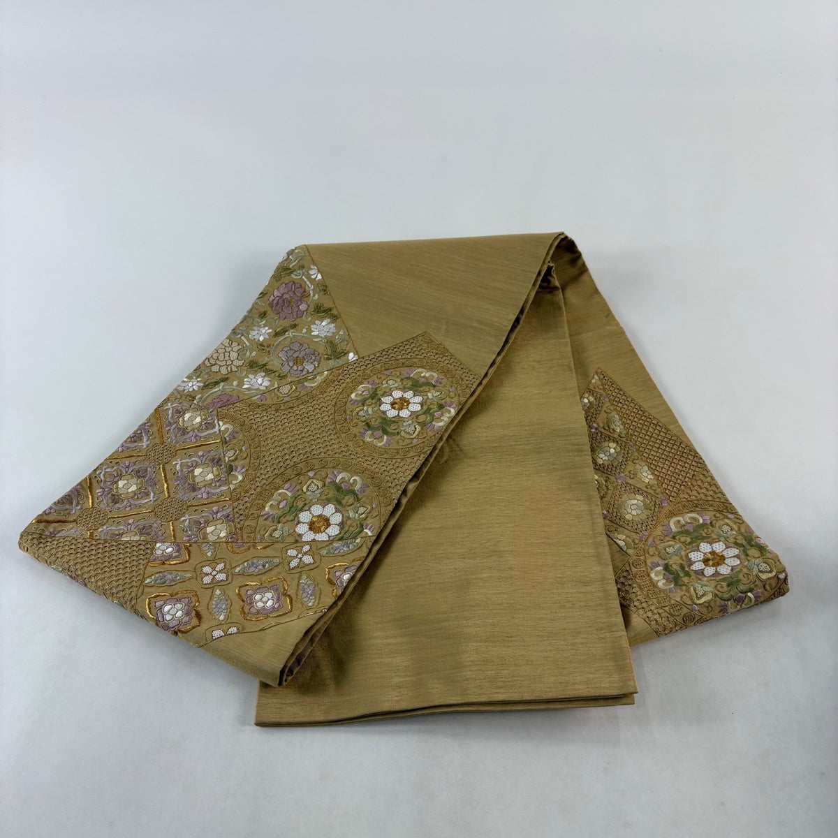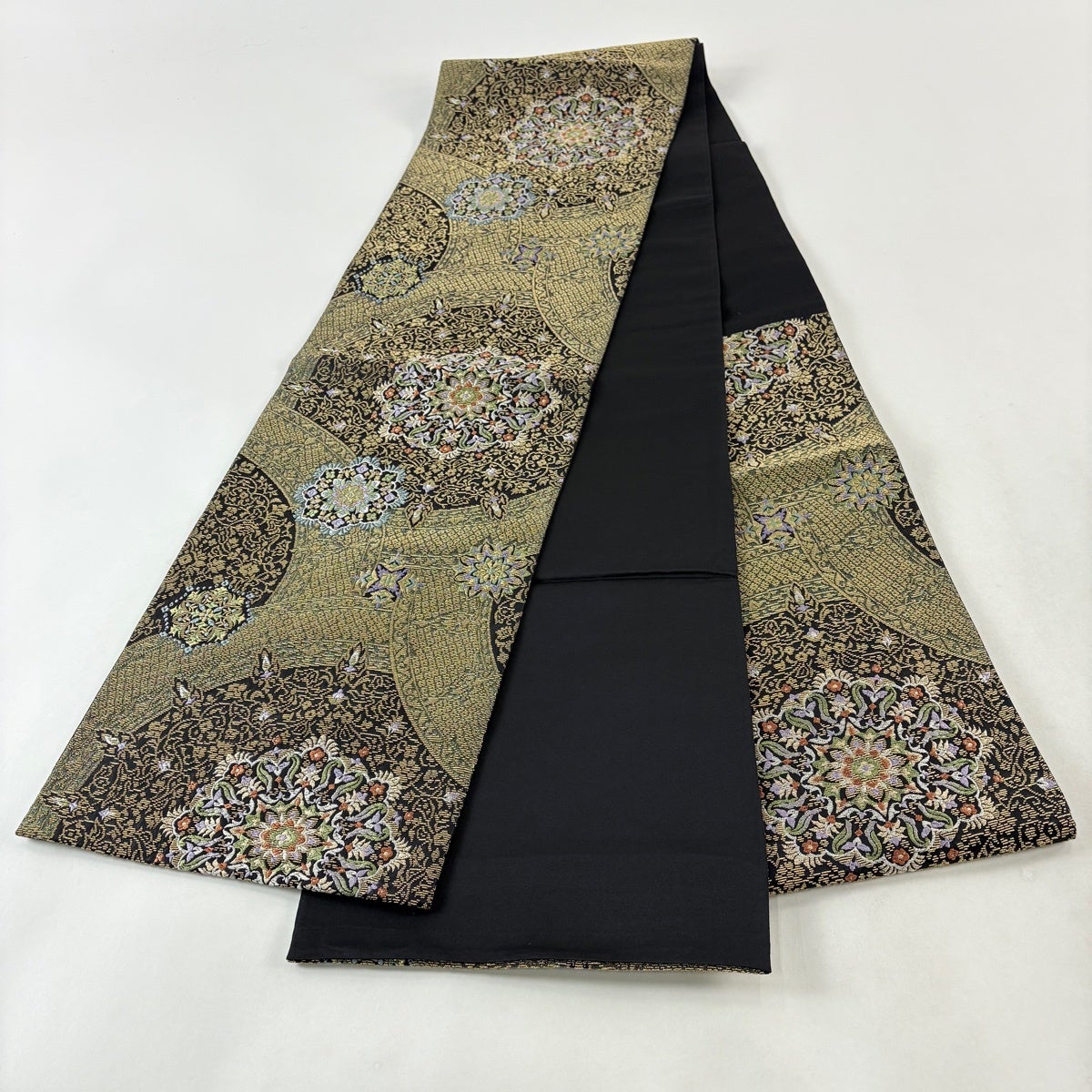 袋帯とは女性用の主にフォーマル用の帯で第一礼装として着用されることが多く、形状は表地にのみ柄があり裏地は無地になるように袋状に織って作成されたため袋帯という名が付きました。 帯を締める際にはおめでたいことが重なりますようにという願いが込められている二重太鼓や成人式の際に振袖に見かけるふくら雀や文庫結びなどの変わり結びを用いて着用します。