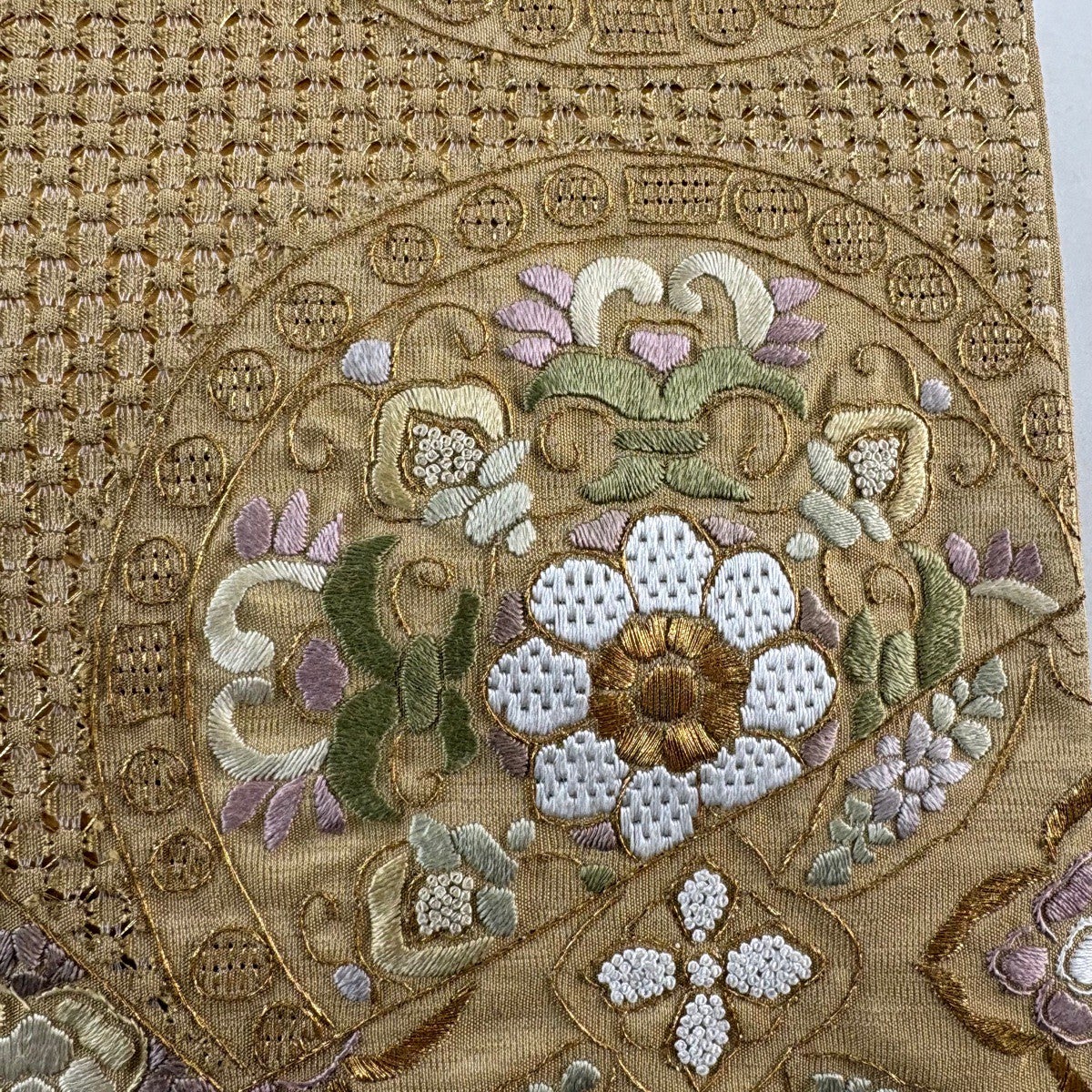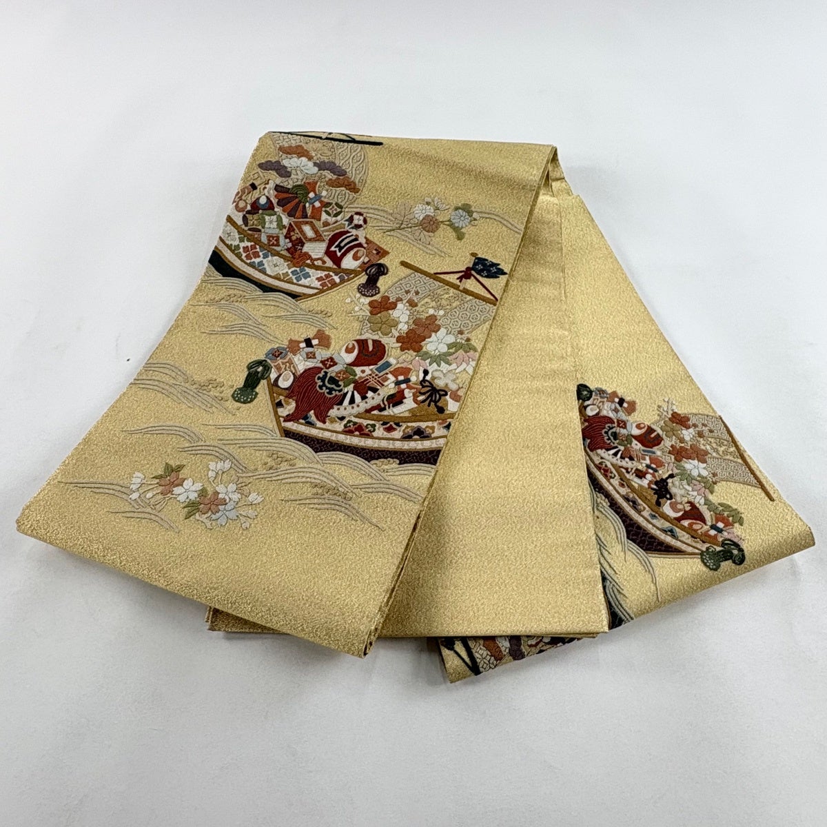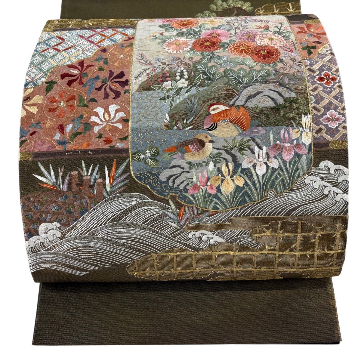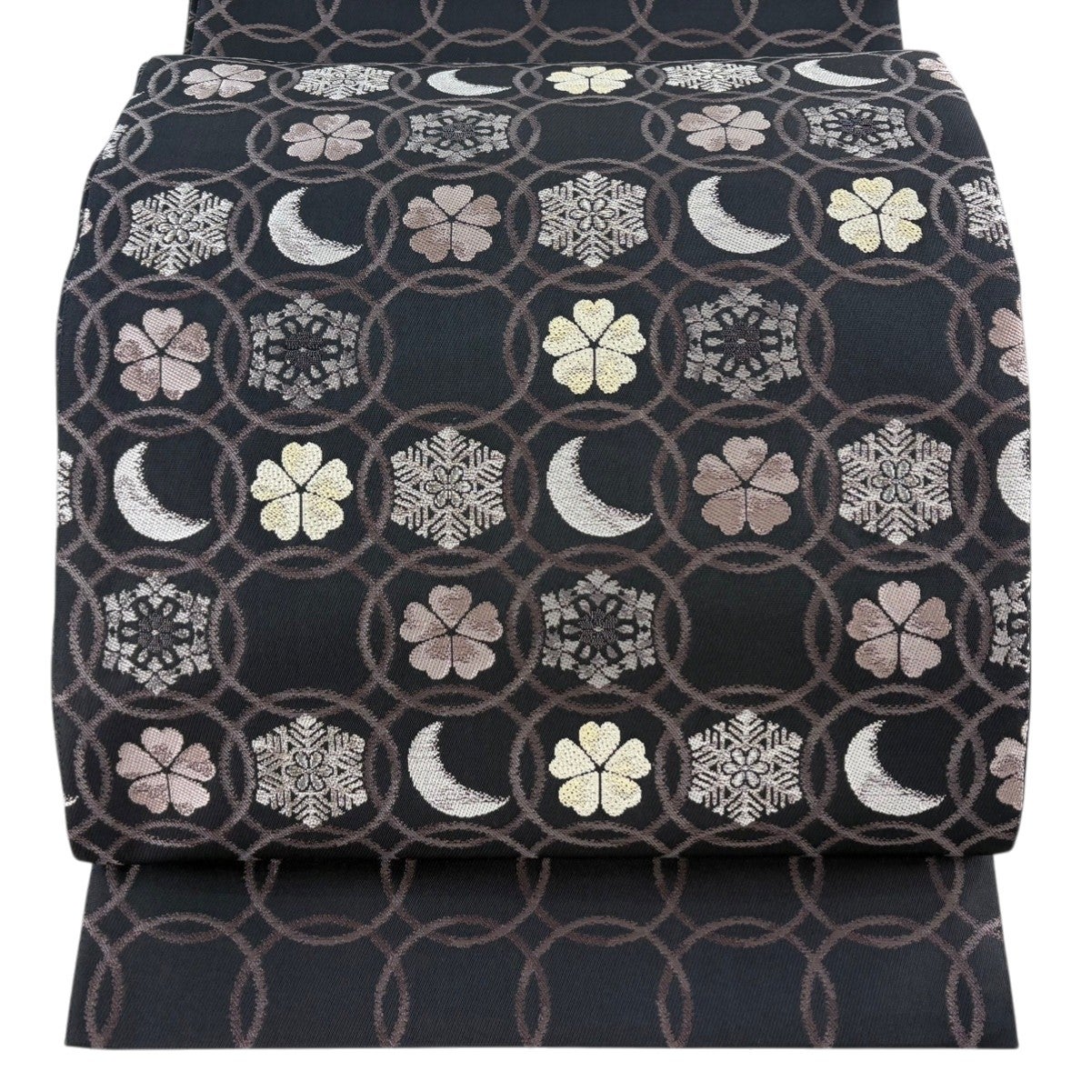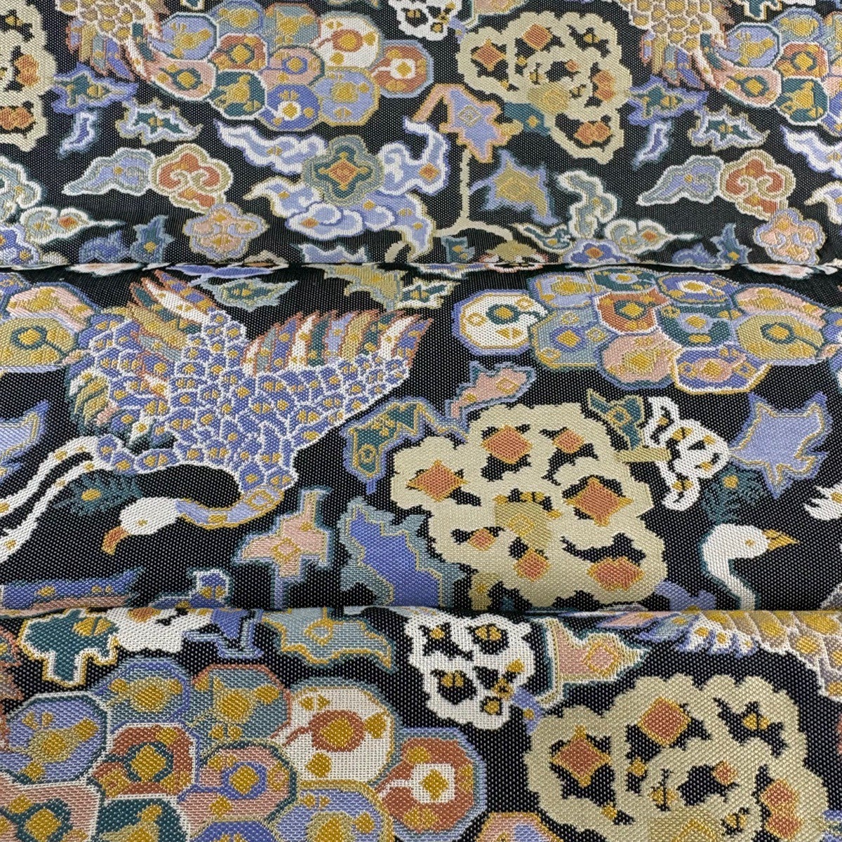 袋帯とは女性用の主にフォーマル用の帯で第一礼装として着用されることが多く、形状は表地にのみ柄があり裏地は無地になるように袋状に織って作成されたため袋帯という名が付きました。 帯を締める際にはおめでたいことが重なりますようにという願いが込められている二重太鼓や成人式の際に振袖に見かけるふくら雀や文庫結びなどの変わり結びを用いて着用します。