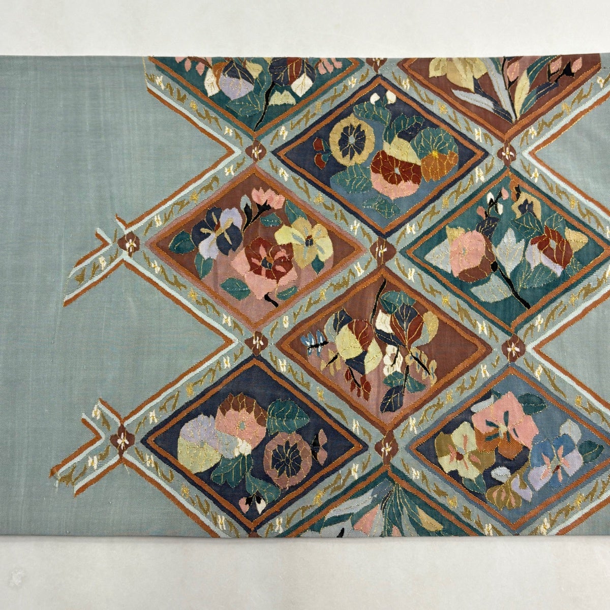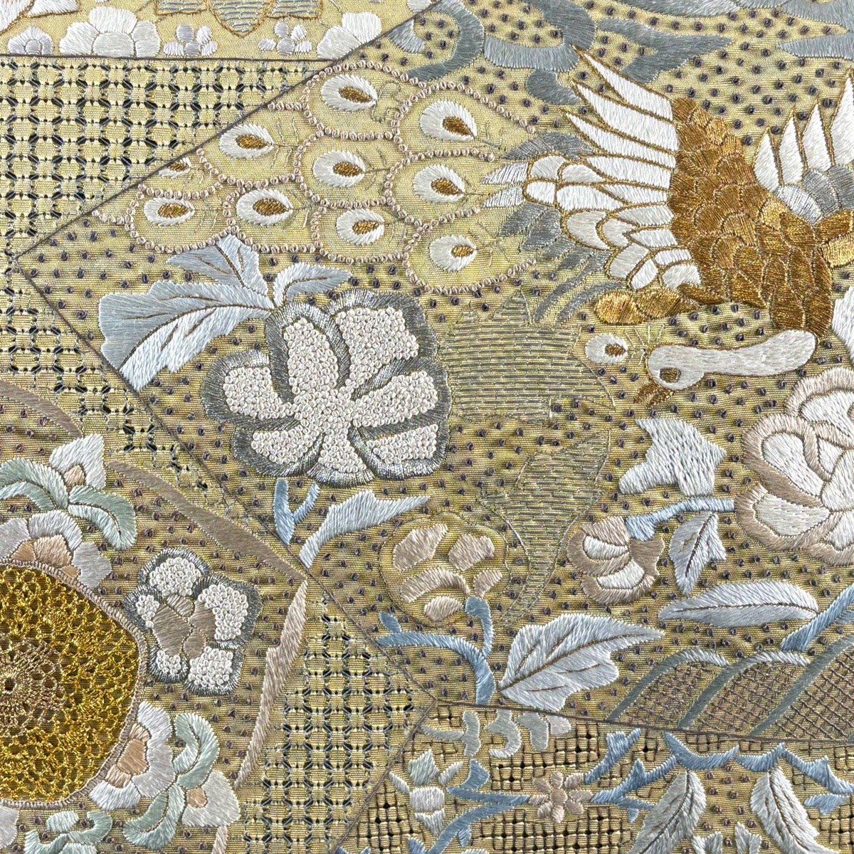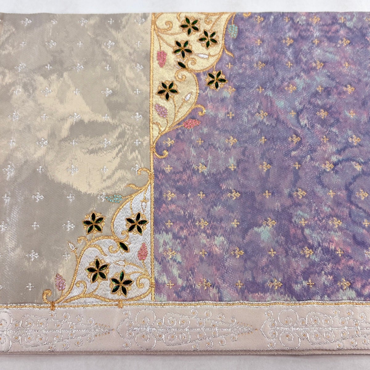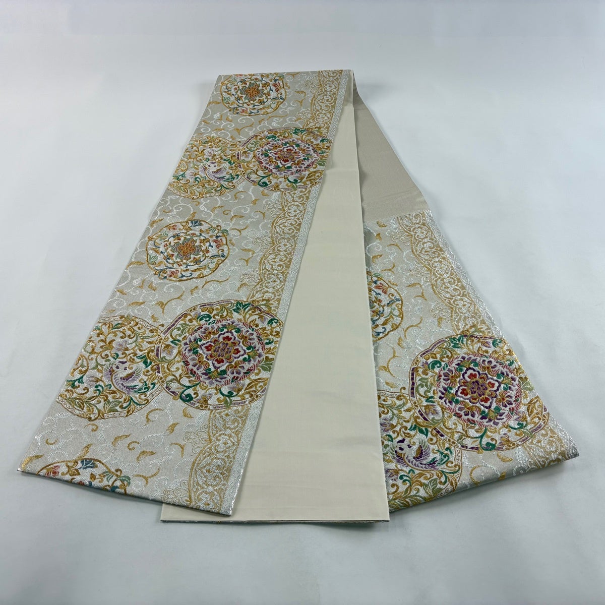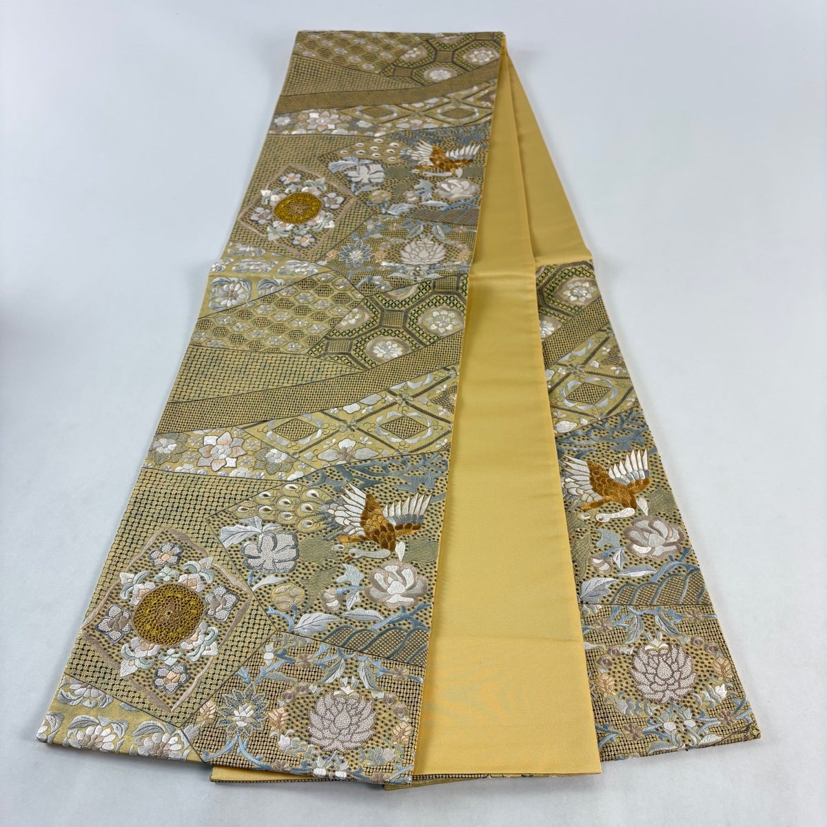 他の画像を見る 20%OFF 【美品】 袋帯 逸品 壱阡八百口織 ニ図全通袋帯 手先二通り 梅花皓月図 御印菊花文 箔 金糸 銀色 全通 正絹 K30 当店通常価格 ¥ 36,800 ¥ 29,440 税込 在庫切れ