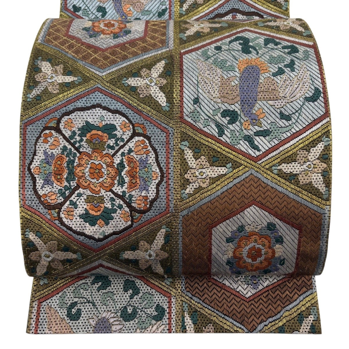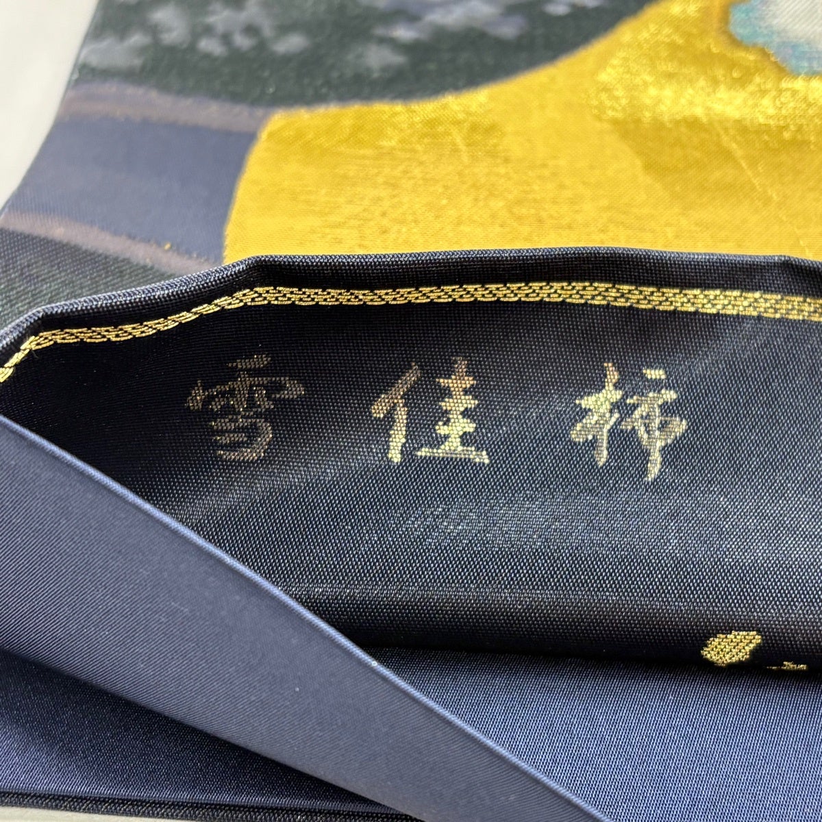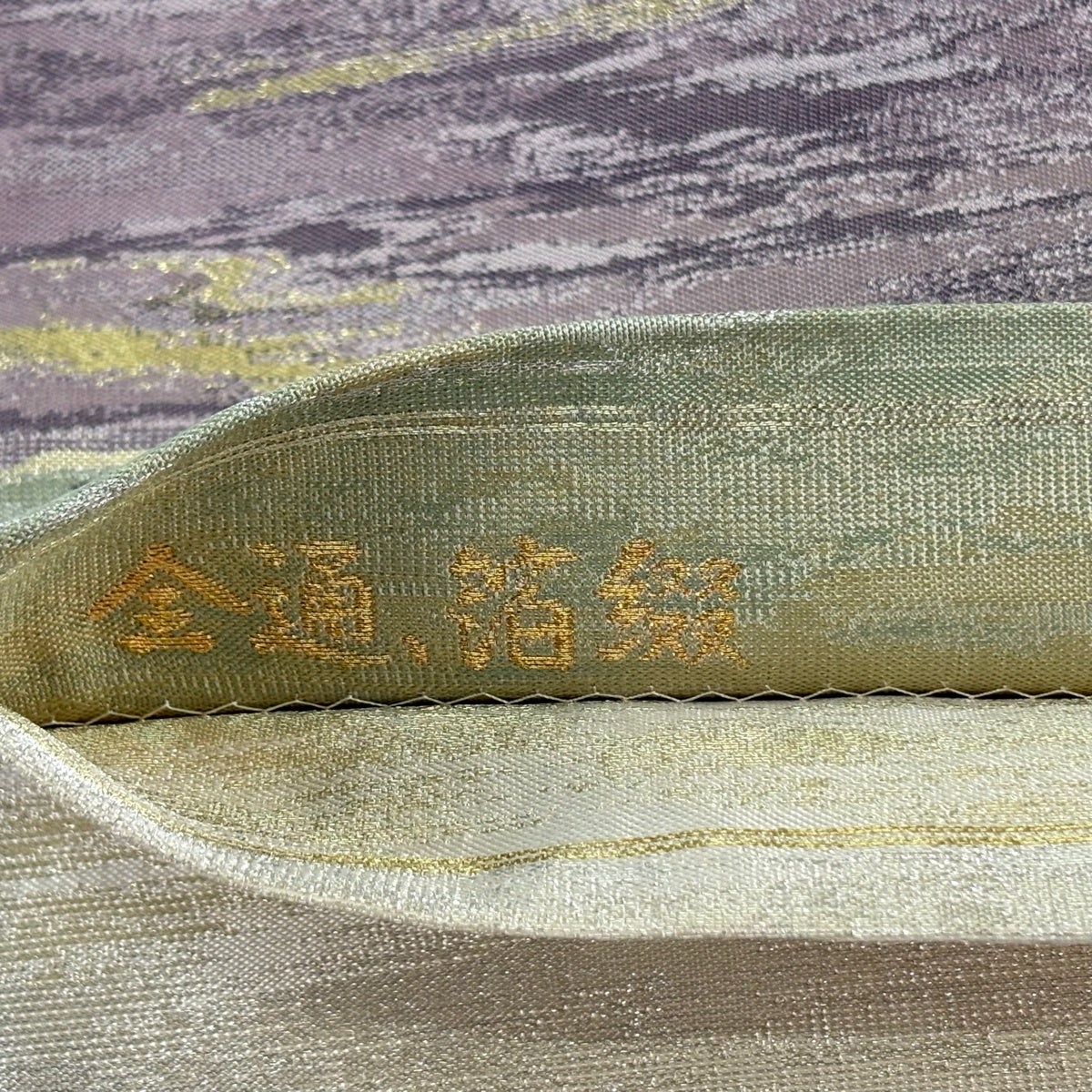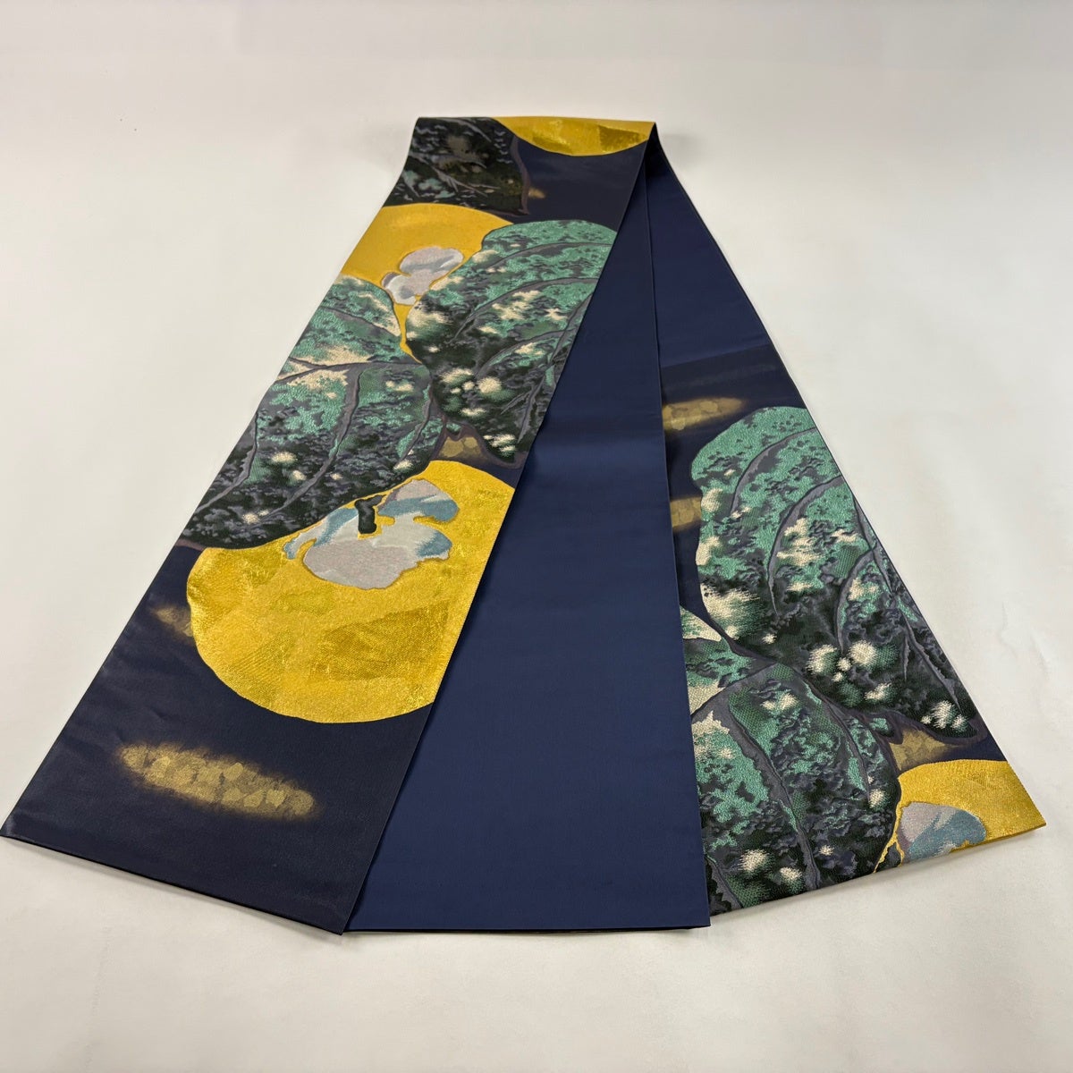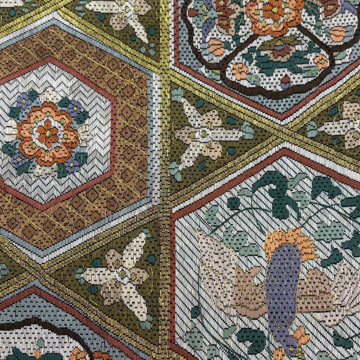 袋帯とは女性用の主にフォーマル用の帯で第一礼装として着用されることが多く、形状は表地にのみ柄があり裏地は無地になるように袋状に織って作成されたため袋帯という名が付きました。 帯を締める際にはおめでたいことが重なりますようにという願いが込められている二重太鼓や成人式の際に振袖に見かけるふくら雀や文庫結びなどの変わり結びを用いて着用します。