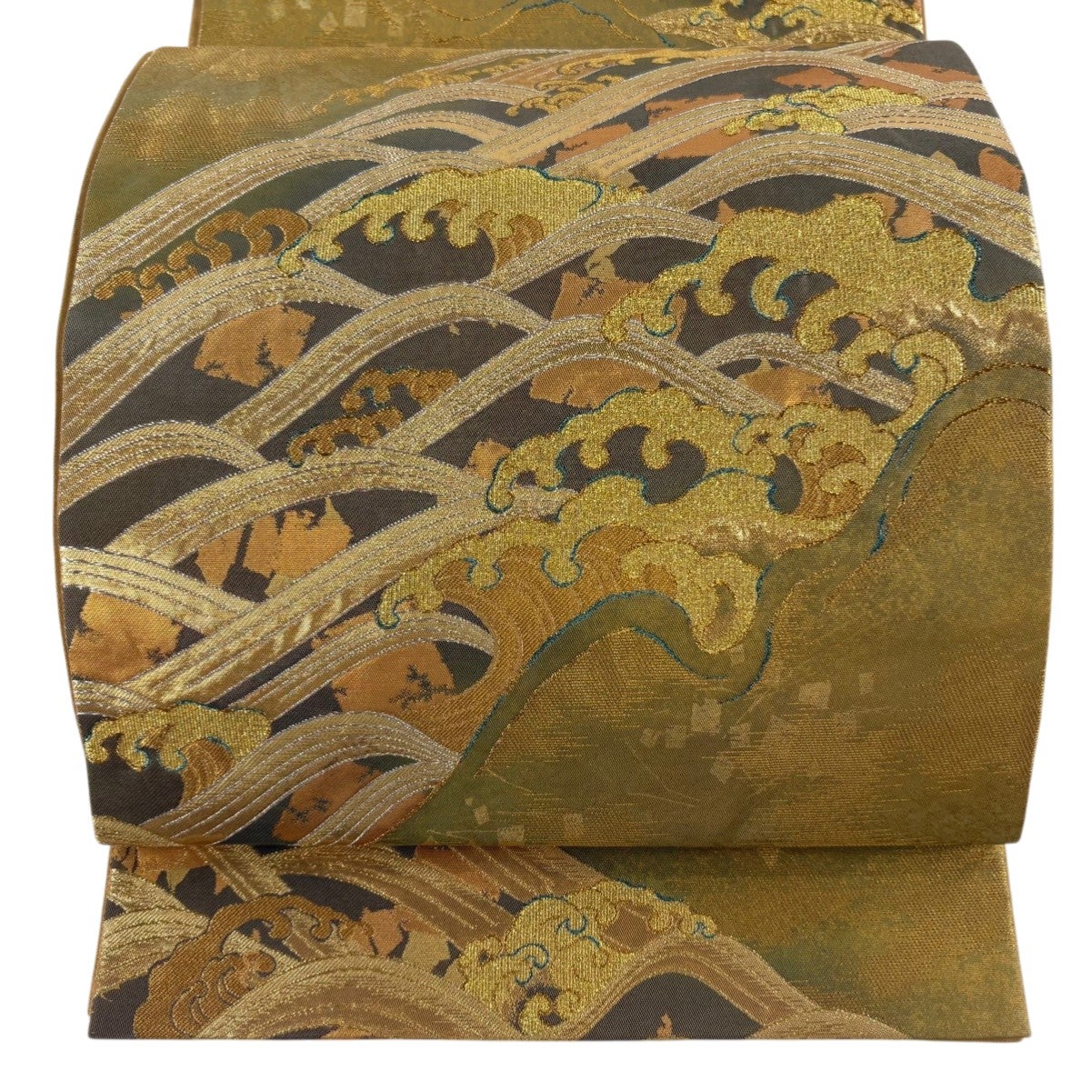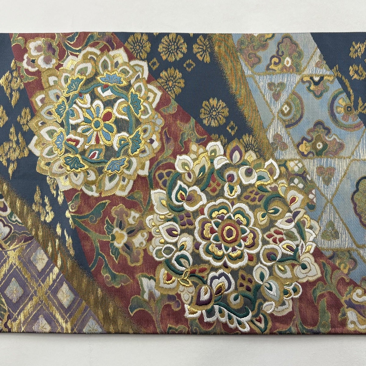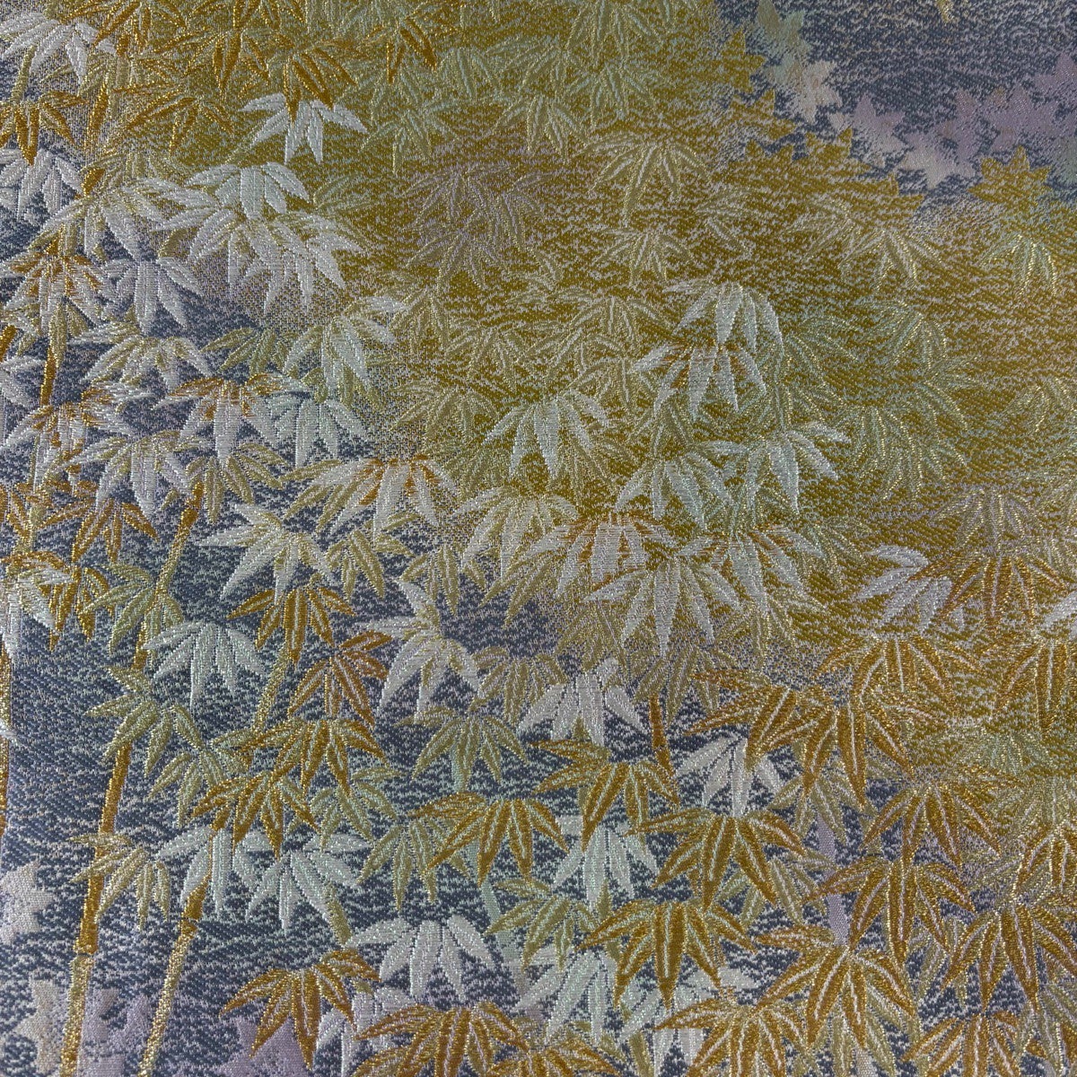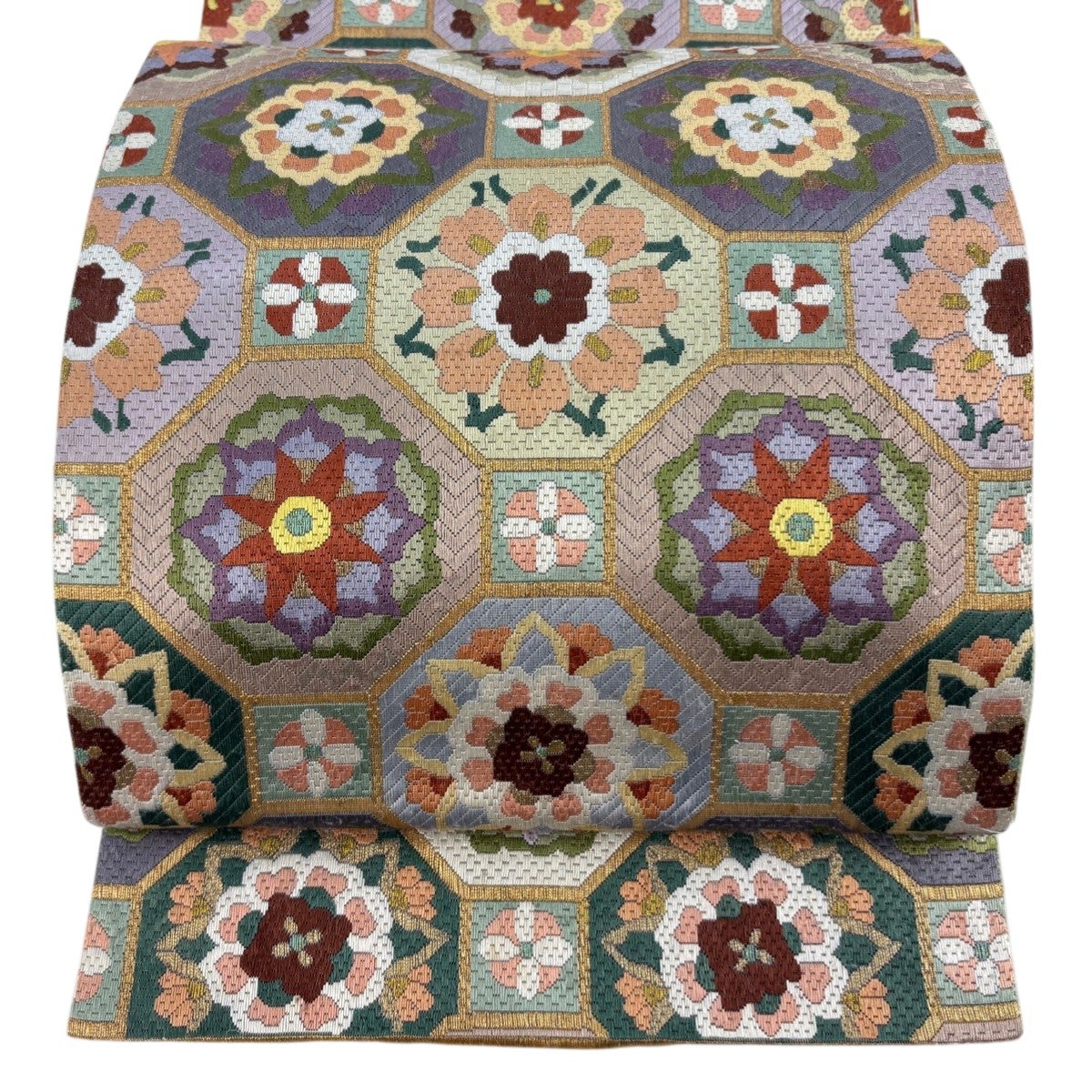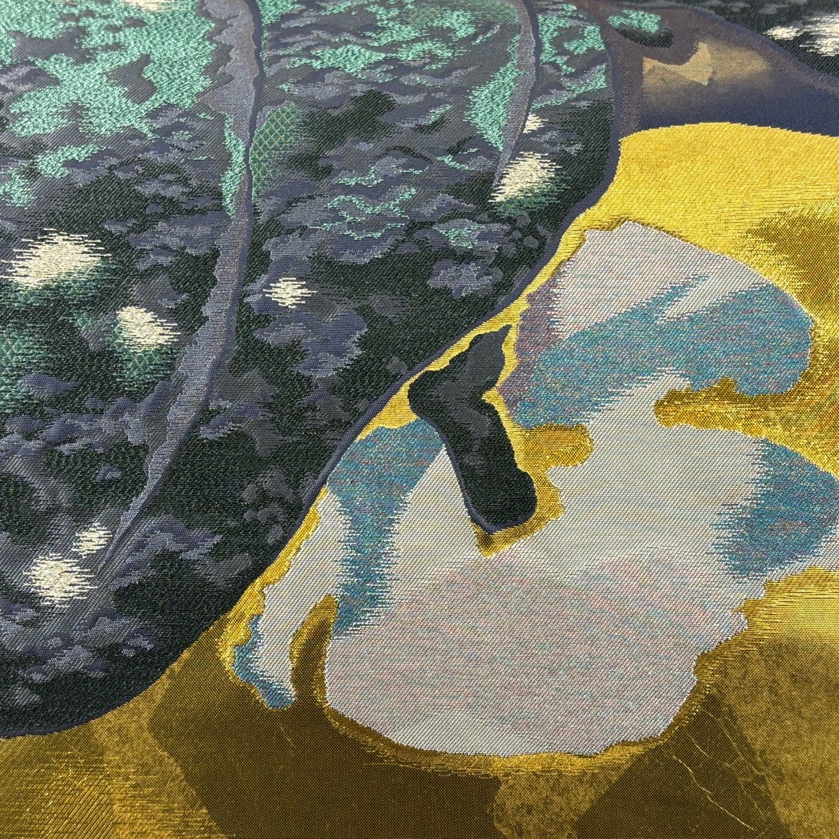 袋帯とは女性用の主にフォーマル用の帯で第一礼装として着用されることが多く、形状は表地にのみ柄があり裏地は無地になるように袋状に織って作成されたため袋帯という名が付きました。 帯を締める際にはおめでたいことが重なりますようにという願いが込められている二重太鼓や成人式の際に振袖に見かけるふくら雀や文庫結びなどの変わり結びを用いて着用します。