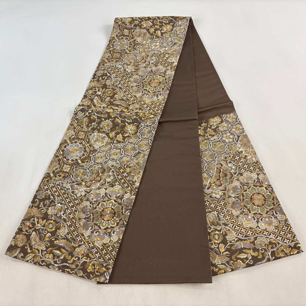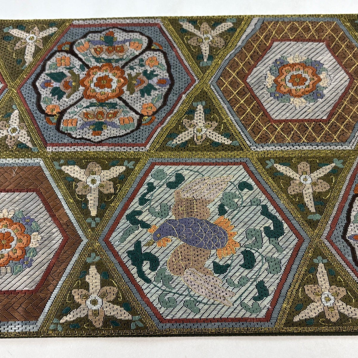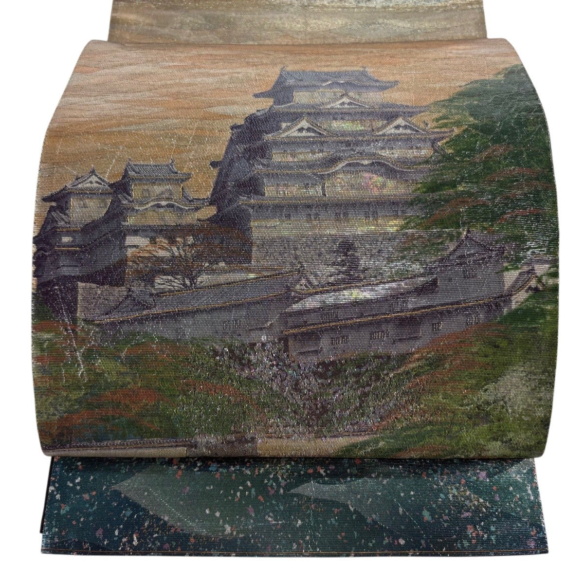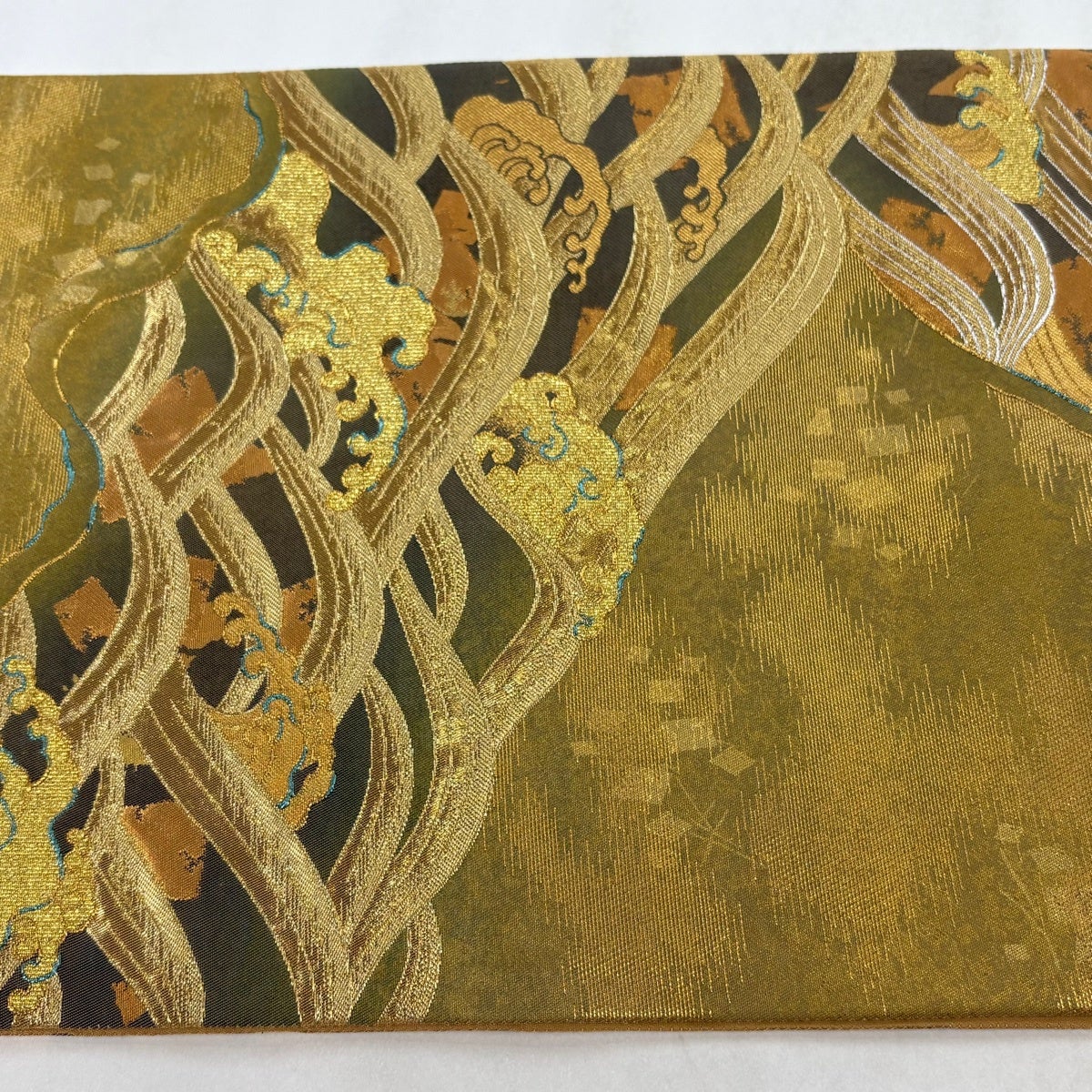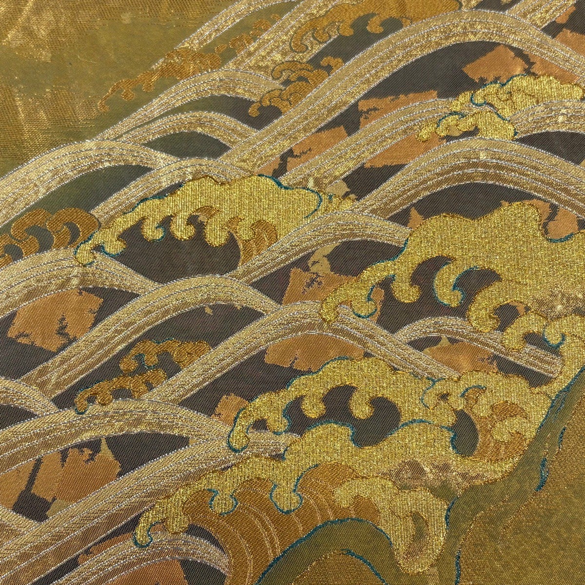 袋帯とは女性用の主にフォーマル用の帯で第一礼装として着用されることが多く、形状は表地にのみ柄があり裏地は無地になるように袋状に織って作成されたため袋帯という名が付きました。 帯を締める際にはおめでたいことが重なりますようにという願いが込められている二重太鼓や成人式の際に振袖に見かけるふくら雀や文庫結びなどの変わり結びを用いて着用します。