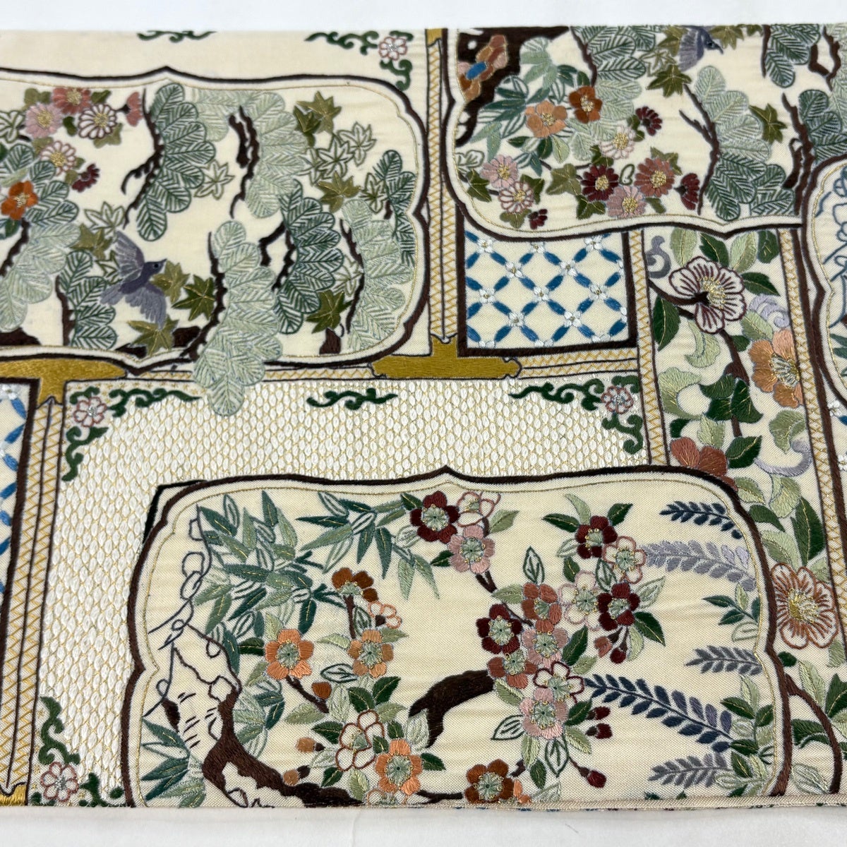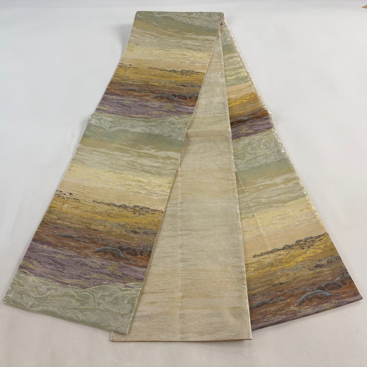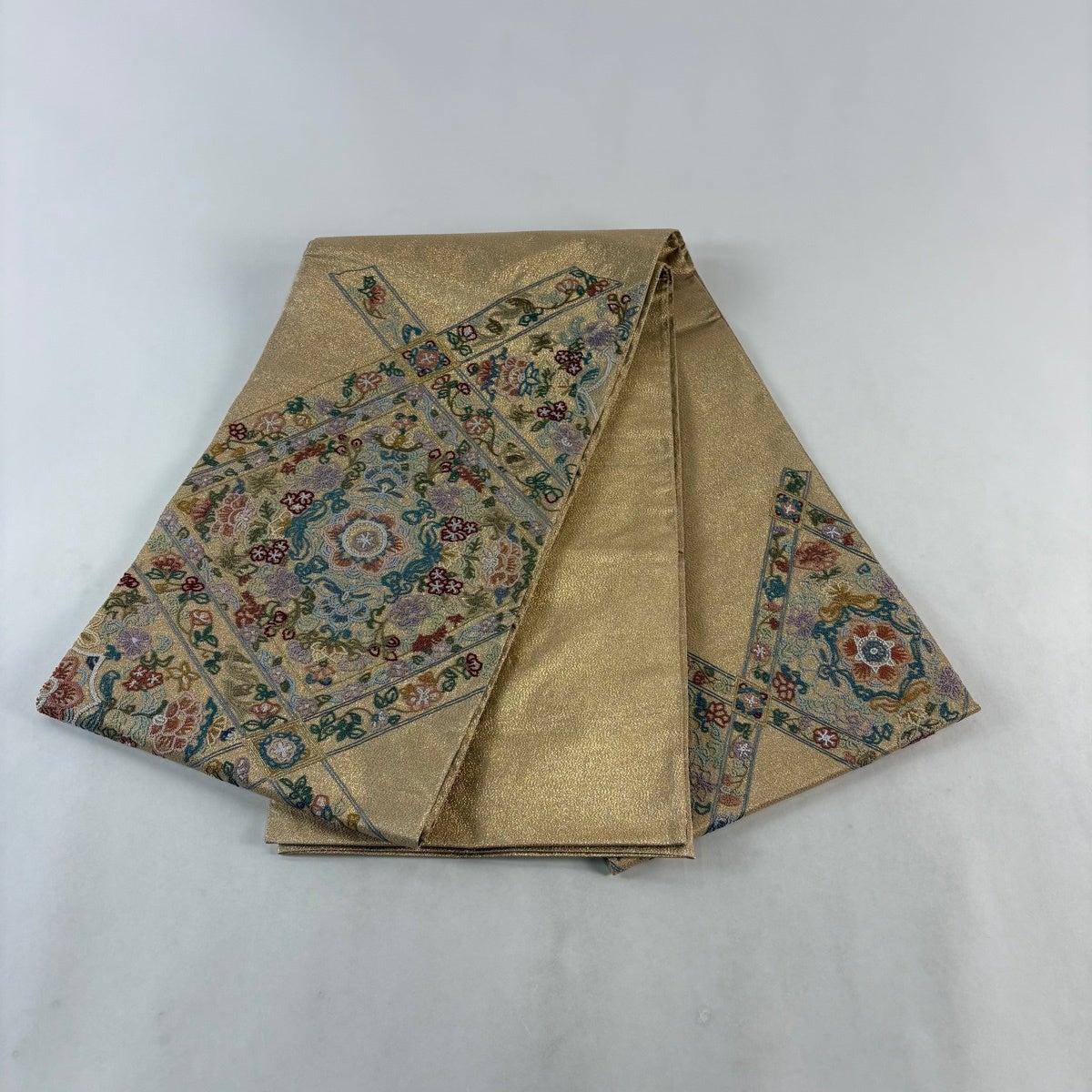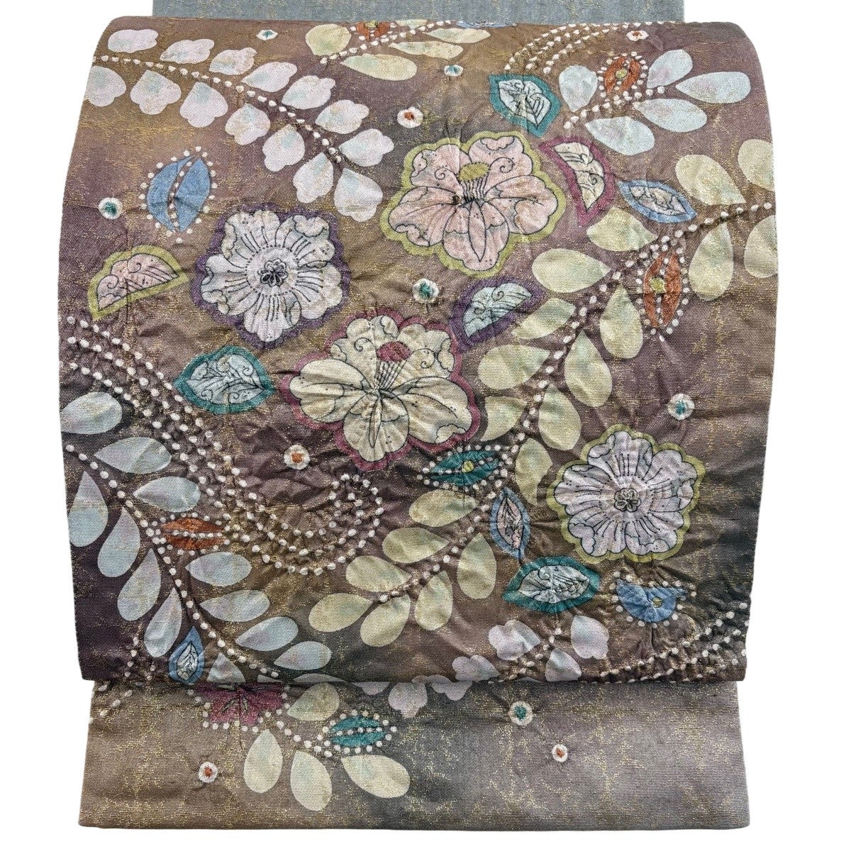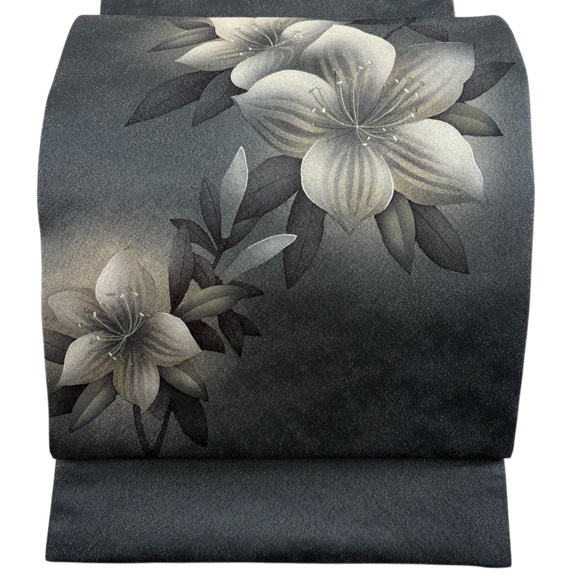 袋帯とは女性用の主にフォーマル用の帯で第一礼装として着用されることが多く、形状は表地にのみ柄があり裏地は無地になるように袋状に織って作成されたため袋帯という名が付きました。 帯を締める際にはおめでたいことが重なりますようにという願いが込められている二重太鼓や成人式の際に振袖に見かけるふくら雀や文庫結びなどの変わり結びを用いて着用します。