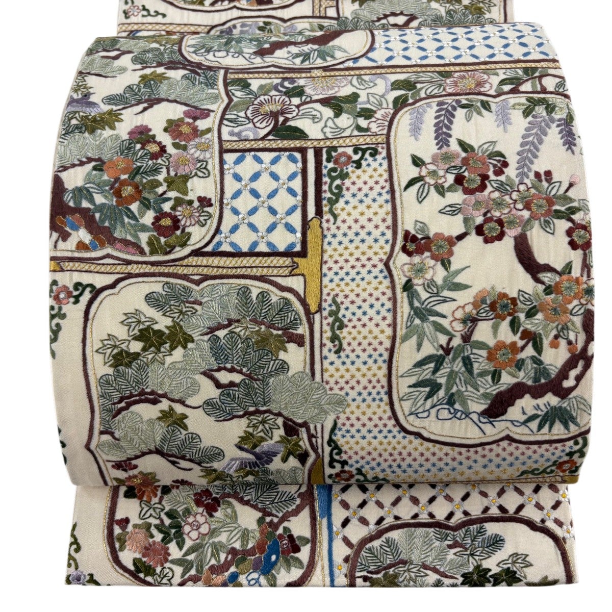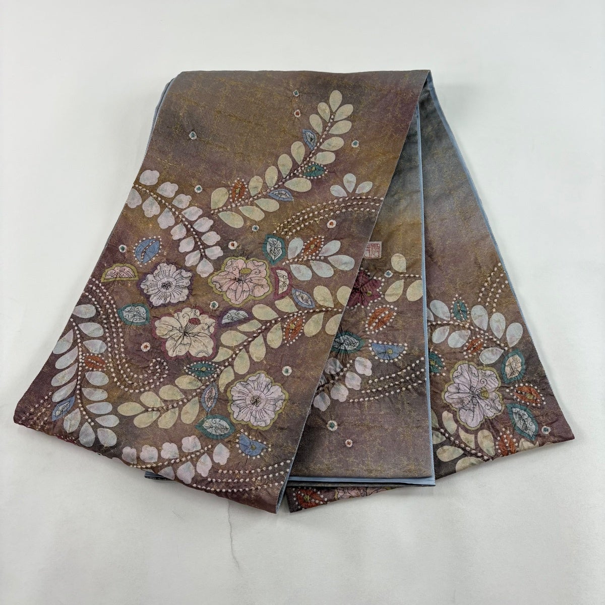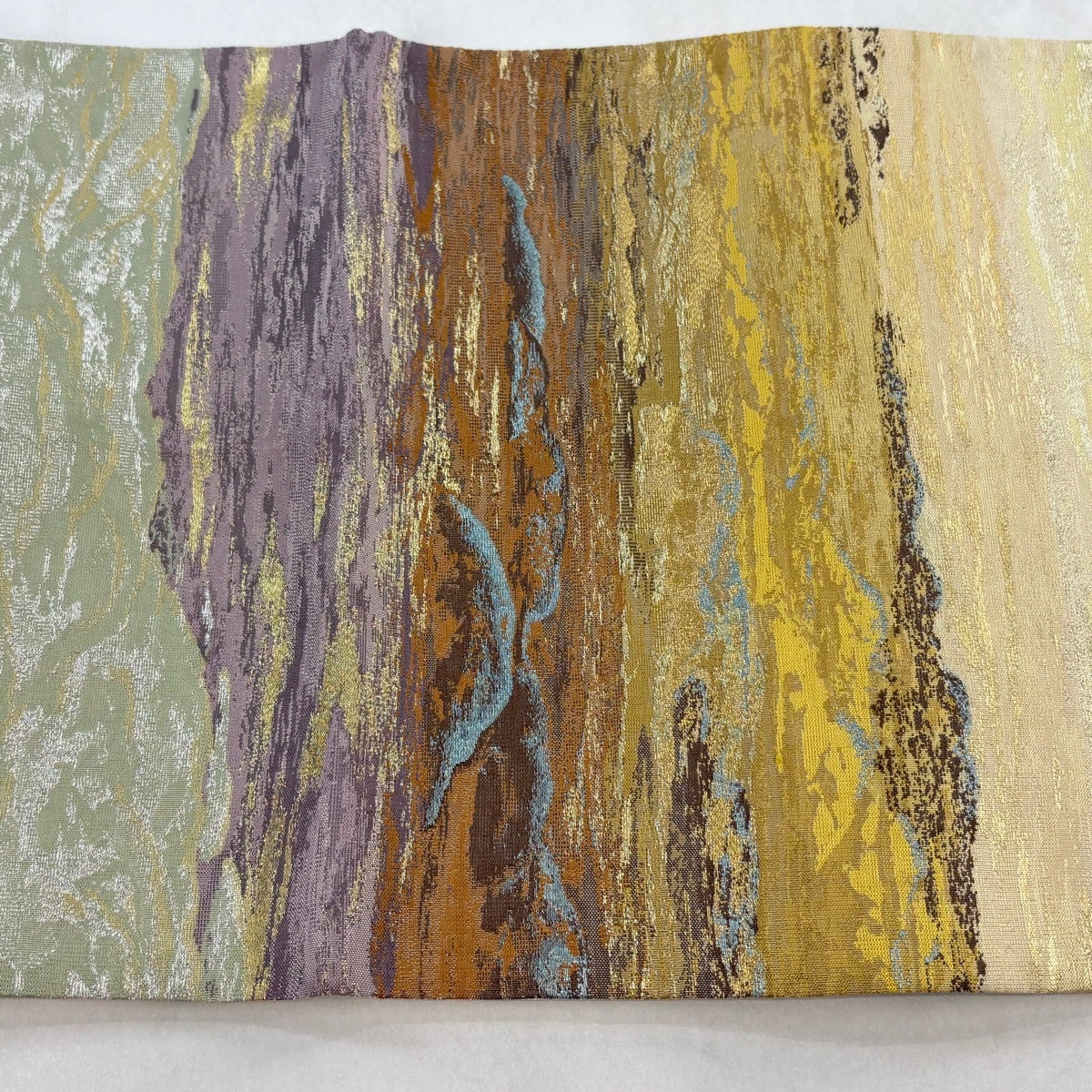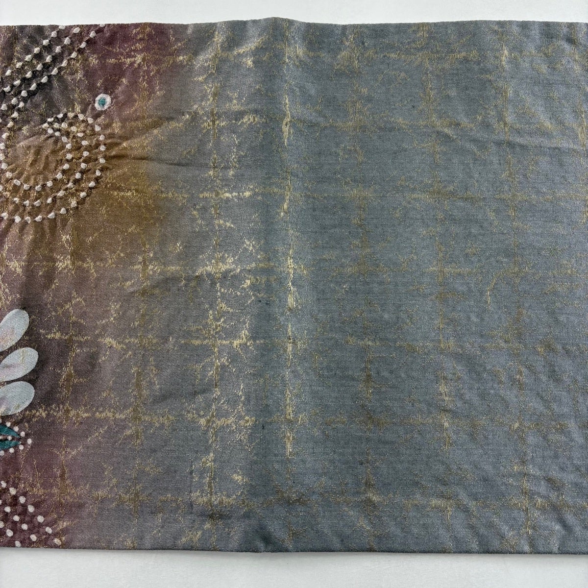 袋帯とは女性用の主にフォーマル用の帯で第一礼装として着用されることが多く、形状は表地にのみ柄があり裏地は無地になるように袋状に織って作成されたため袋帯という名が付きました。 帯を締める際にはおめでたいことが重なりますようにという願いが込められている二重太鼓や成人式の際に振袖に見かけるふくら雀や文庫結びなどの変わり結びを用いて着用します。