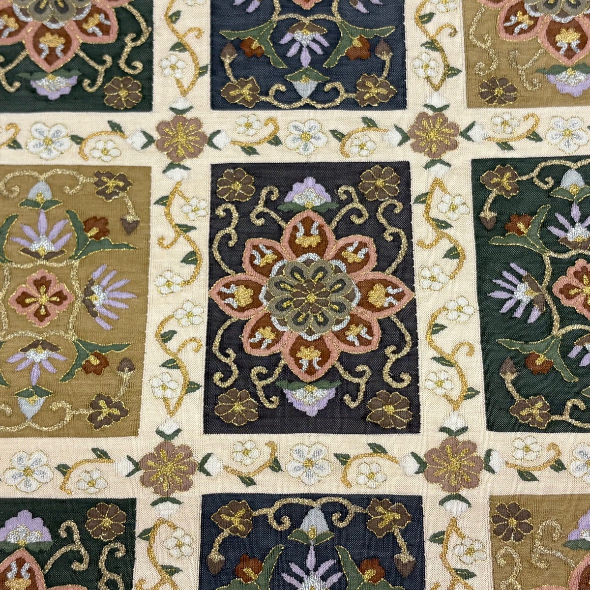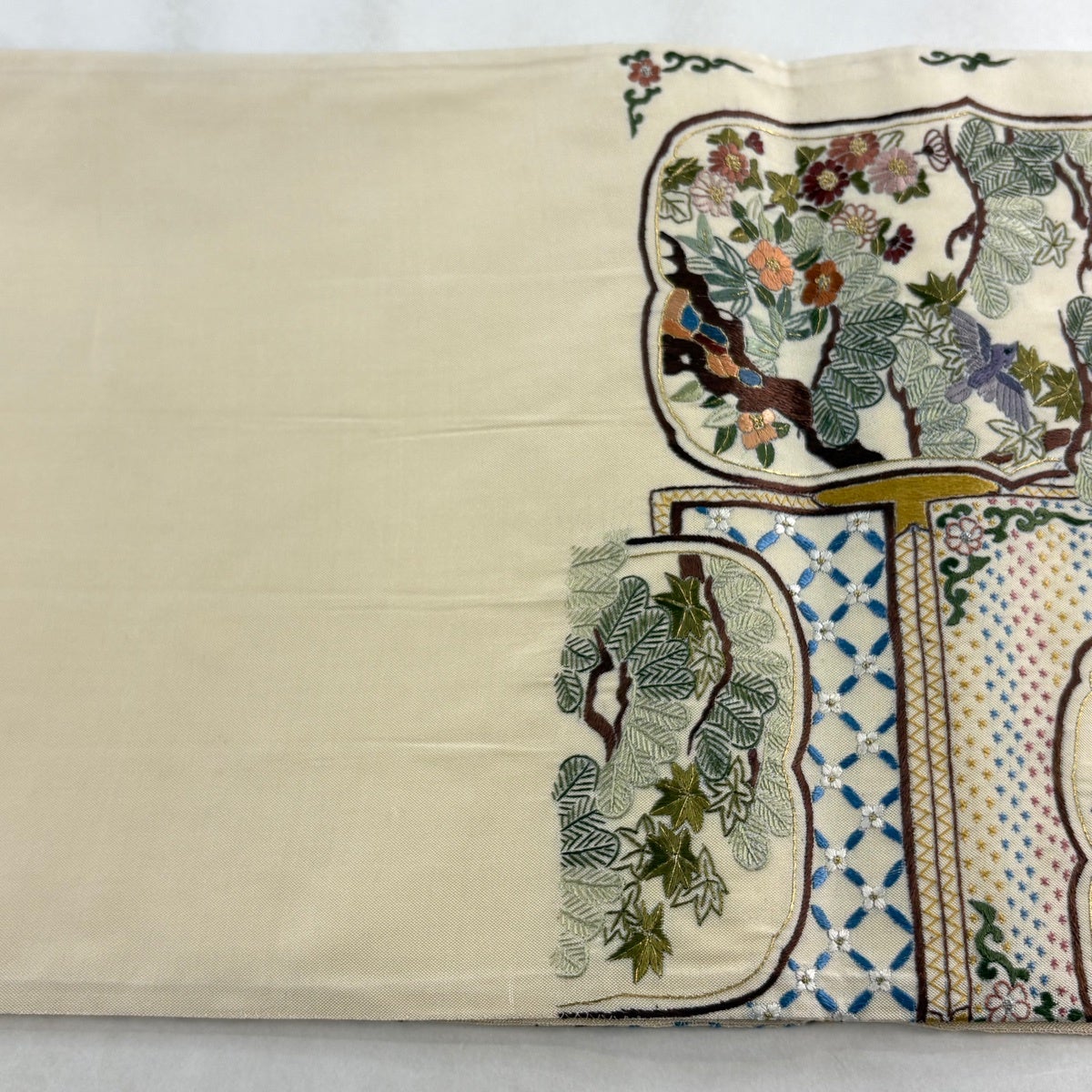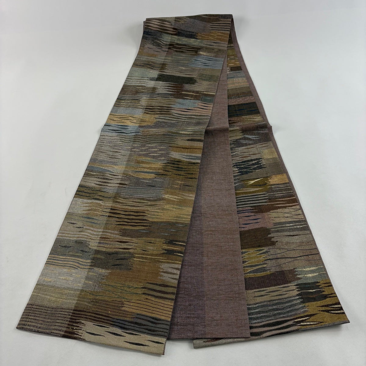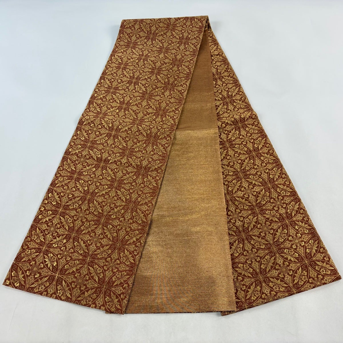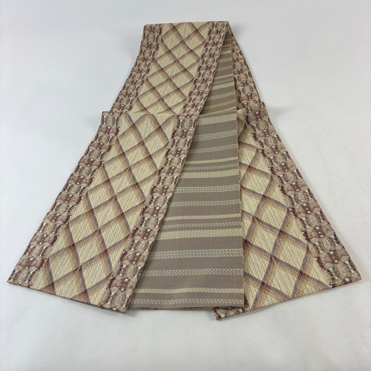 袋帯とは女性用の主にフォーマル用の帯で第一礼装として着用されることが多く、形状は表地にのみ柄があり裏地は無地になるように袋状に織って作成されたため袋帯という名が付きました。 帯を締める際にはおめでたいことが重なりますようにという願いが込められている二重太鼓や成人式の際に振袖に見かけるふくら雀や文庫結びなどの変わり結びを用いて着用します。