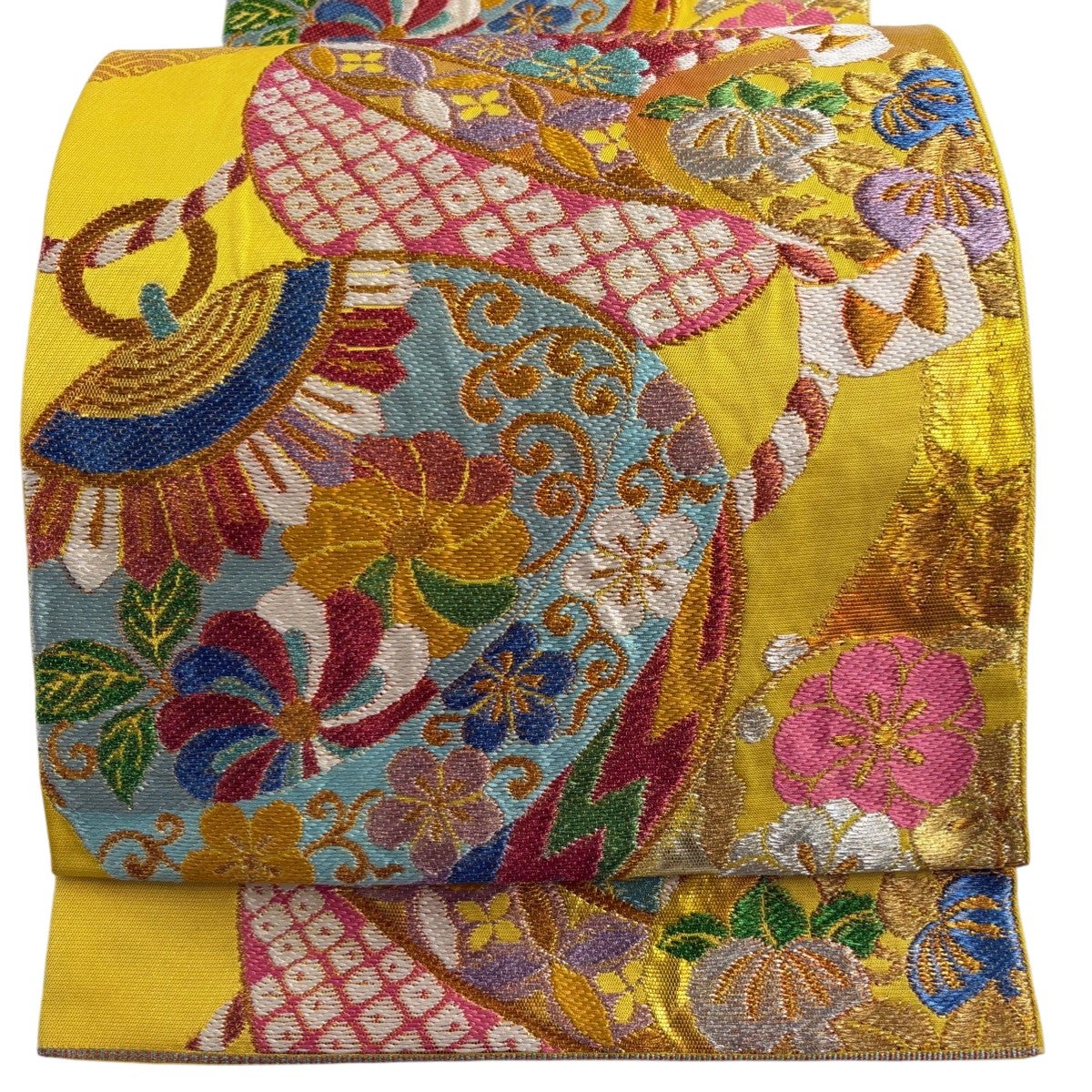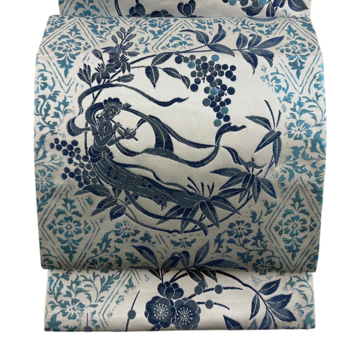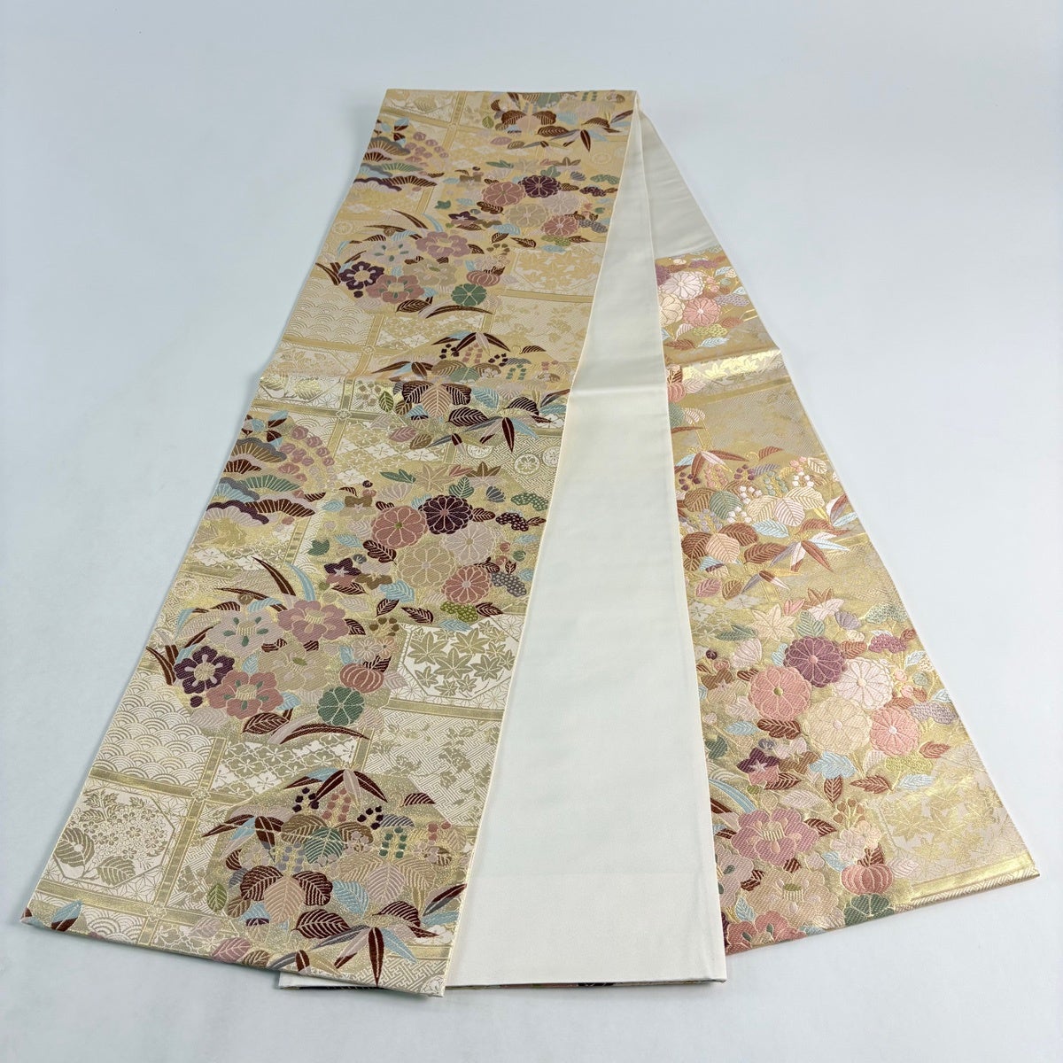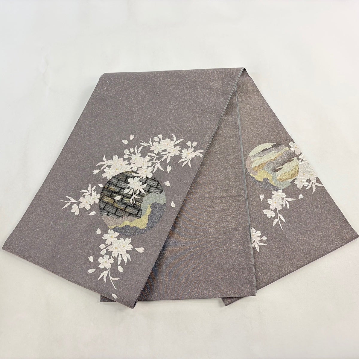 袋帯とは女性用の主にフォーマル用の帯で第一礼装として着用されることが多く、形状は表地にのみ柄があり裏地は無地になるように袋状に織って作成されたため袋帯という名が付きました。 帯を締める際にはおめでたいことが重なりますようにという願いが込められている二重太鼓や成人式の際に振袖に見かけるふくら雀や文庫結びなどの変わり結びを用いて着用します。