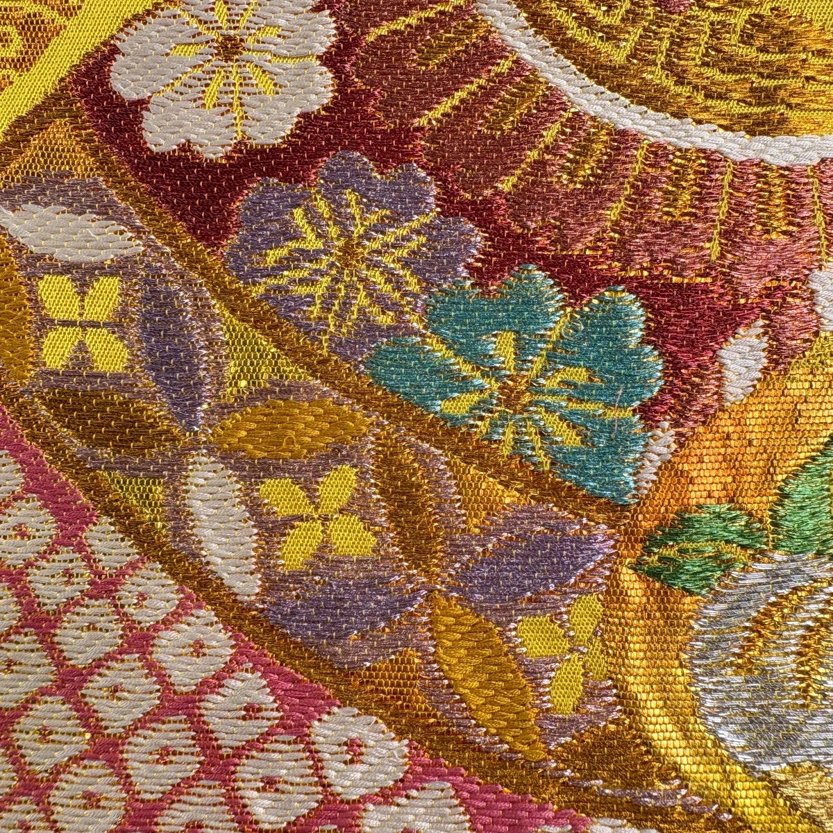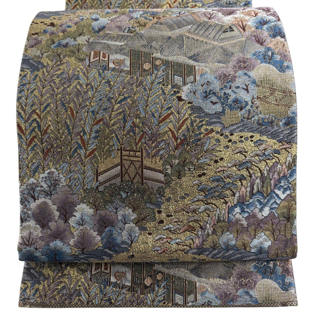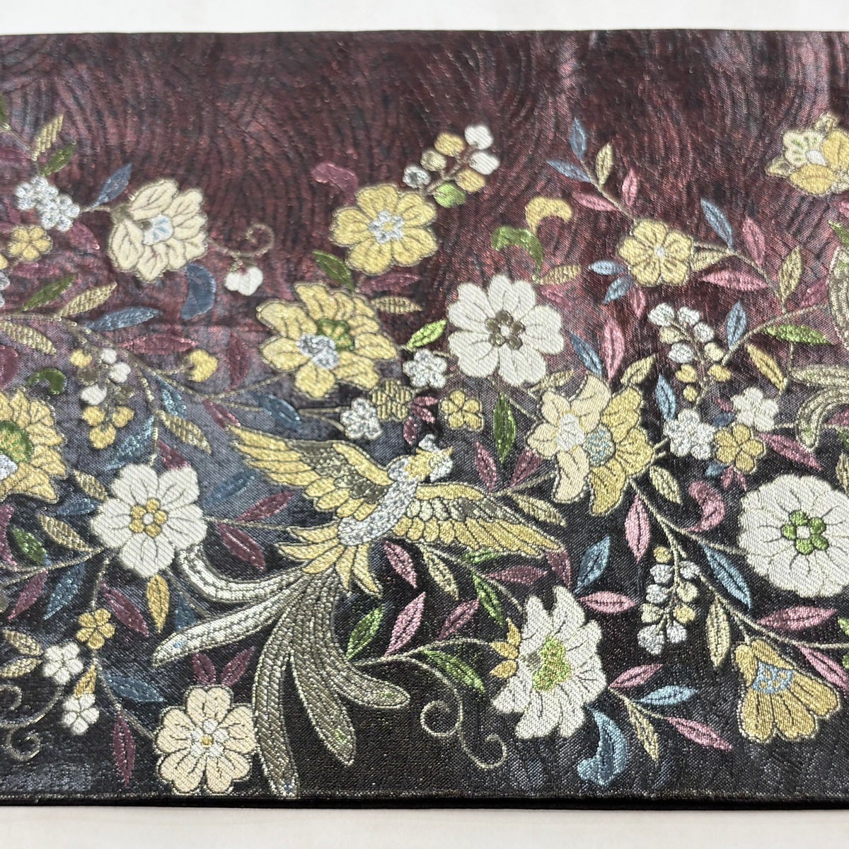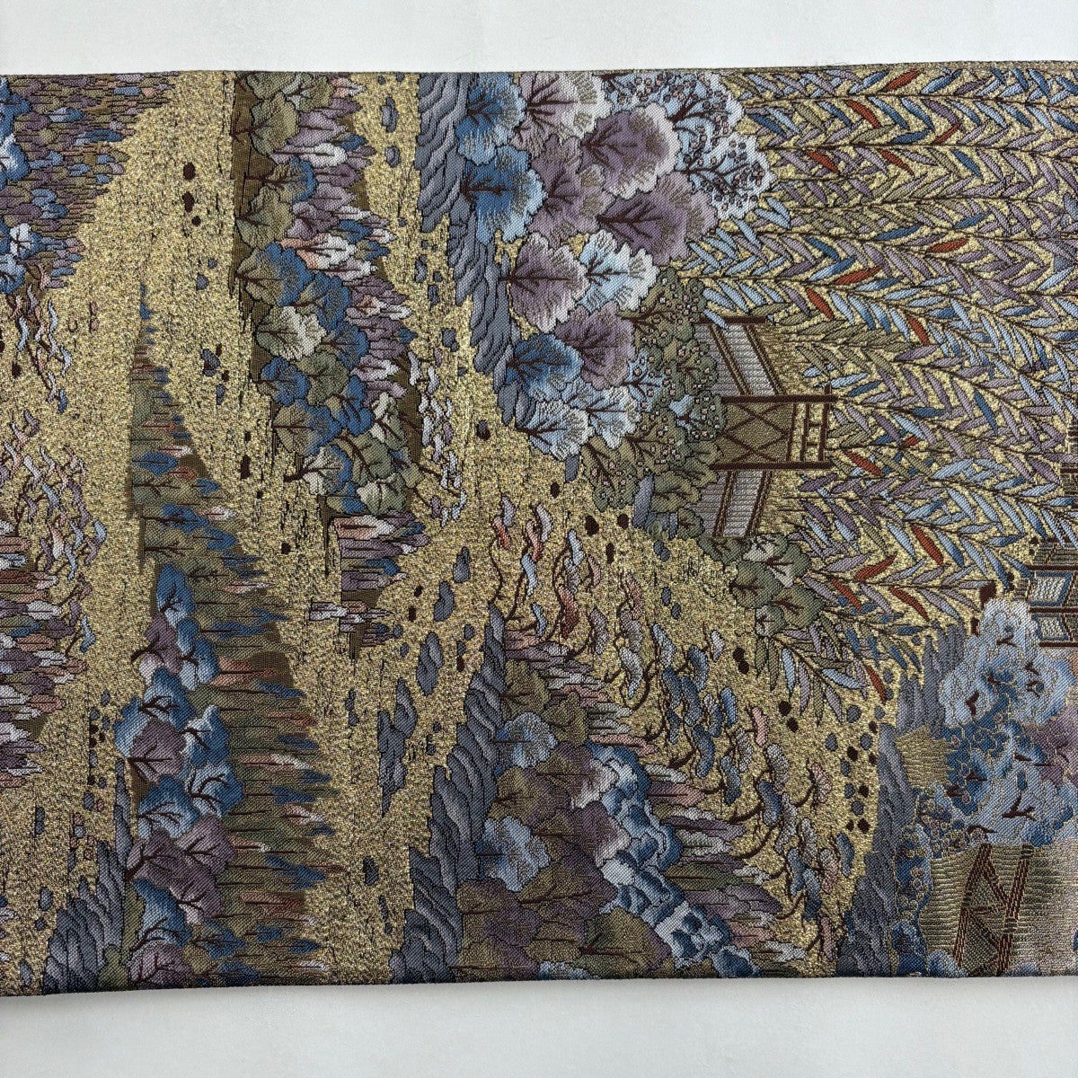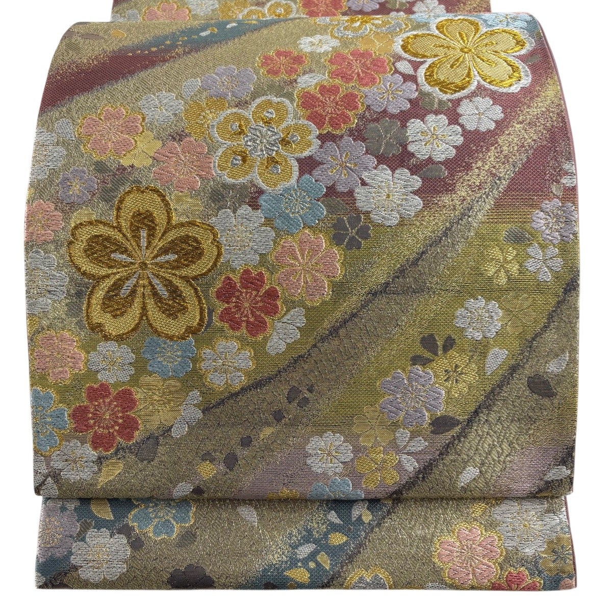 袋帯とは女性用の主にフォーマル用の帯で第一礼装として着用されることが多く、形状は表地にのみ柄があり裏地は無地になるように袋状に織って作成されたため袋帯という名が付きました。 帯を締める際にはおめでたいことが重なりますようにという願いが込められている二重太鼓や成人式の際に振袖に見かけるふくら雀や文庫結びなどの変わり結びを用いて着用します。
