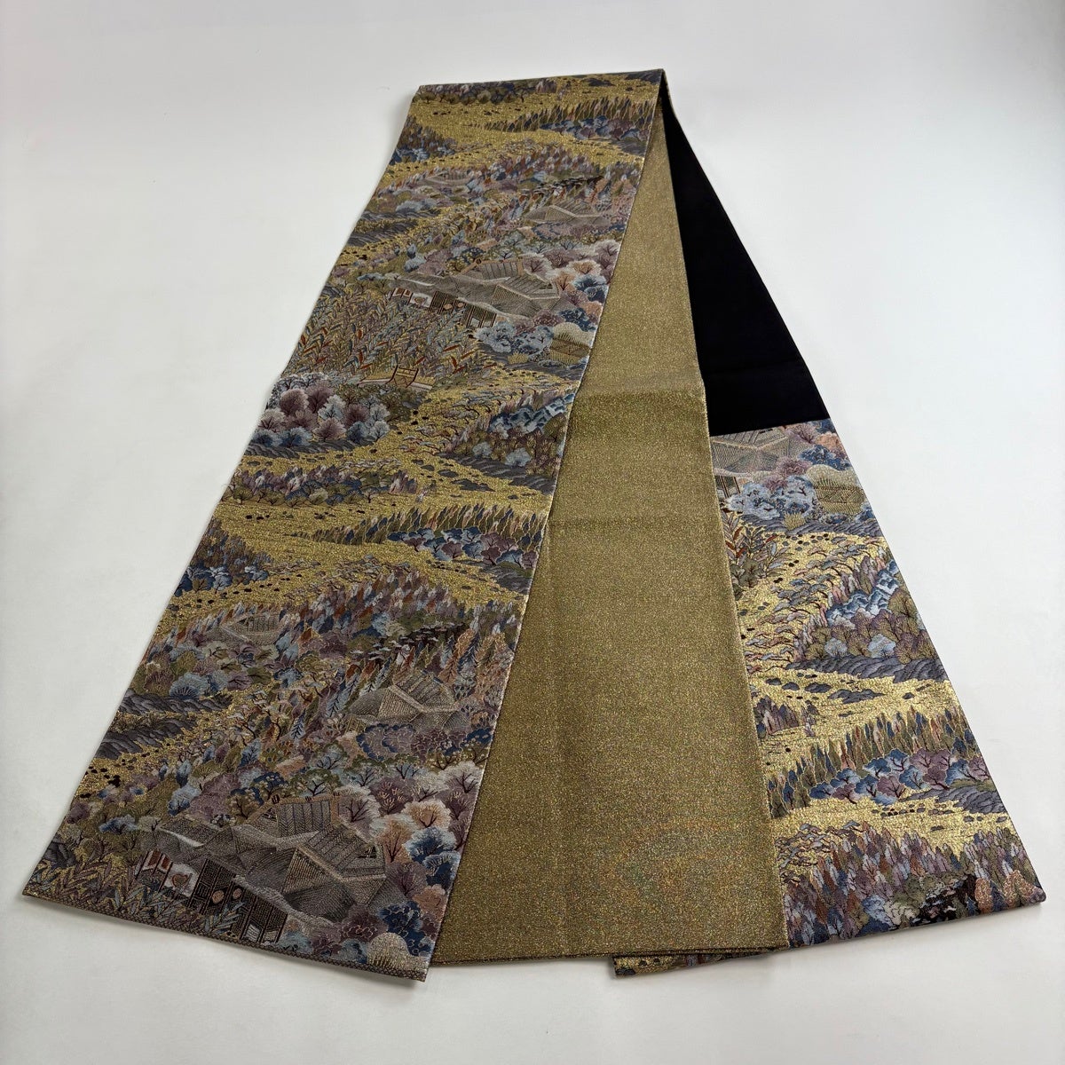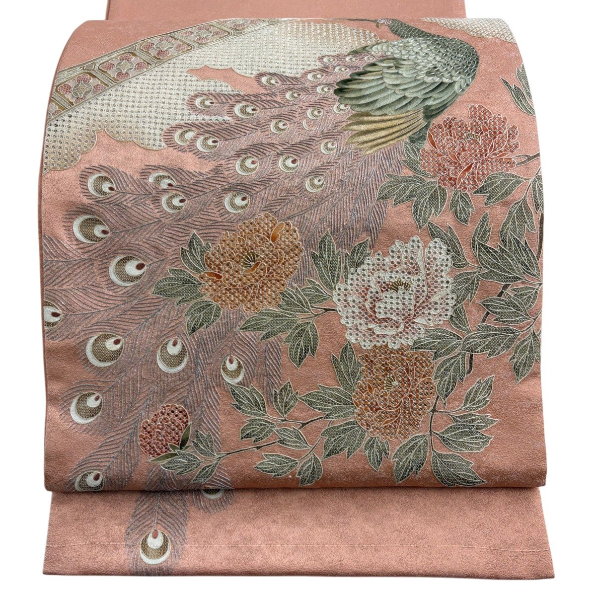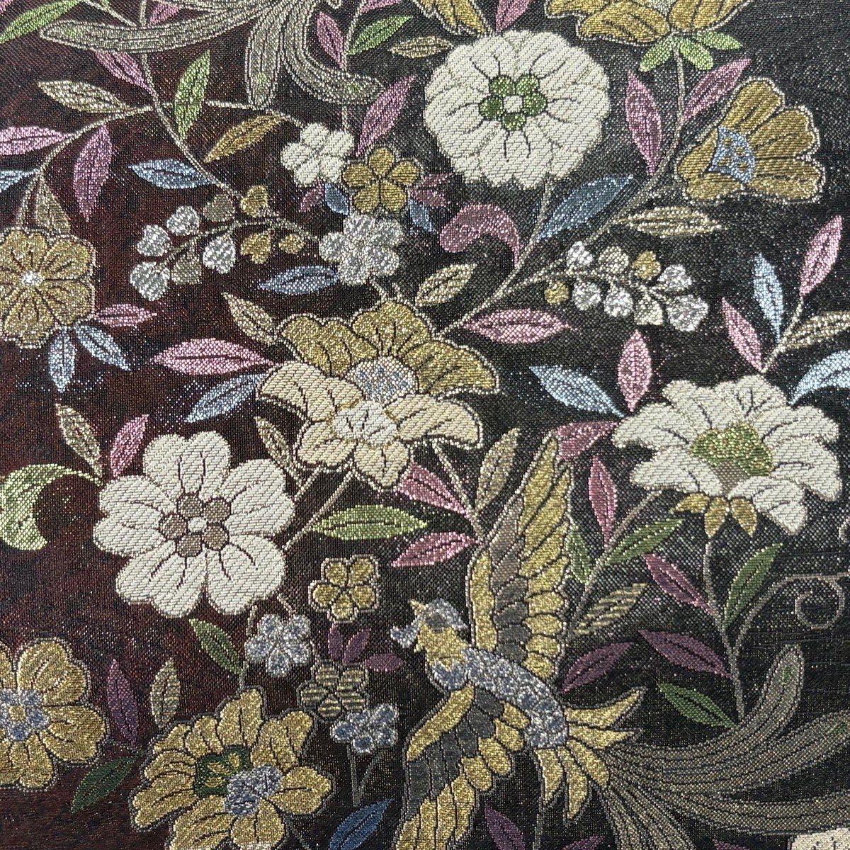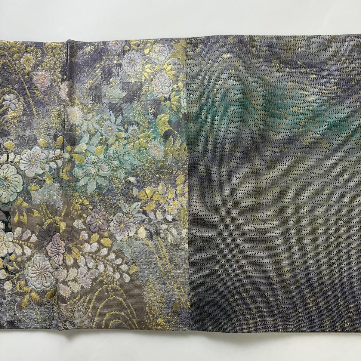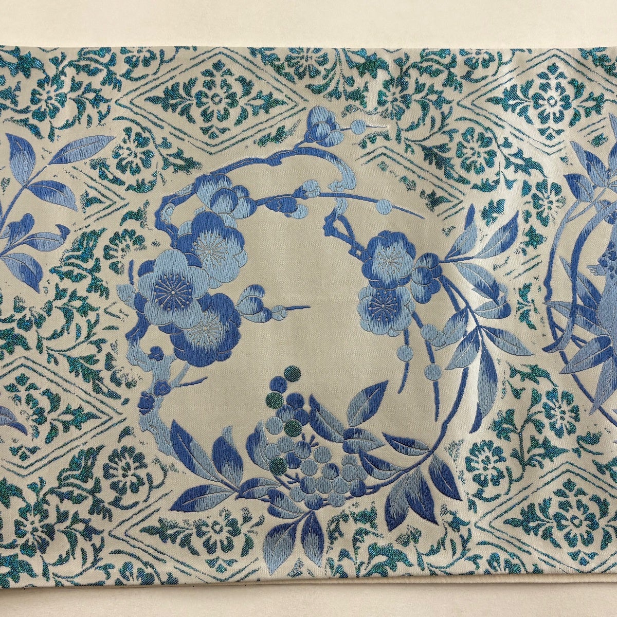 袋帯とは女性用の主にフォーマル用の帯で第一礼装として着用されることが多く、形状は表地にのみ柄があり裏地は無地になるように袋状に織って作成されたため袋帯という名が付きました。 帯を締める際にはおめでたいことが重なりますようにという願いが込められている二重太鼓や成人式の際に振袖に見かけるふくら雀や文庫結びなどの変わり結びを用いて着用します。