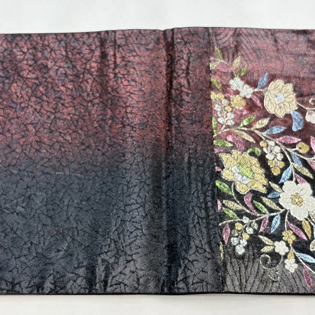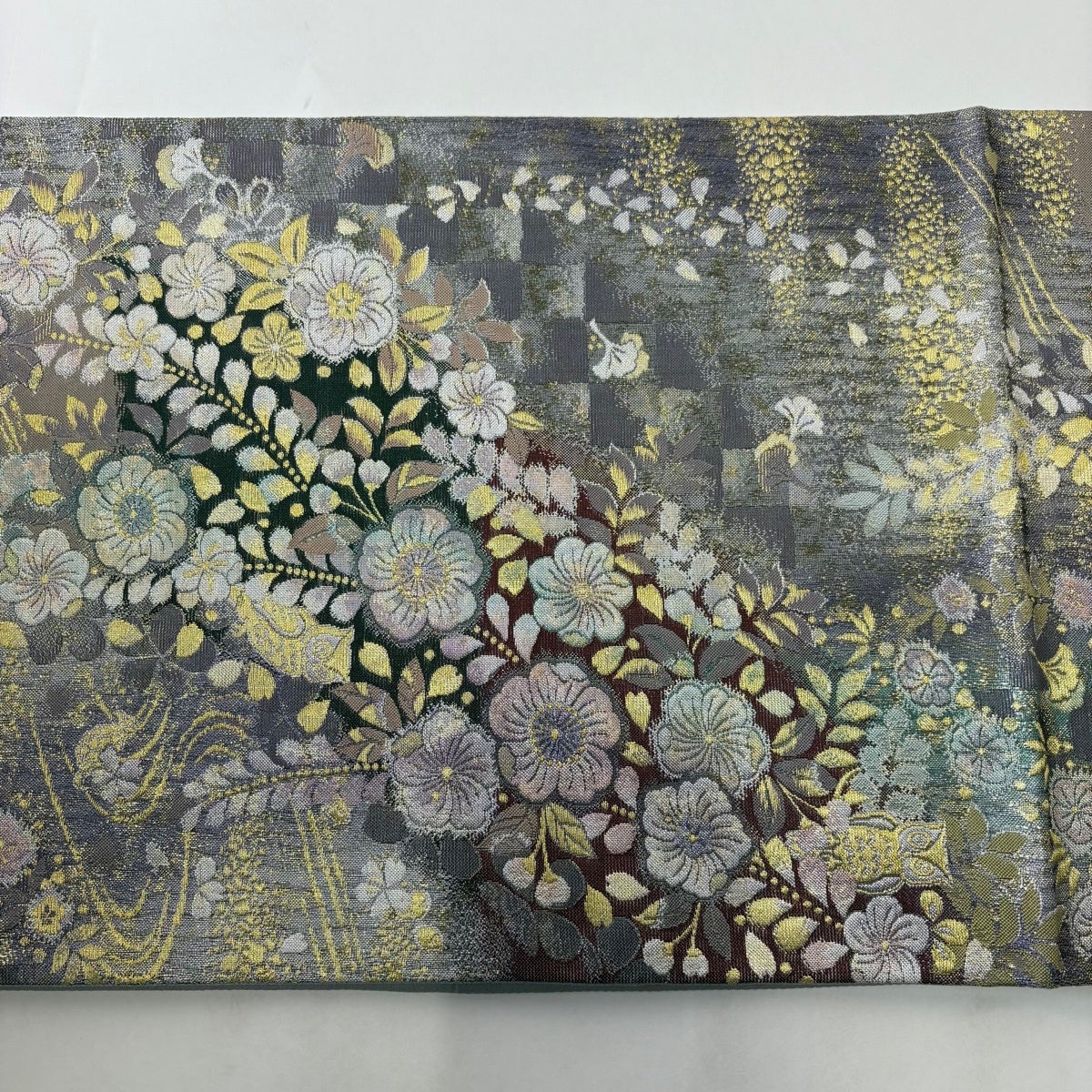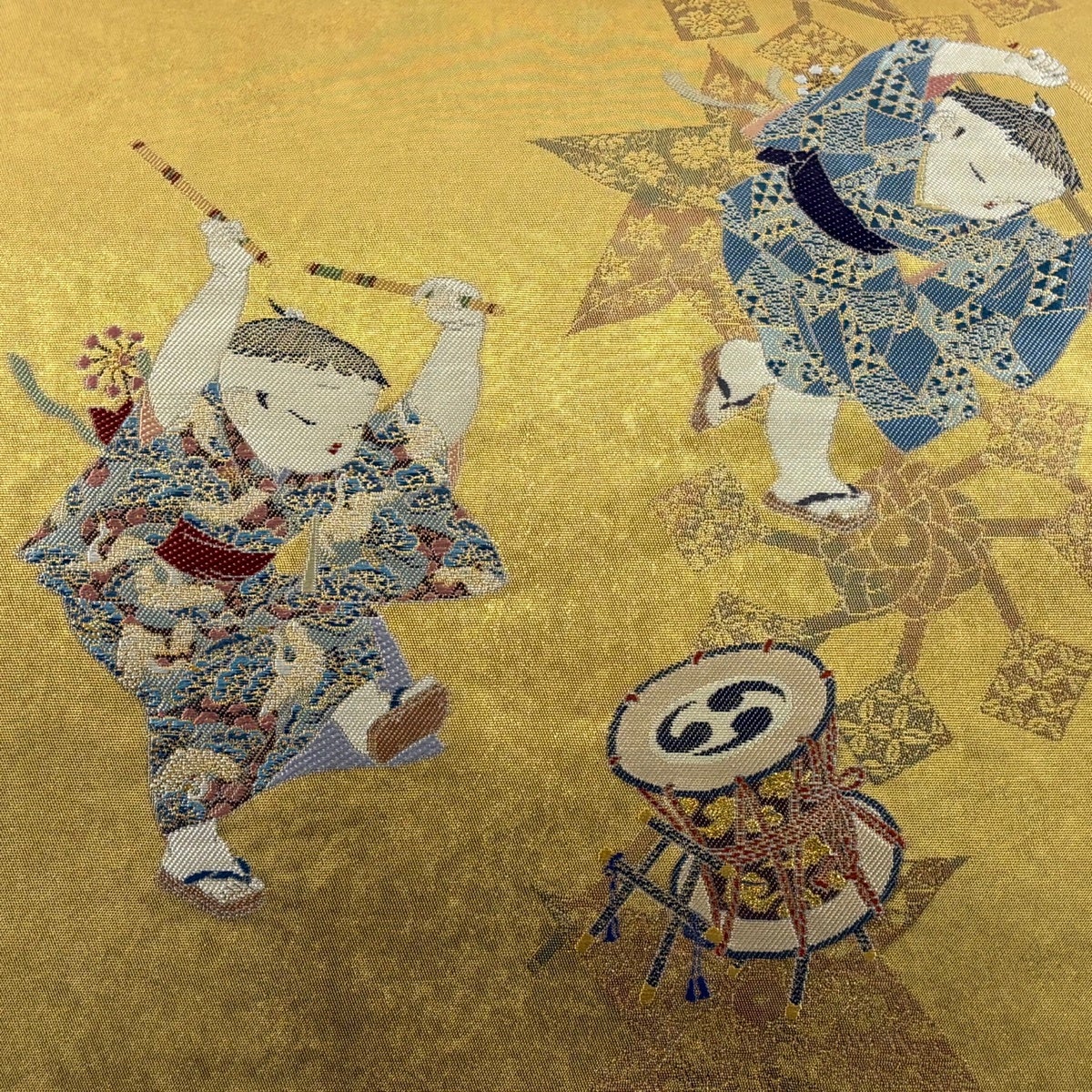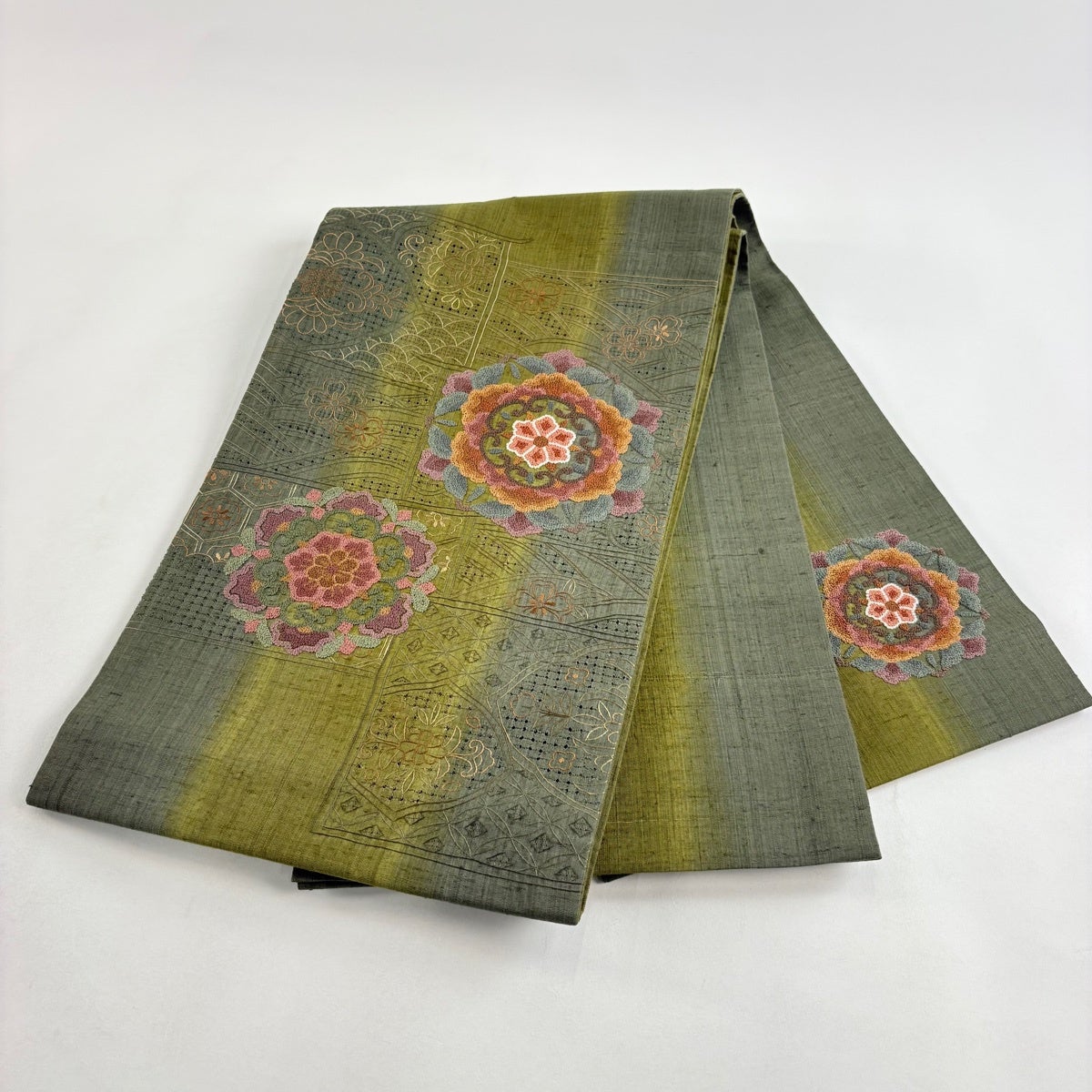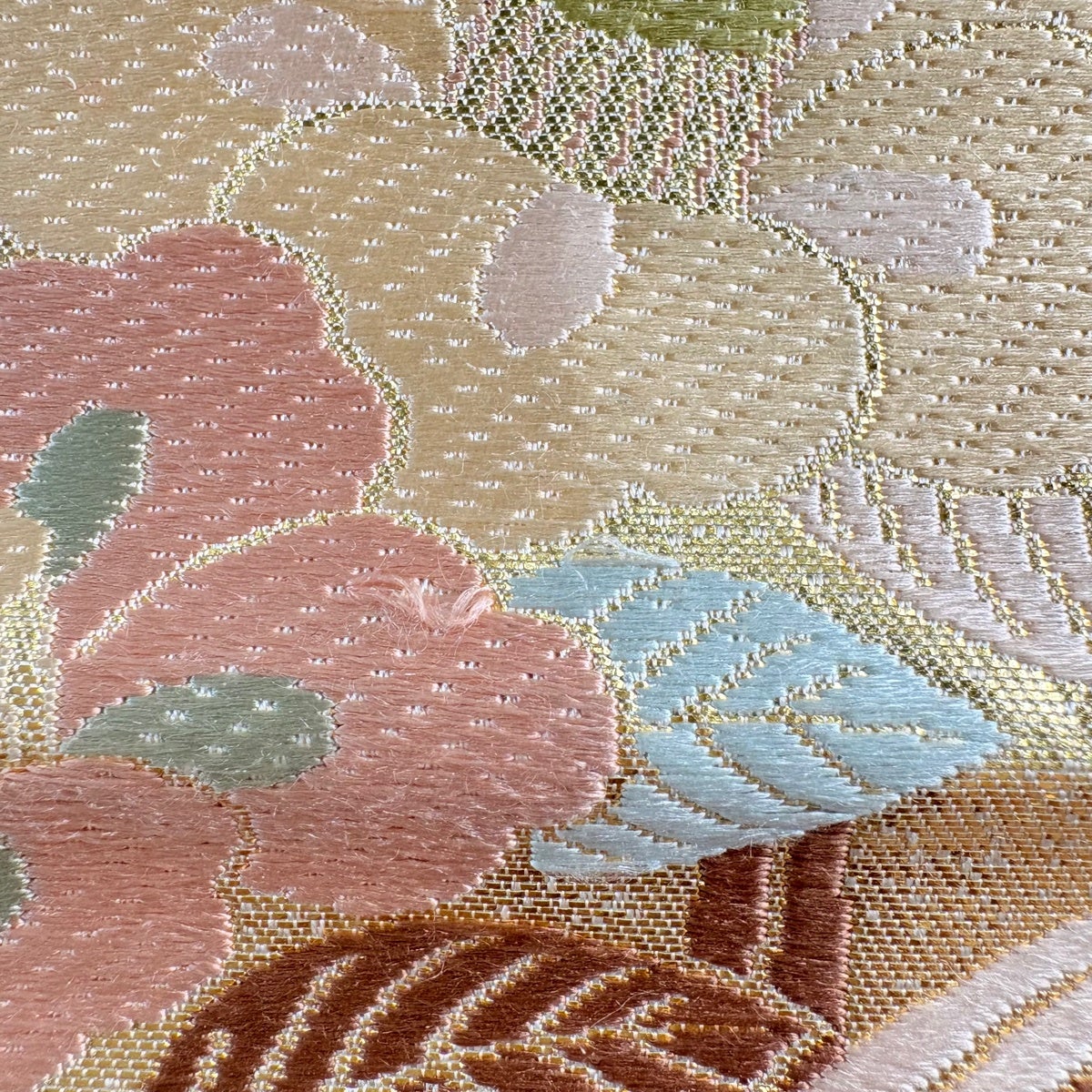 袋帯とは女性用の主にフォーマル用の帯で第一礼装として着用されることが多く、形状は表地にのみ柄があり裏地は無地になるように袋状に織って作成されたため袋帯という名が付きました。 帯を締める際にはおめでたいことが重なりますようにという願いが込められている二重太鼓や成人式の際に振袖に見かけるふくら雀や文庫結びなどの変わり結びを用いて着用します。