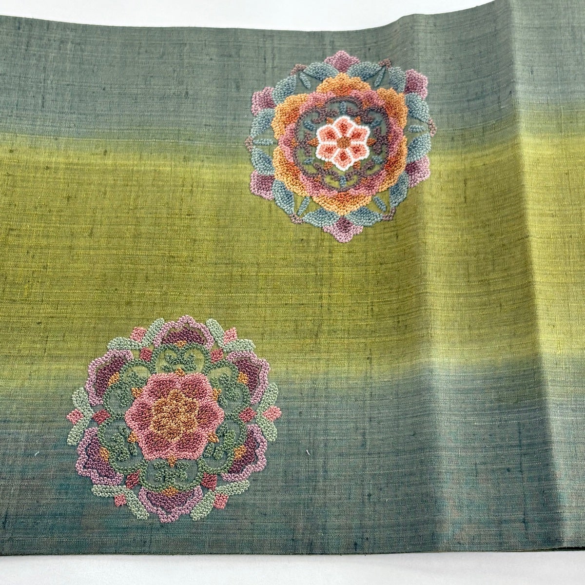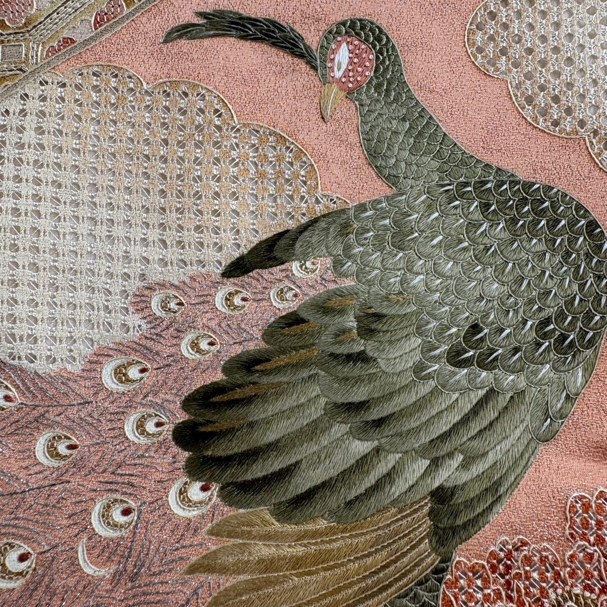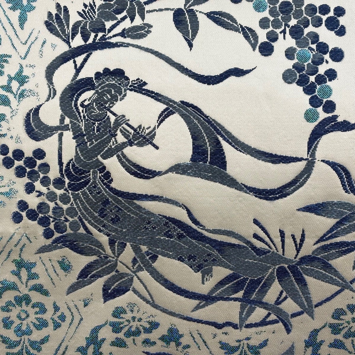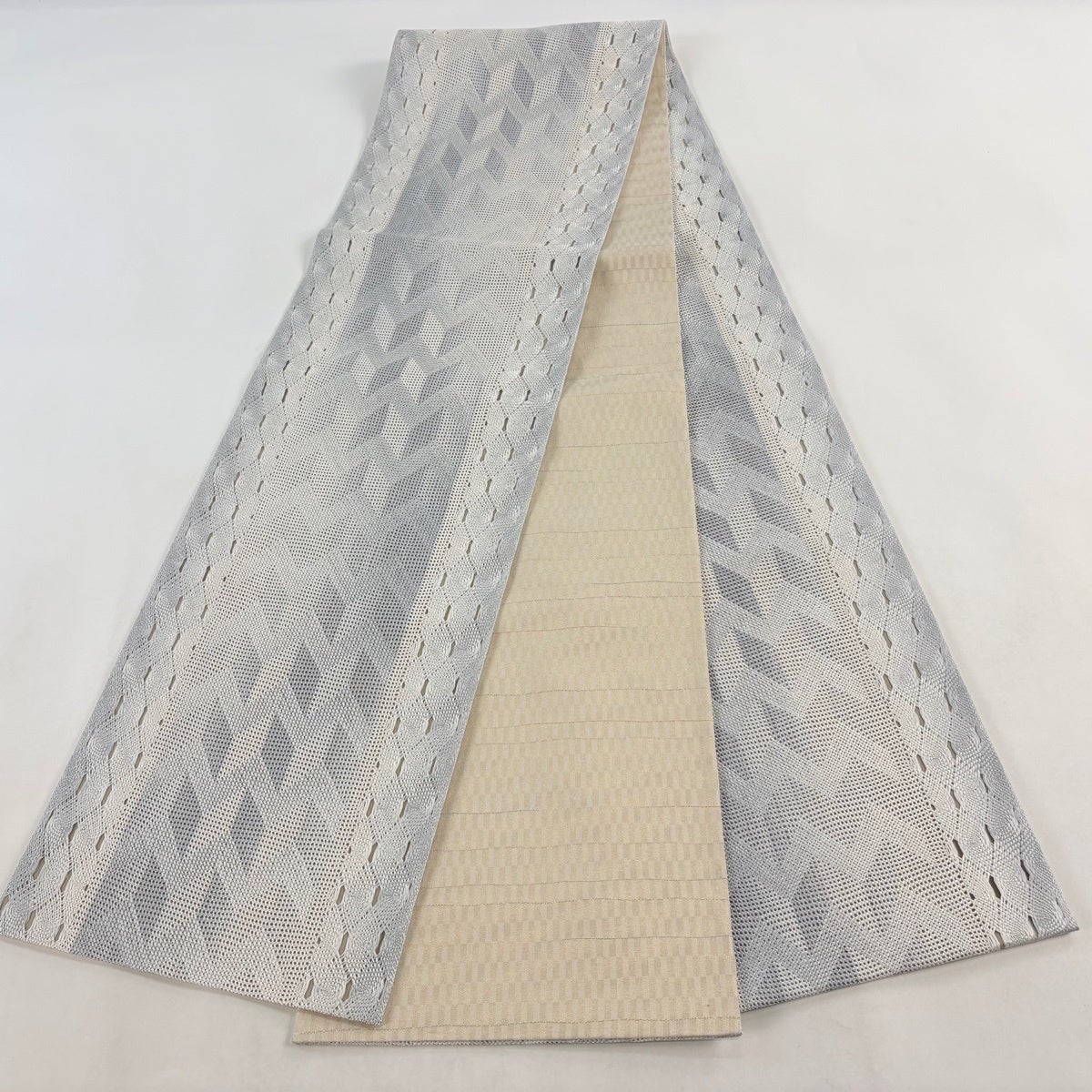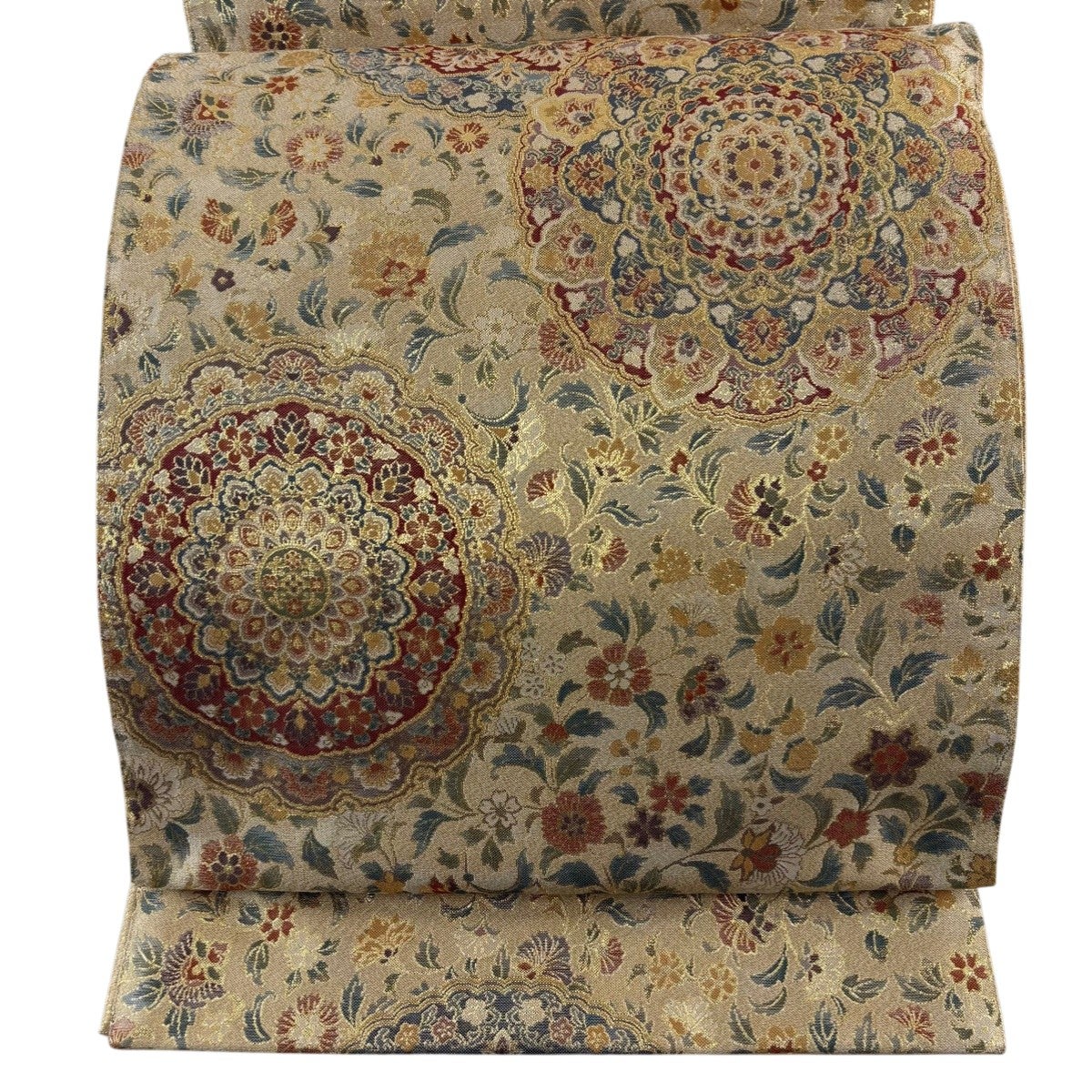 袋帯とは女性用の主にフォーマル用の帯で第一礼装として着用されることが多く、形状は表地にのみ柄があり裏地は無地になるように袋状に織って作成されたため袋帯という名が付きました。 帯を締める際にはおめでたいことが重なりますようにという願いが込められている二重太鼓や成人式の際に振袖に見かけるふくら雀や文庫結びなどの変わり結びを用いて着用します。