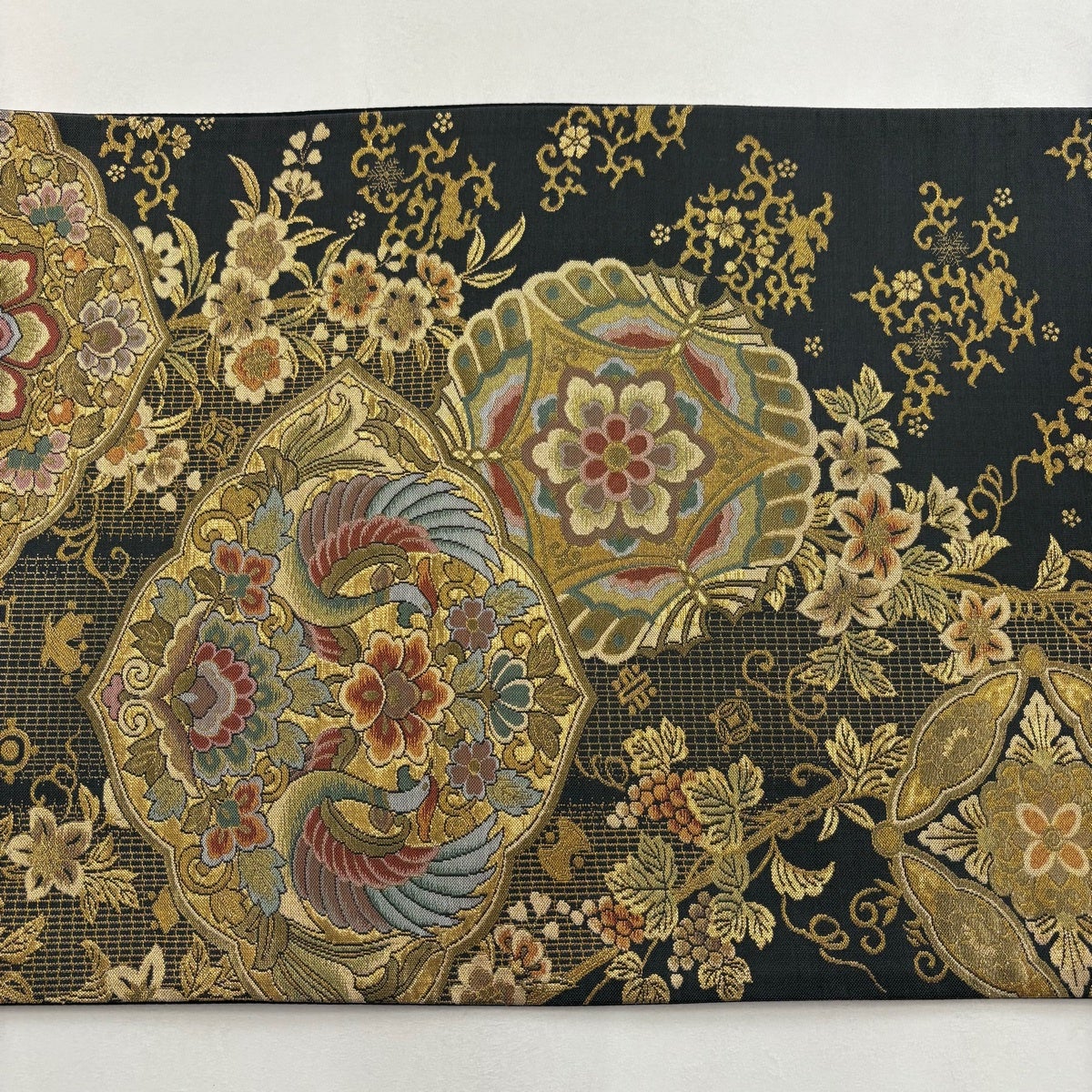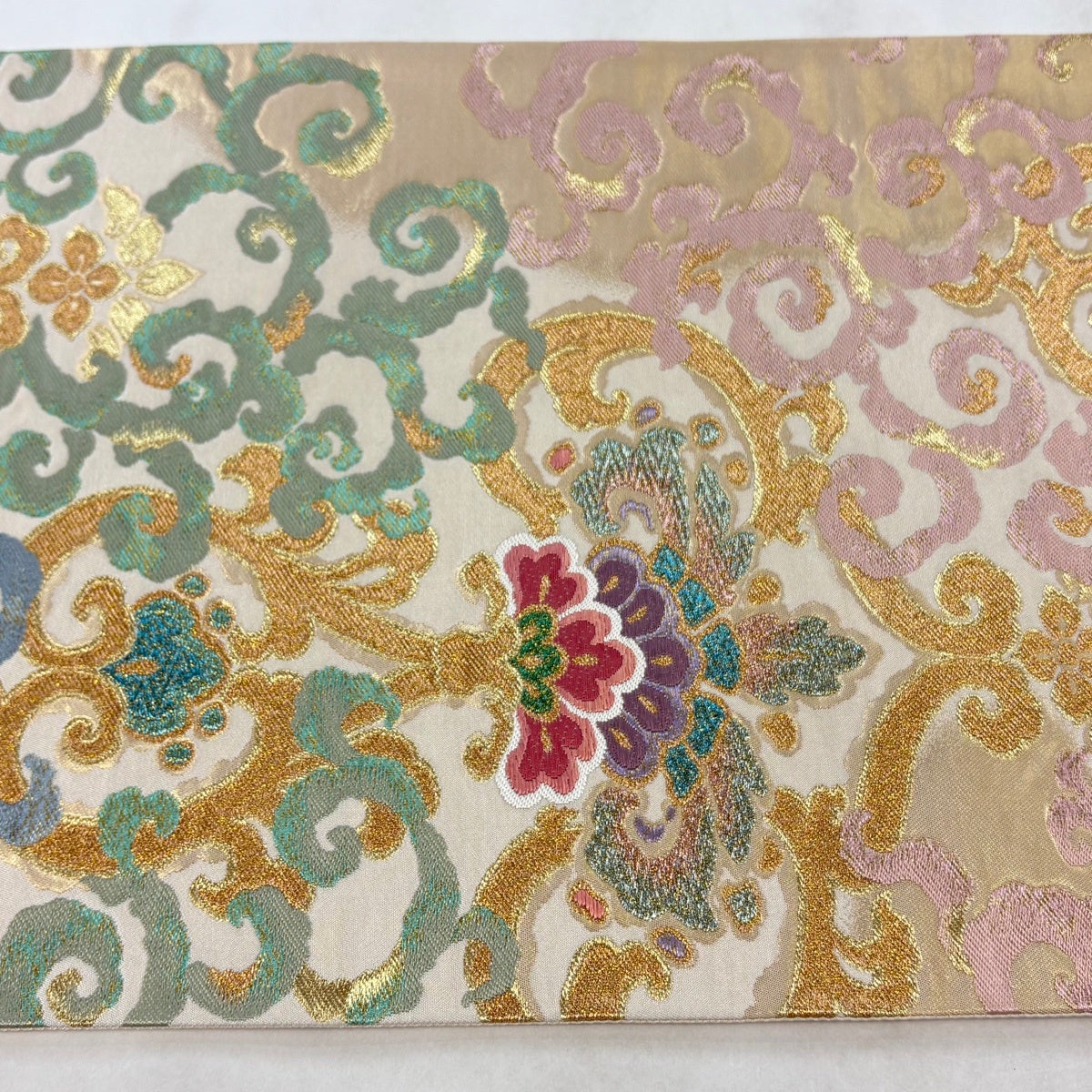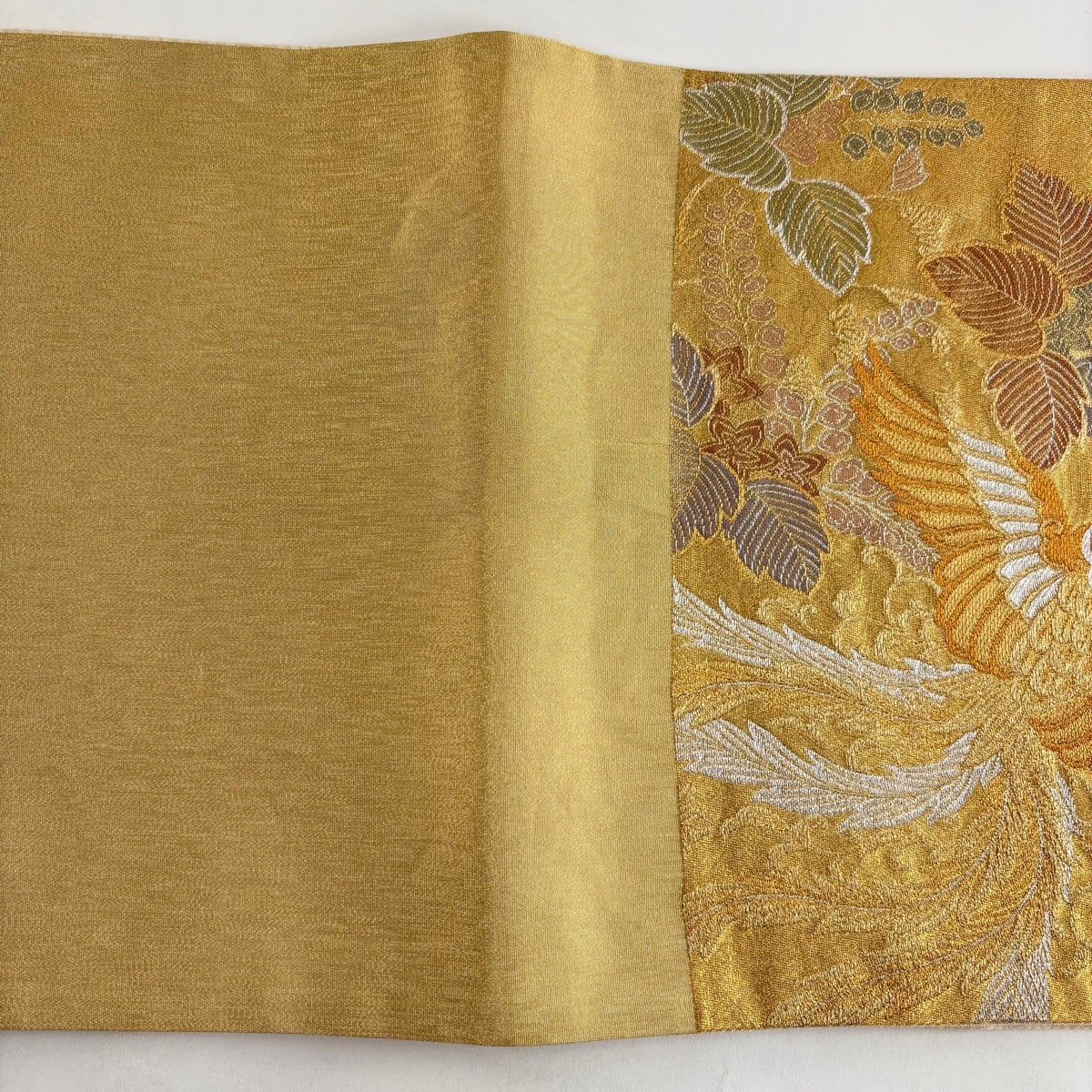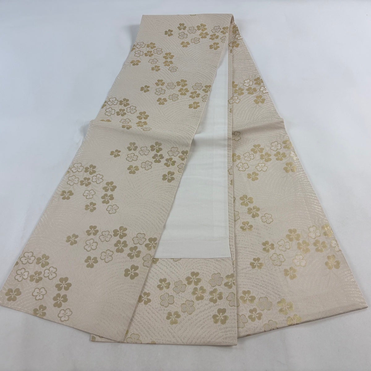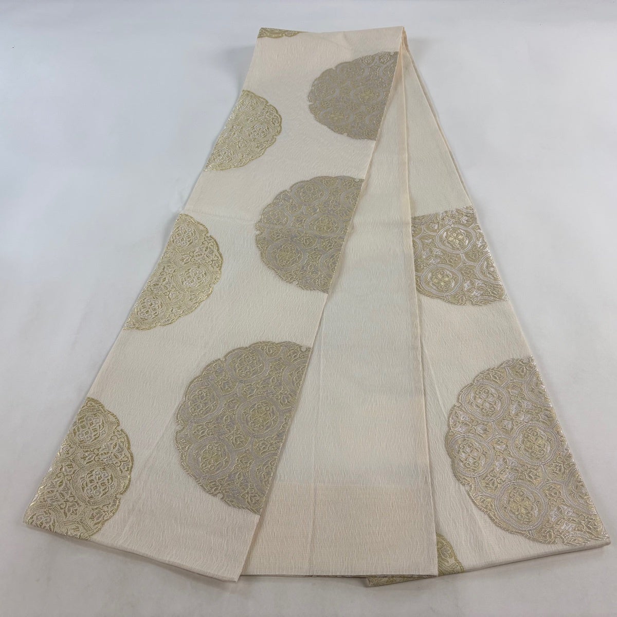 袋帯とは女性用の主にフォーマル用の帯で第一礼装として着用されることが多く、形状は表地にのみ柄があり裏地は無地になるように袋状に織って作成されたため袋帯という名が付きました。 帯を締める際にはおめでたいことが重なりますようにという願いが込められている二重太鼓や成人式の際に振袖に見かけるふくら雀や文庫結びなどの変わり結びを用いて着用します。
